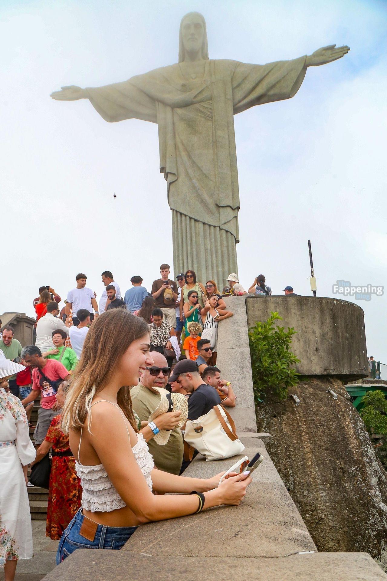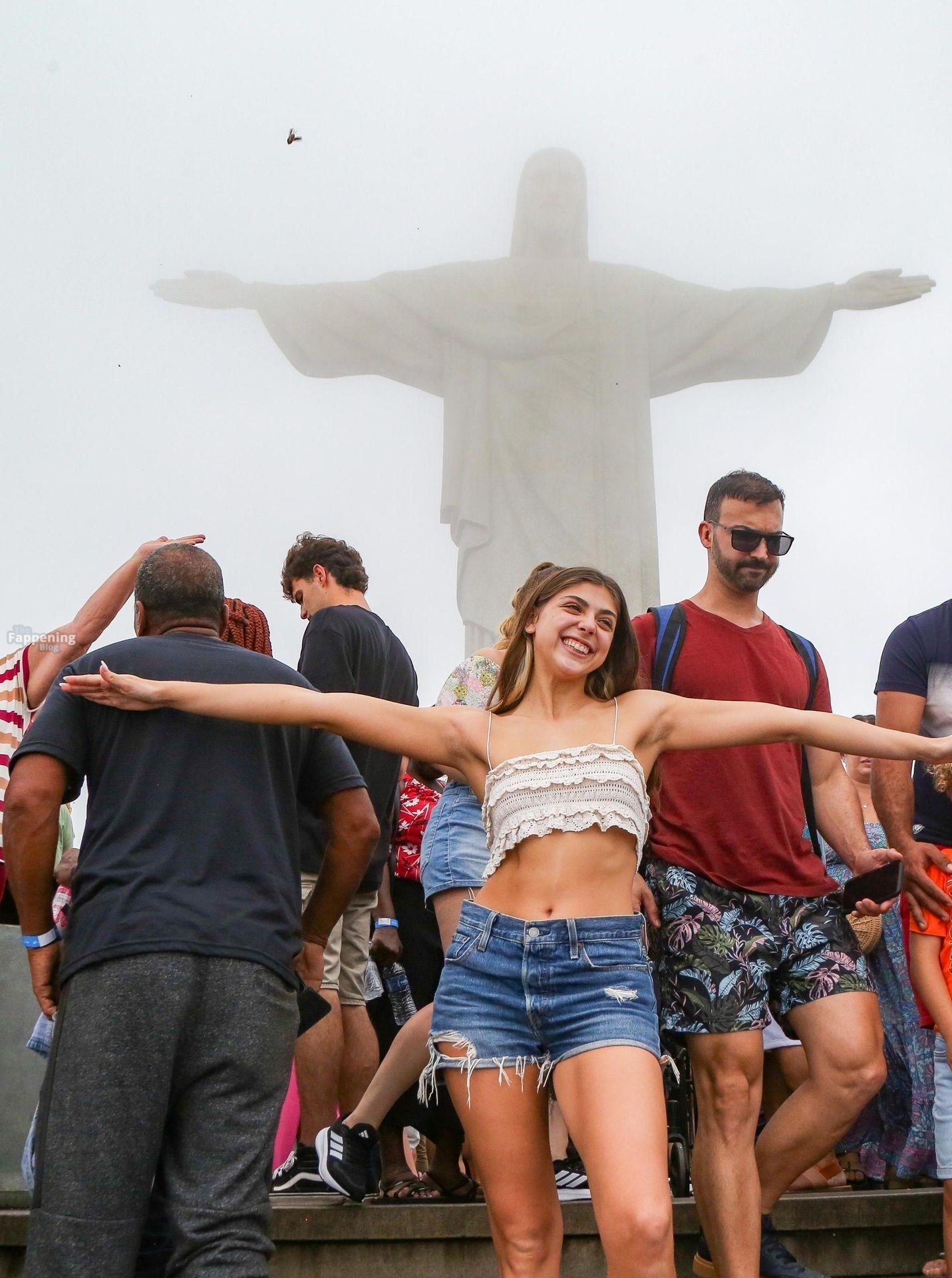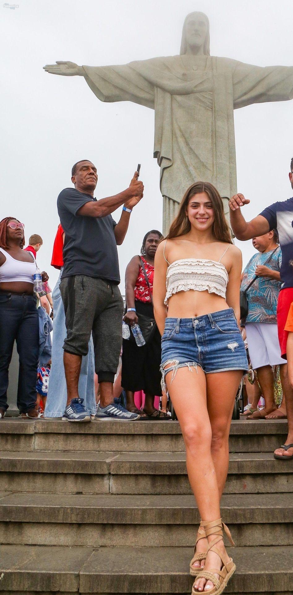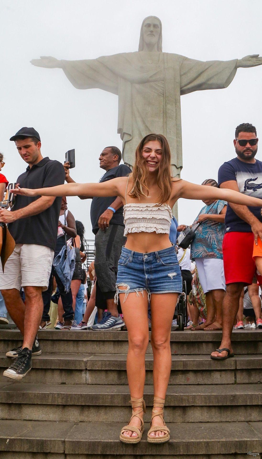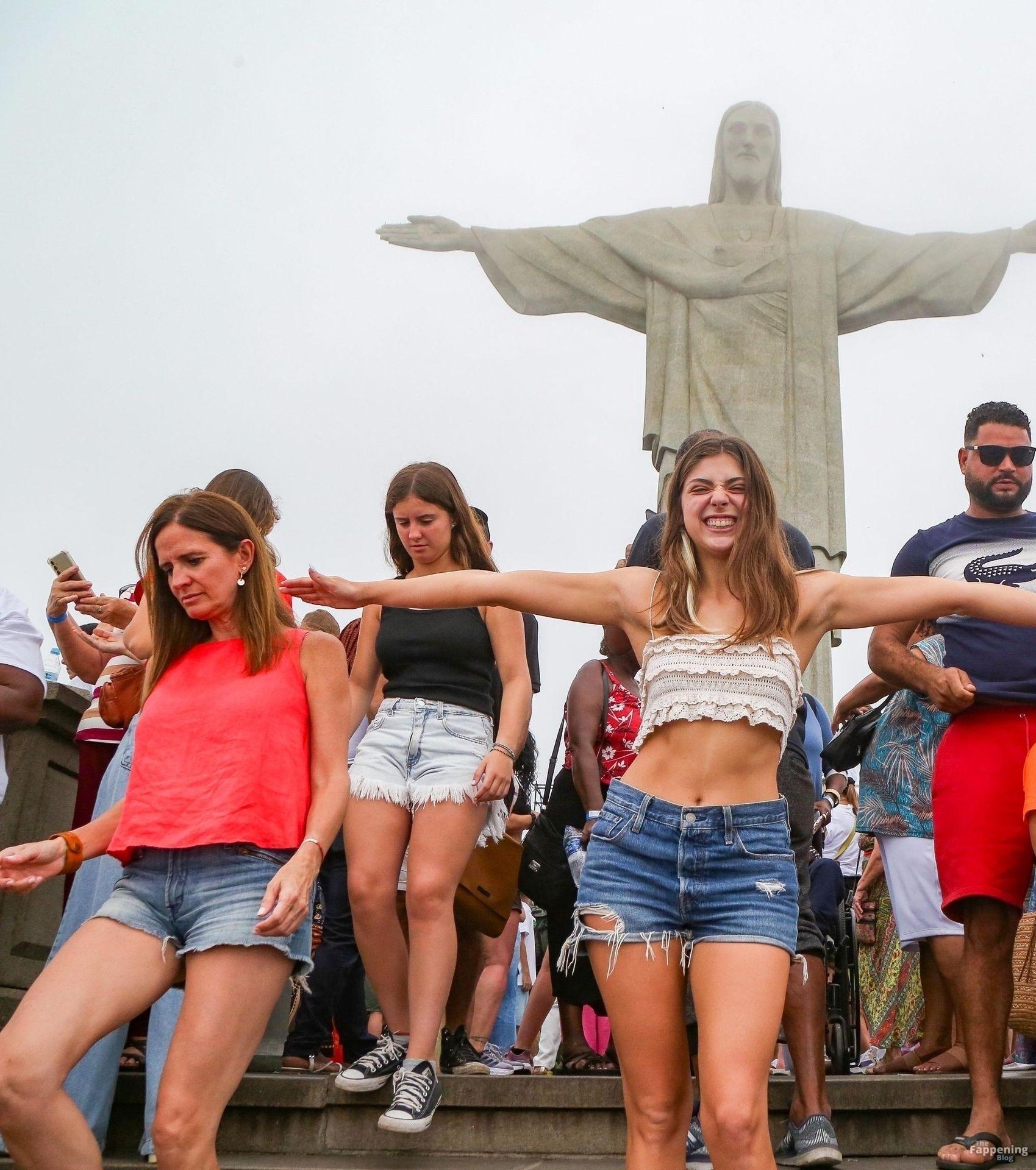 Spanish actress Carmen Arrufat shows off her sexy legs as she poses with a friend as they visit the famous Christ The Redeemer statue in Rio.