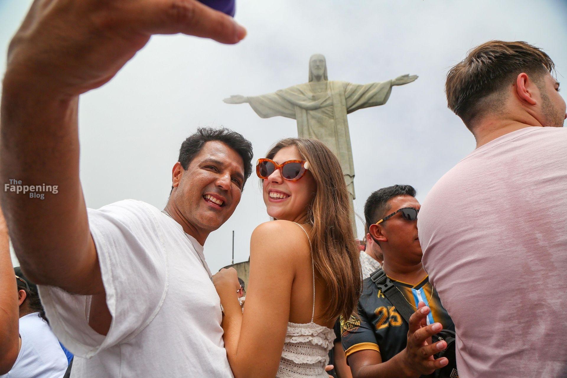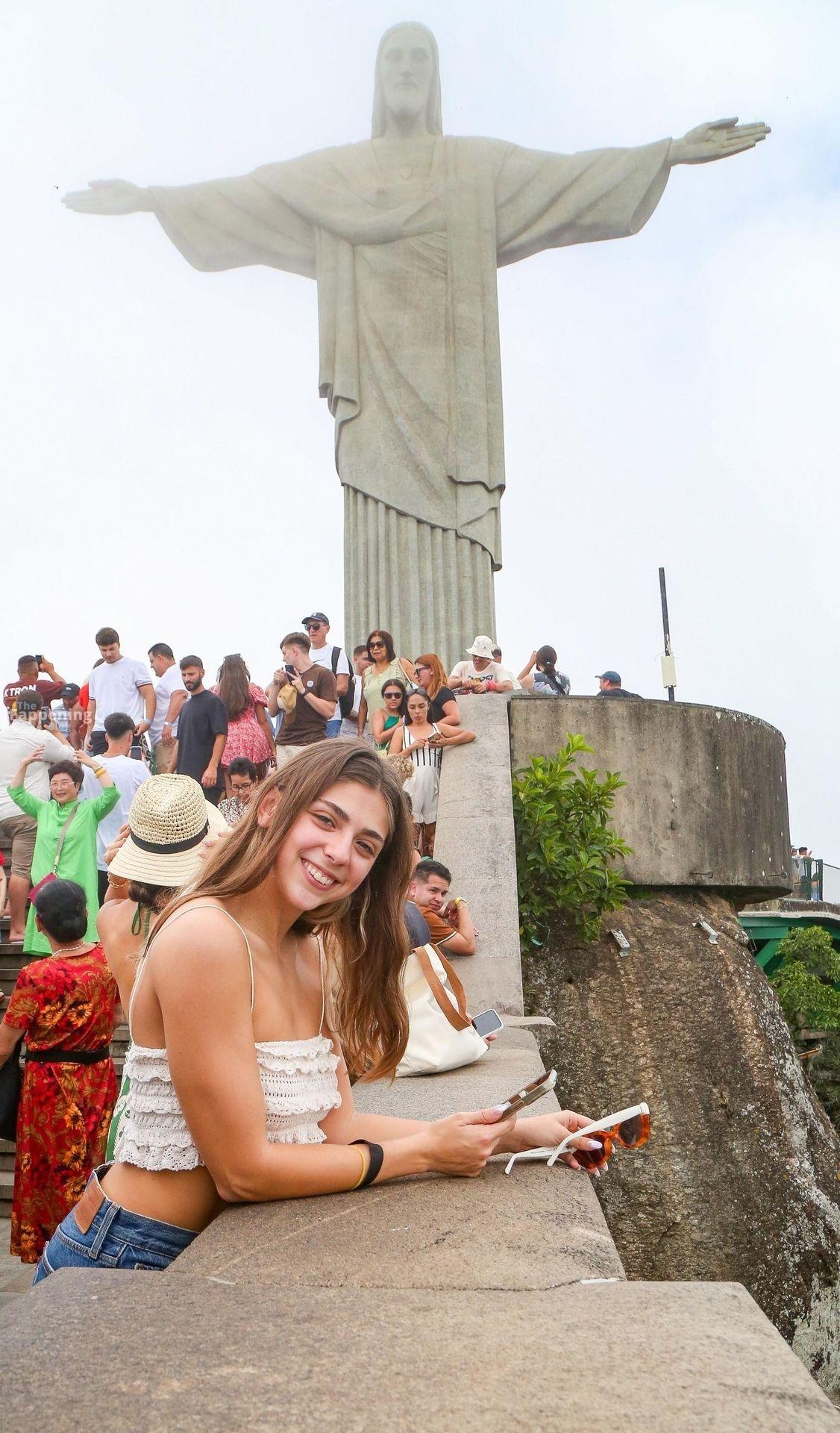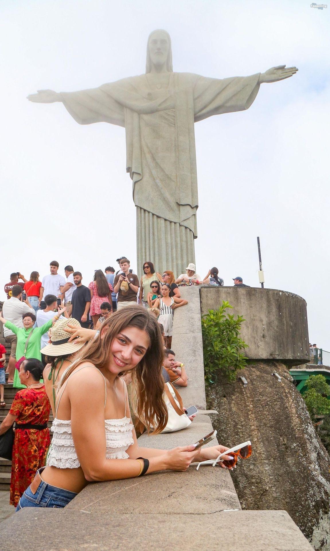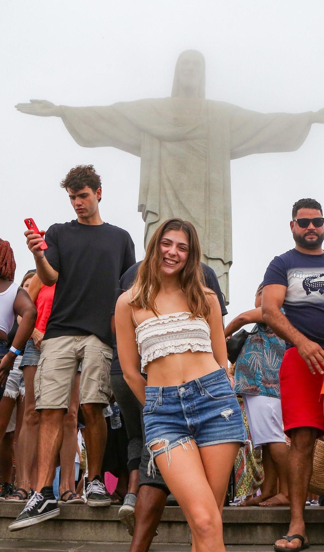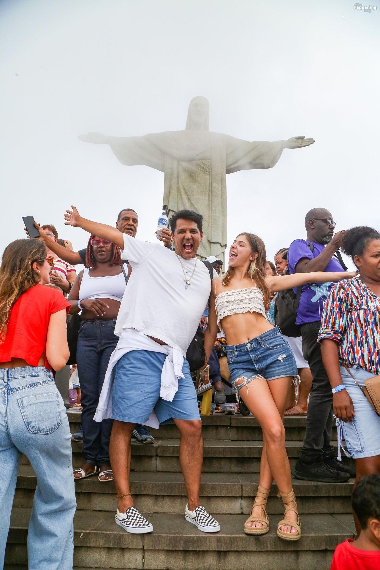 Spanish actress Carmen Arrufat shows off her sexy legs as she poses with a friend as they visit the famous Christ The Redeemer statue in Rio.