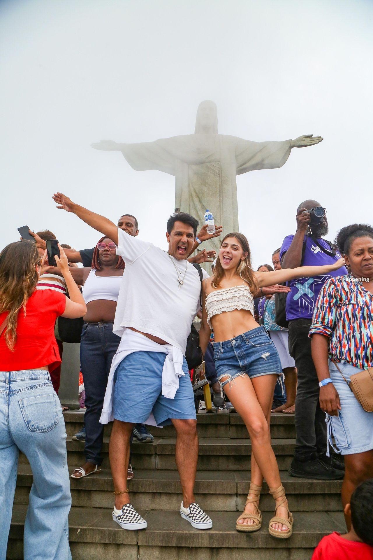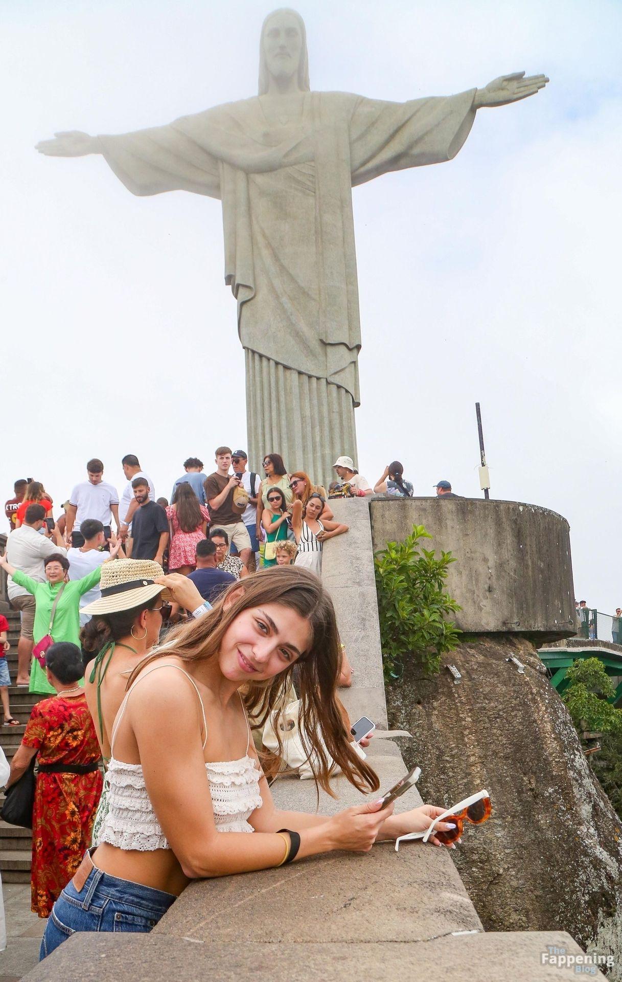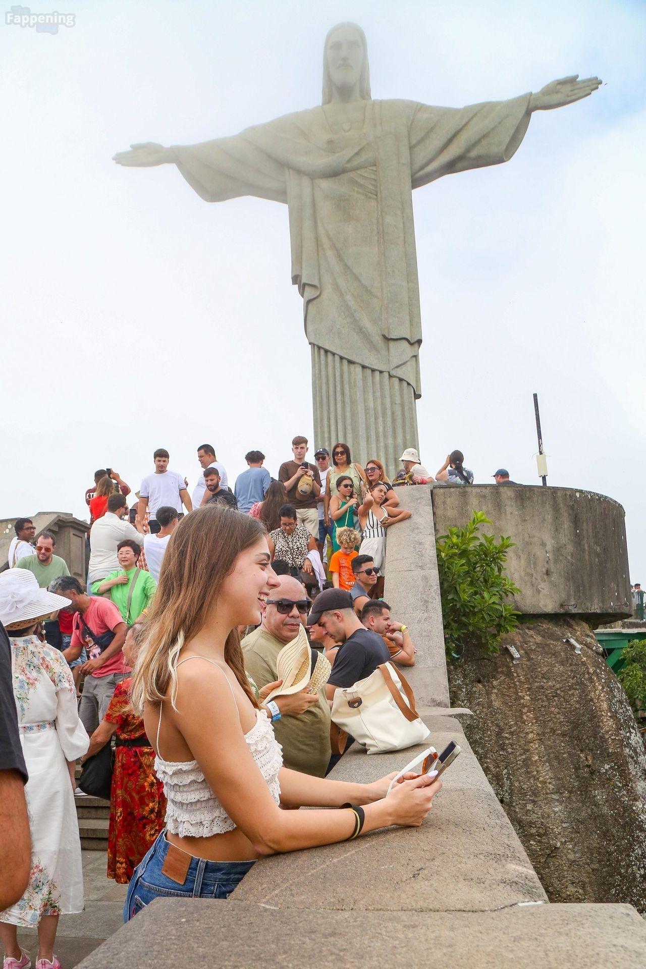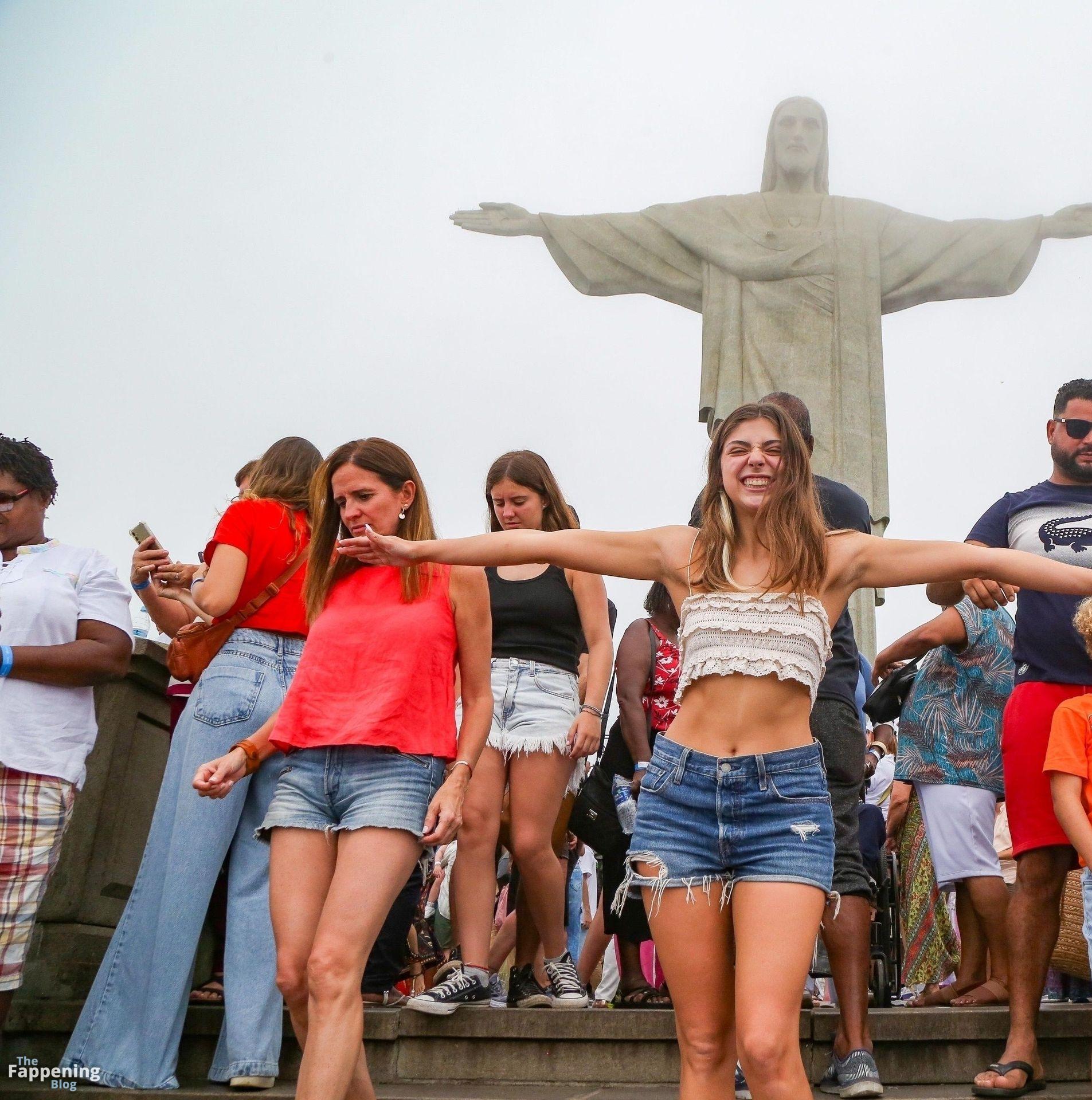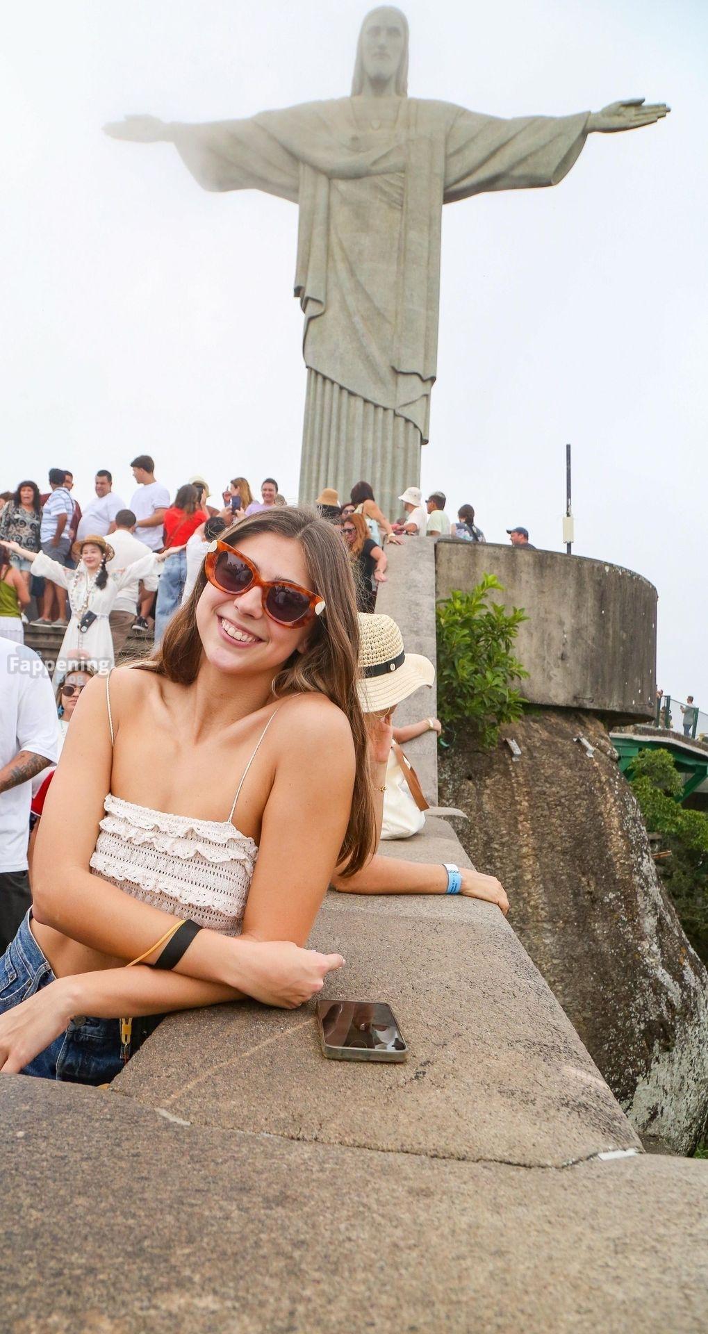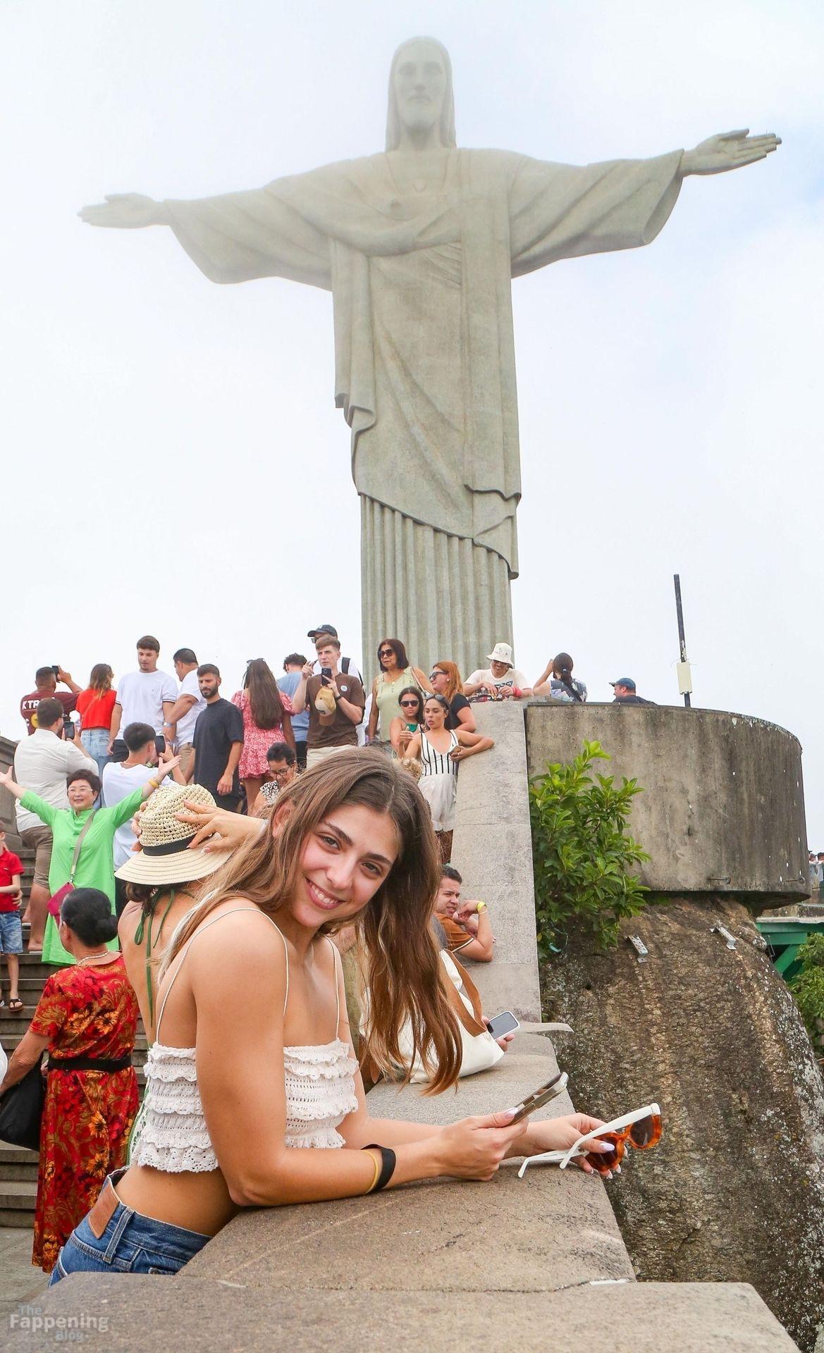 Spanish actress Carmen Arrufat shows off her sexy legs as she poses with a friend as they visit the famous Christ The Redeemer statue in Rio.