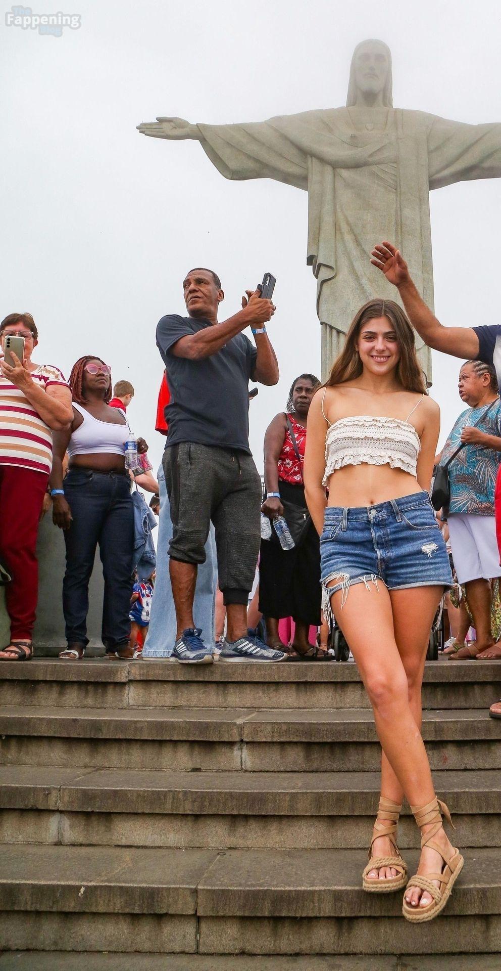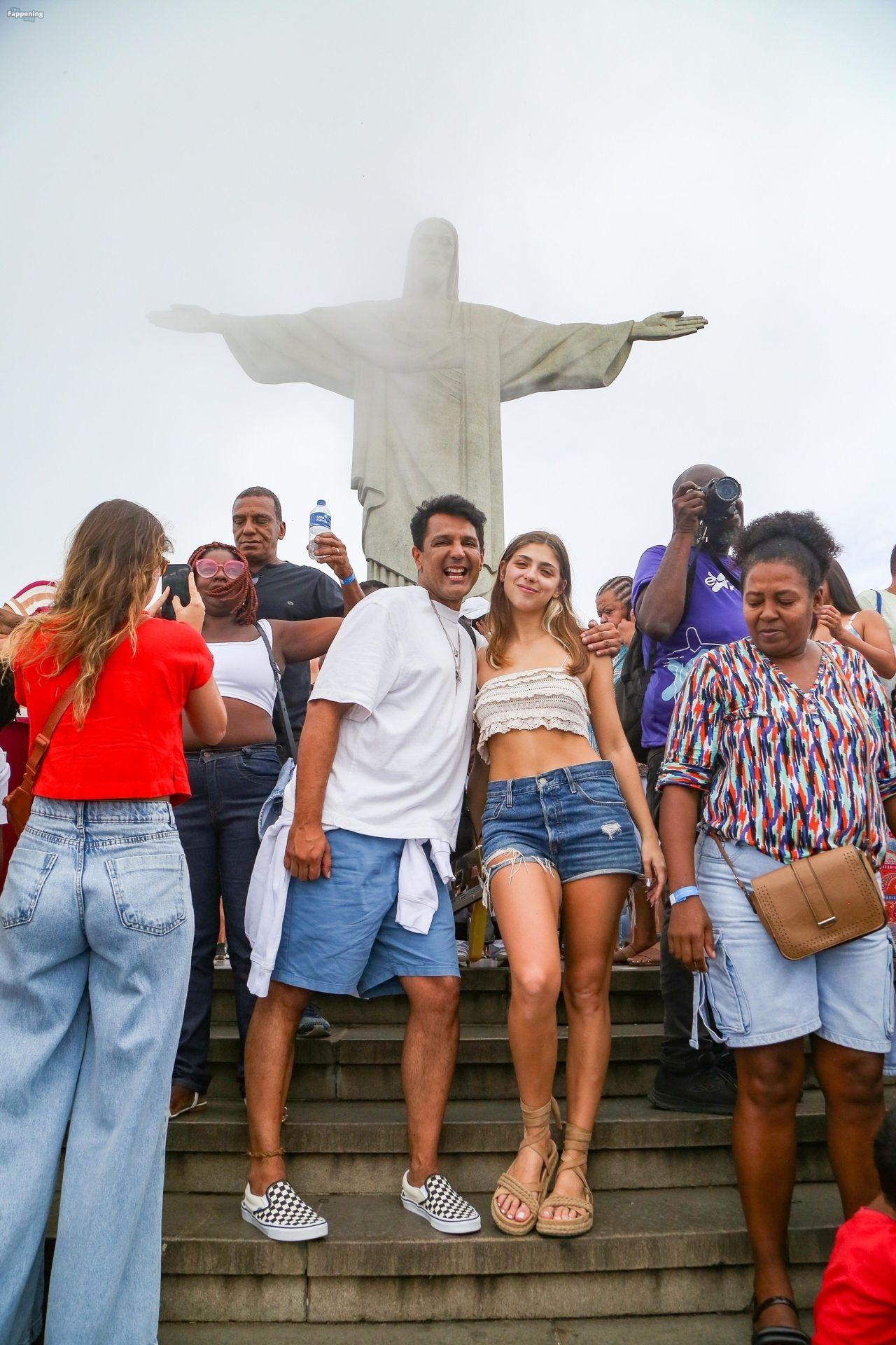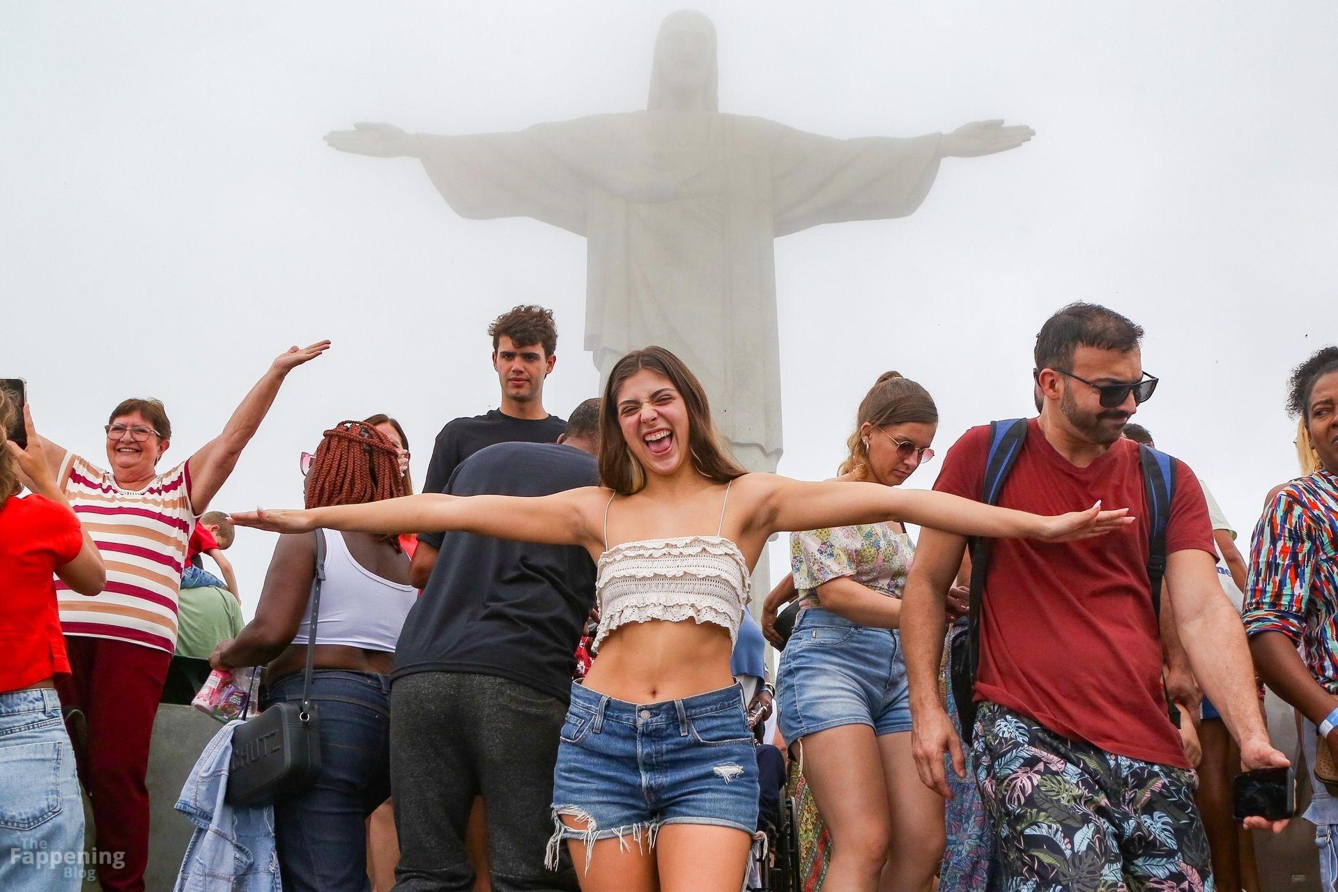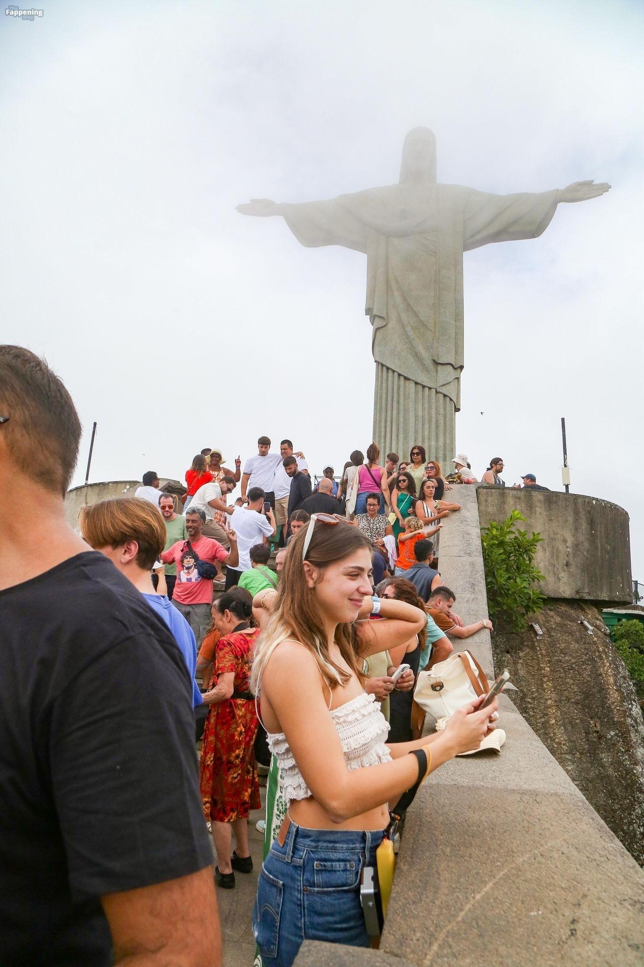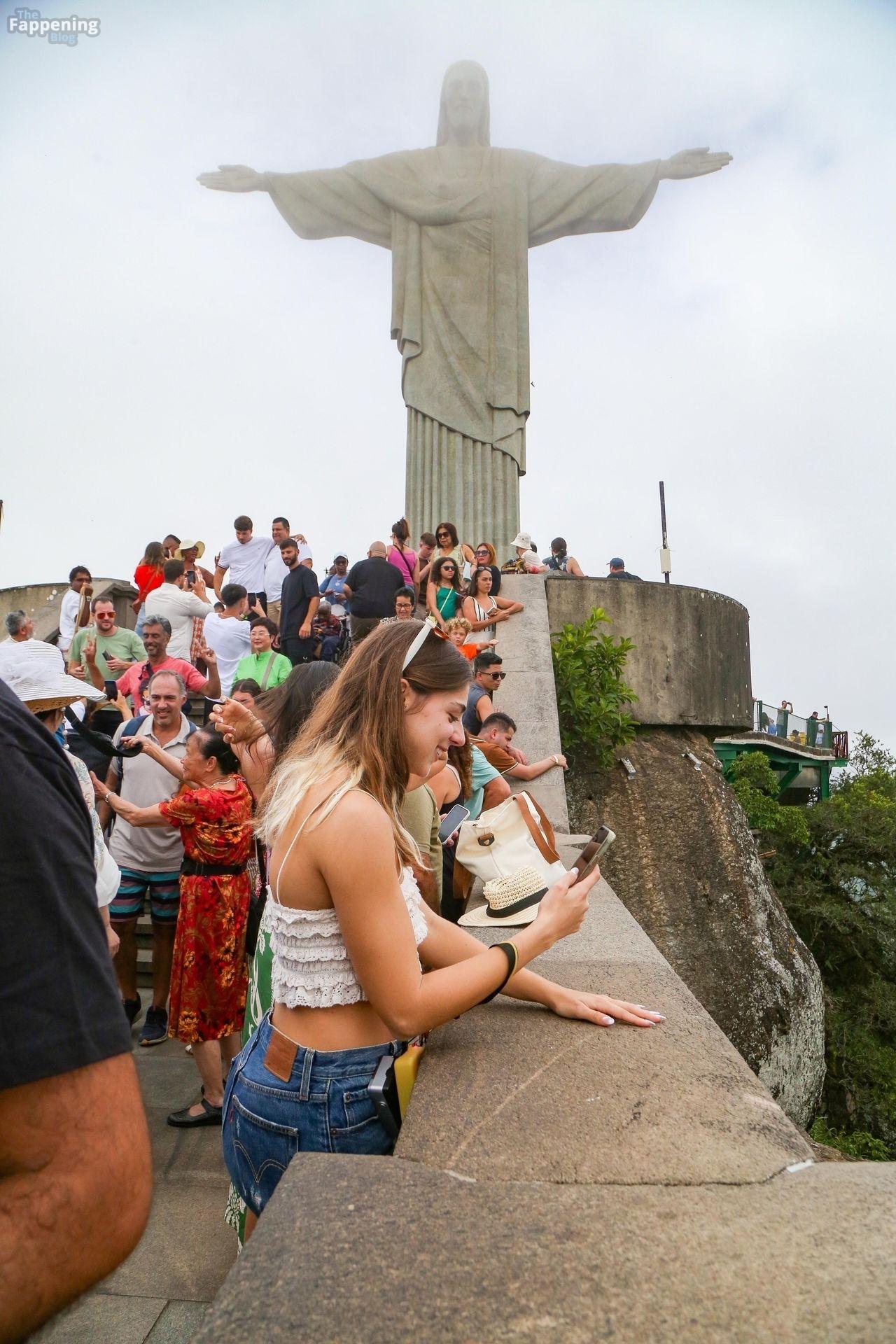 Spanish actress Carmen Arrufat shows off her sexy legs as she poses with a friend as they visit the famous Christ The Redeemer statue in Rio.