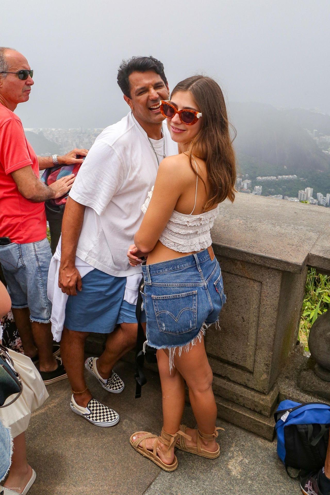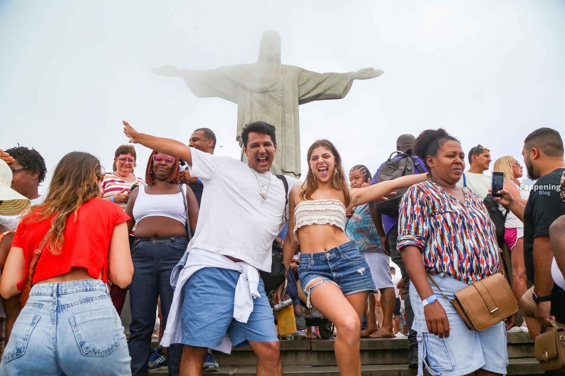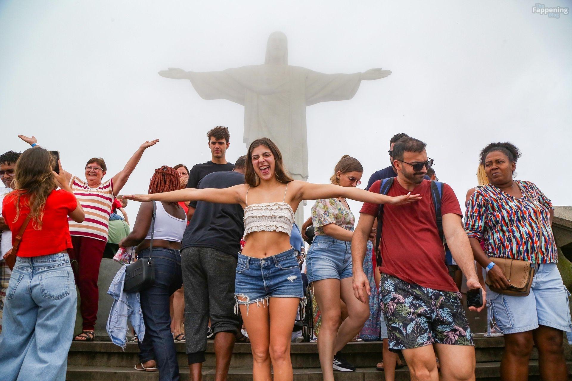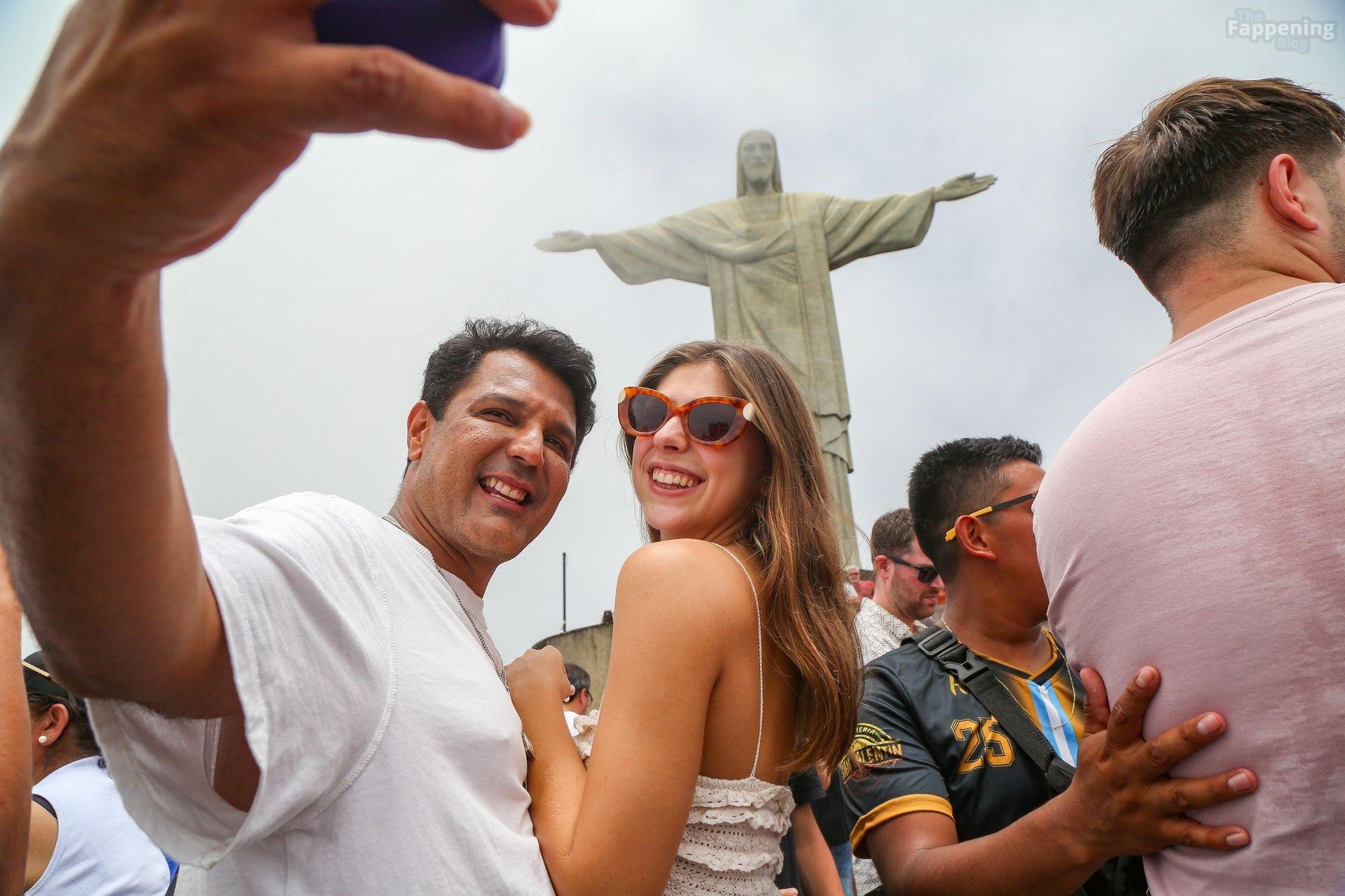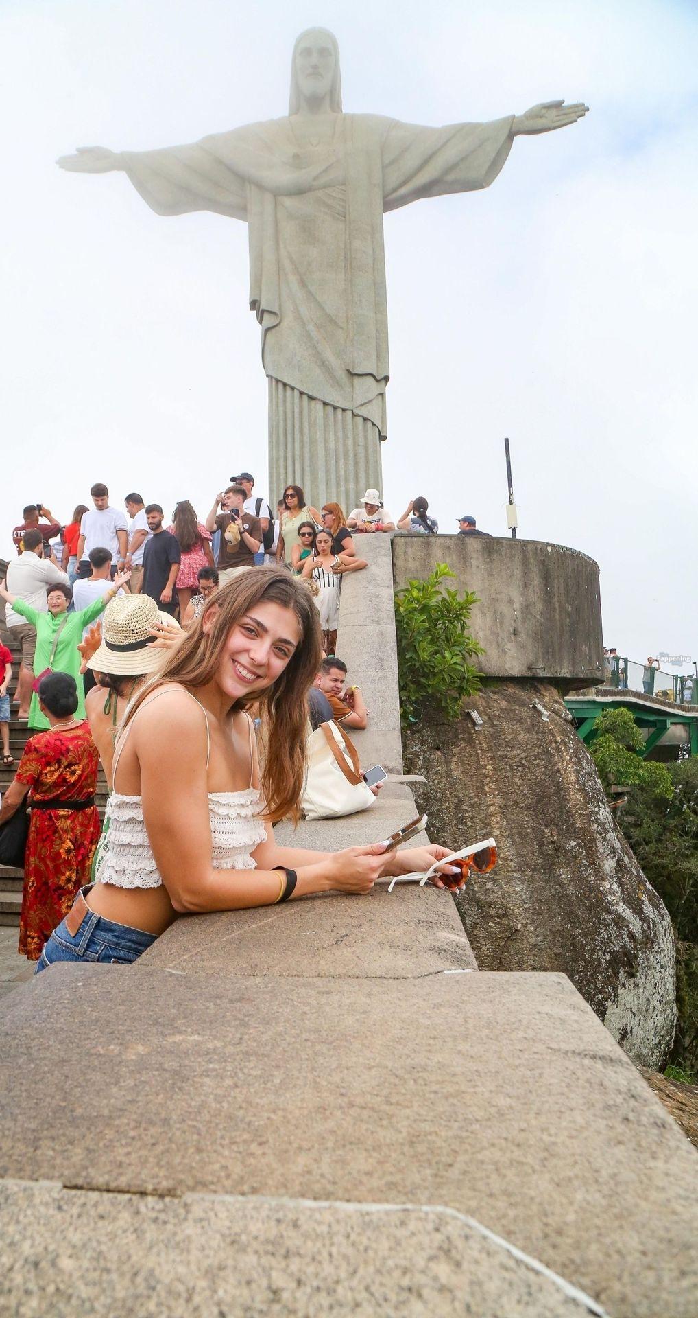 Spanish actress Carmen Arrufat shows off her sexy legs as she poses with a friend as they visit the famous Christ The Redeemer statue in Rio.