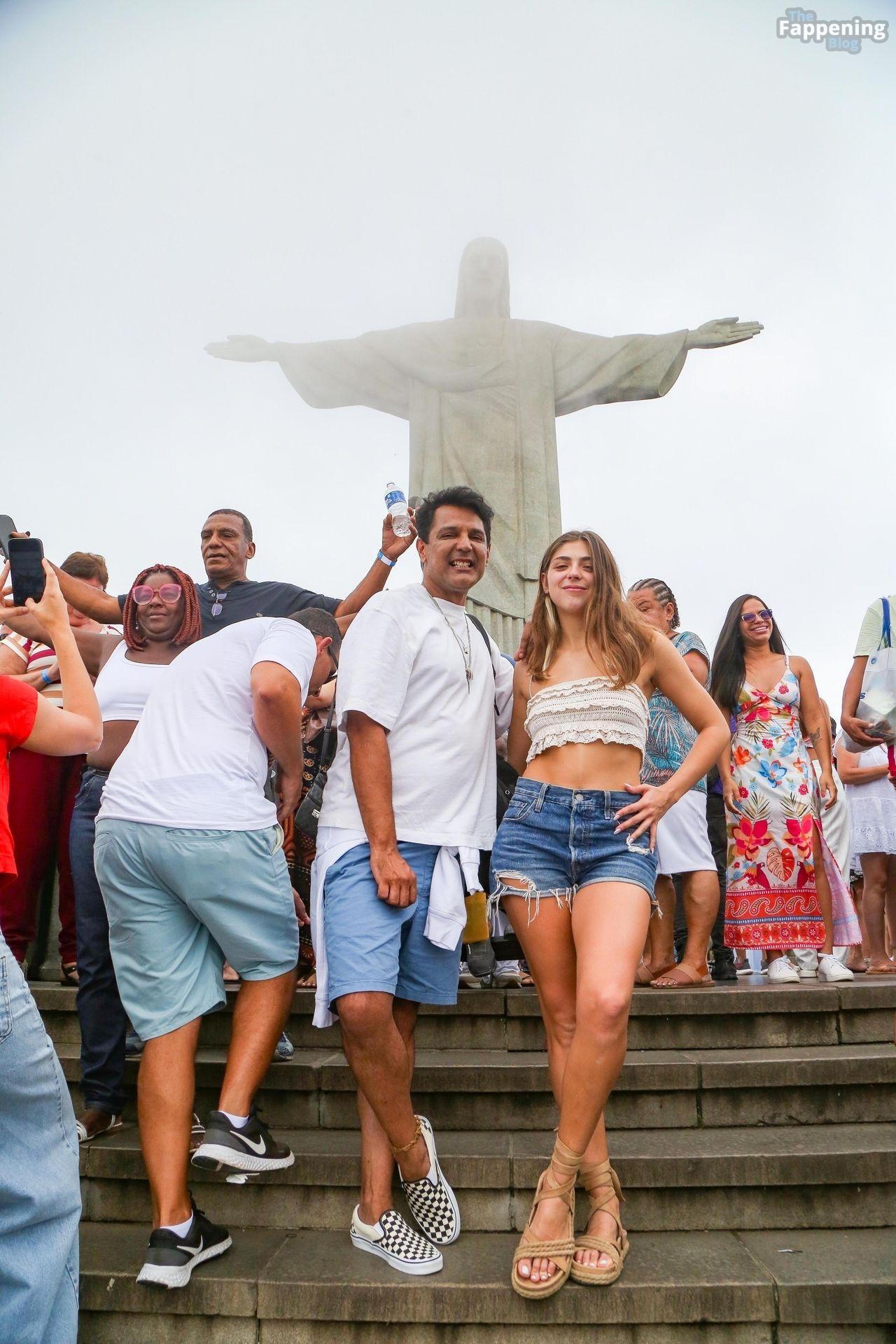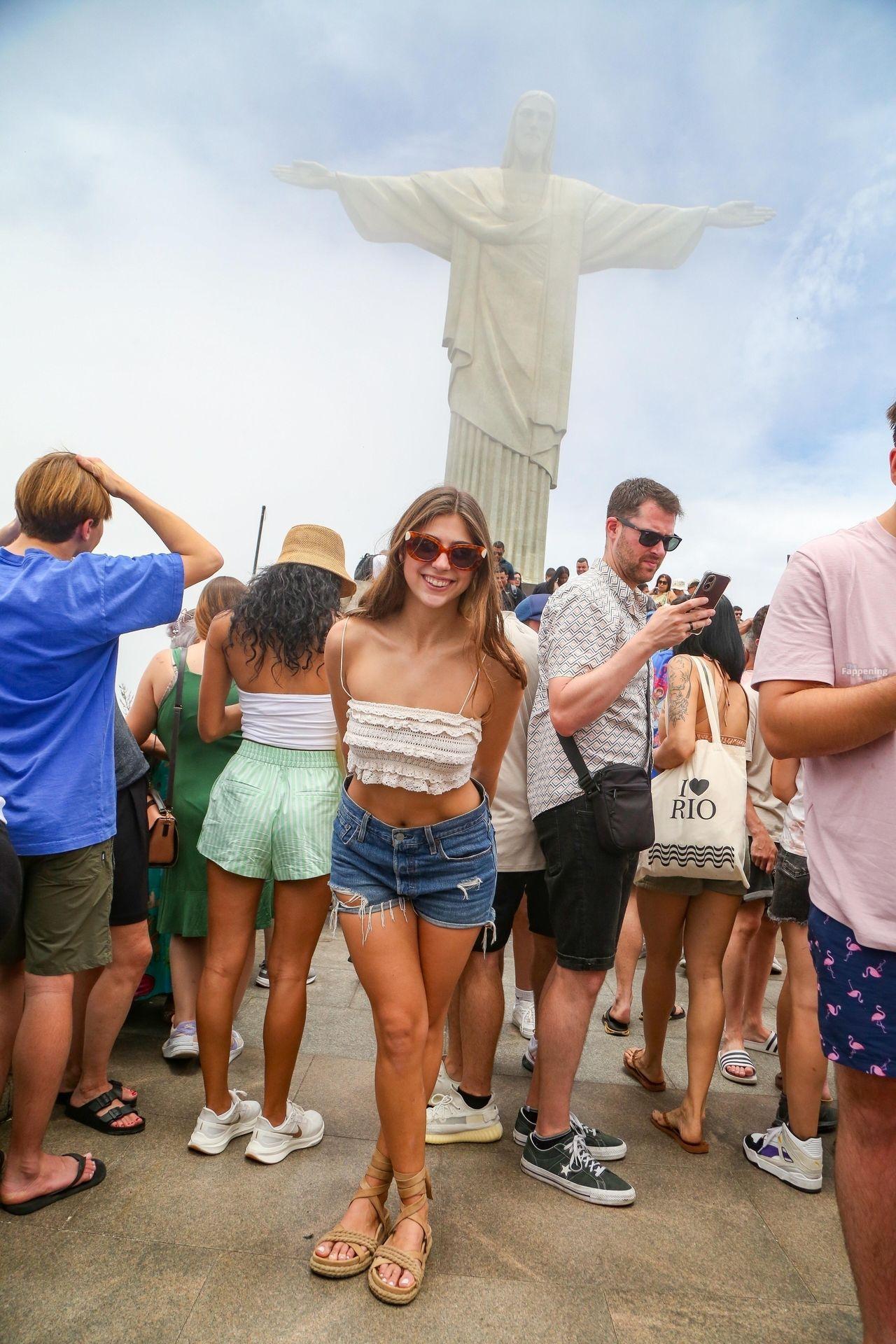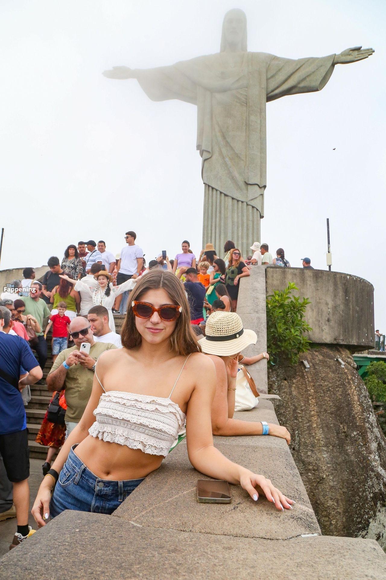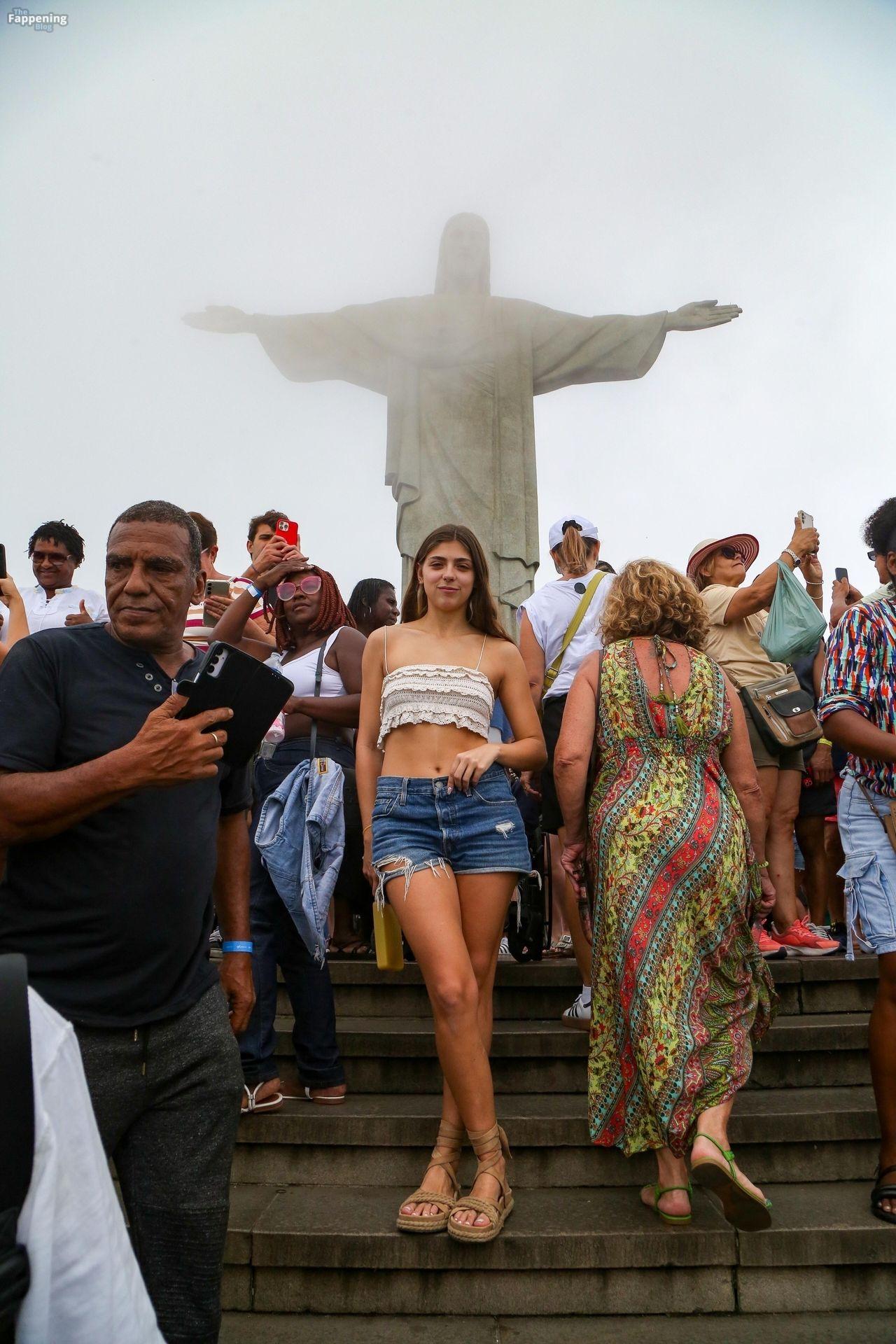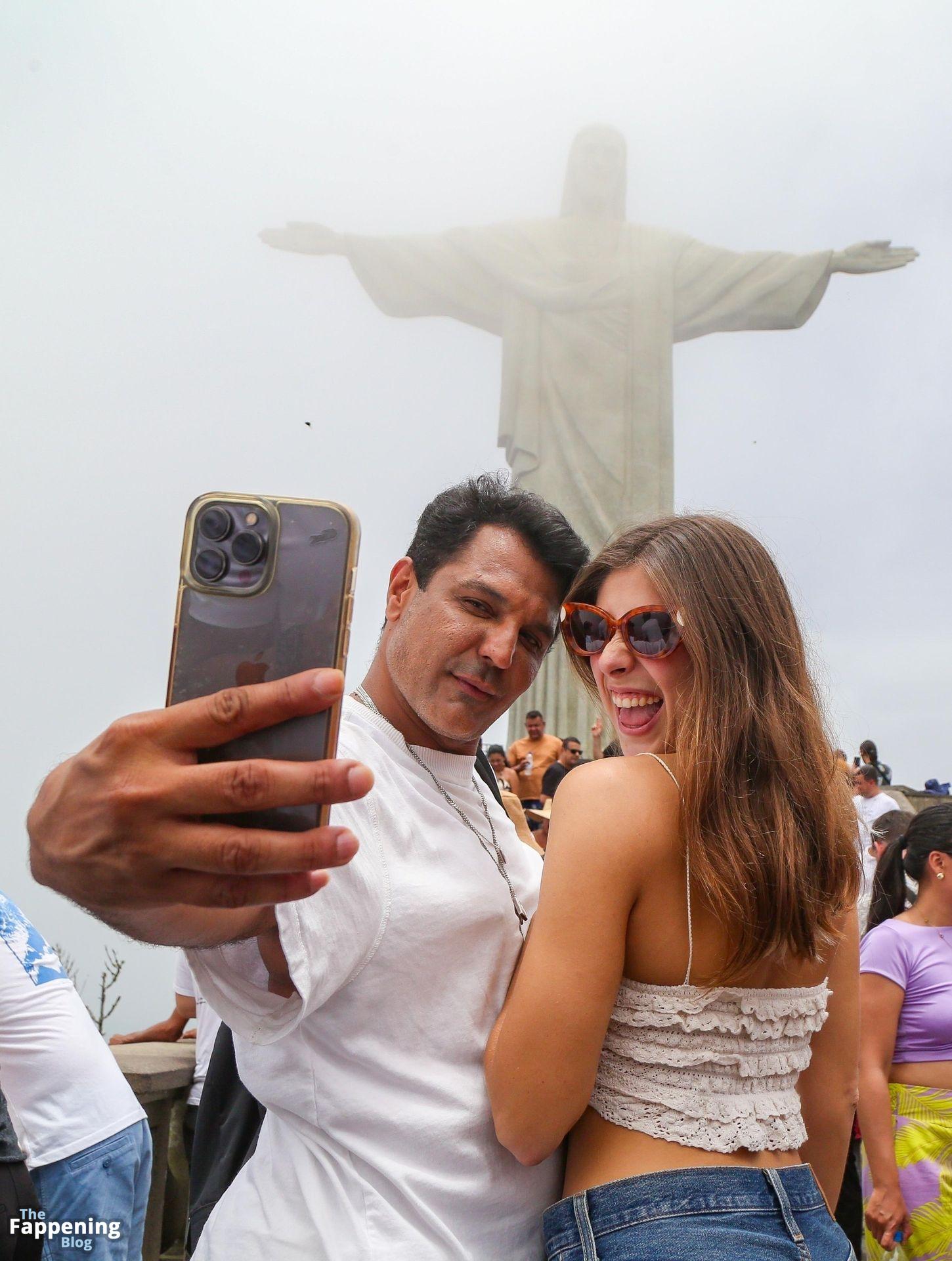 Spanish actress Carmen Arrufat shows off her sexy legs as she poses with a friend as they visit the famous Christ The Redeemer statue in Rio.