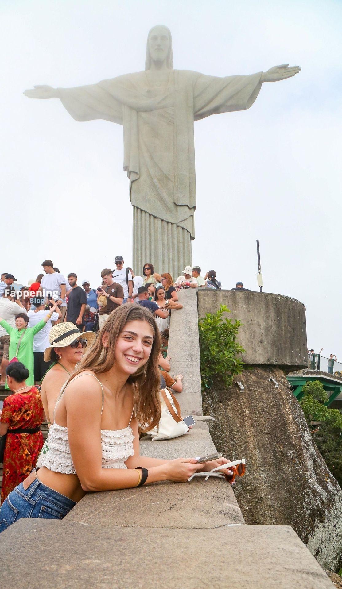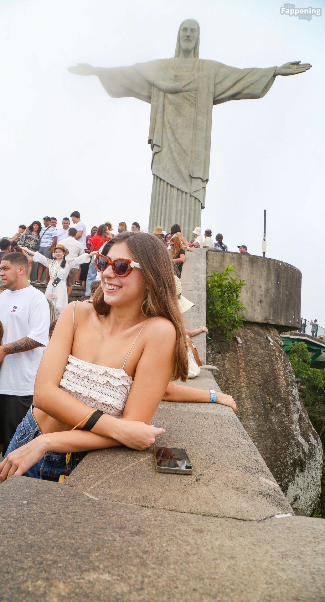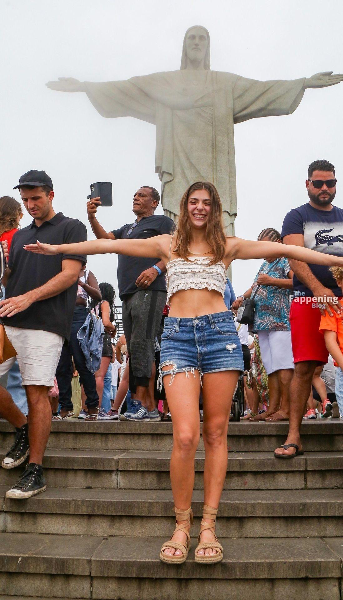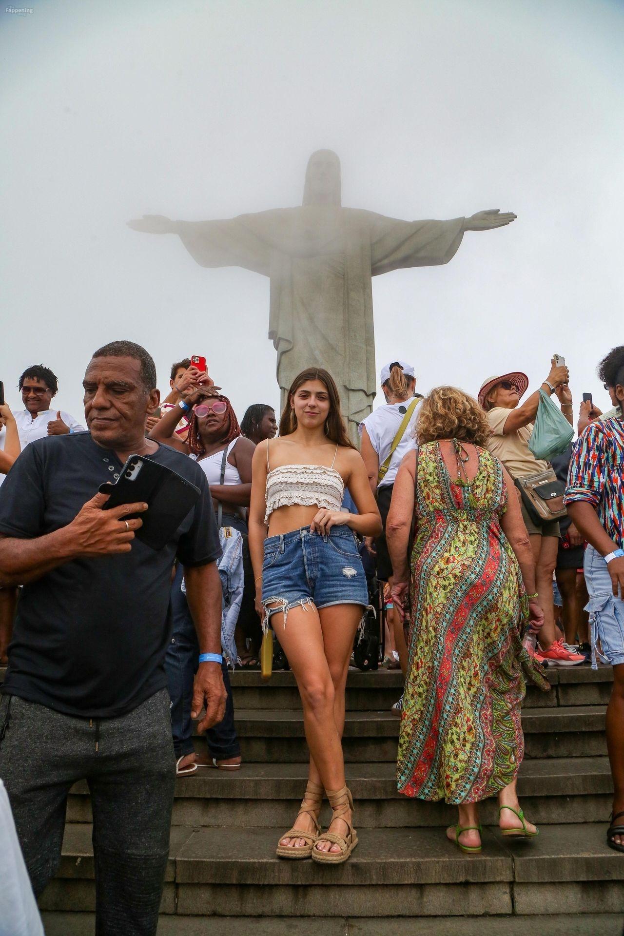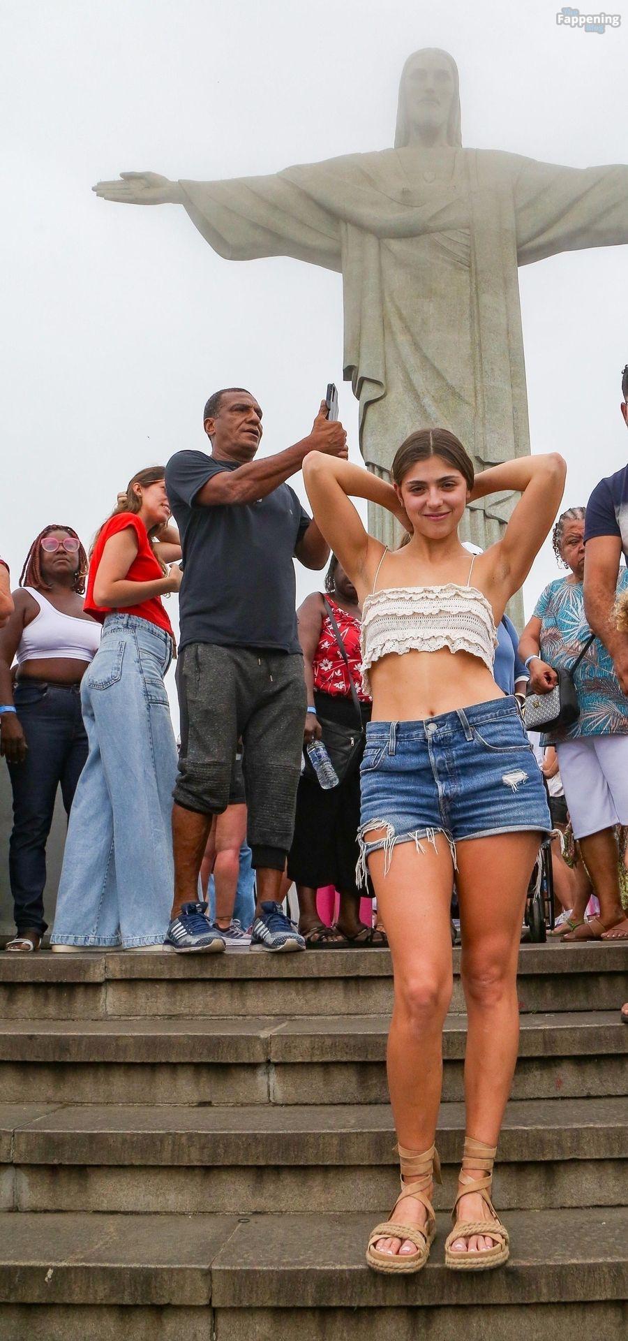 Spanish actress Carmen Arrufat shows off her sexy legs as she poses with a friend as they visit the famous Christ The Redeemer statue in Rio.
