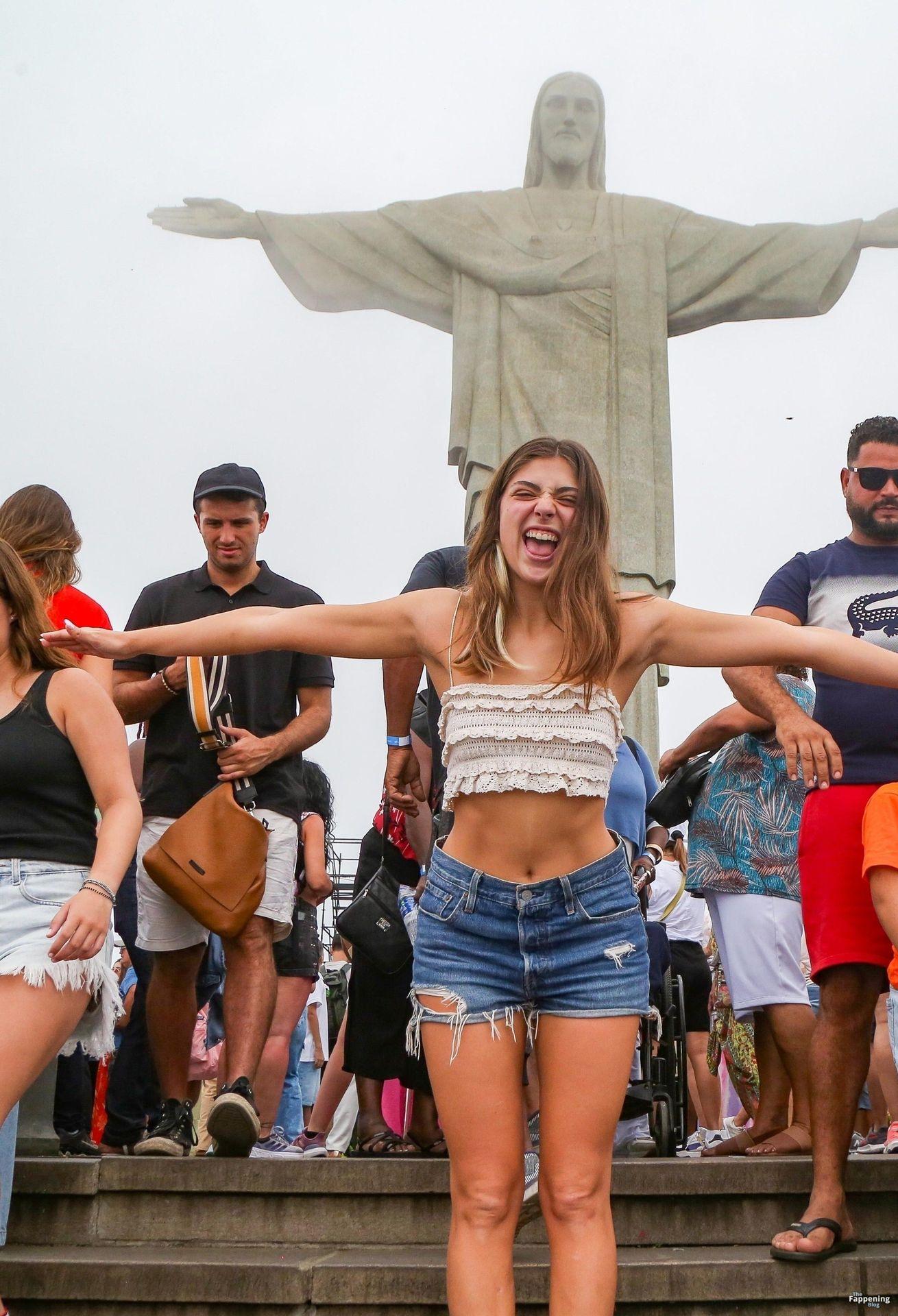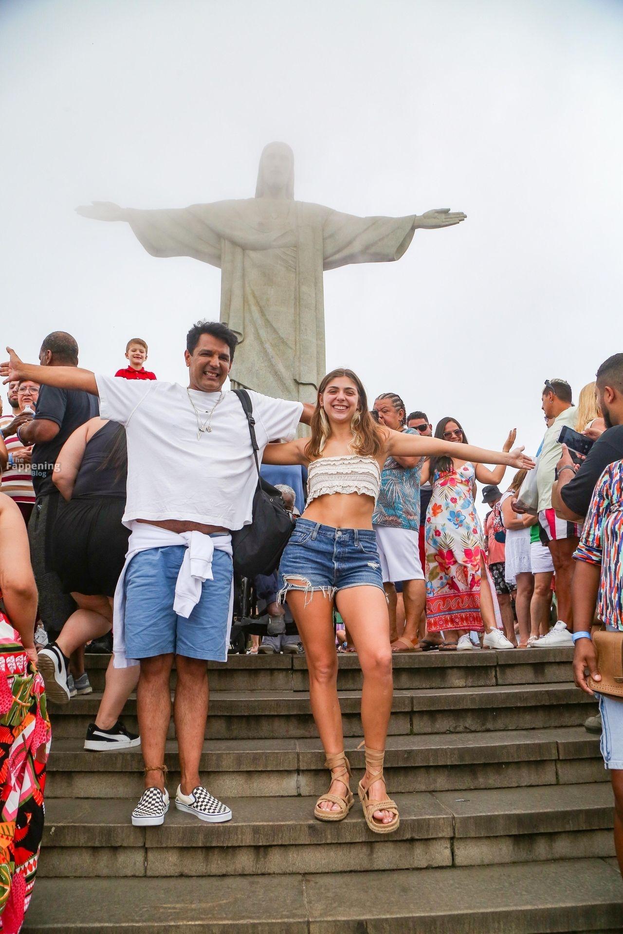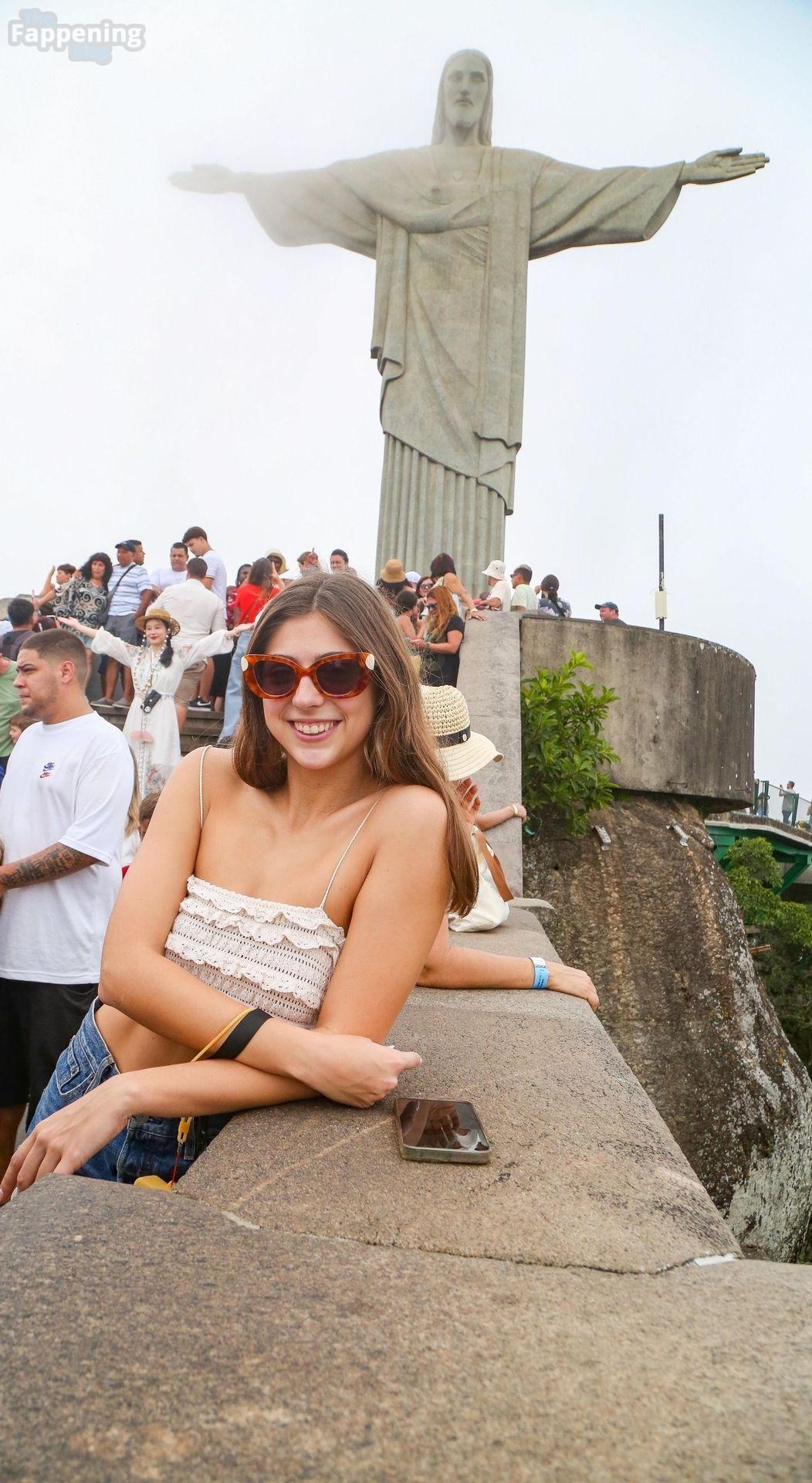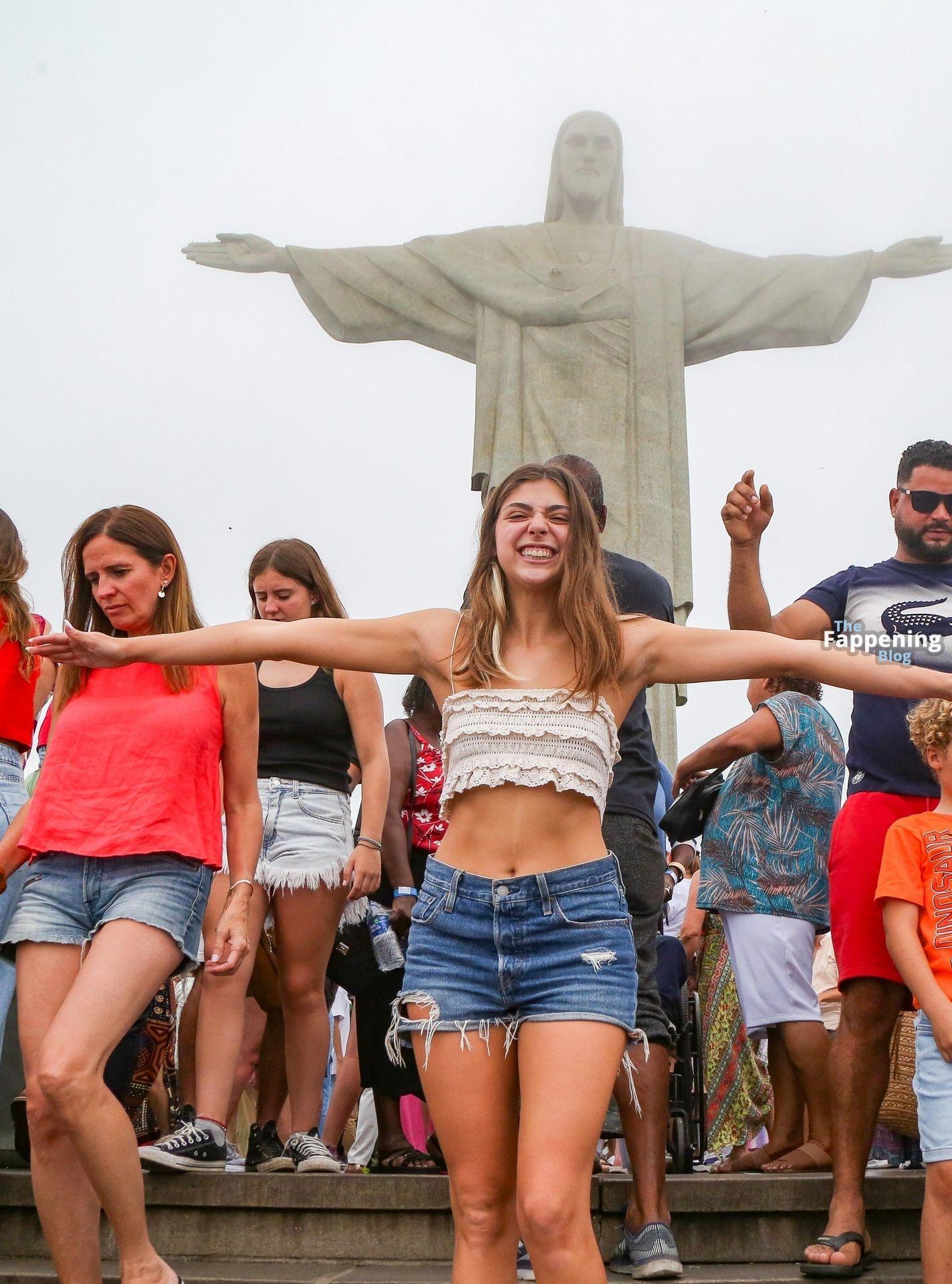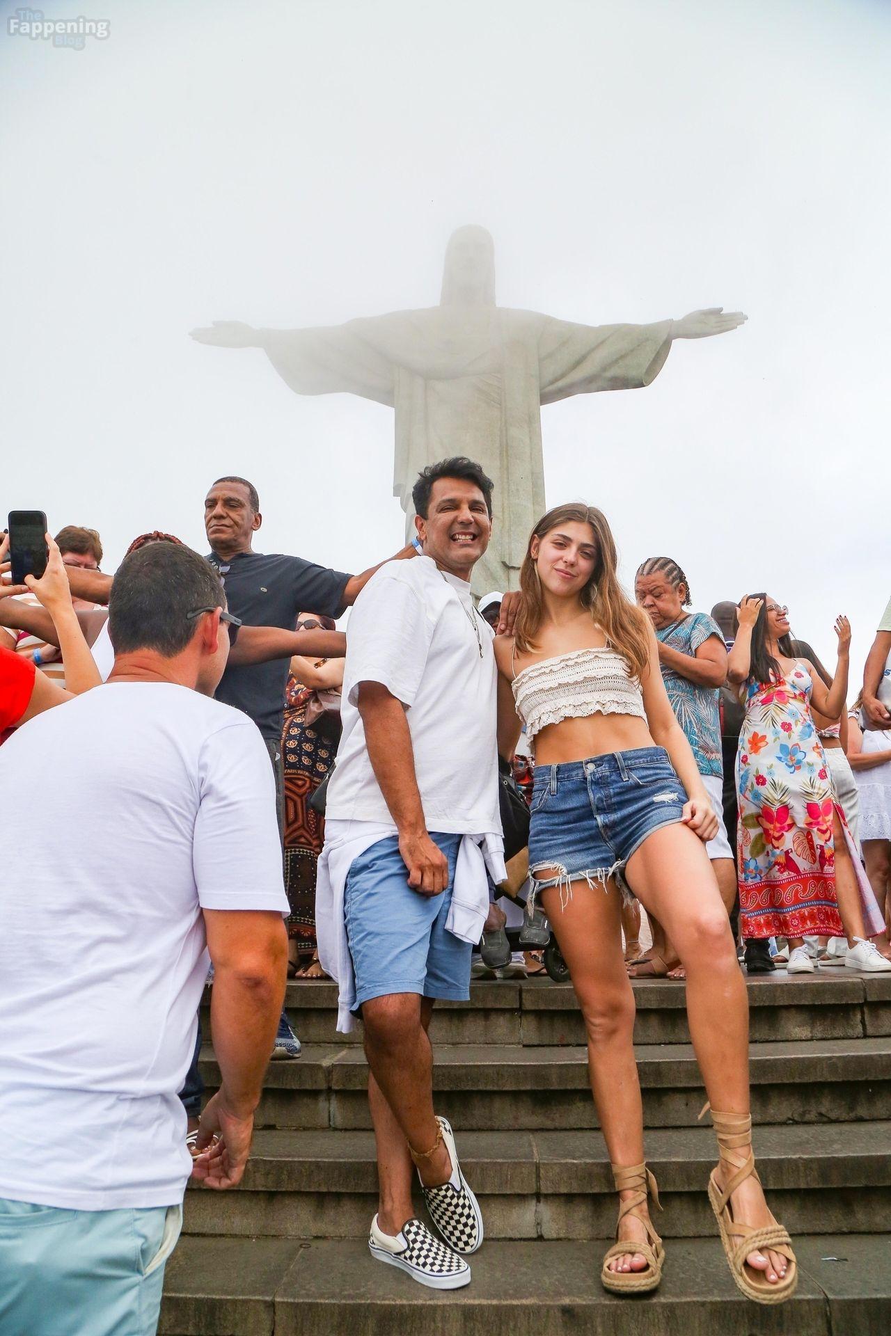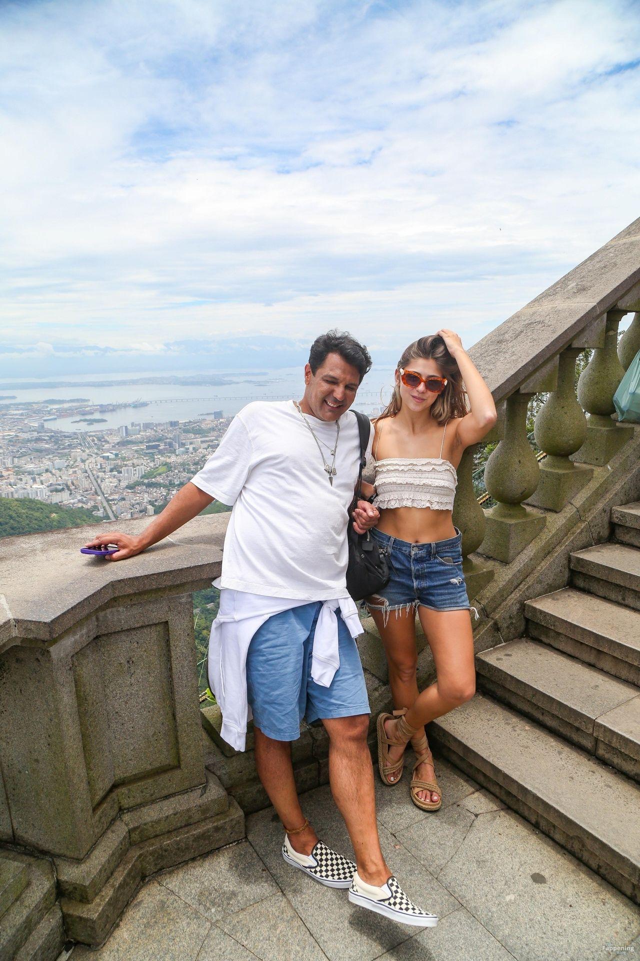 Spanish actress Carmen Arrufat shows off her sexy legs as she poses with a friend as they visit the famous Christ The Redeemer statue in Rio.
