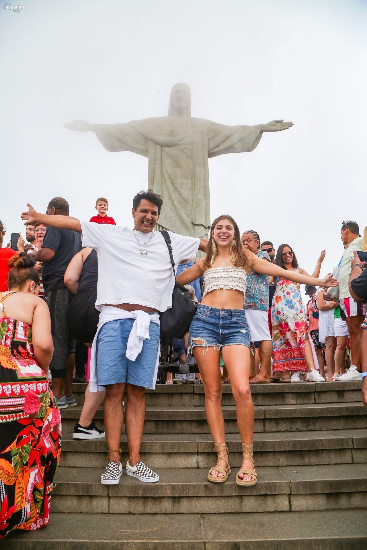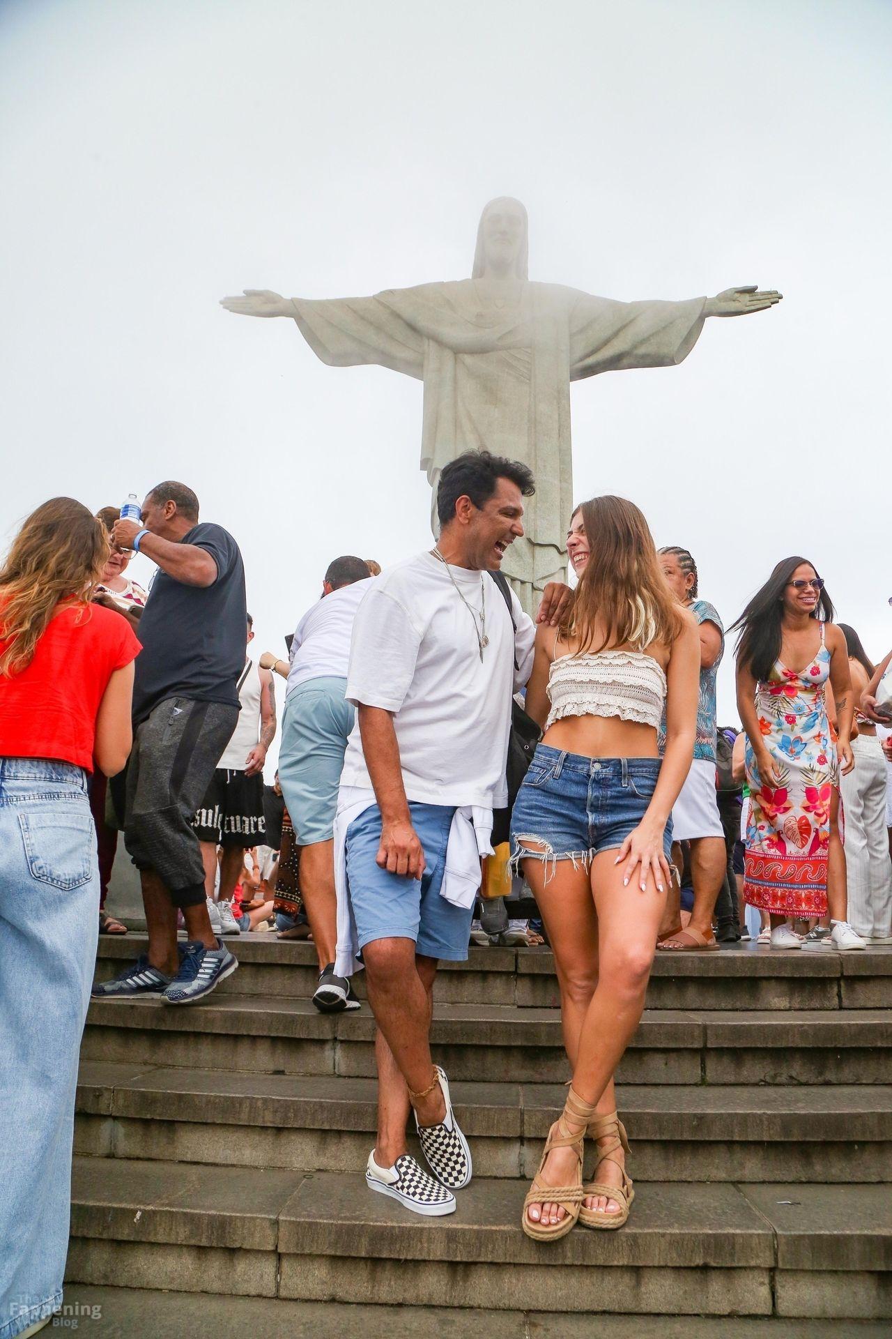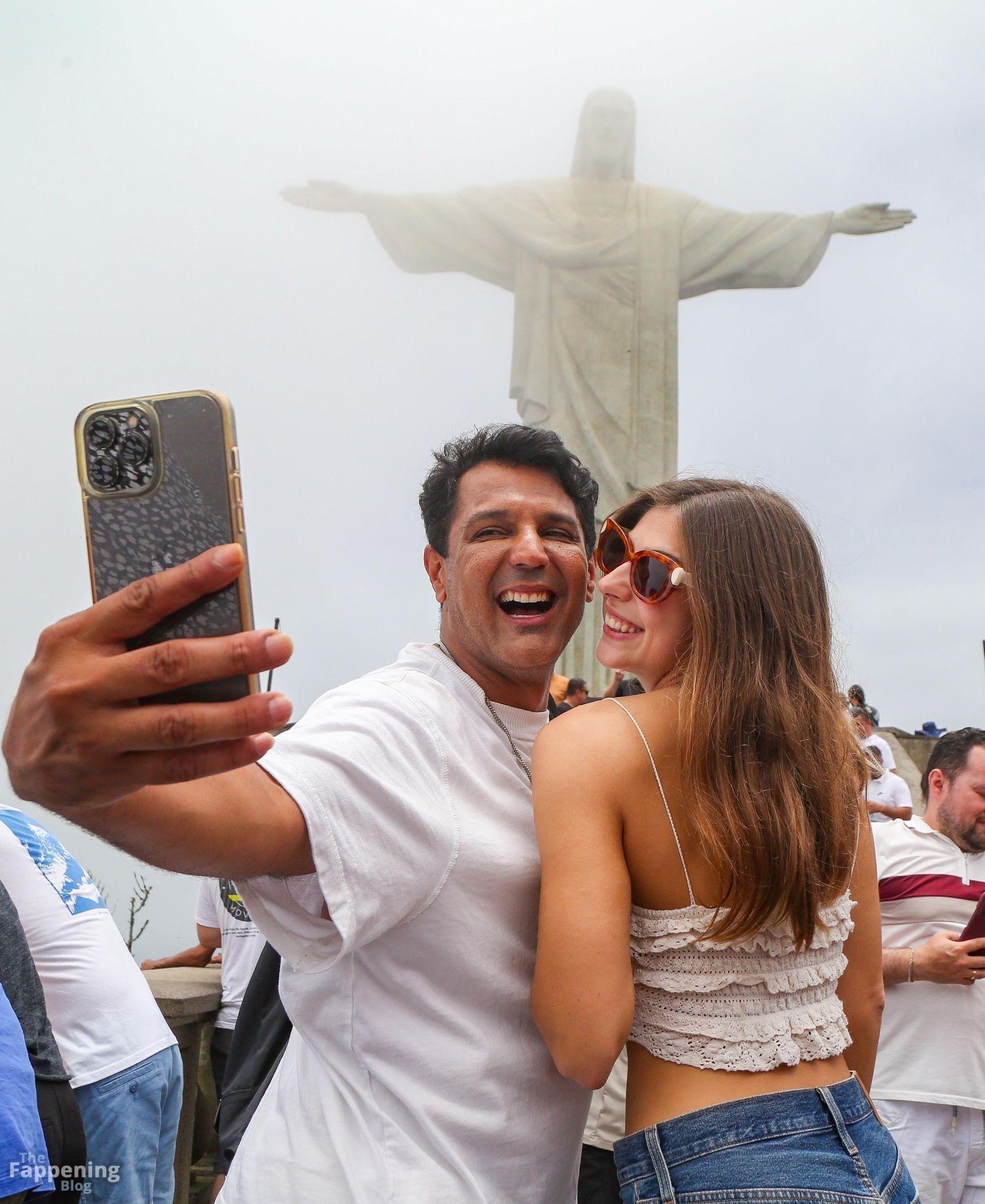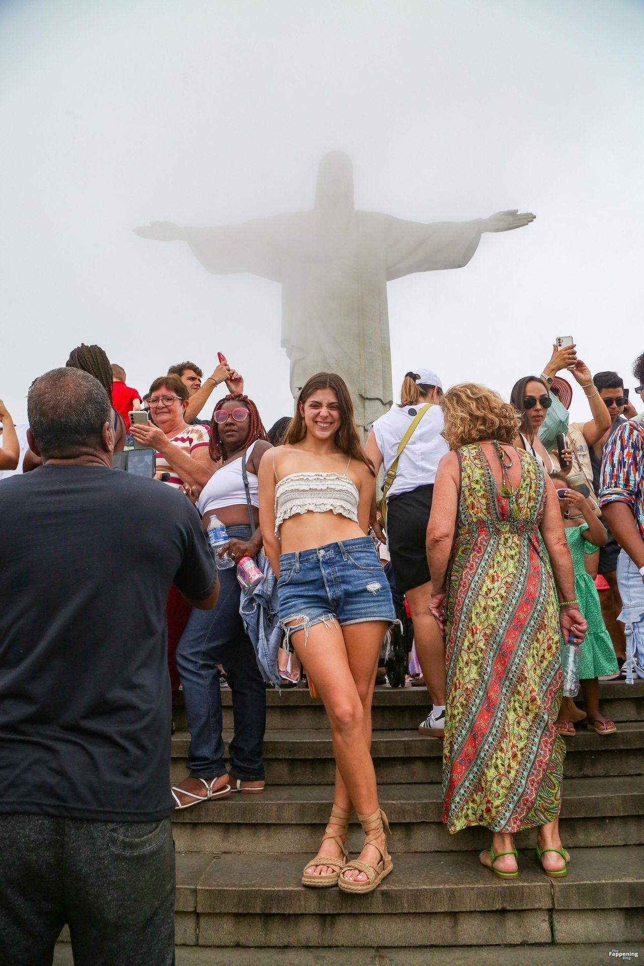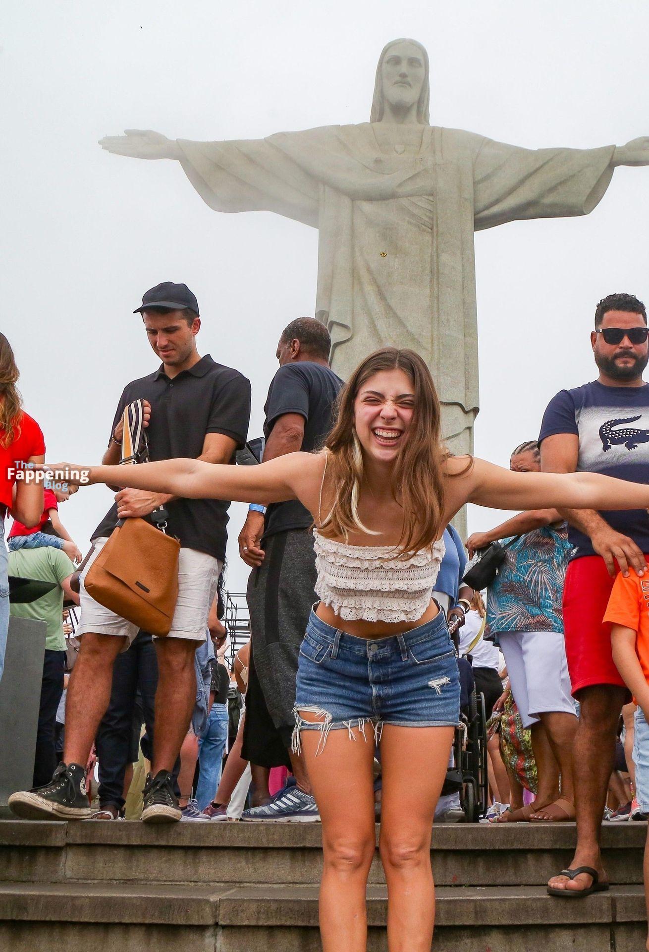 Spanish actress Carmen Arrufat shows off her sexy legs as she poses with a friend as they visit the famous Christ The Redeemer statue in Rio.