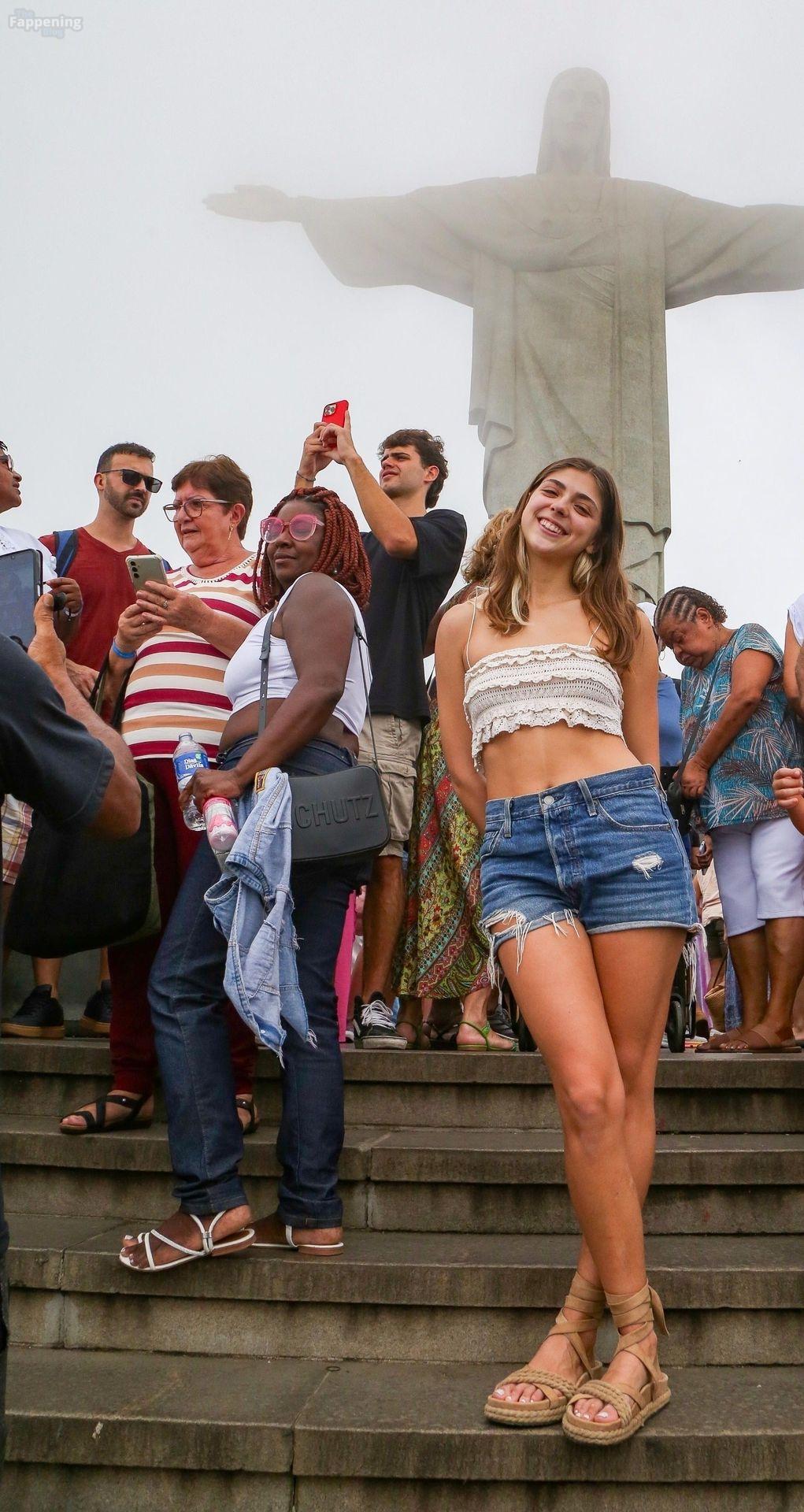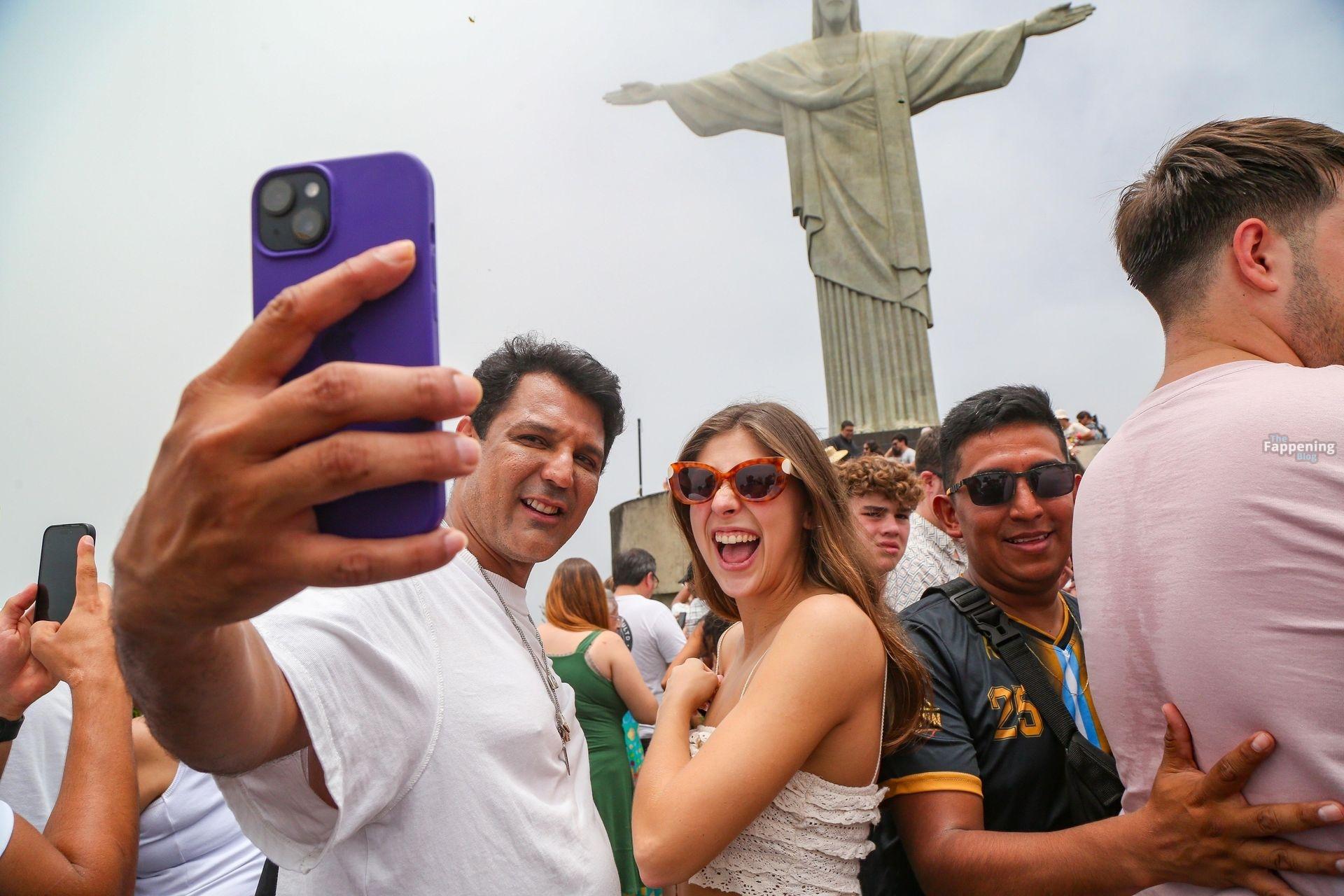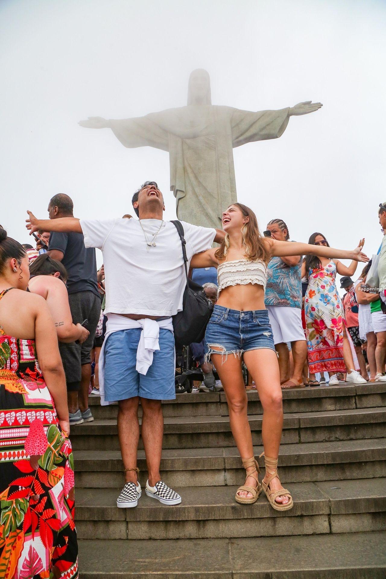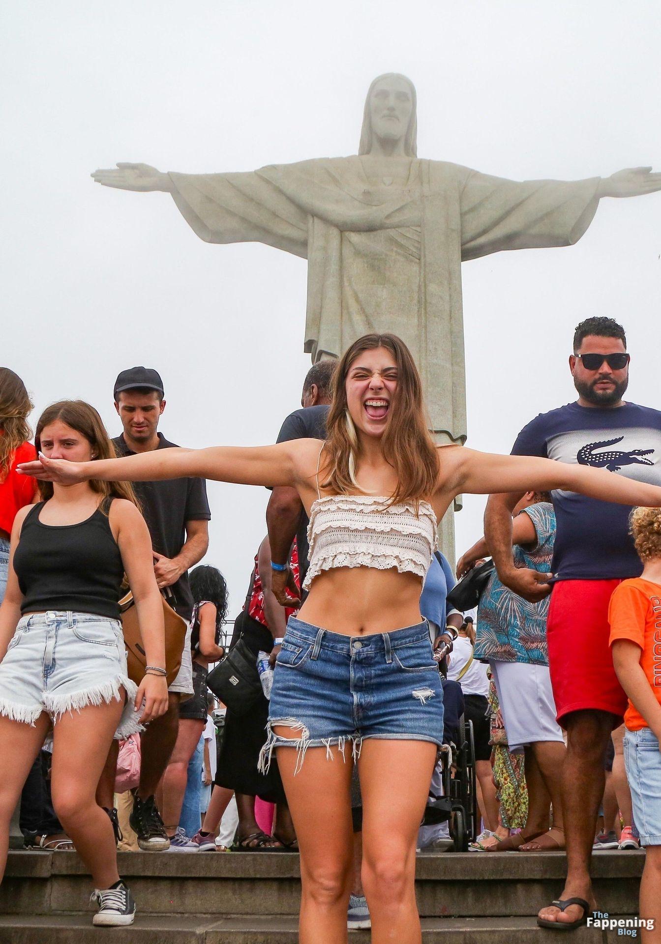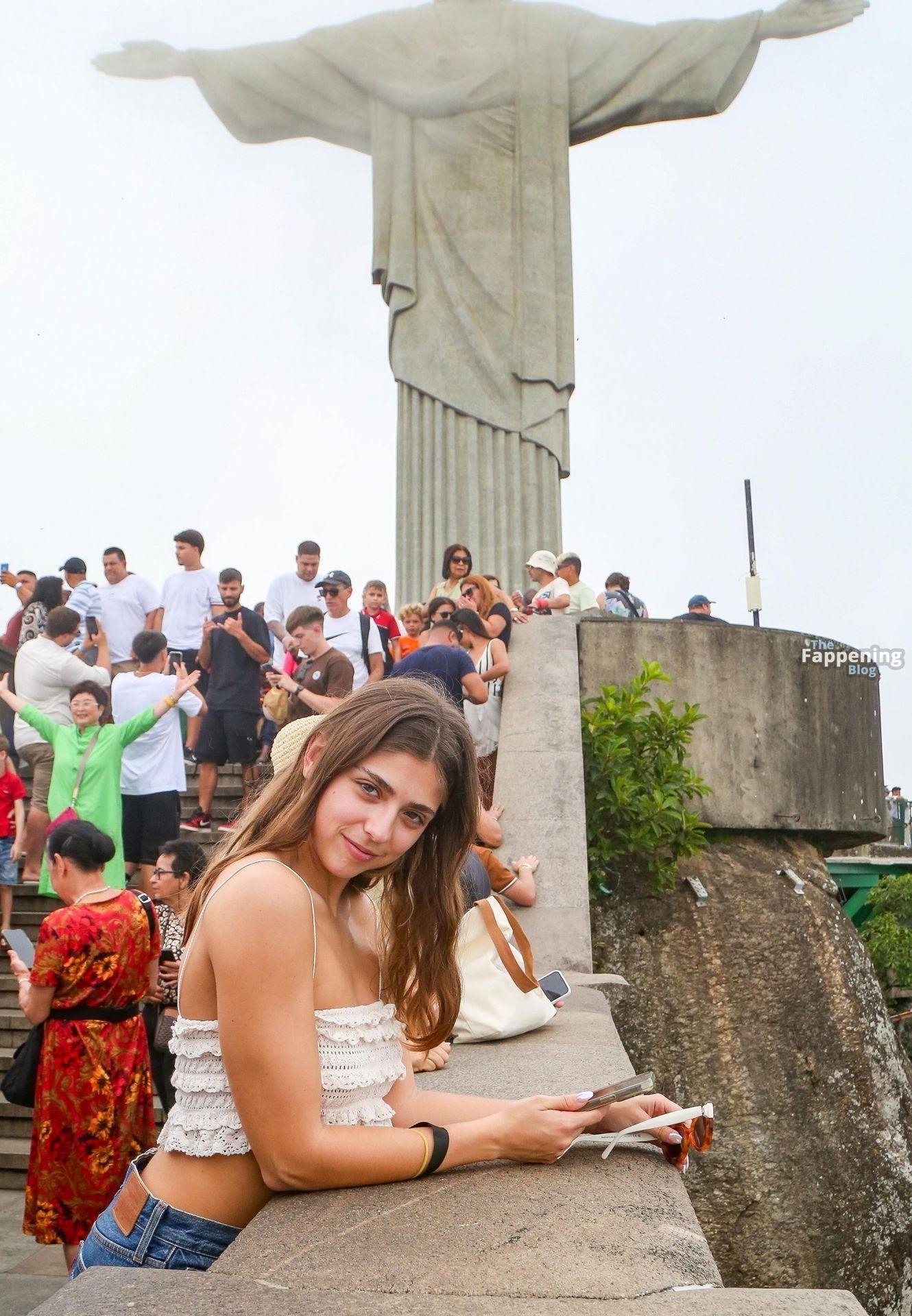 Spanish actress Carmen Arrufat shows off her sexy legs as she poses with a friend as they visit the famous Christ The Redeemer statue in Rio.