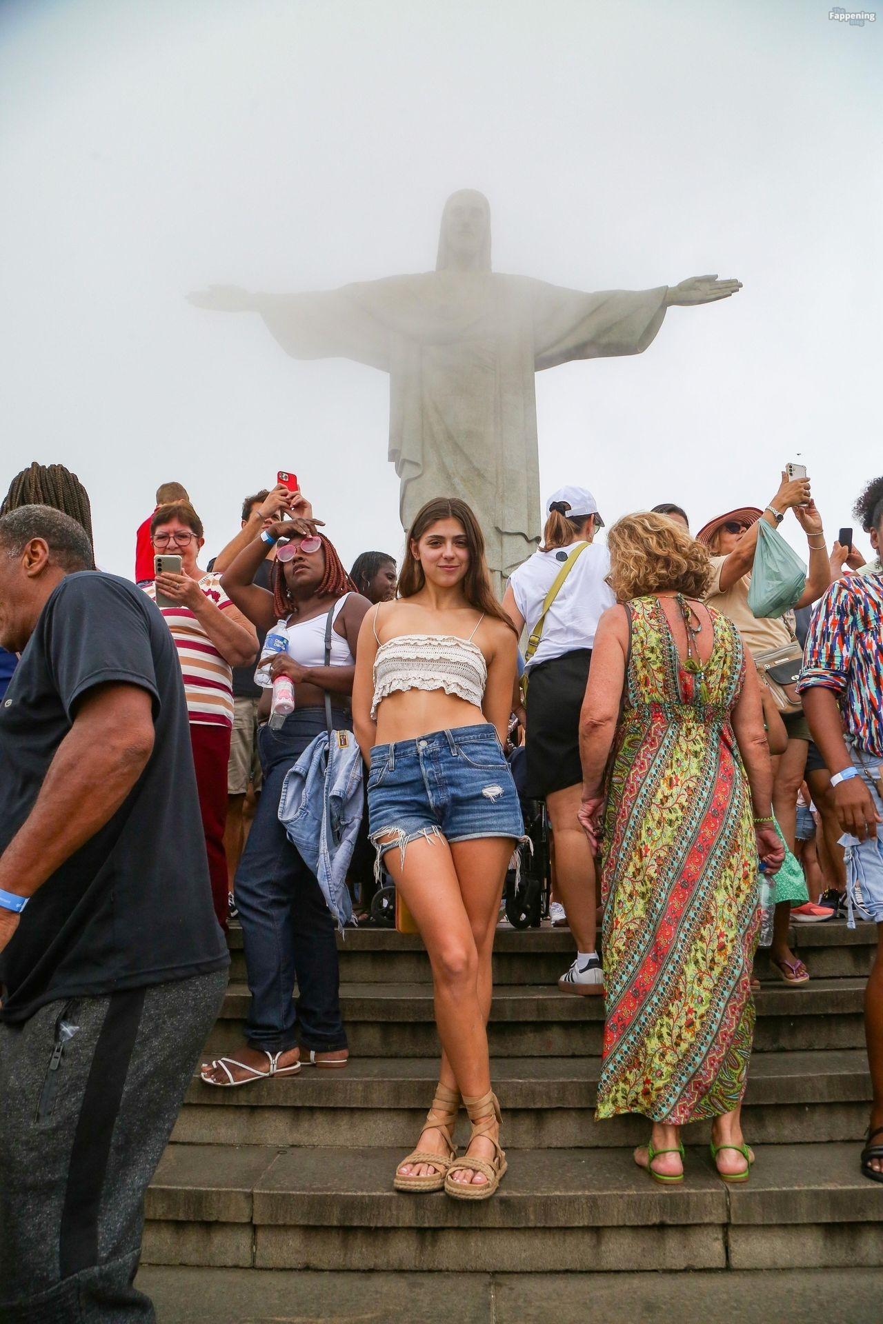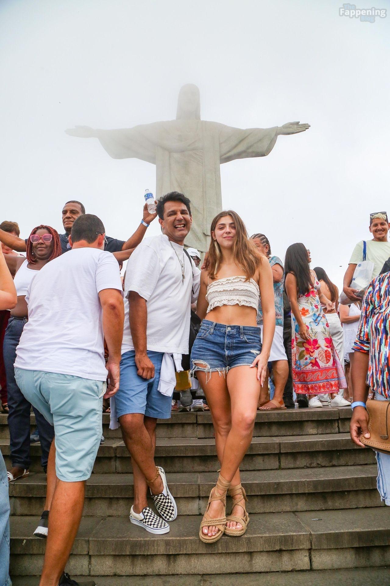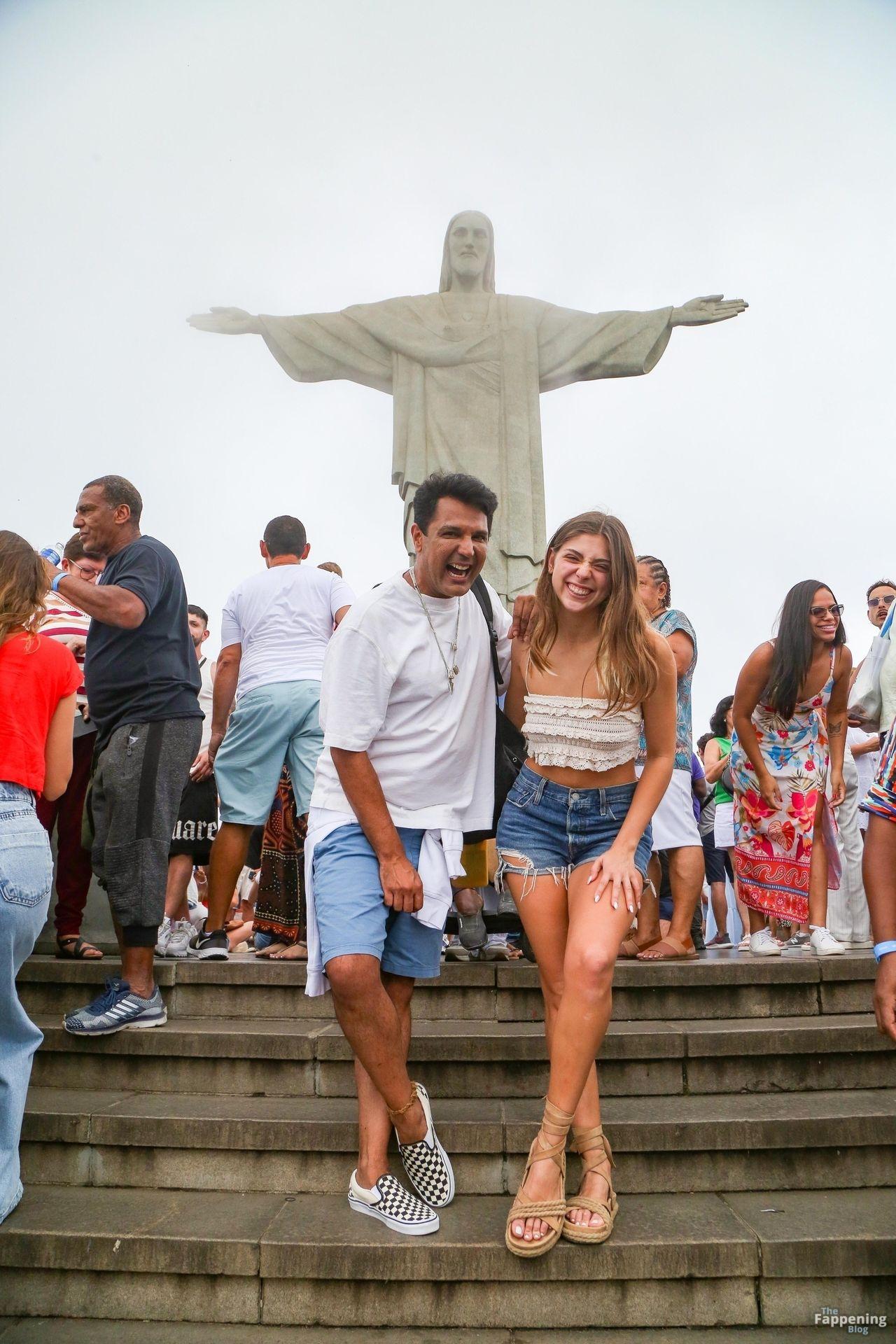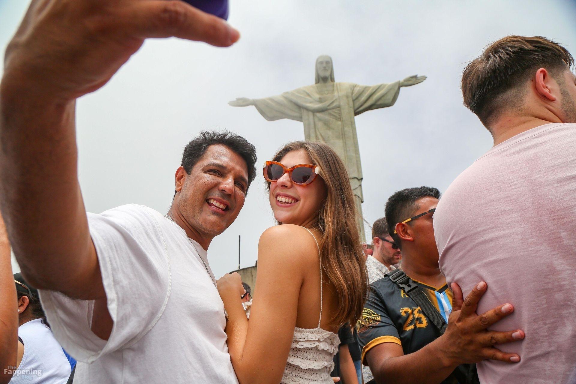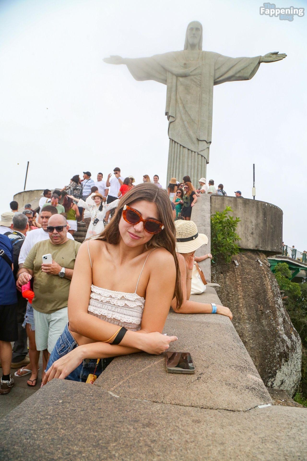 Spanish actress Carmen Arrufat shows off her sexy legs as she poses with a friend as they visit the famous Christ The Redeemer statue in Rio.