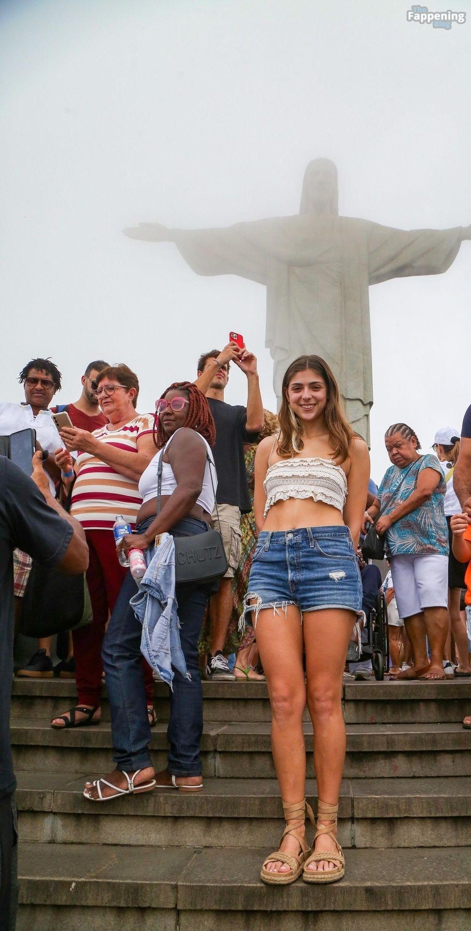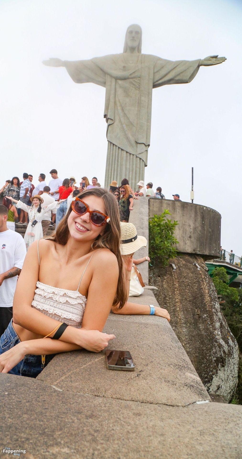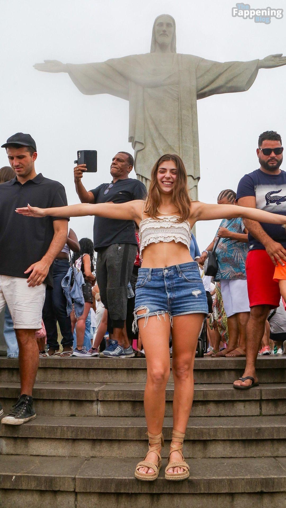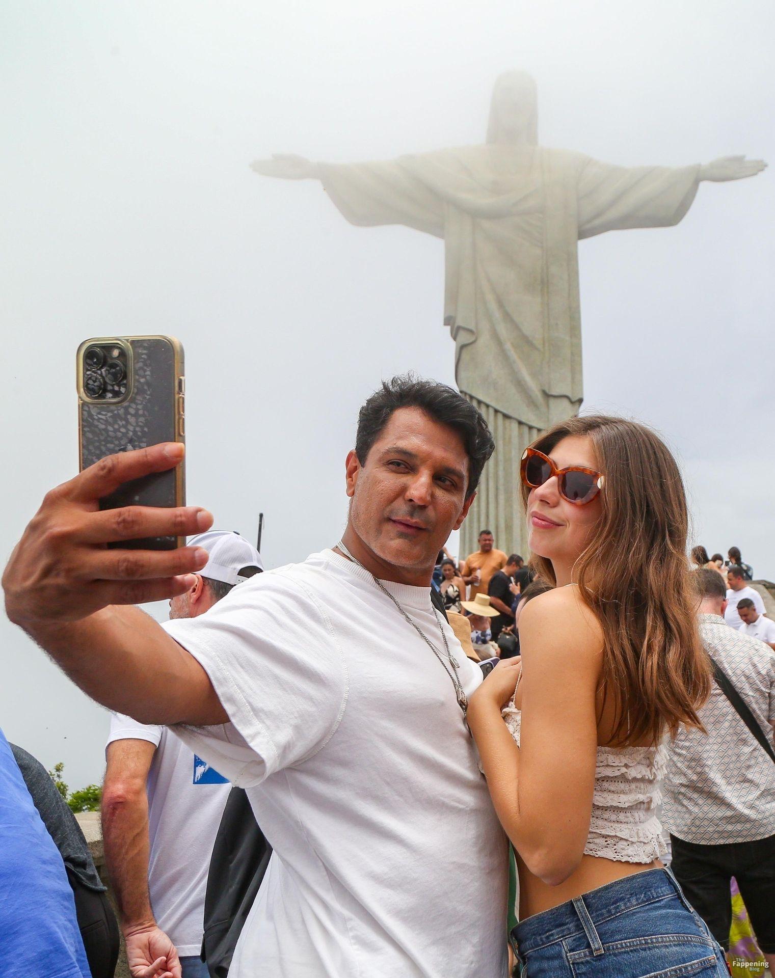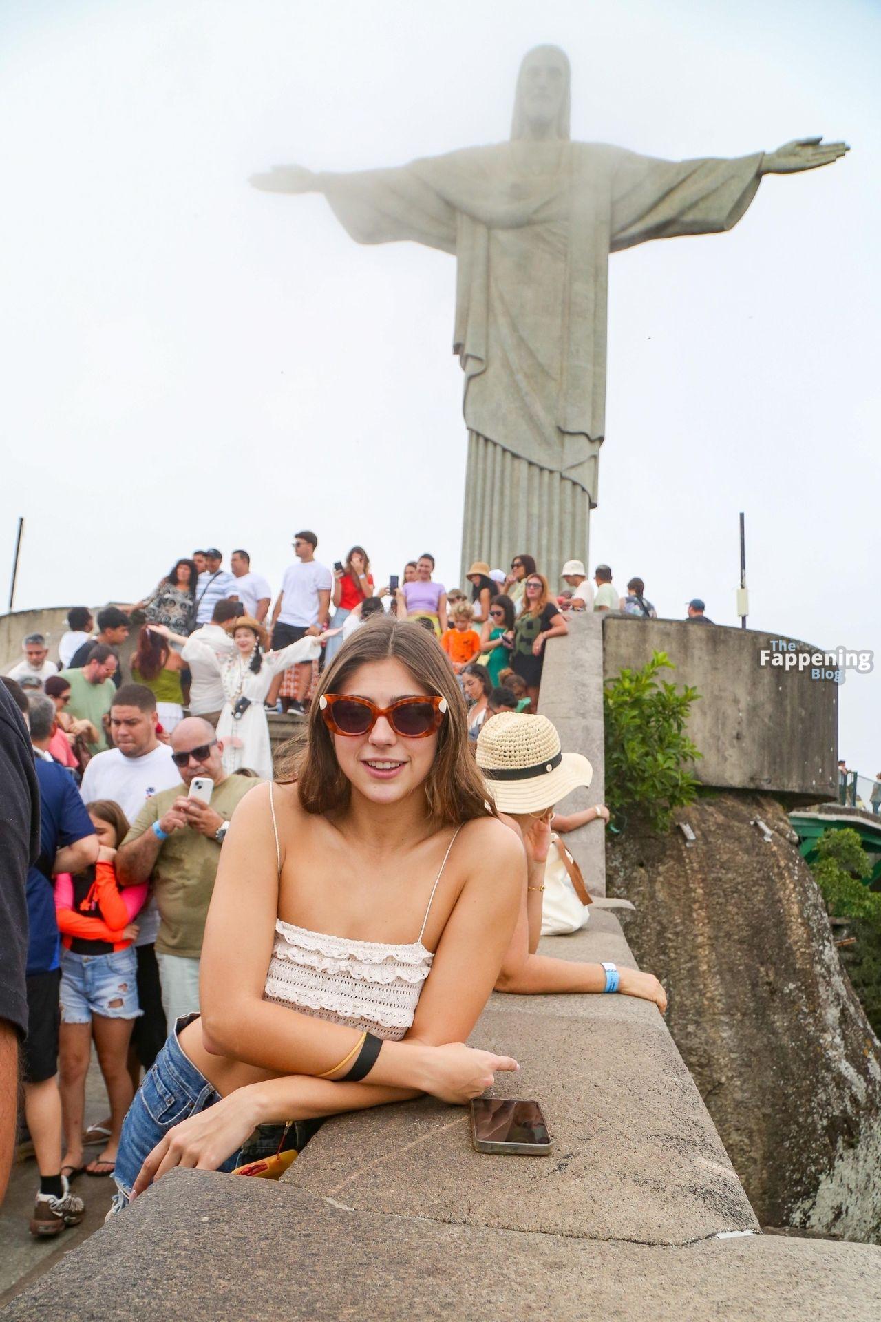 Spanish actress Carmen Arrufat shows off her sexy legs as she poses with a friend as they visit the famous Christ The Redeemer statue in Rio.