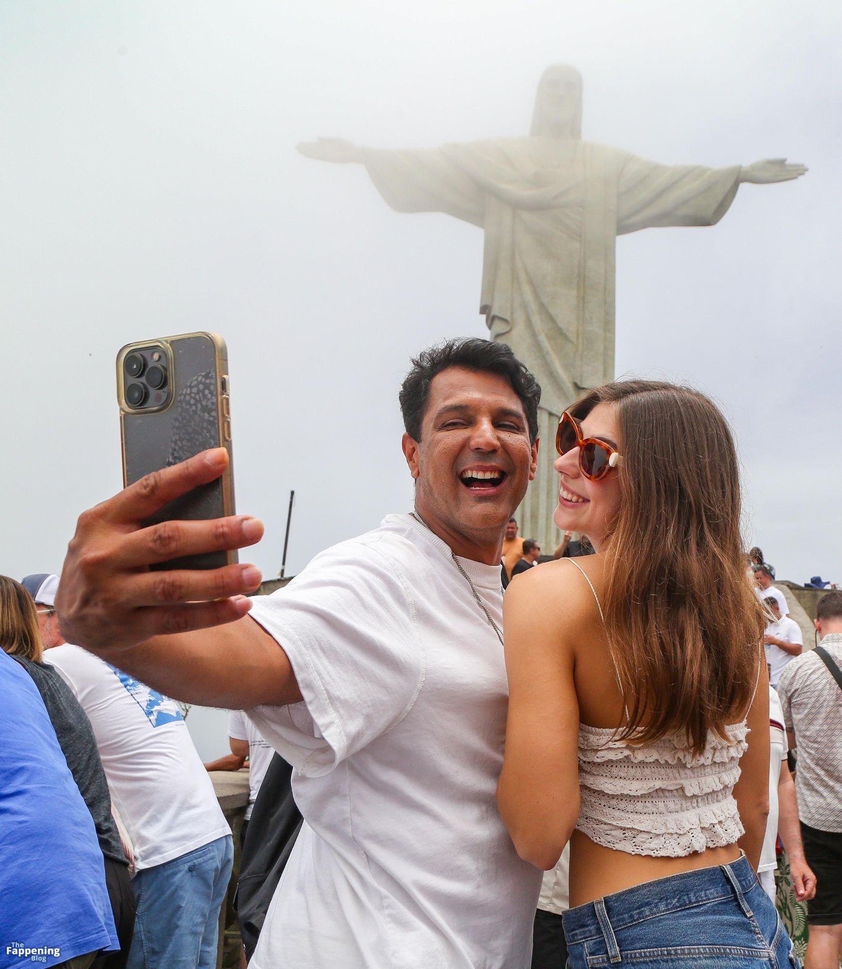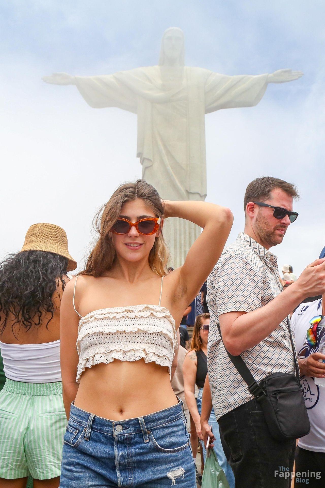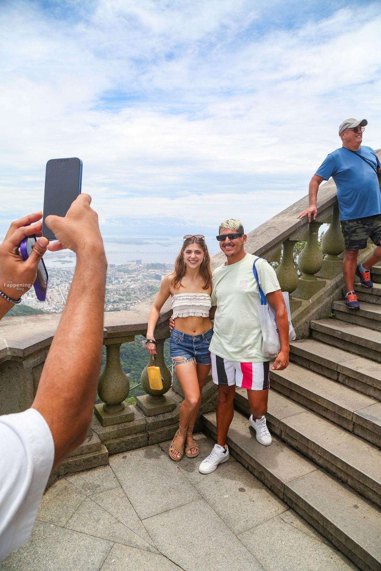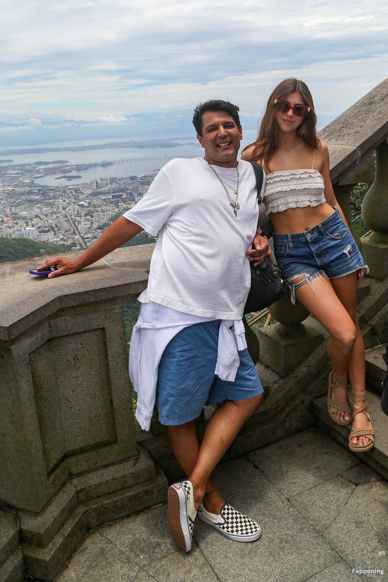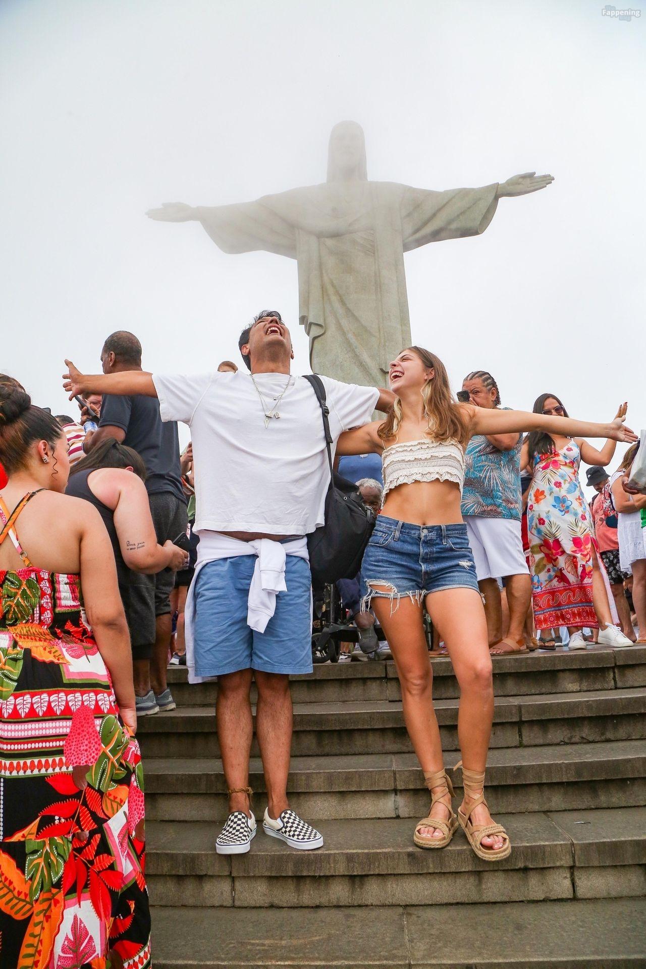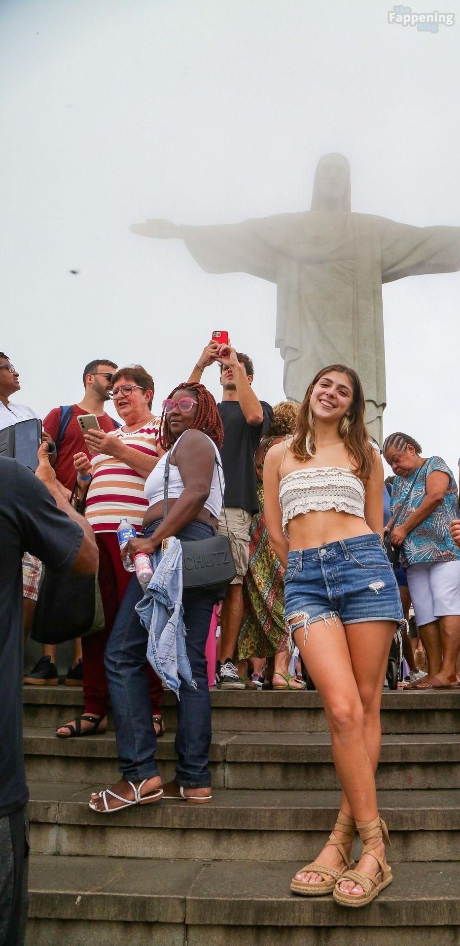 Spanish actress Carmen Arrufat shows off her sexy legs as she poses with a friend as they visit the famous Christ The Redeemer statue in Rio.