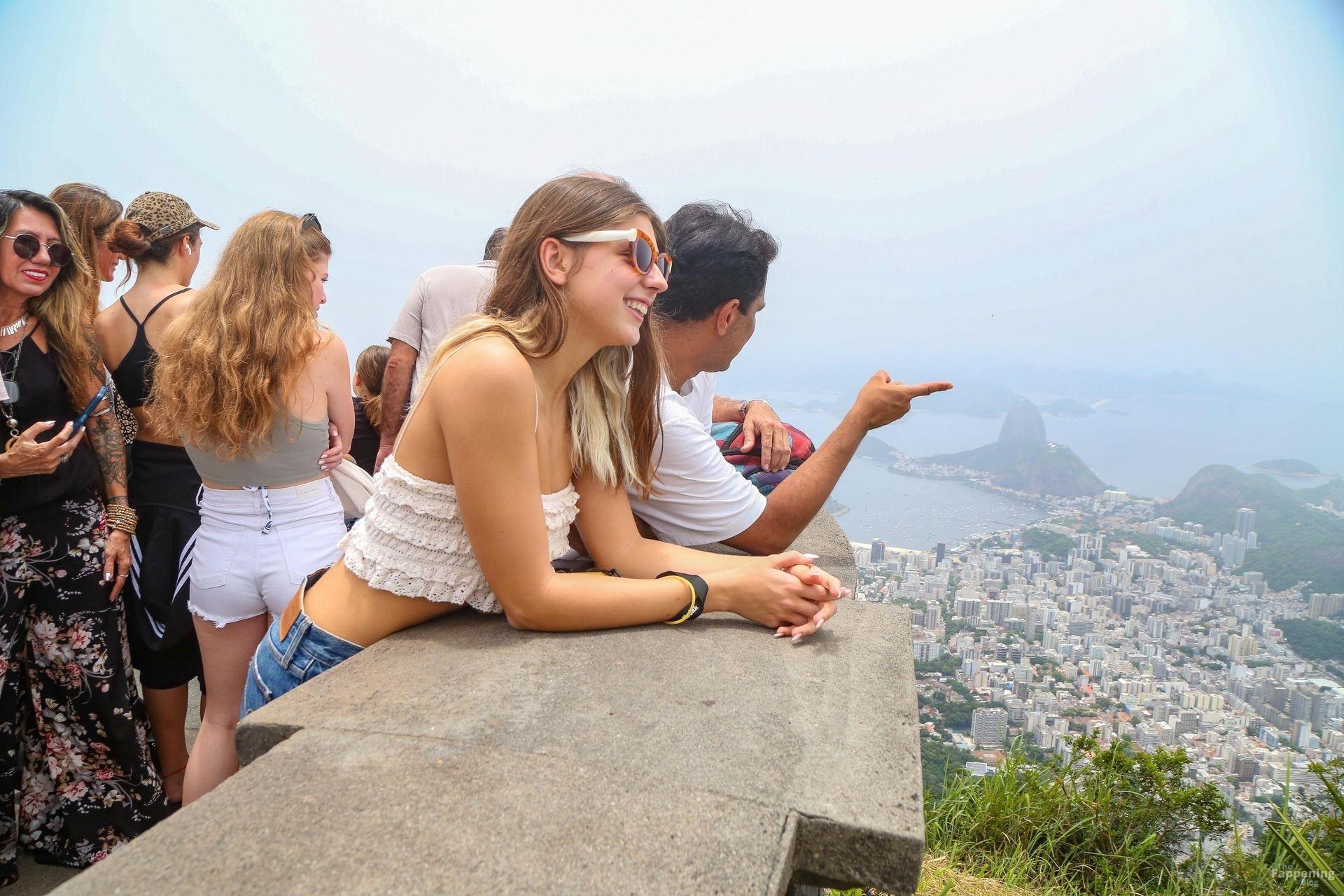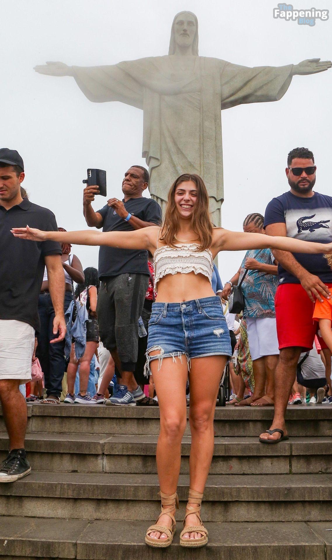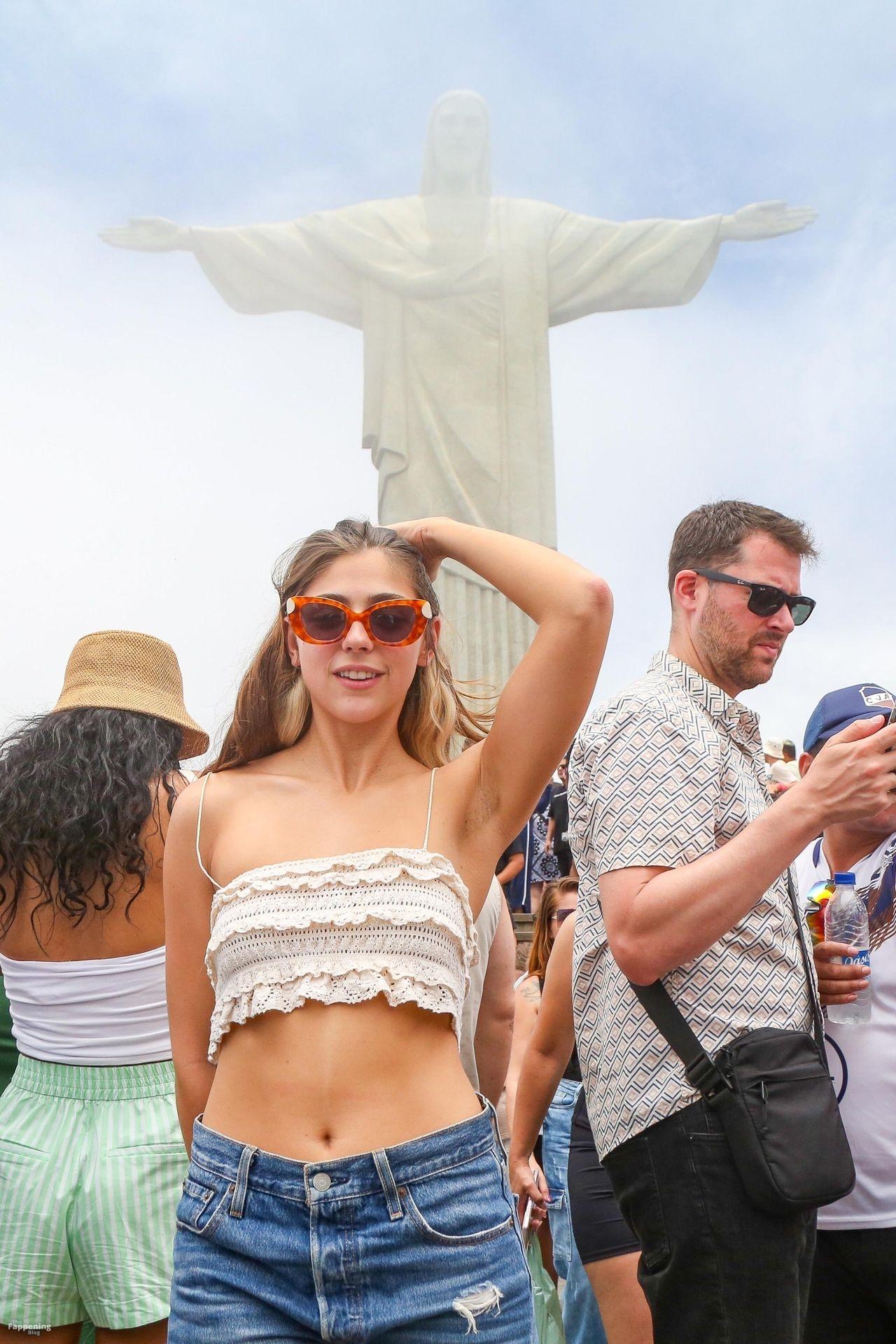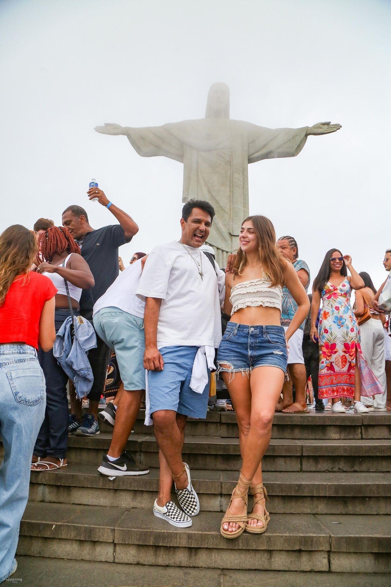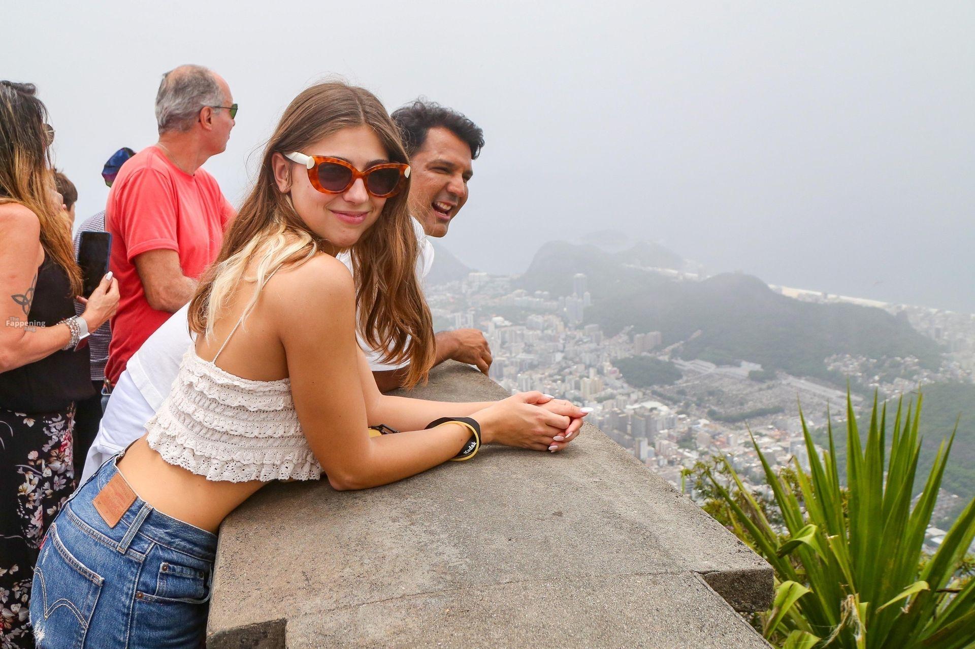 Spanish actress Carmen Arrufat shows off her sexy legs as she poses with a friend as they visit the famous Christ The Redeemer statue in Rio.
