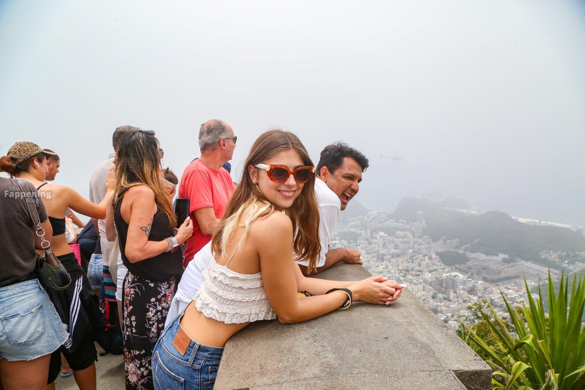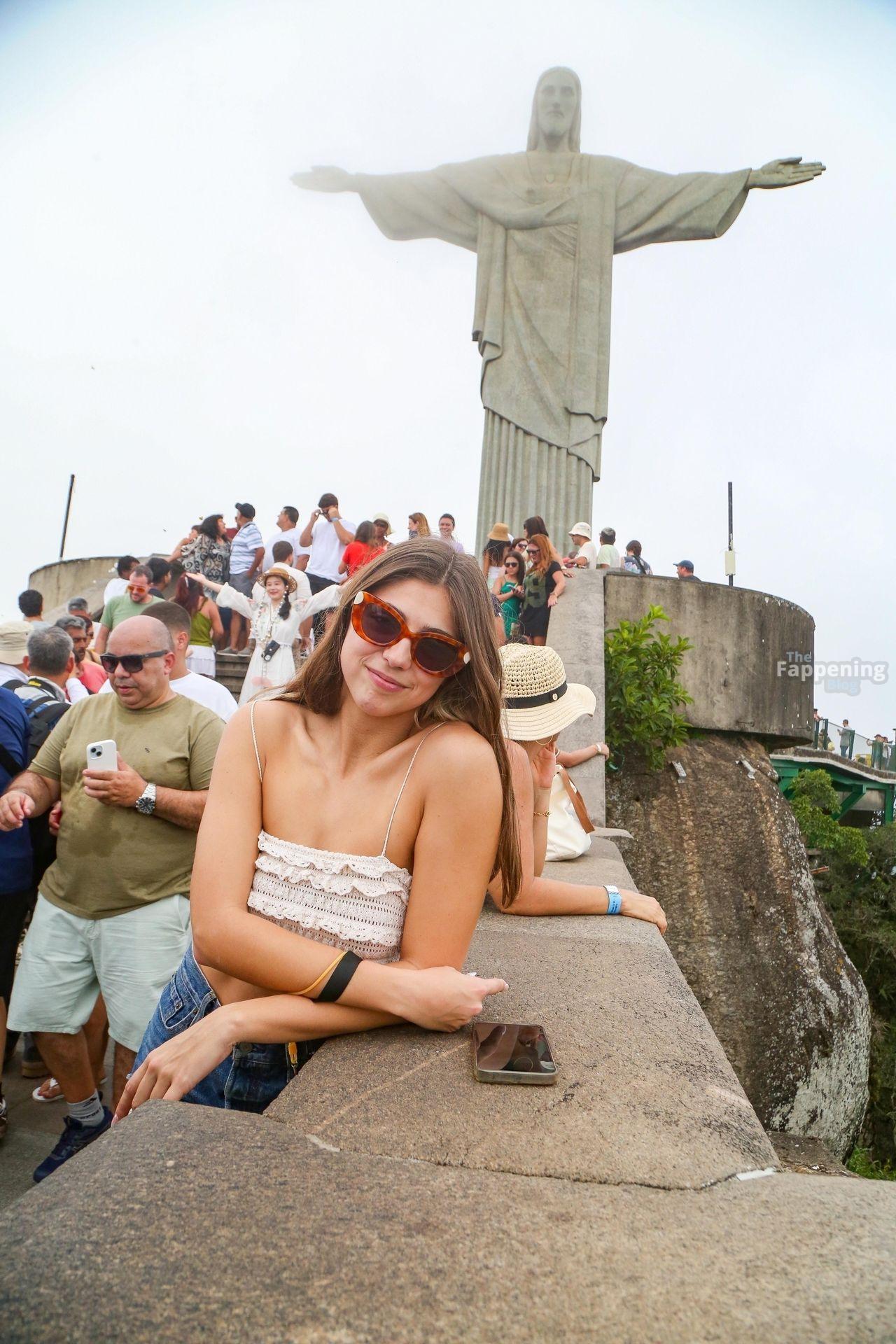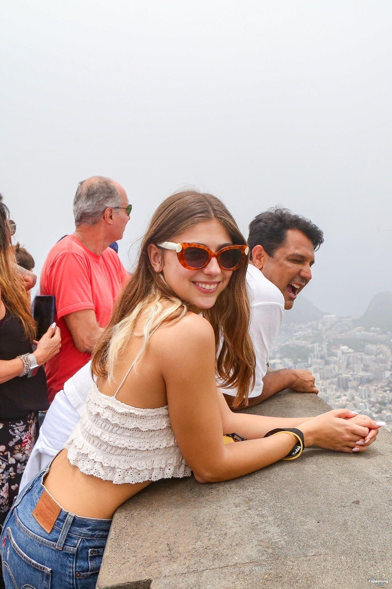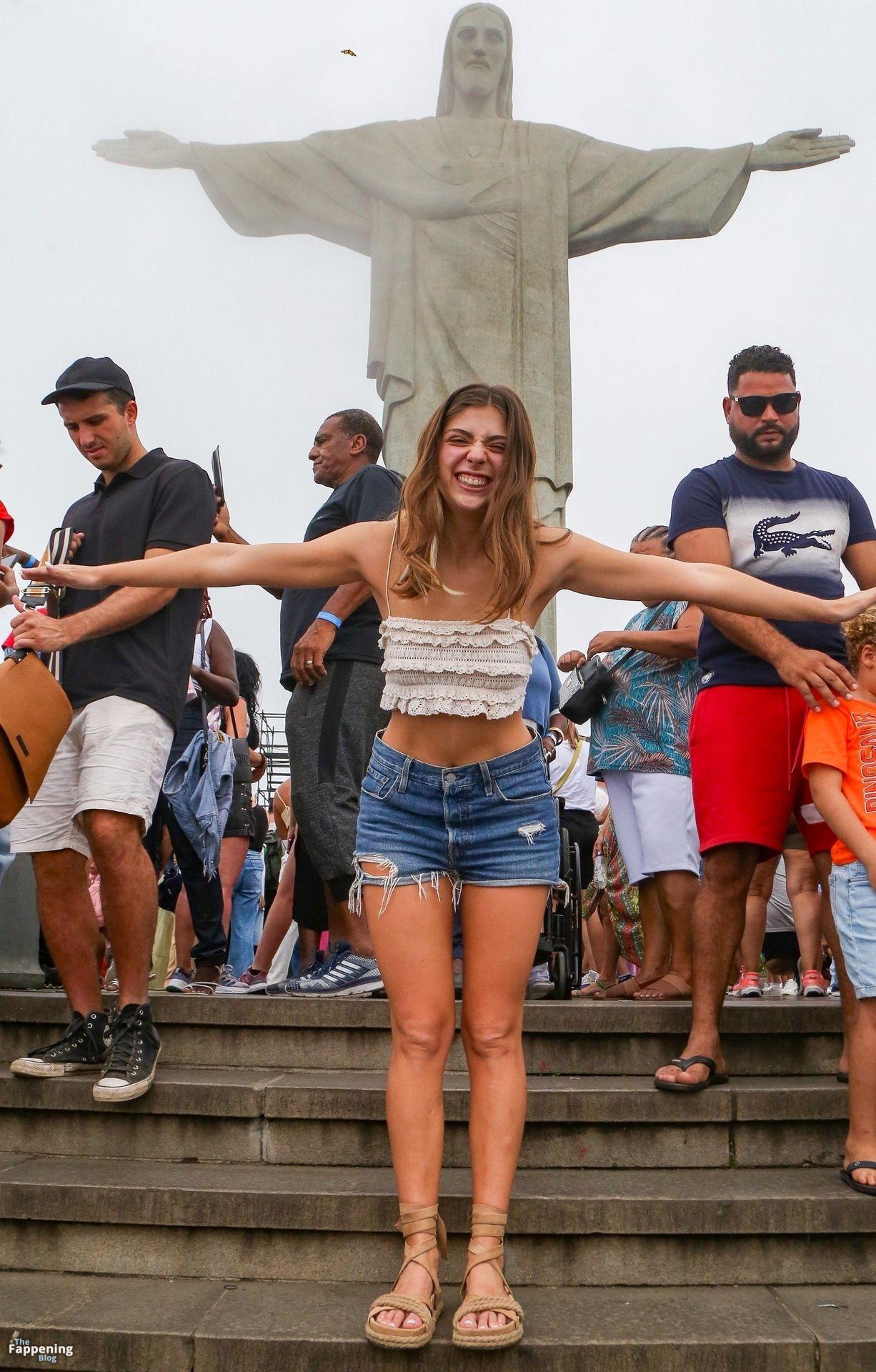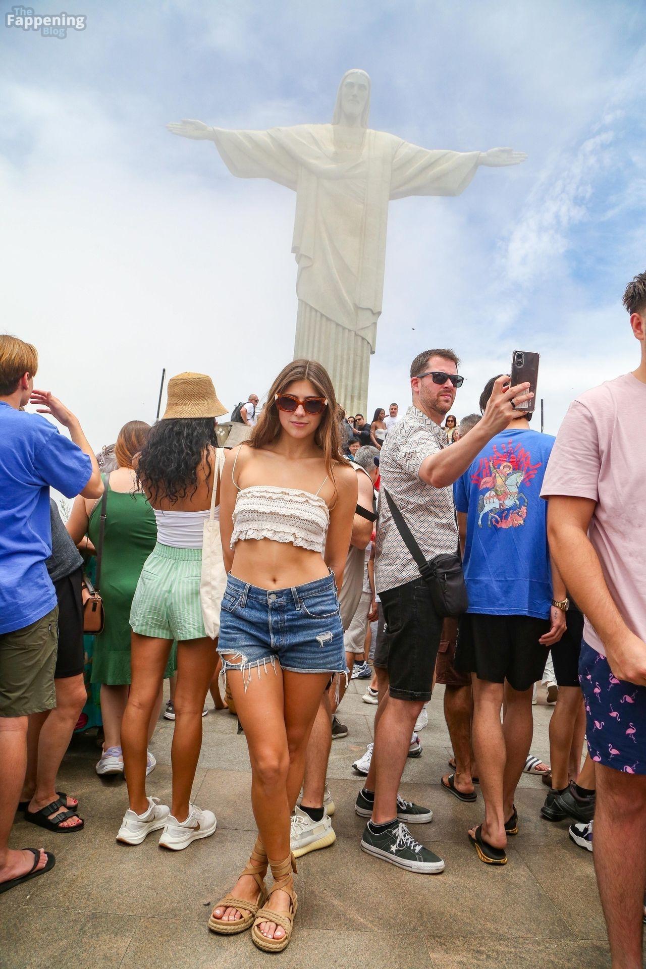 Spanish actress Carmen Arrufat shows off her sexy legs as she poses with a friend as they visit the famous Christ The Redeemer statue in Rio.