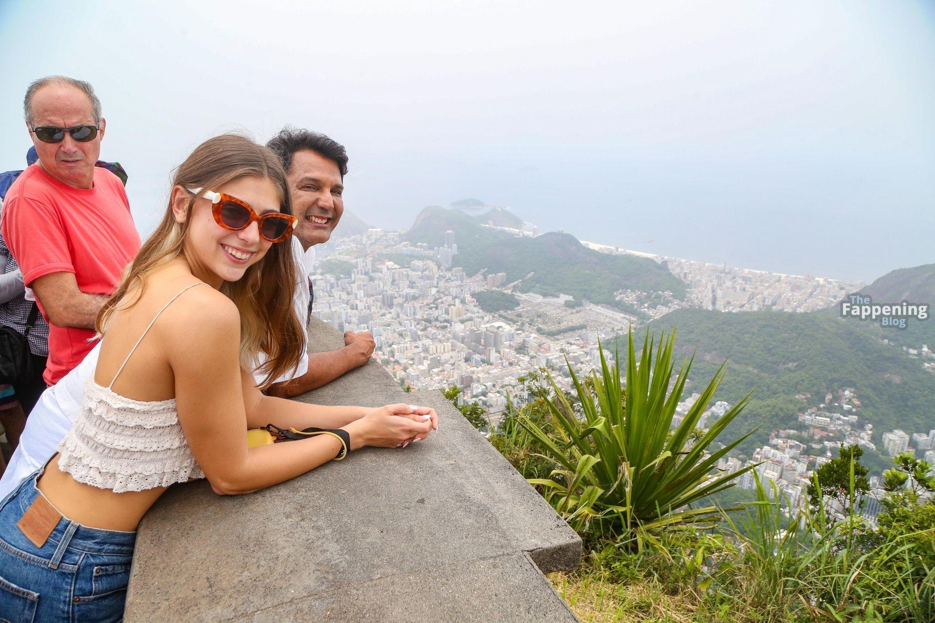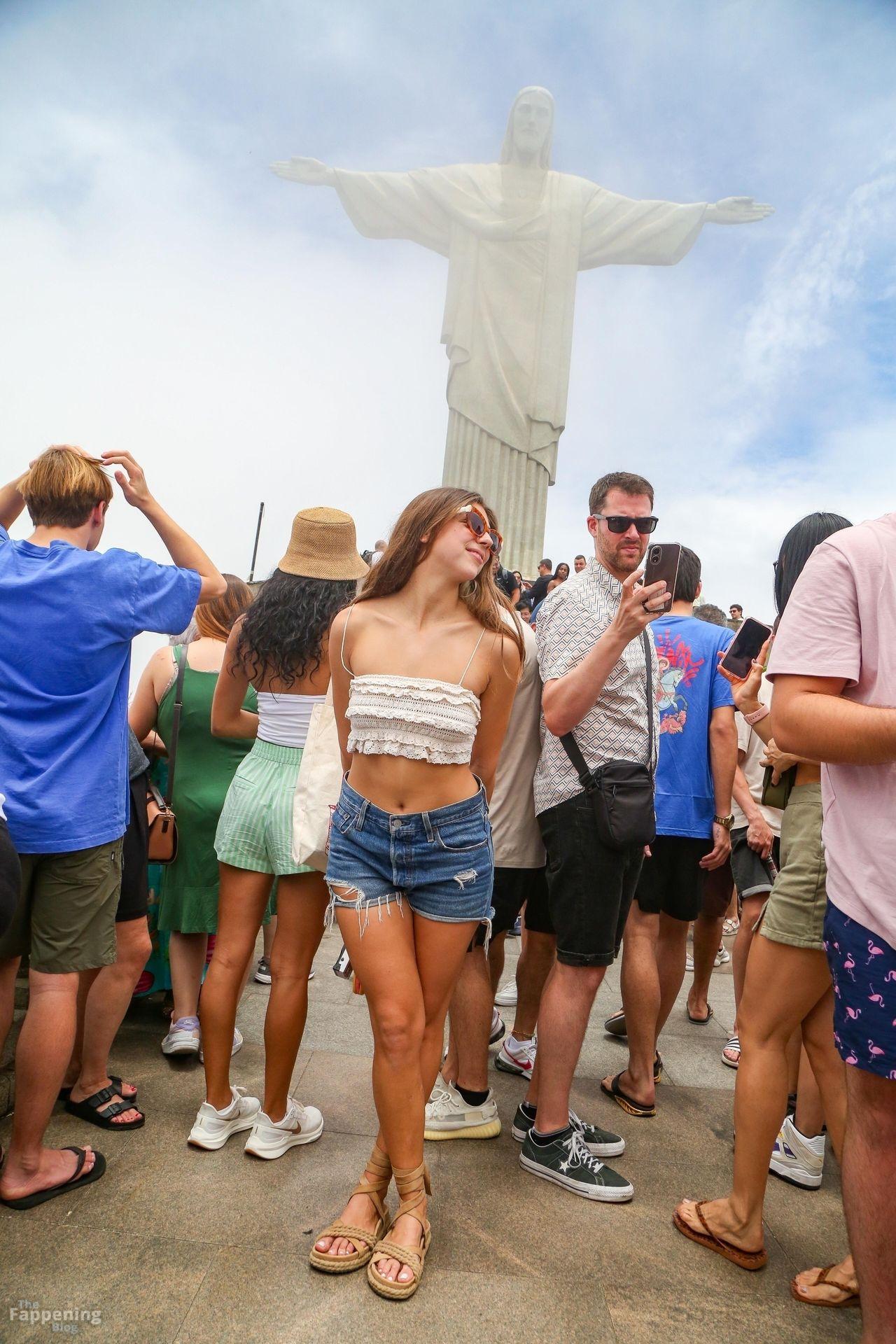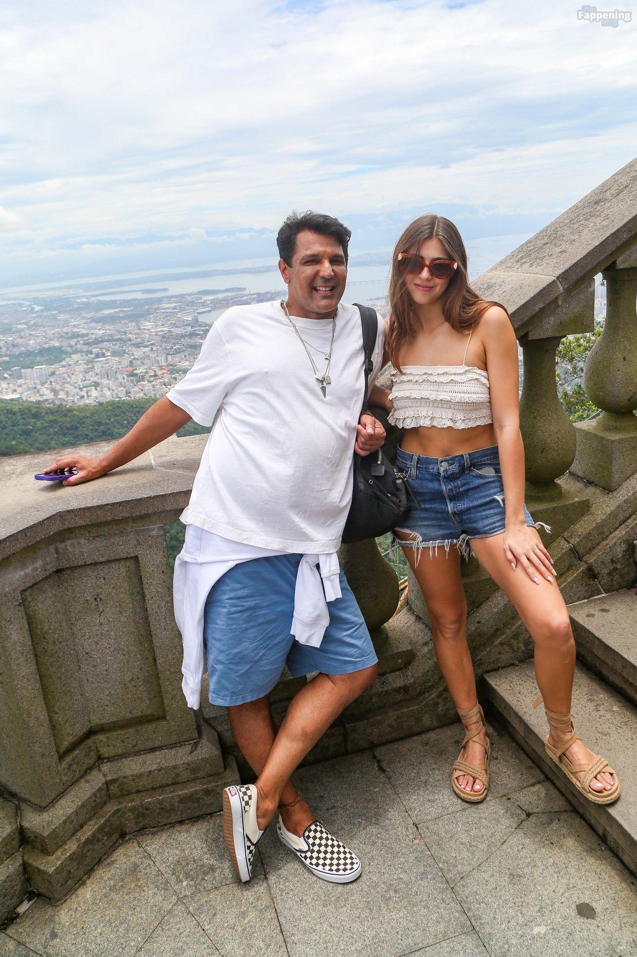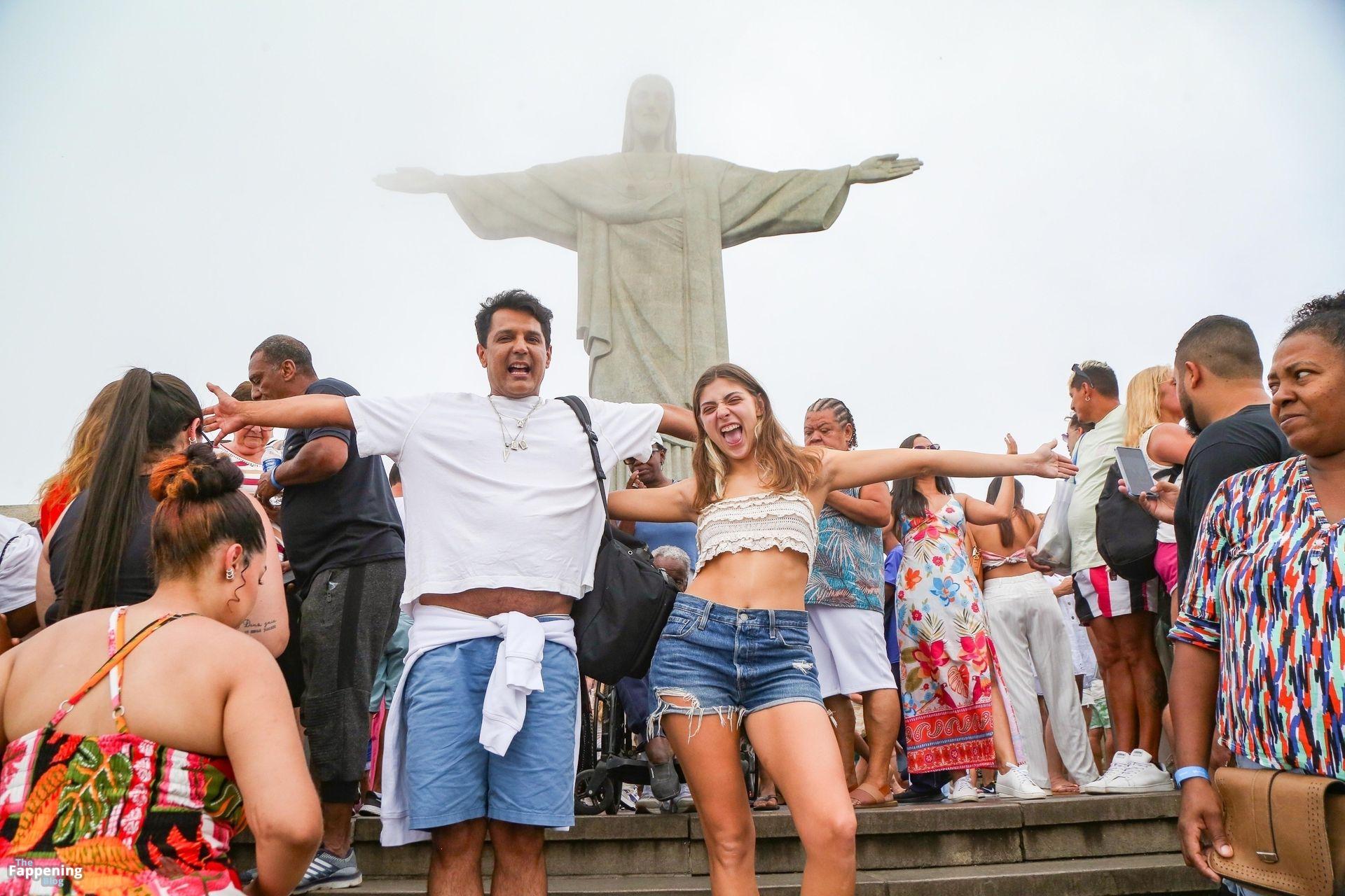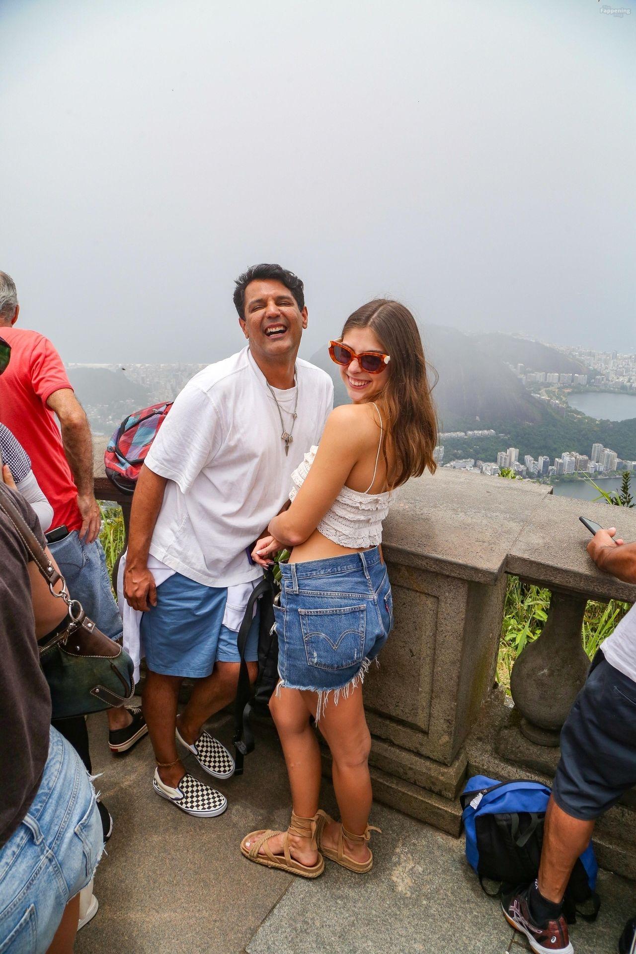 Spanish actress Carmen Arrufat shows off her sexy legs as she poses with a friend as they visit the famous Christ The Redeemer statue in Rio.
