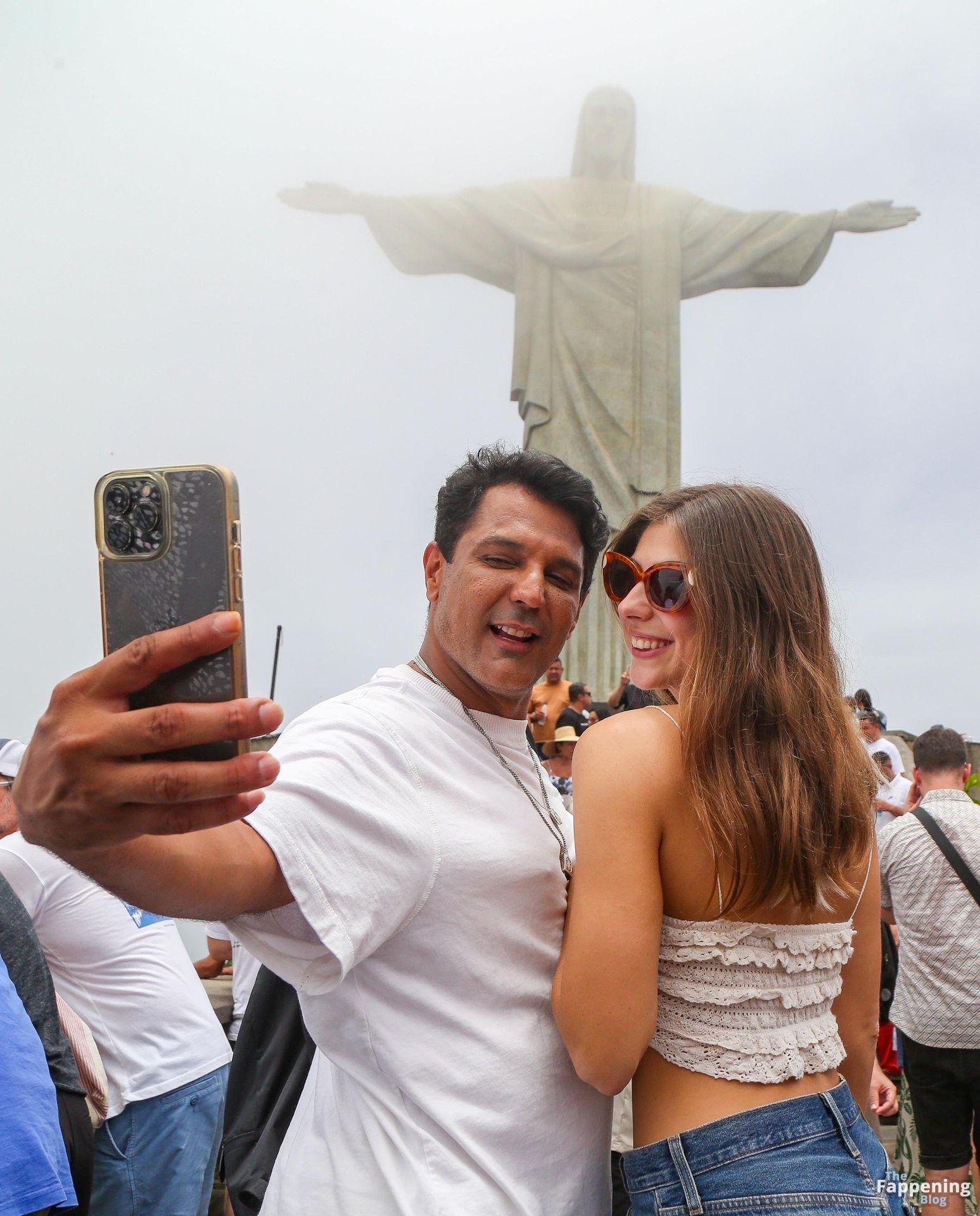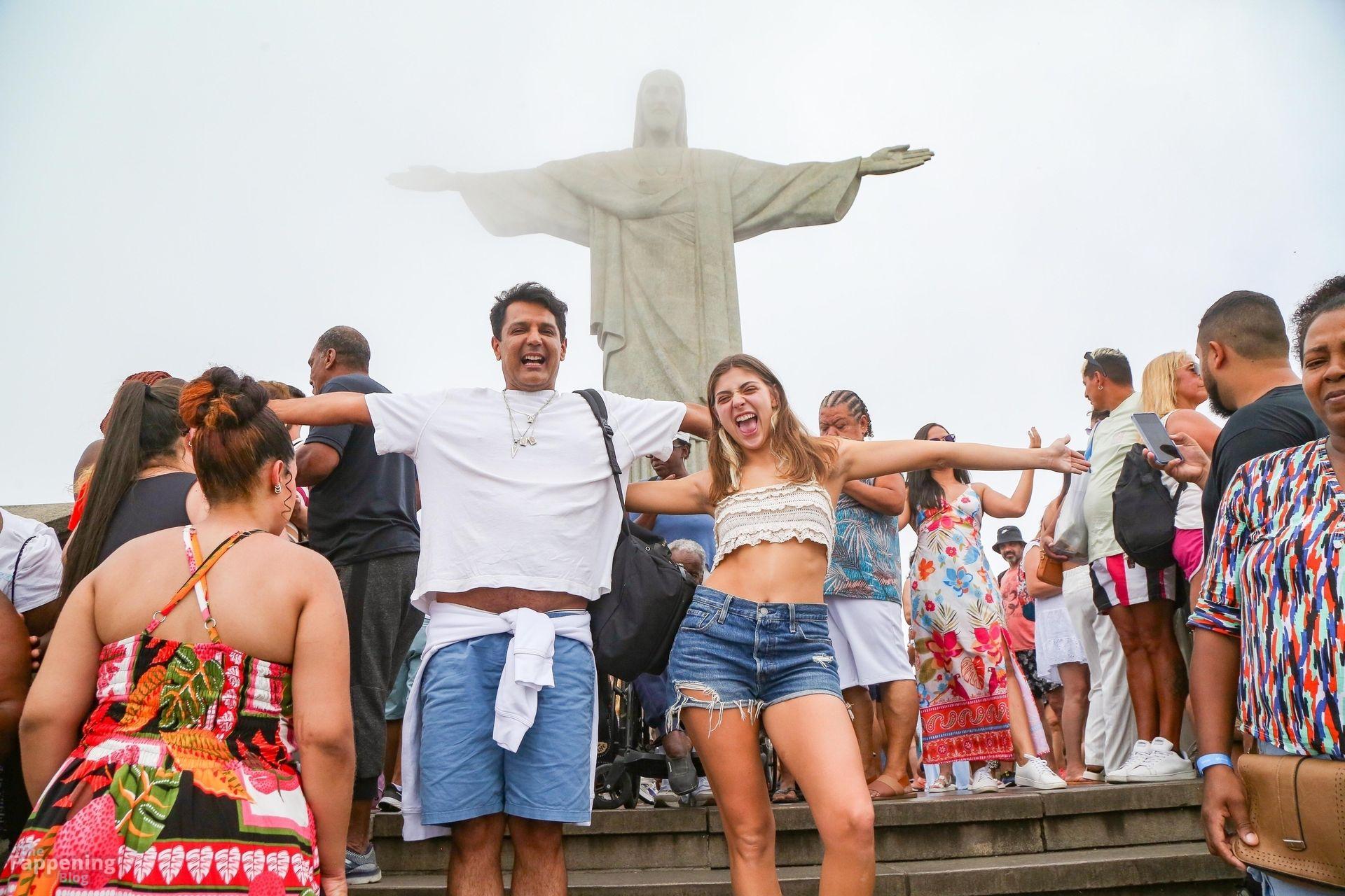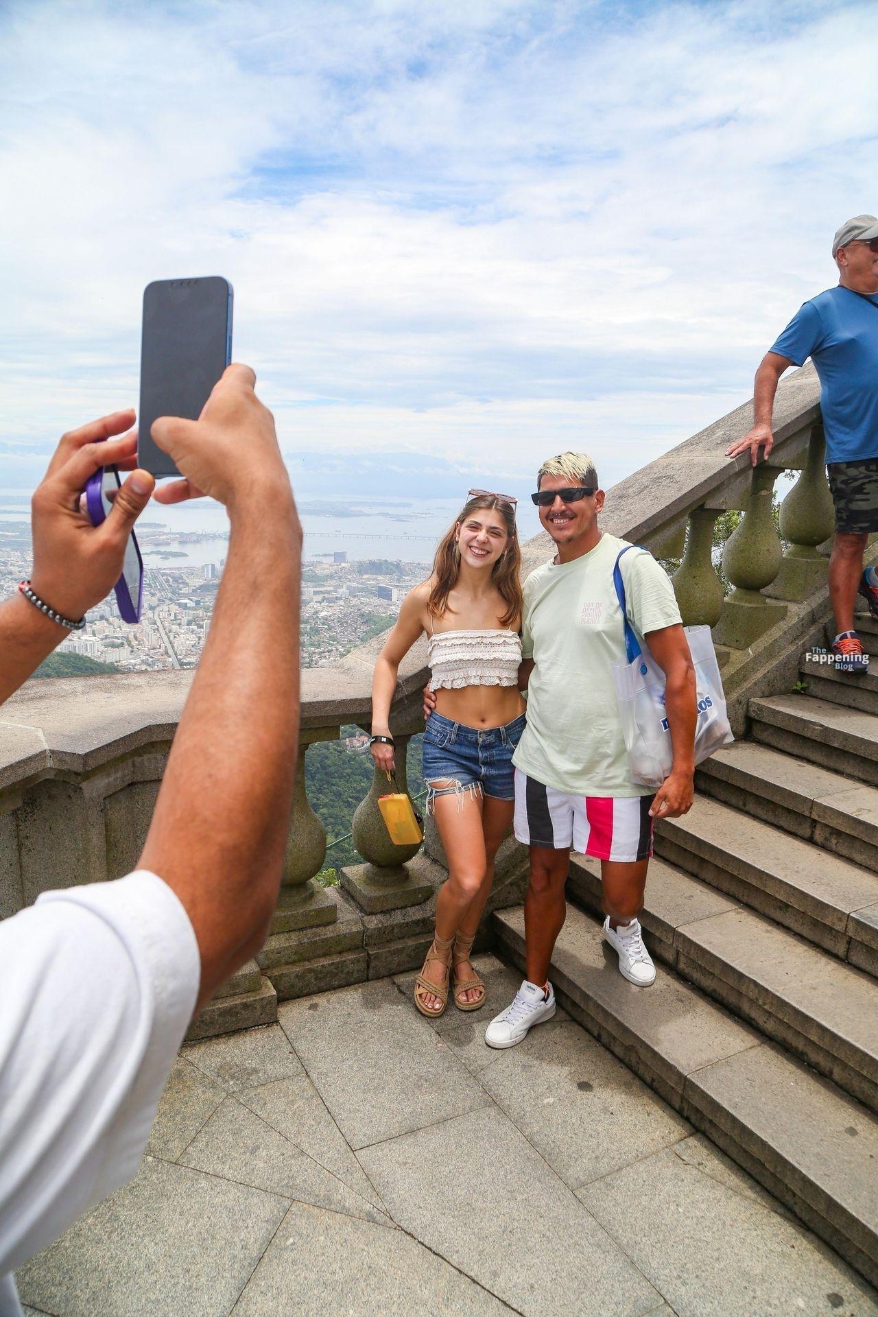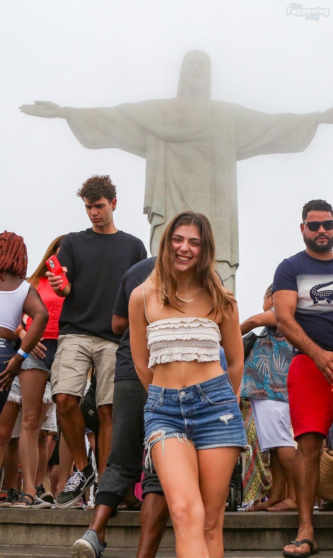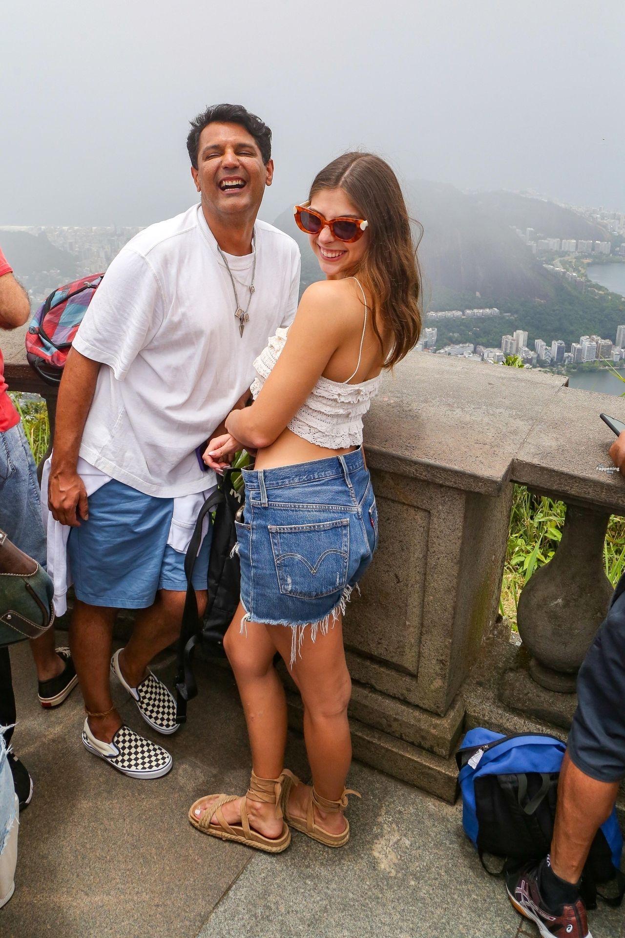 Spanish actress Carmen Arrufat shows off her sexy legs as she poses with a friend as they visit the famous Christ The Redeemer statue in Rio.