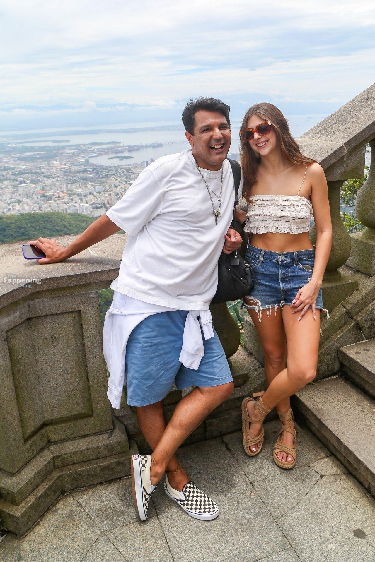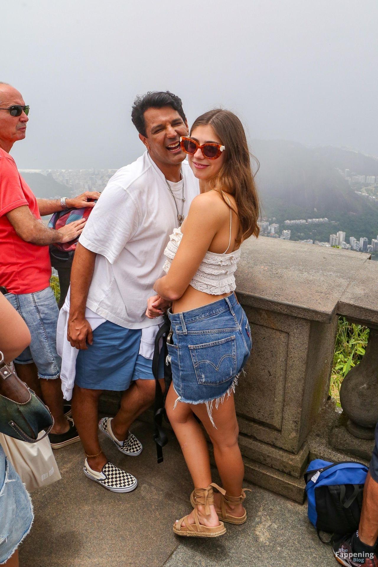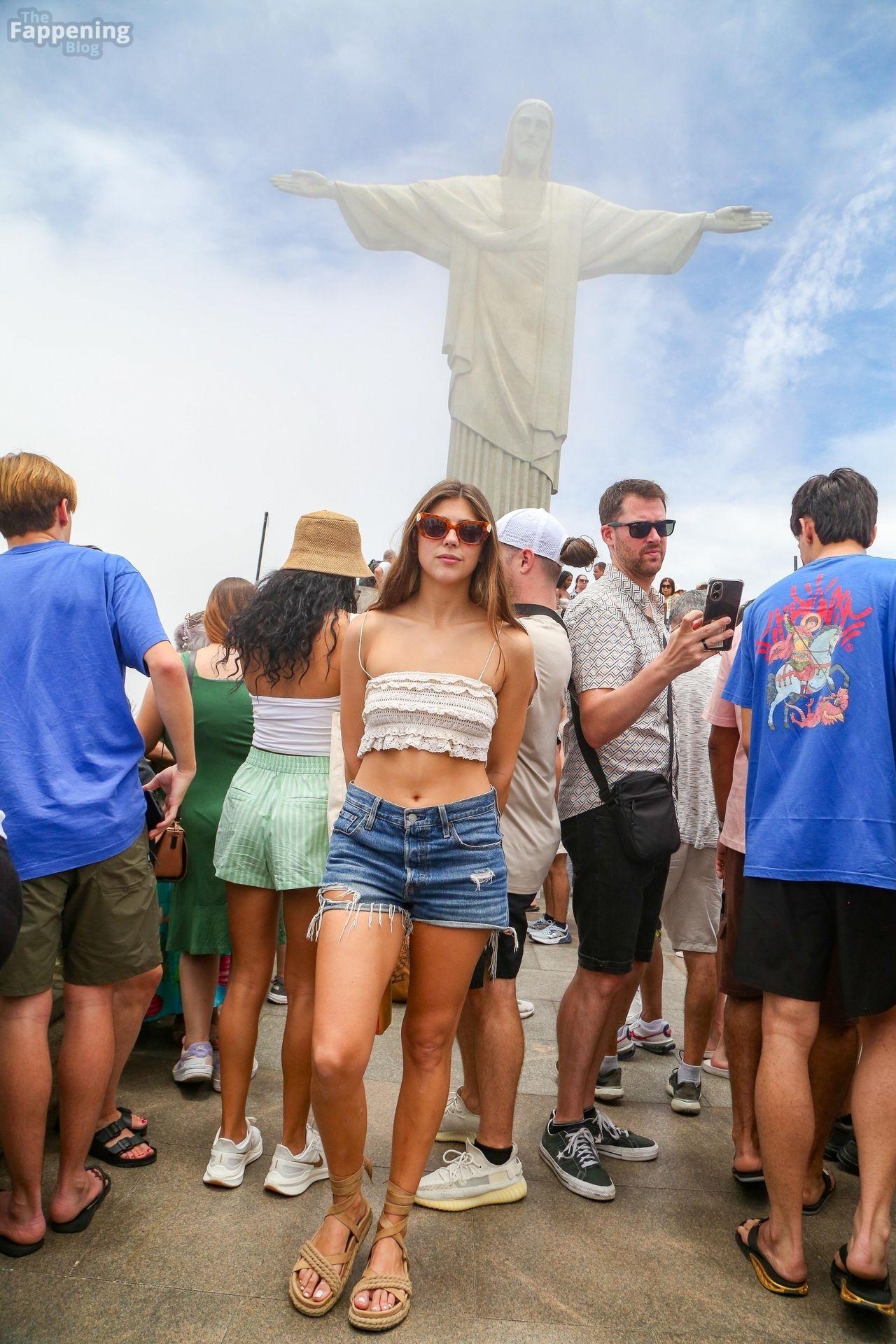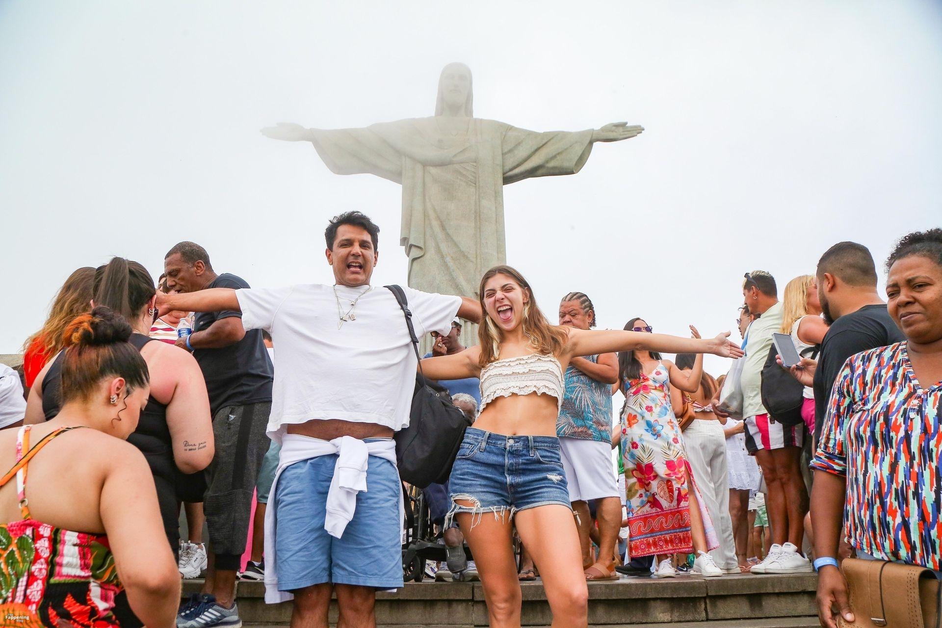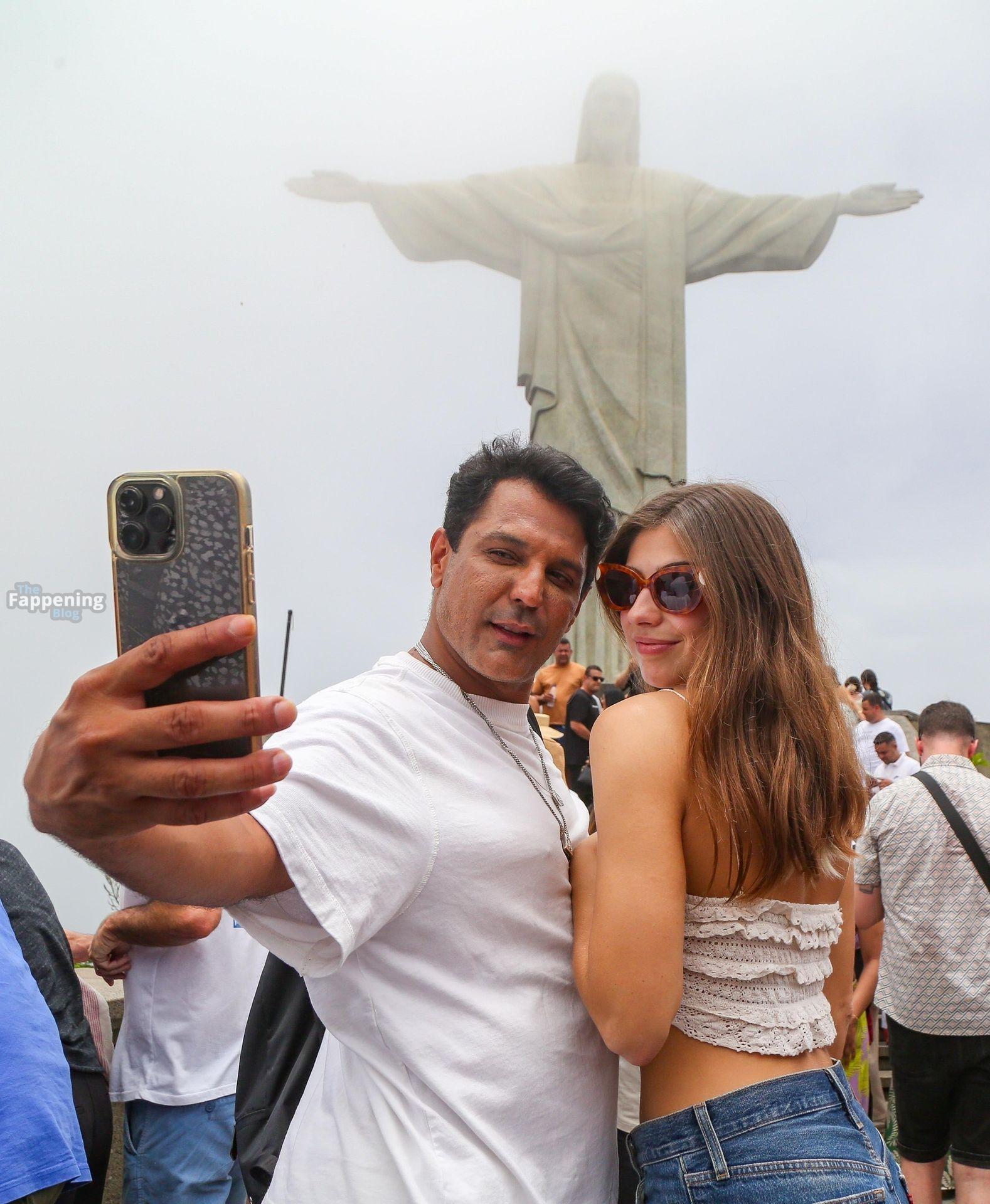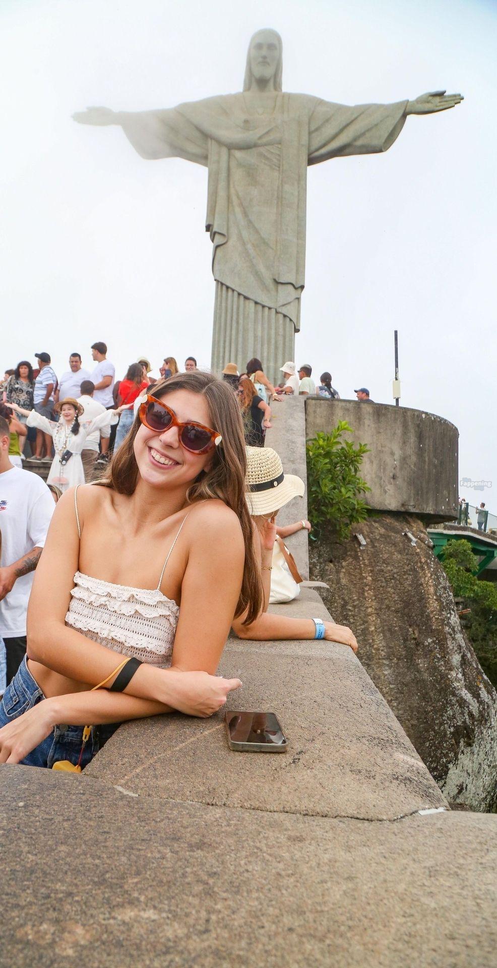 Spanish actress Carmen Arrufat shows off her sexy legs as she poses with a friend as they visit the famous Christ The Redeemer statue in Rio.