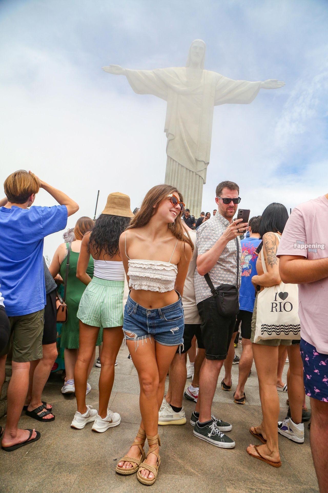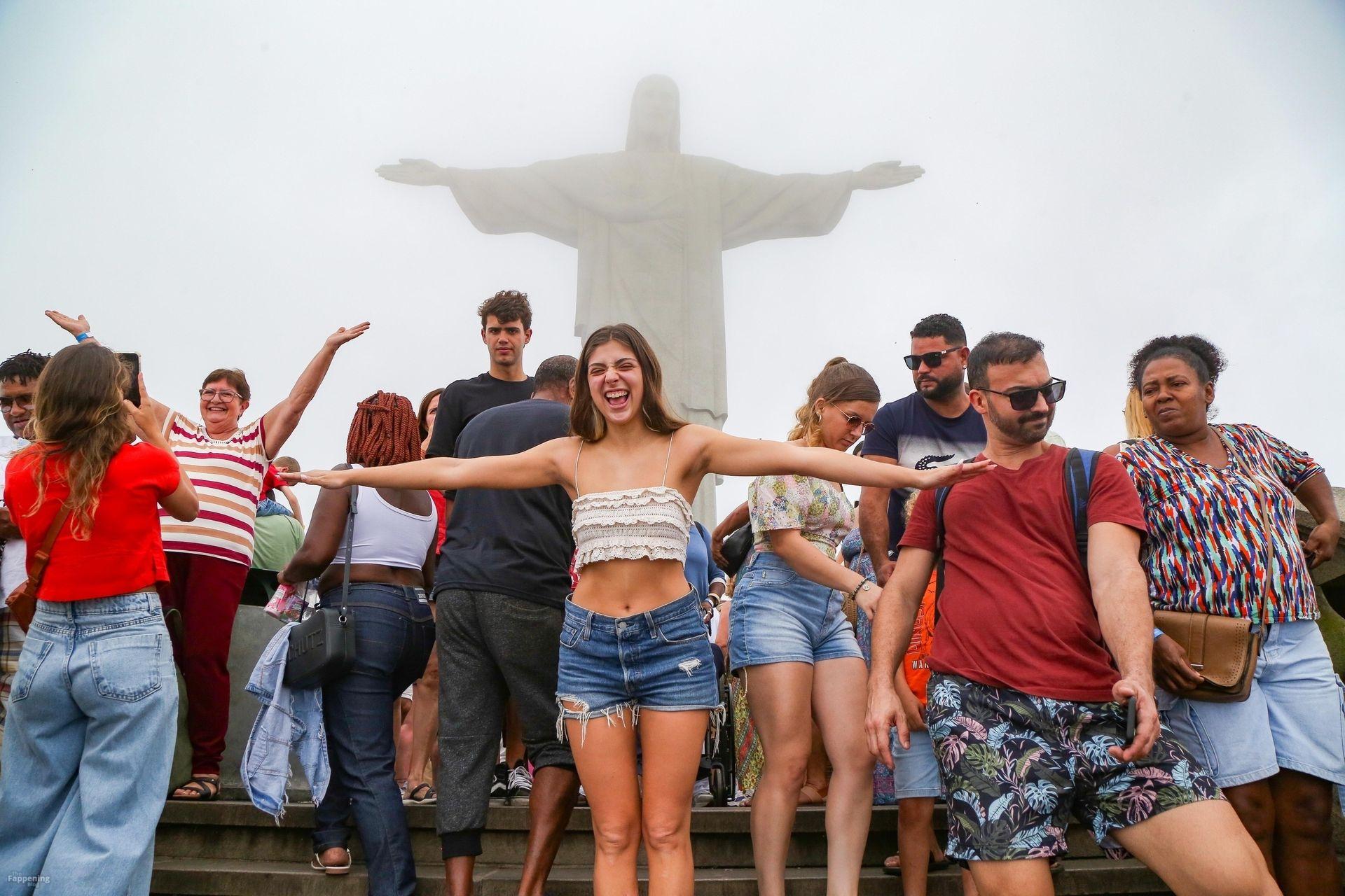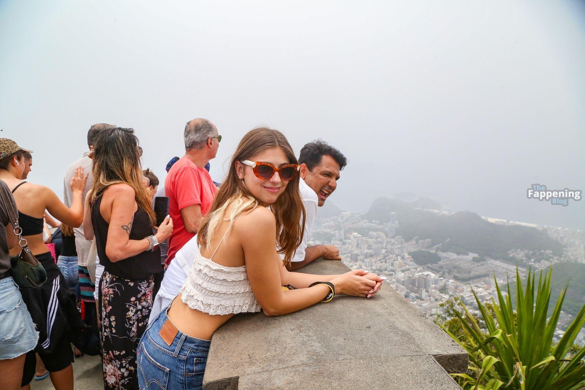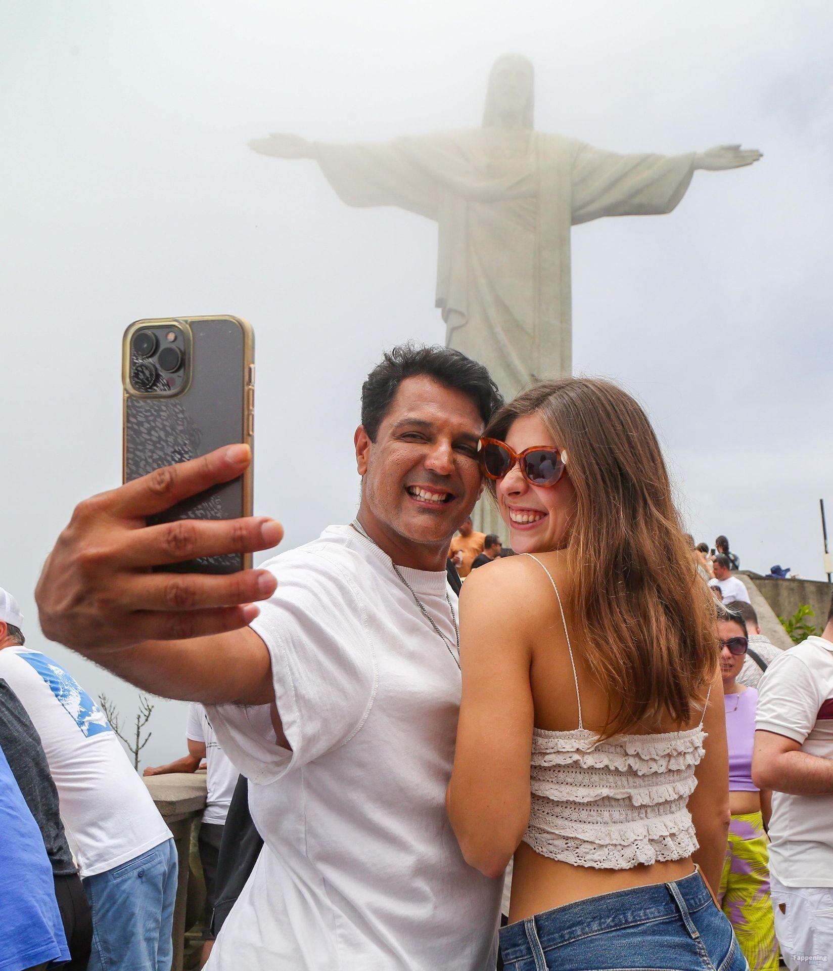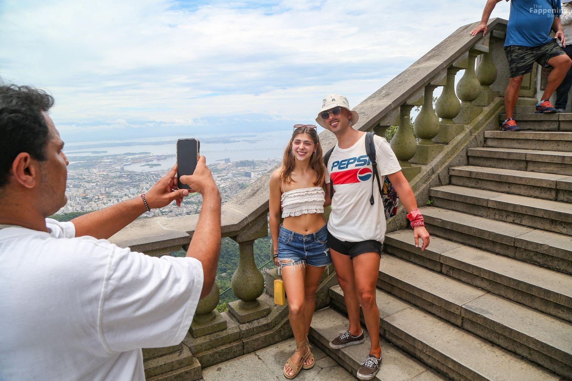 Spanish actress Carmen Arrufat shows off her sexy legs as she poses with a friend as they visit the famous Christ The Redeemer statue in Rio.