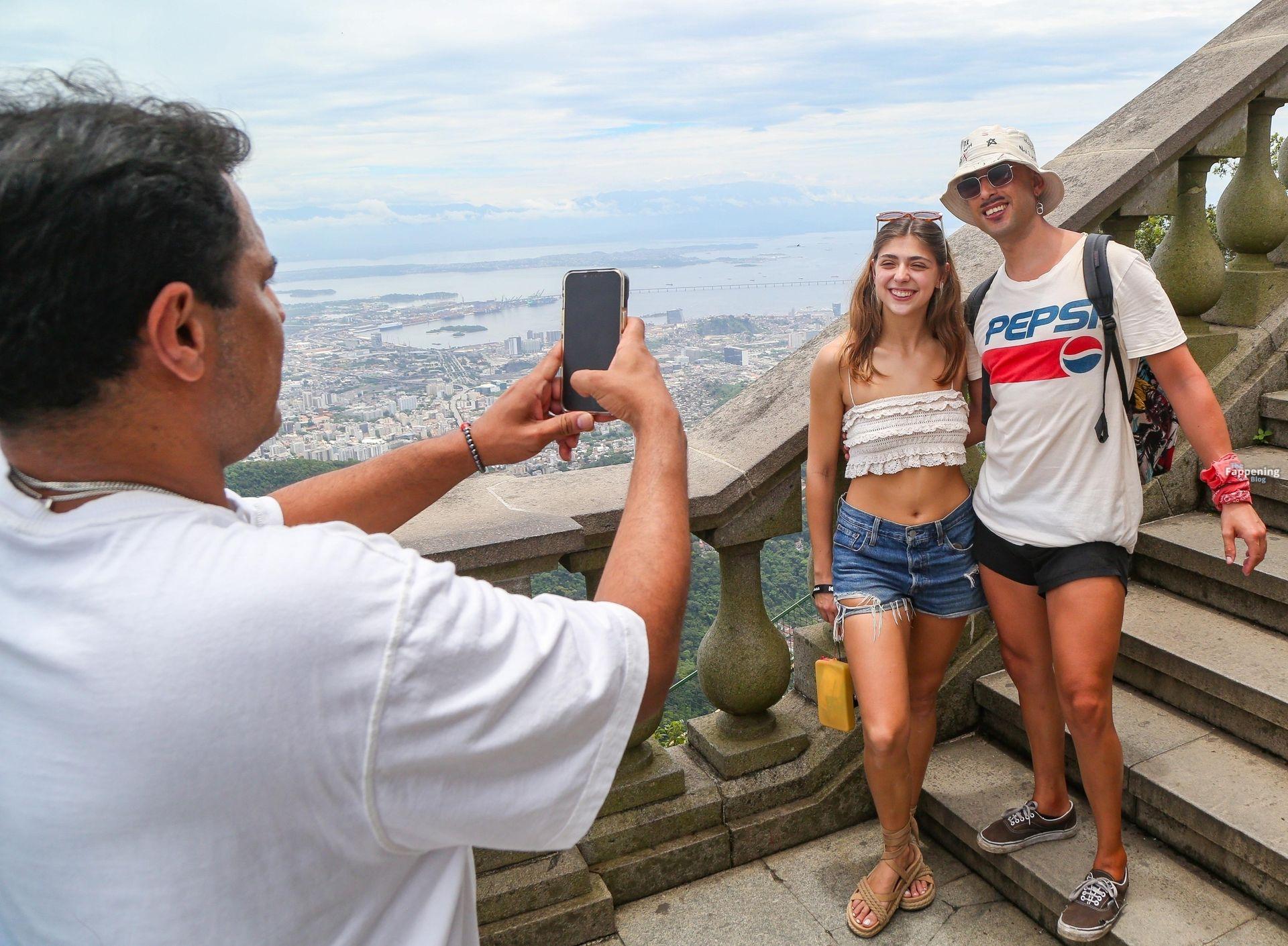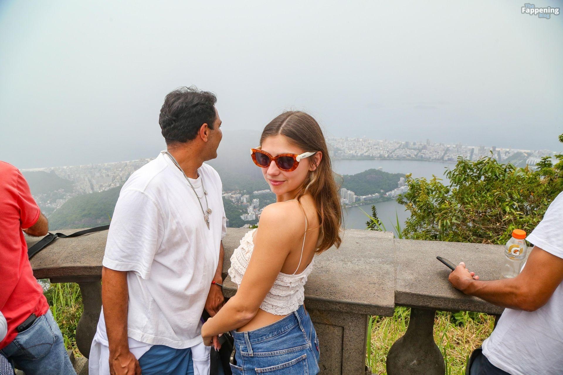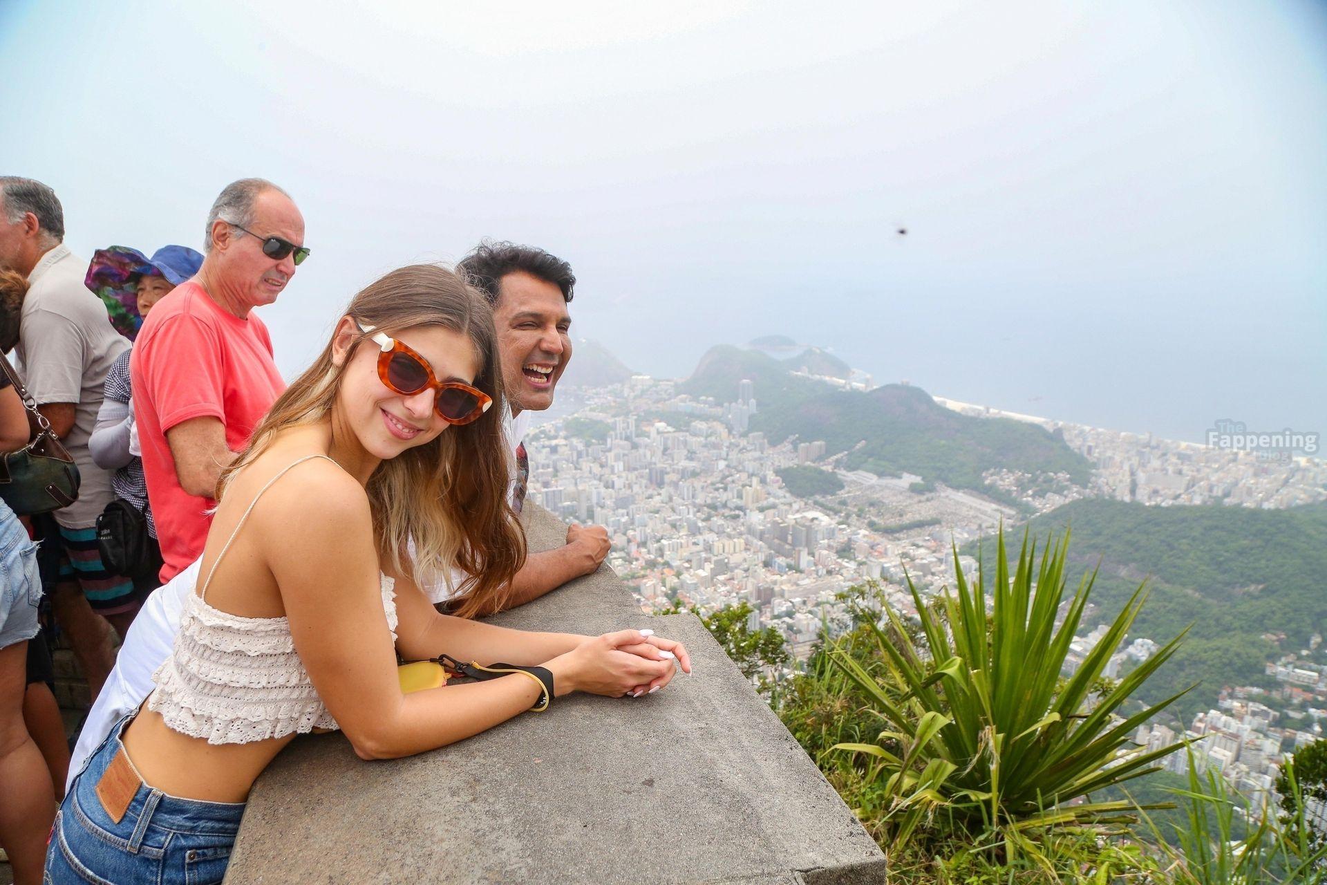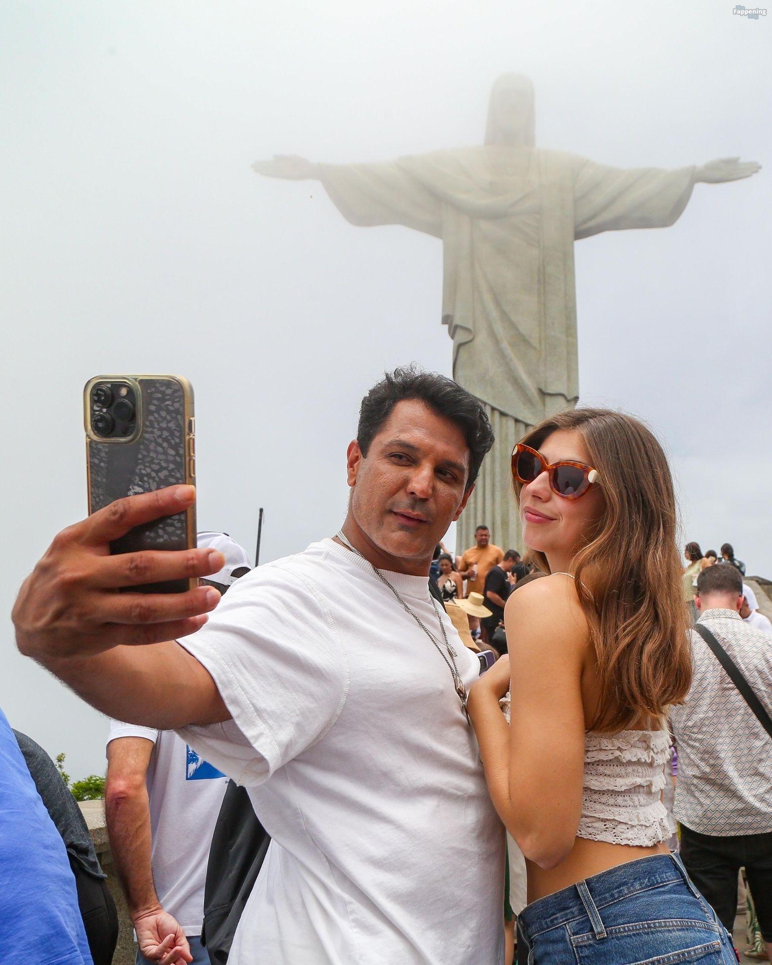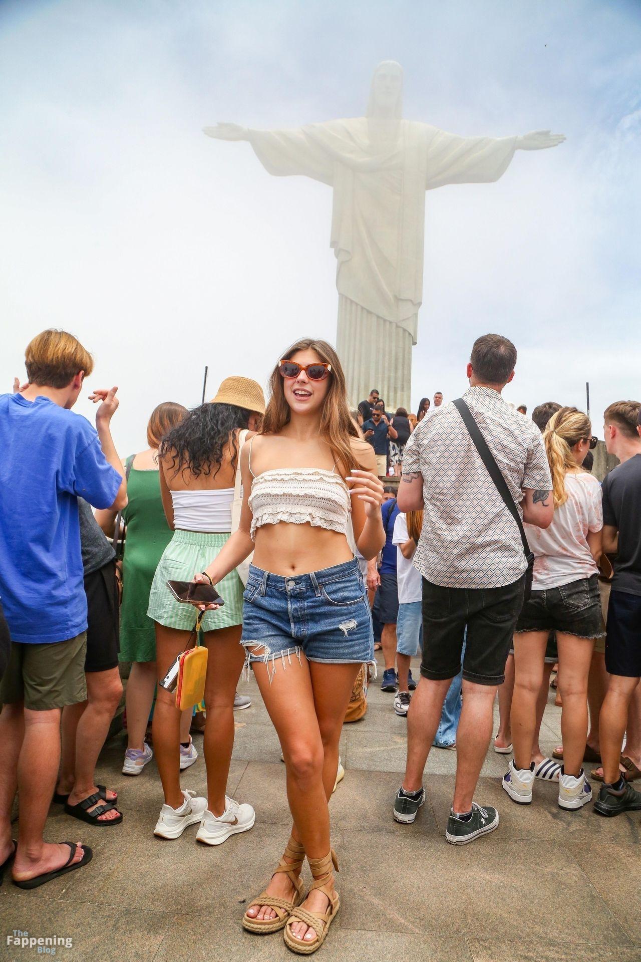 Spanish actress Carmen Arrufat shows off her sexy legs as she poses with a friend as they visit the famous Christ The Redeemer statue in Rio.