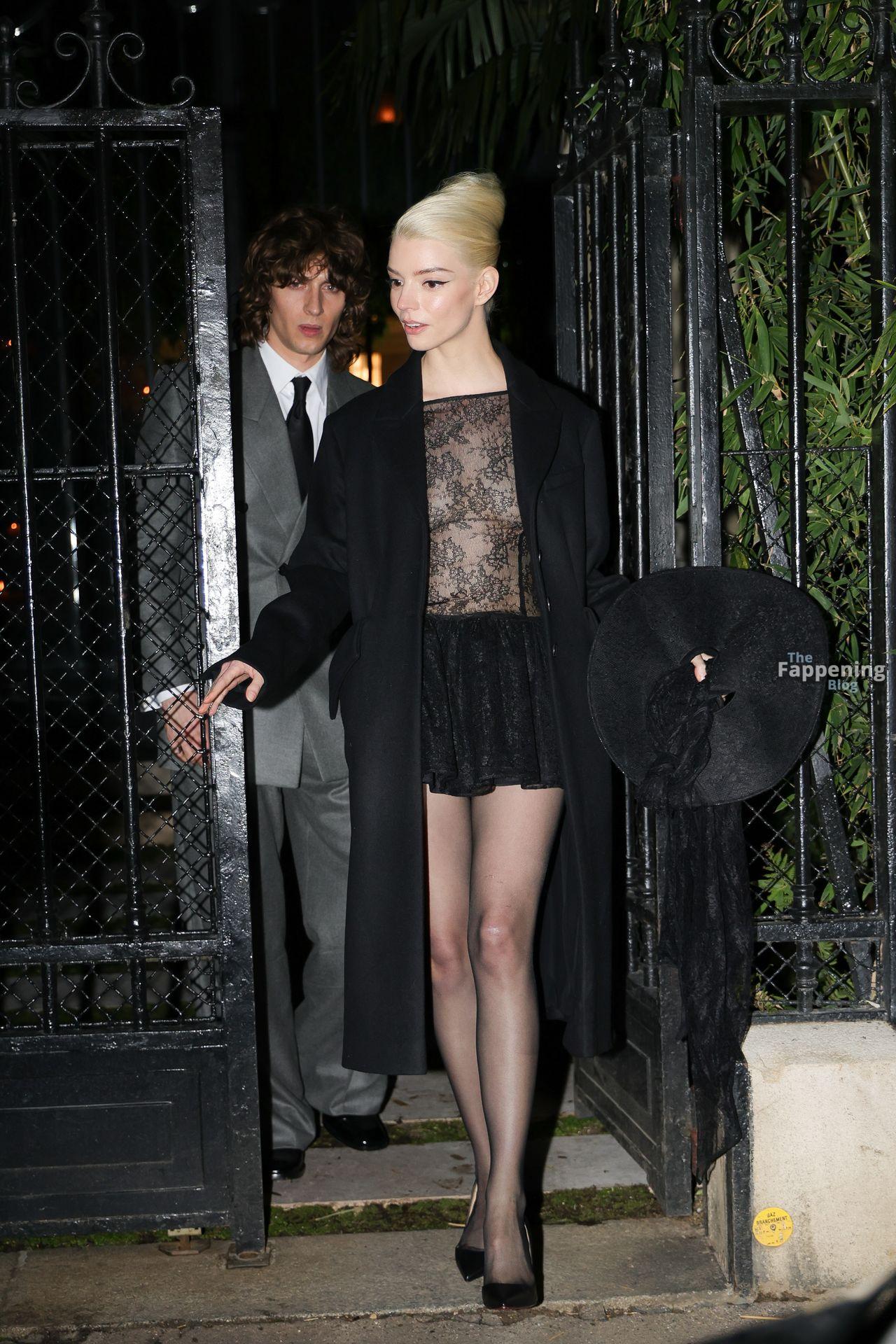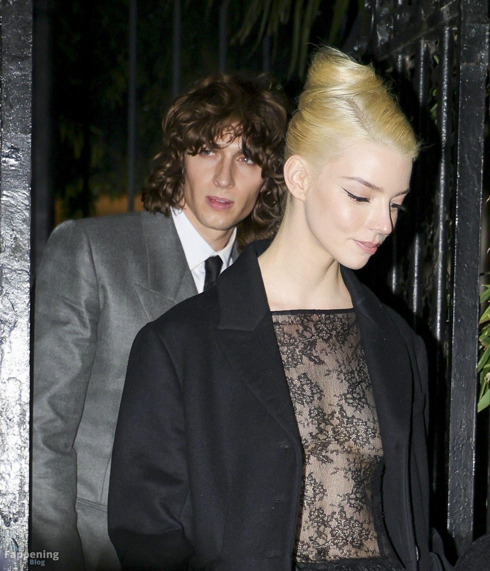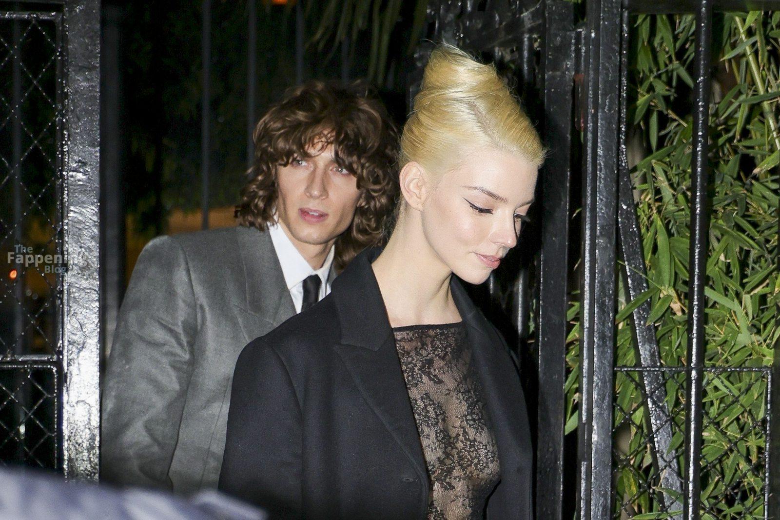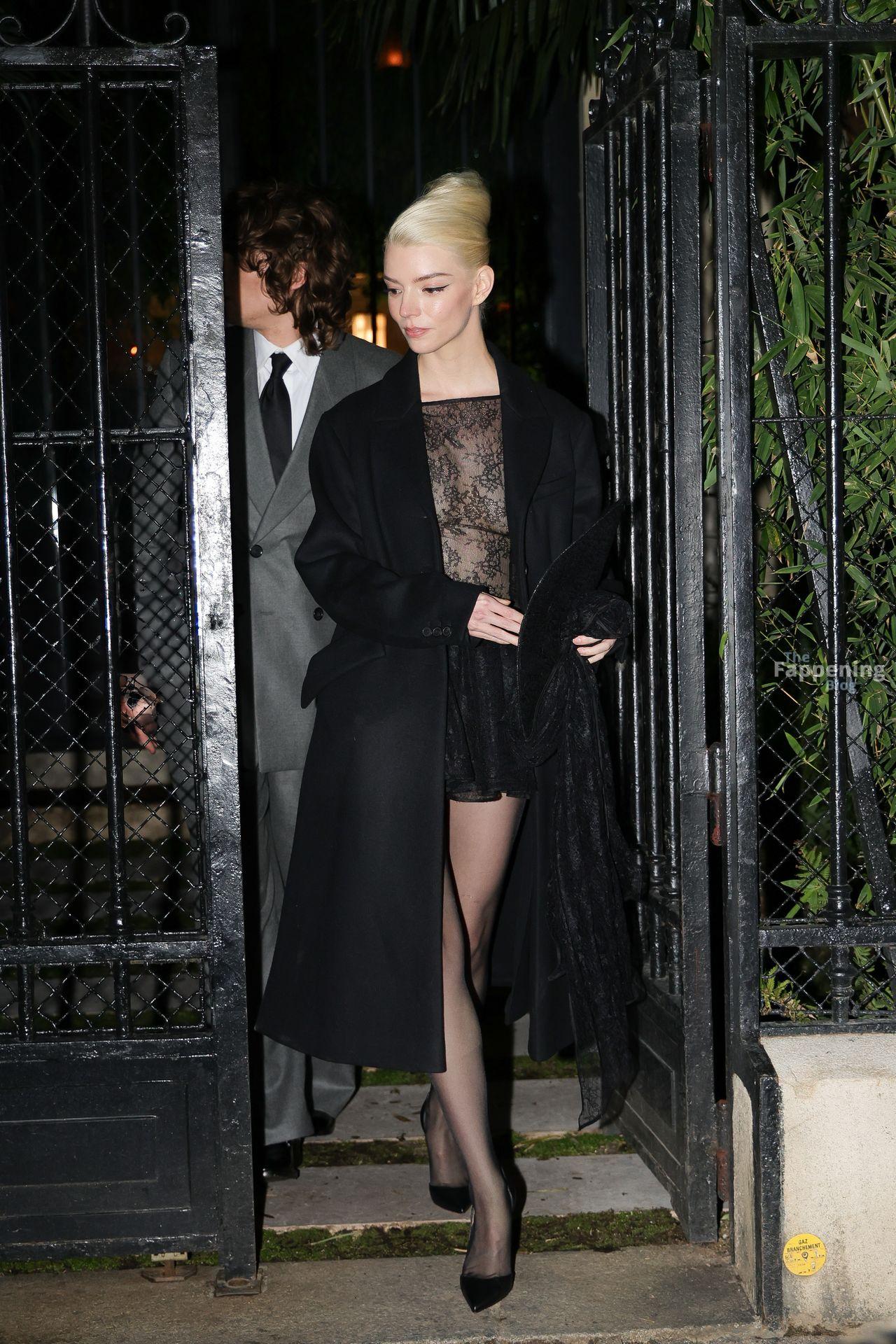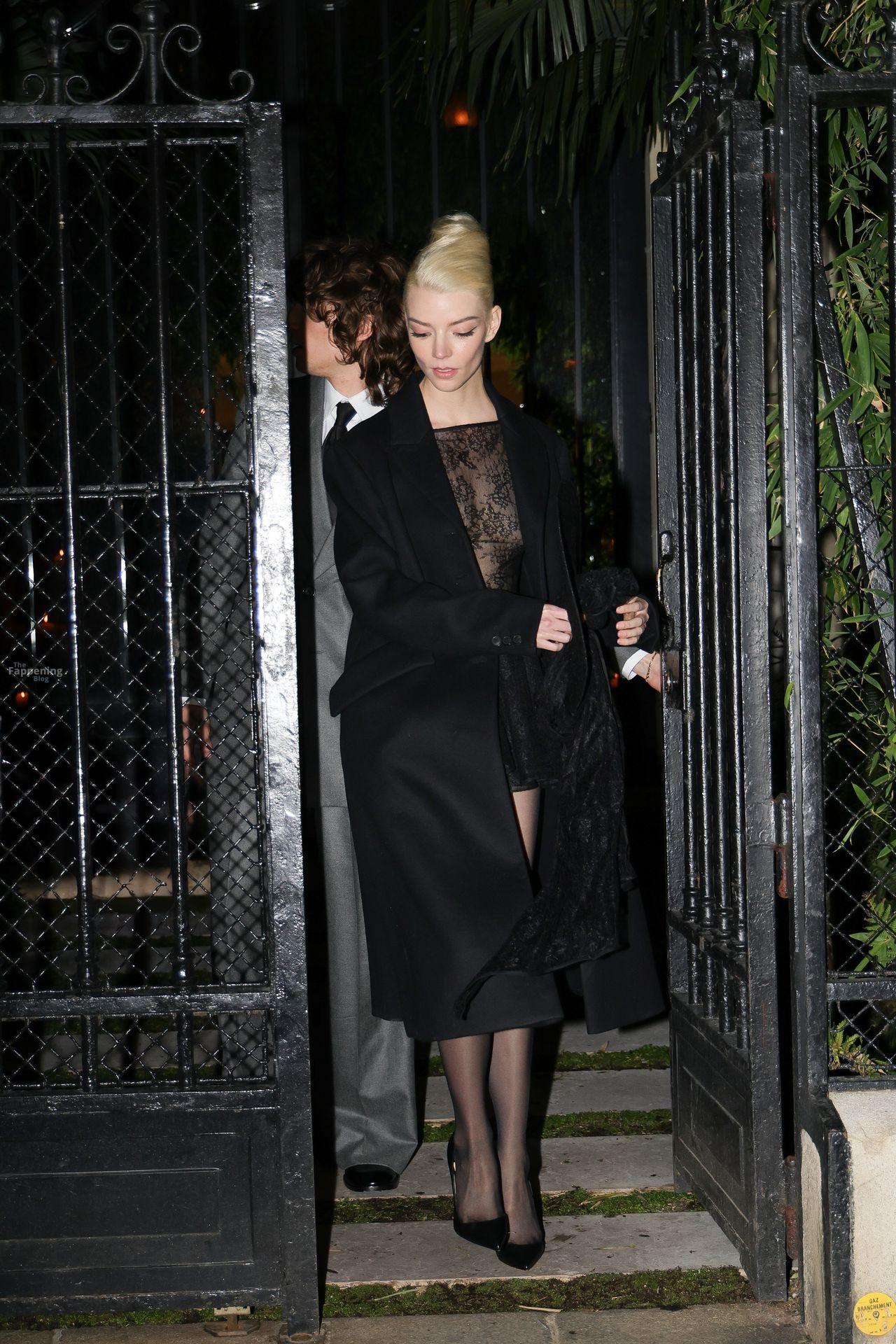 Anya Taylor-Joy and Malcolm McRae dipped out of Lenny Kravitz’s Paris house party in total boss mode. Anya was out here rocking a see-through lace dress and black stockings, no bra needed.