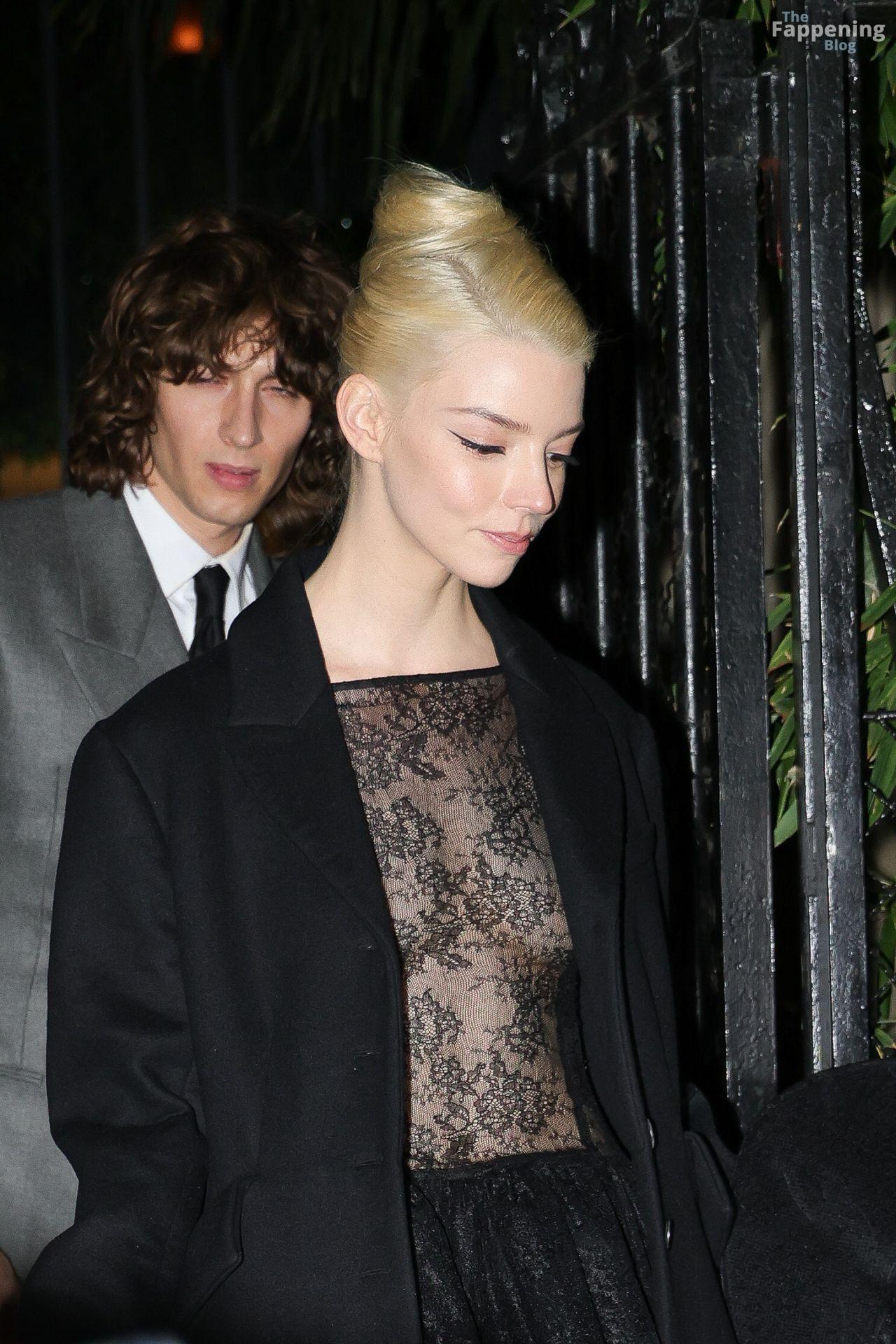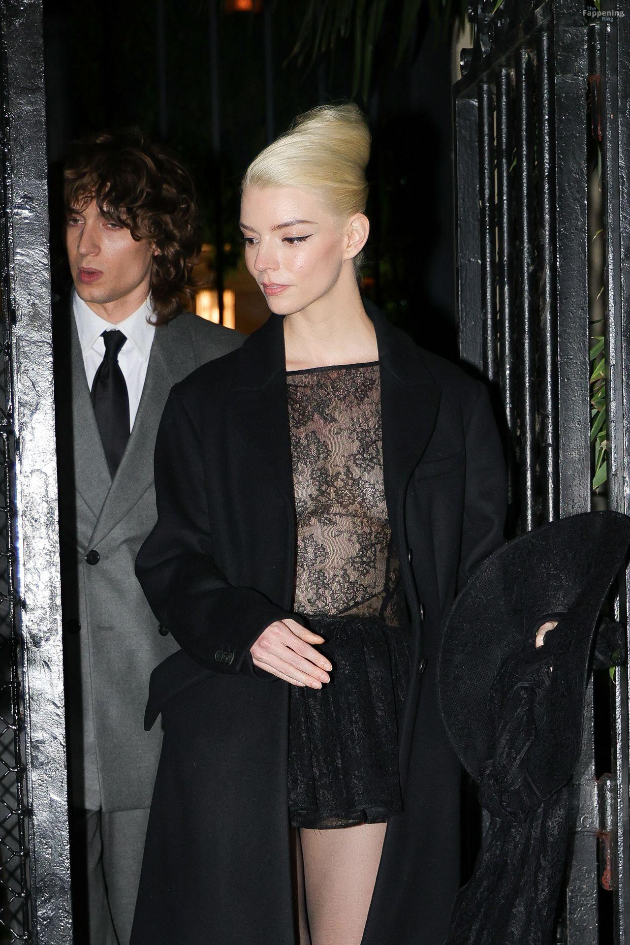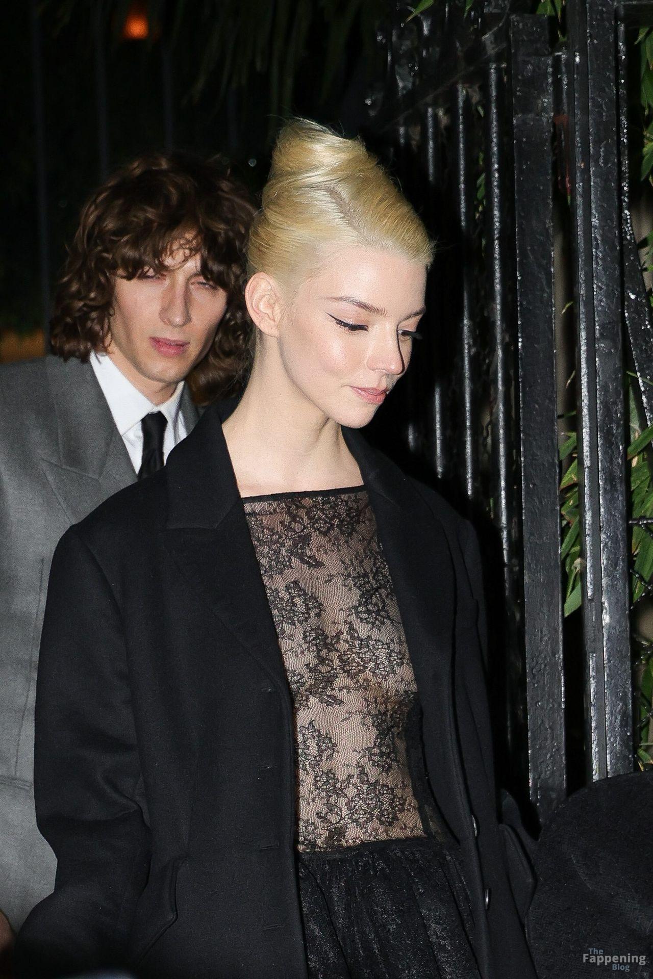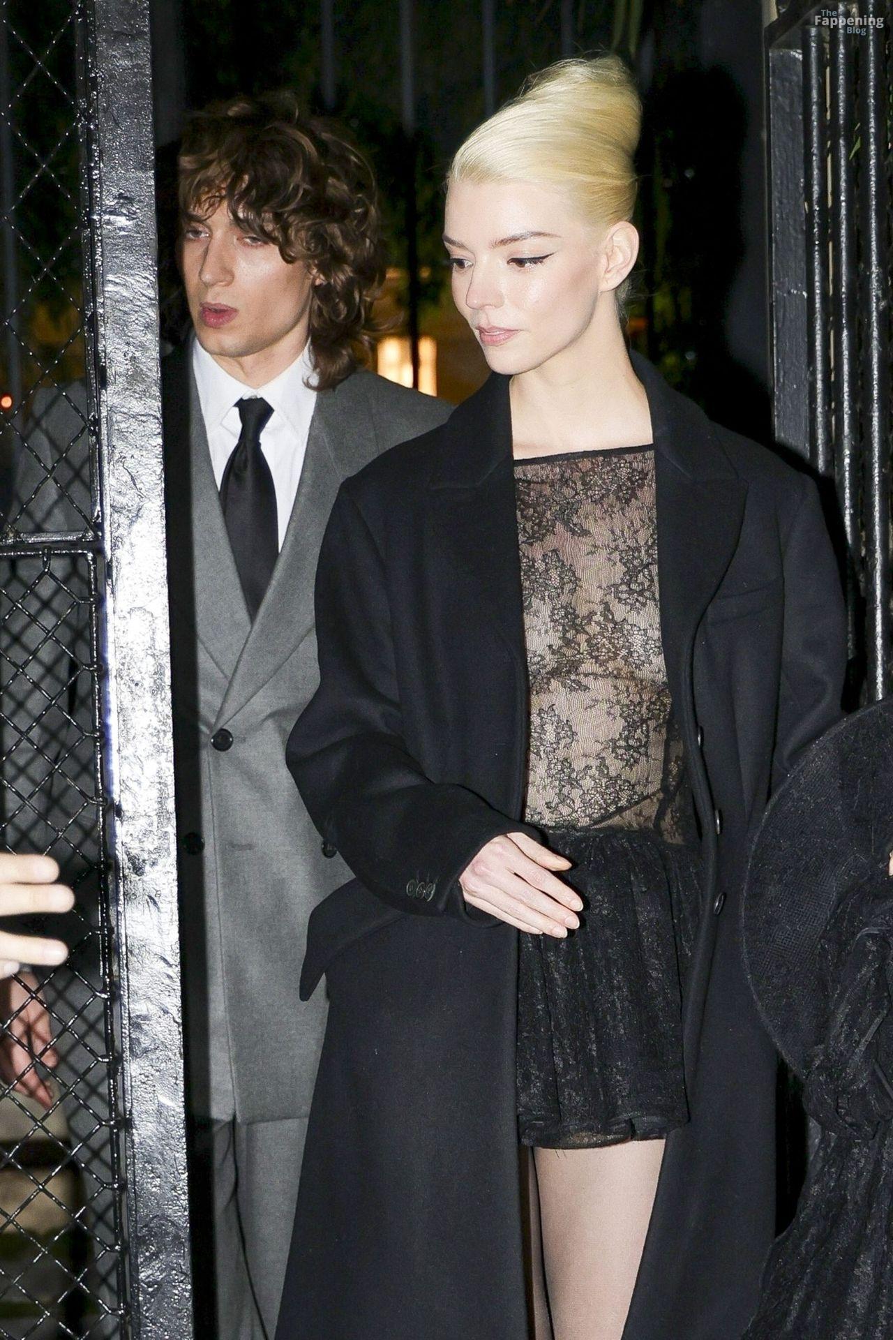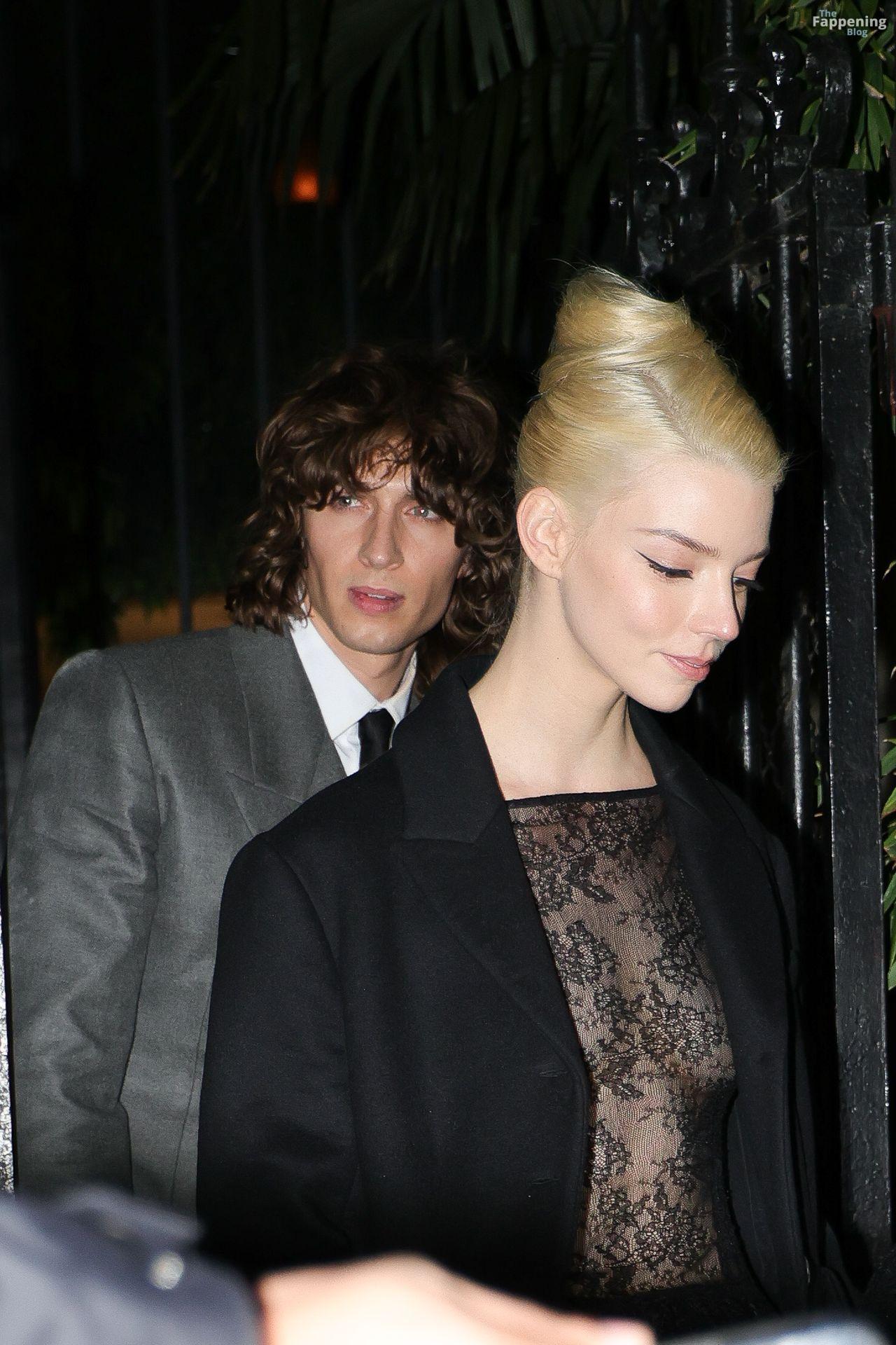 Anya Taylor-Joy and Malcolm McRae dipped out of Lenny Kravitz’s Paris house party in total boss mode. Anya was out here rocking a see-through lace dress and black stockings, no bra needed.