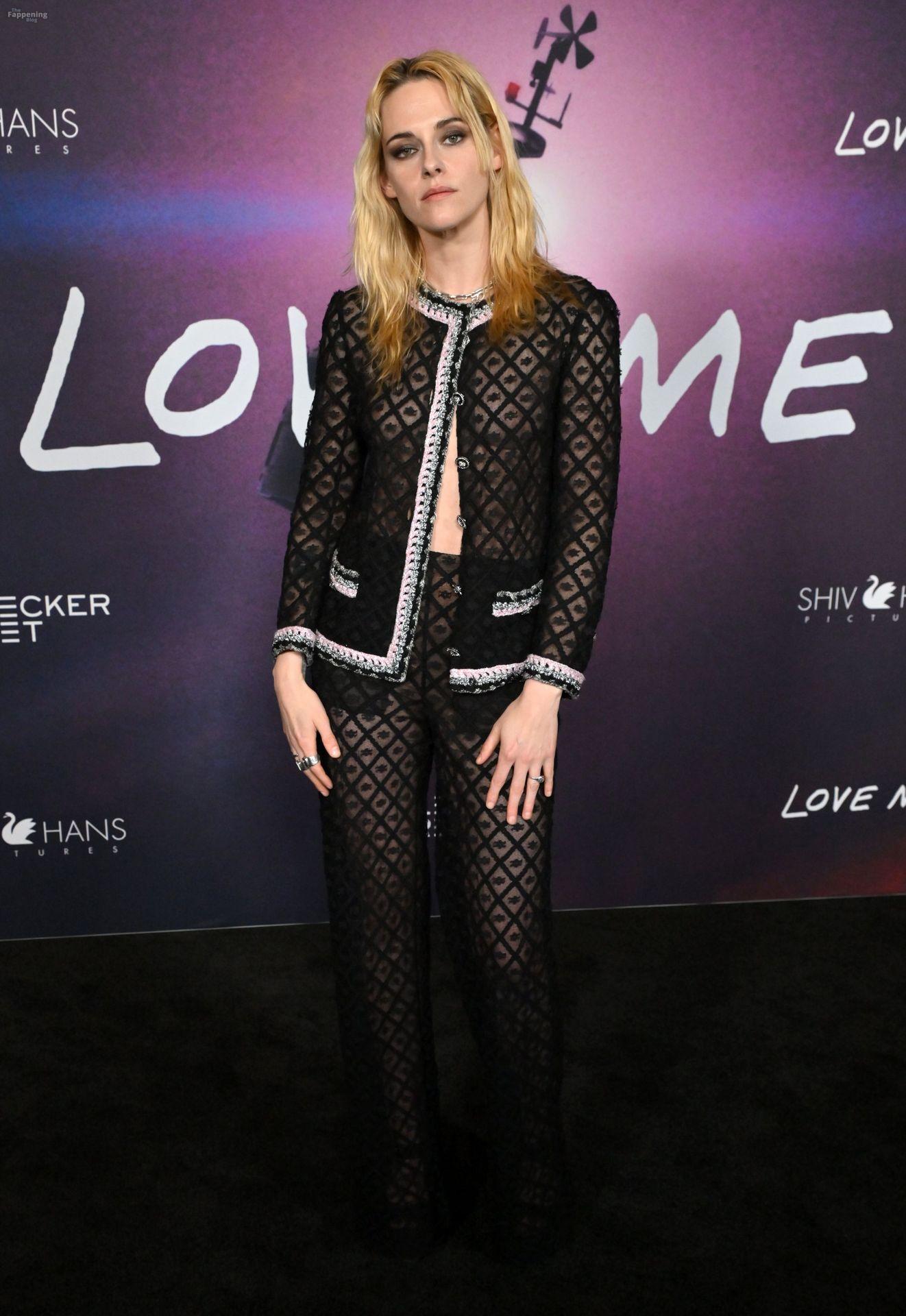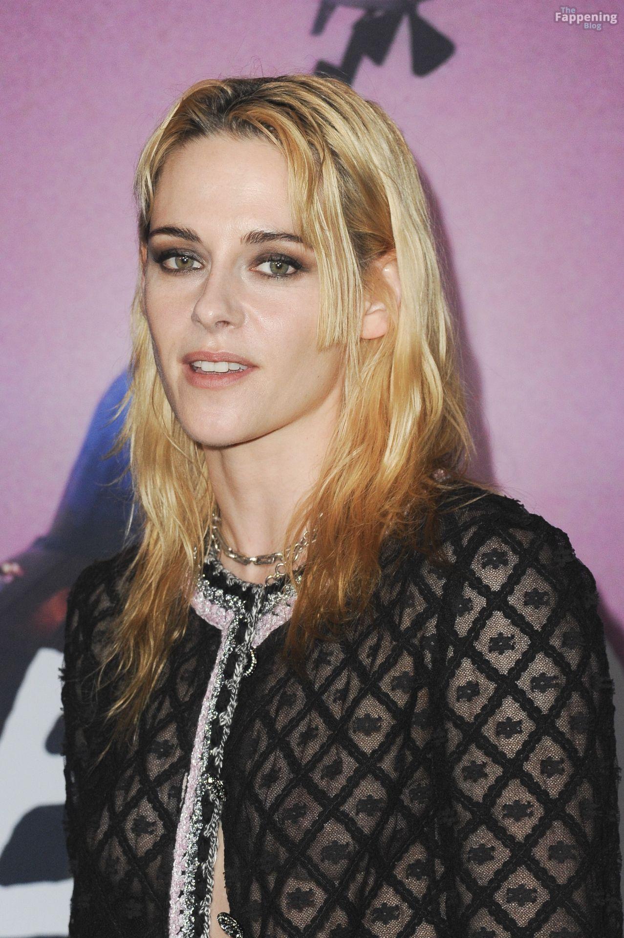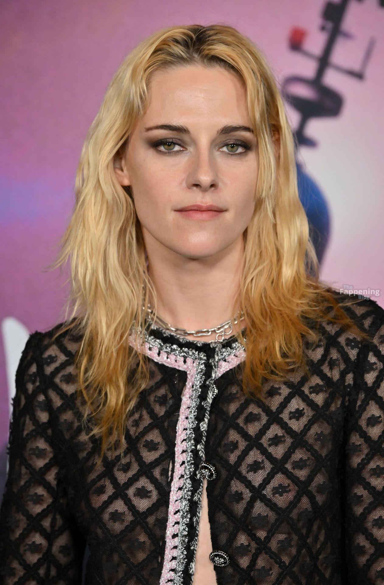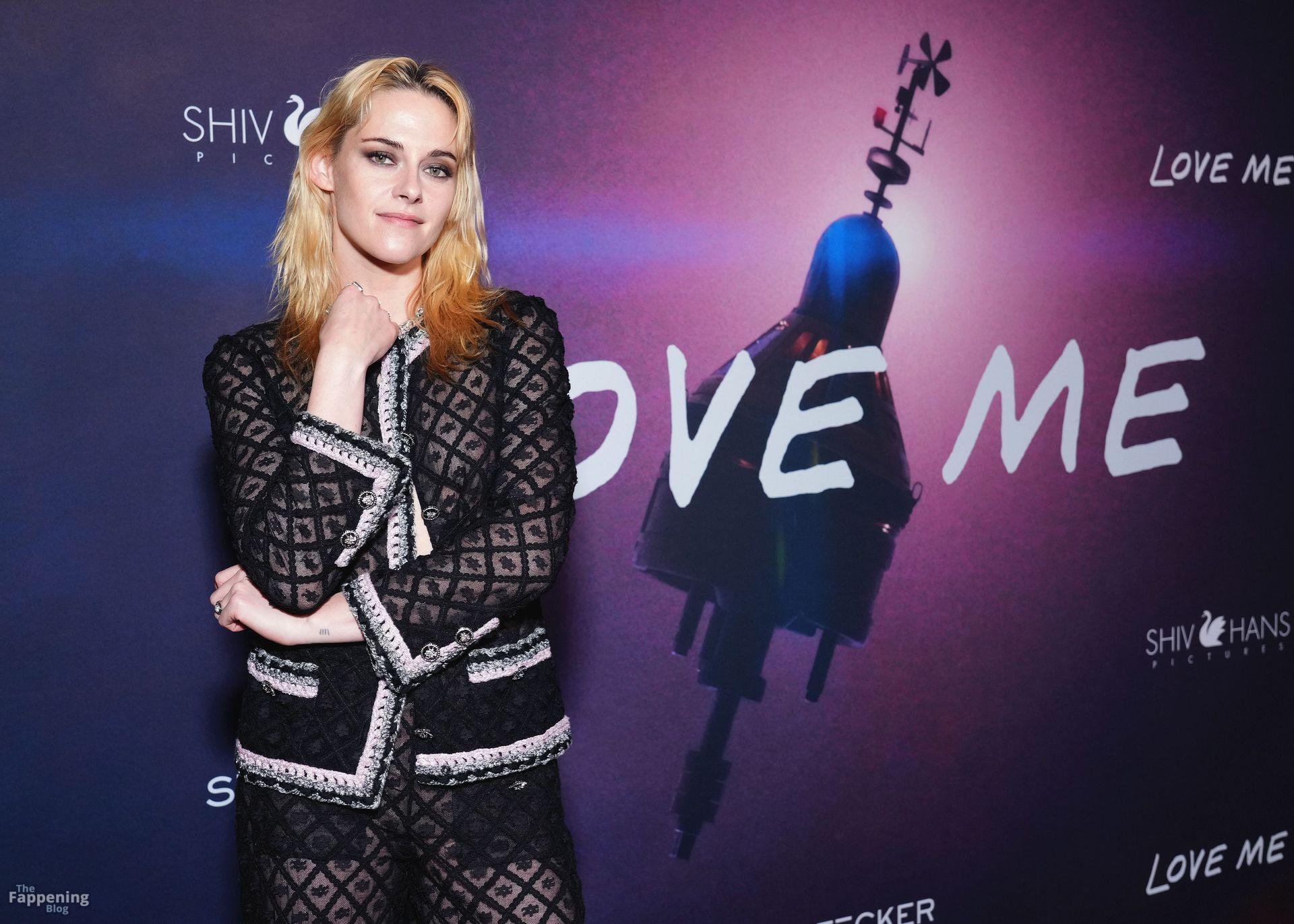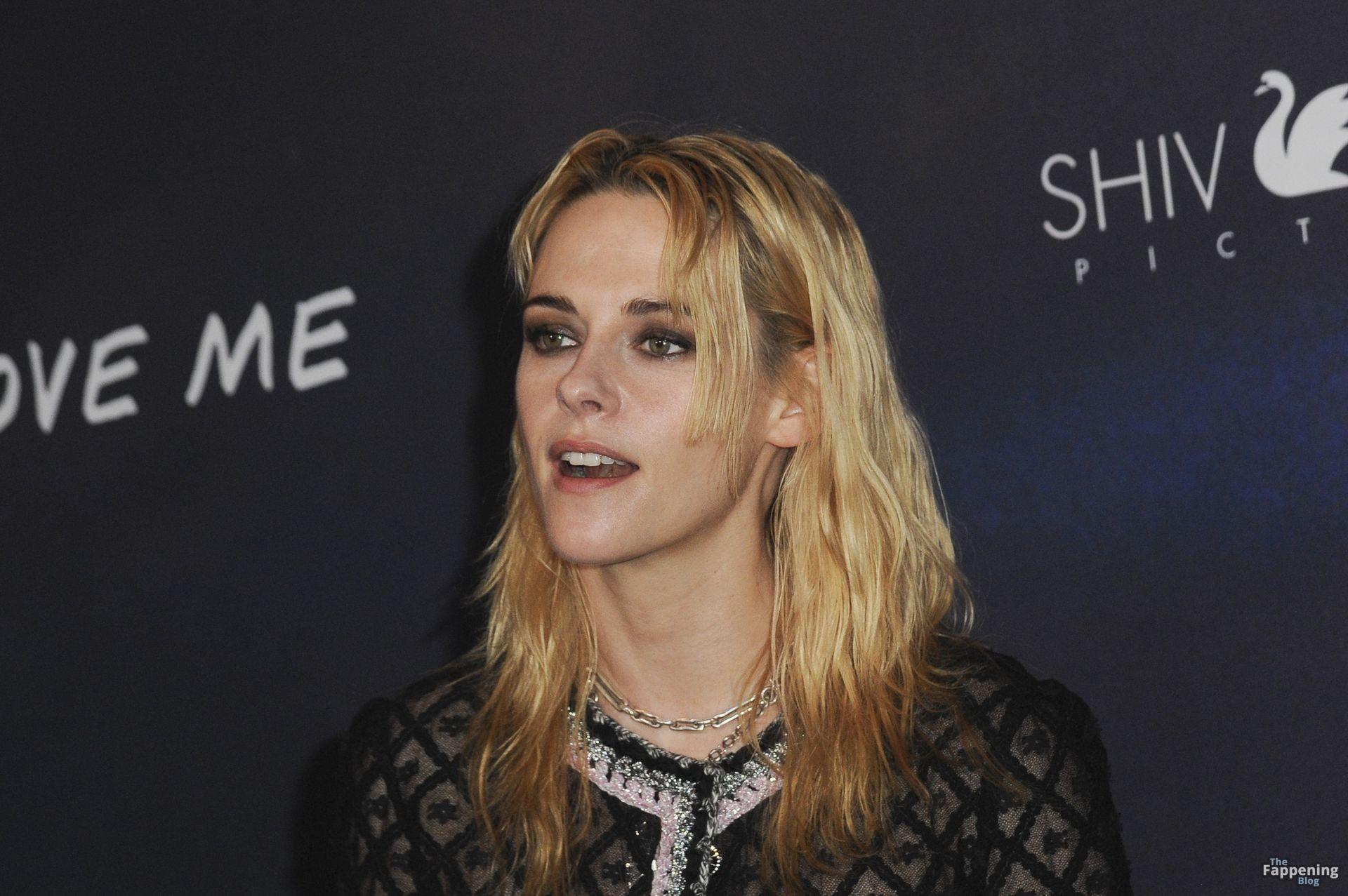 The Fappening Star Kristen Stewart goes braless, rockin’ a sleek black Chanel jacket at the “Love Me” screening in LA. She had her icy blonde hair flowin’ over her shoulders.