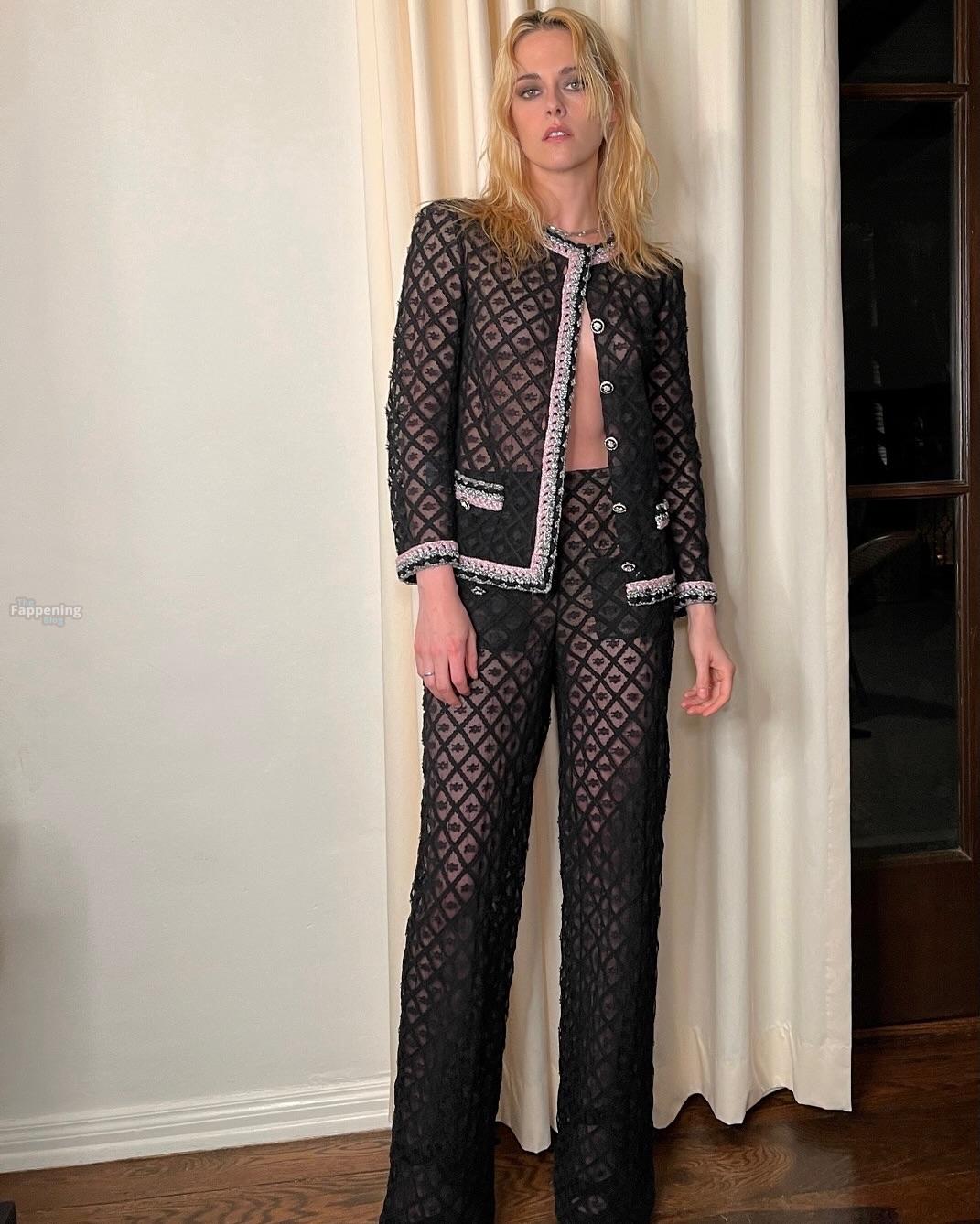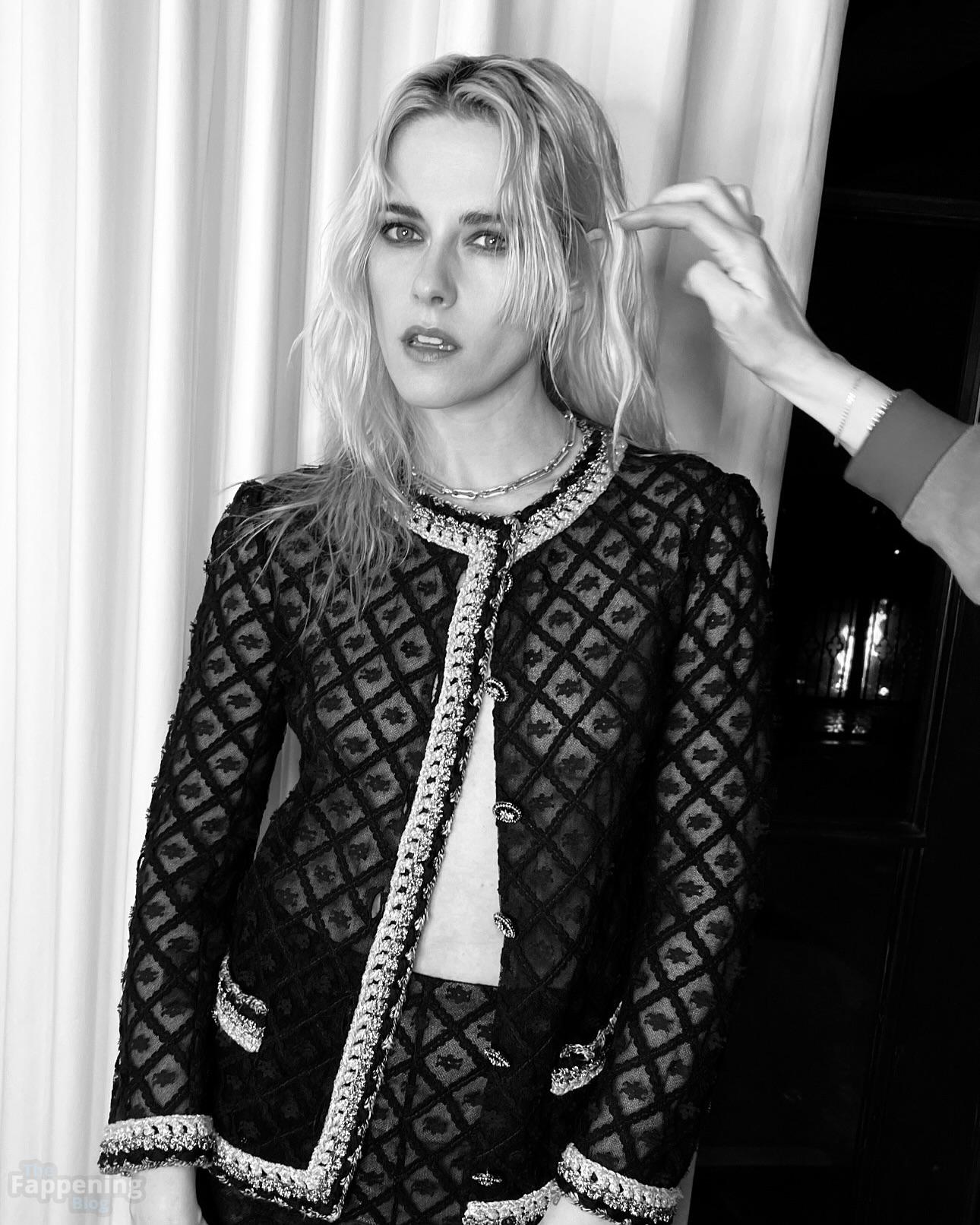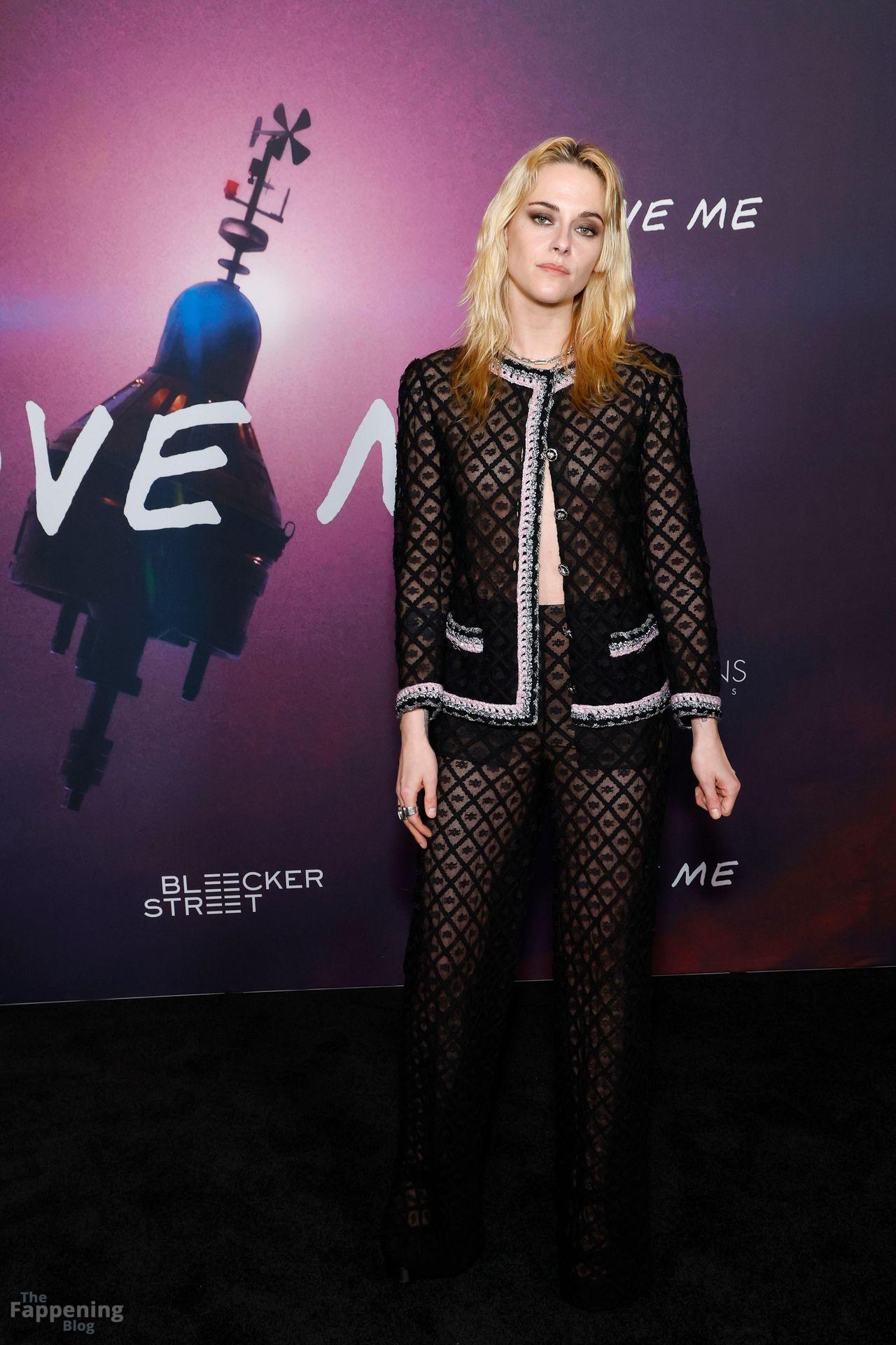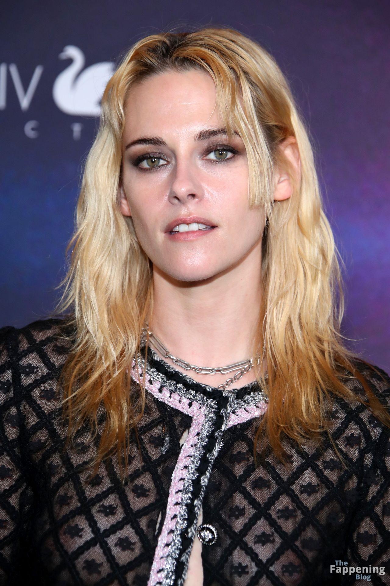 The Fappening Star Kristen Stewart goes braless, rockin’ a sleek black Chanel jacket at the “Love Me” screening in LA. She had her icy blonde hair flowin’ over her shoulders.