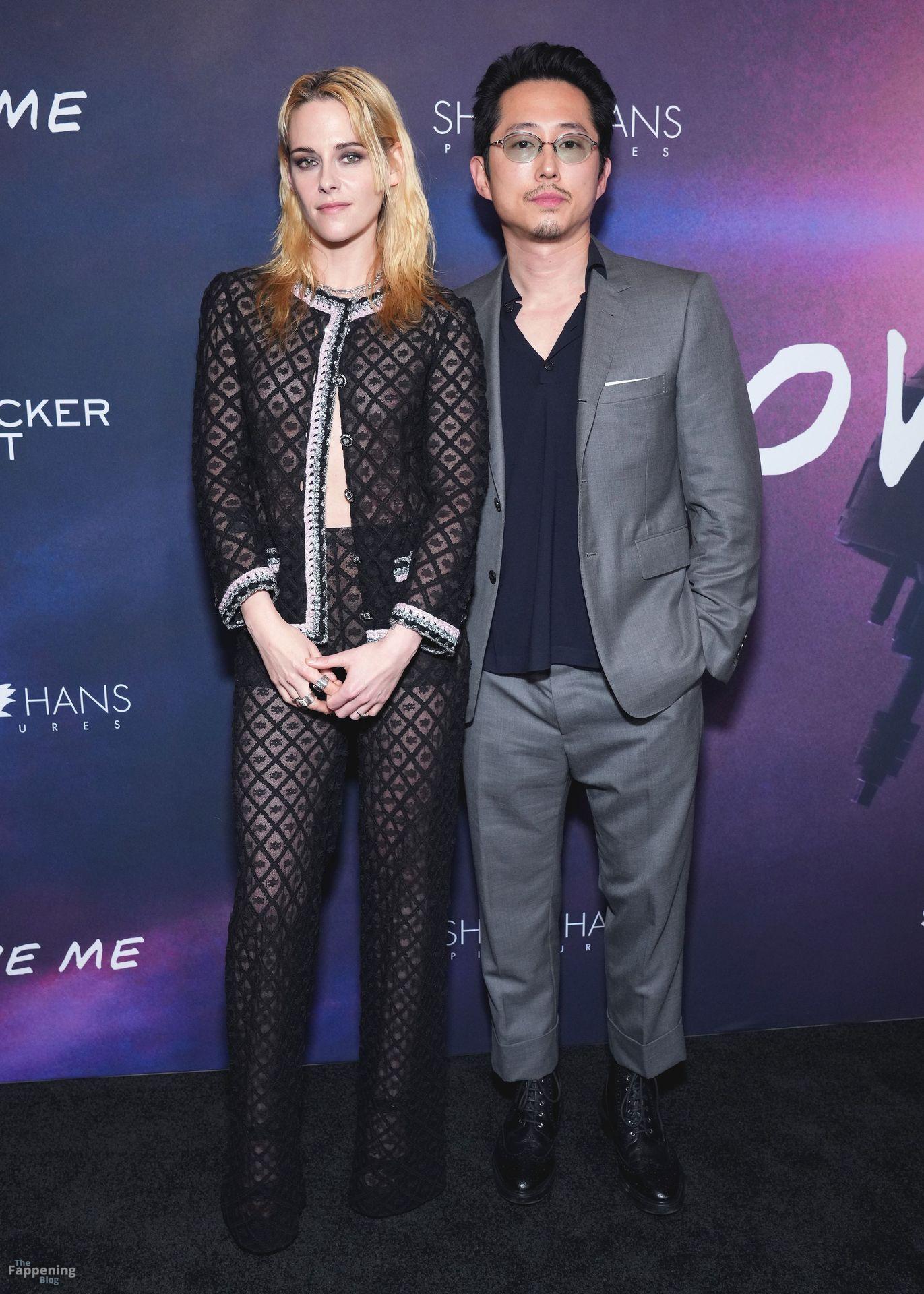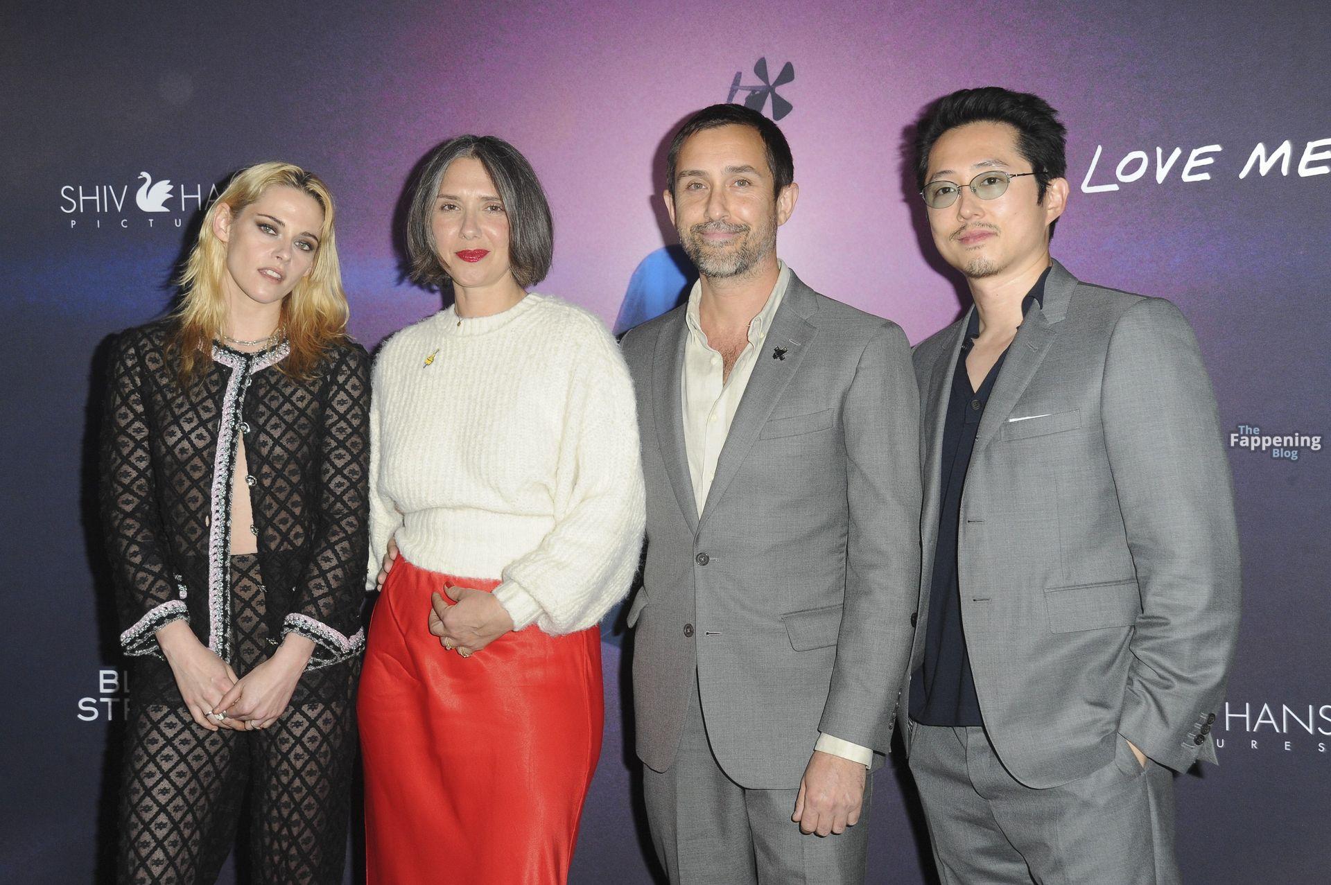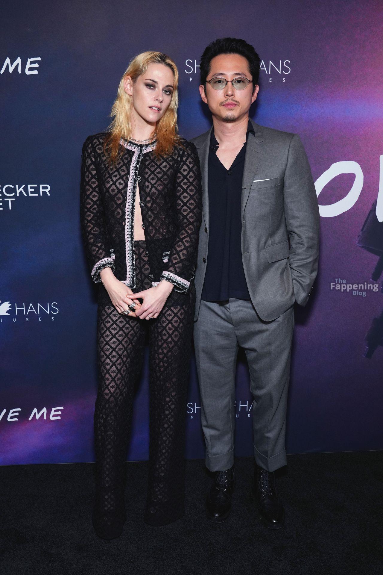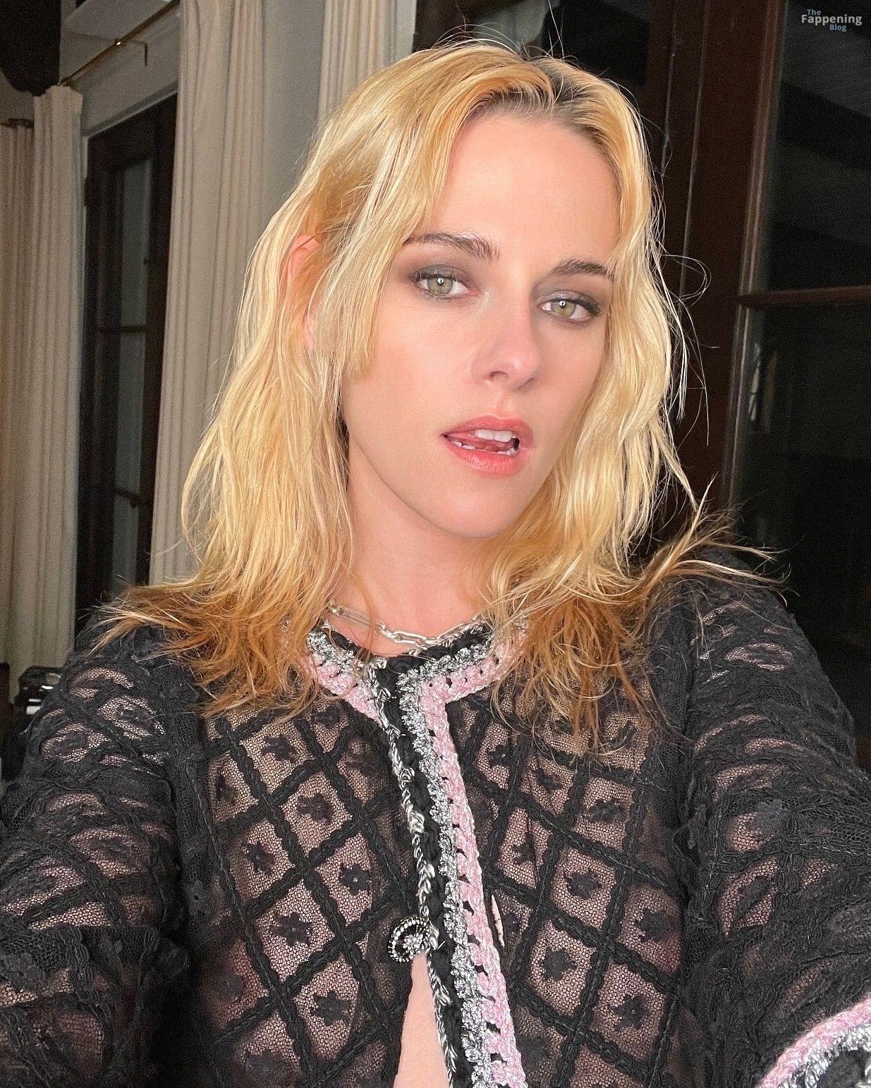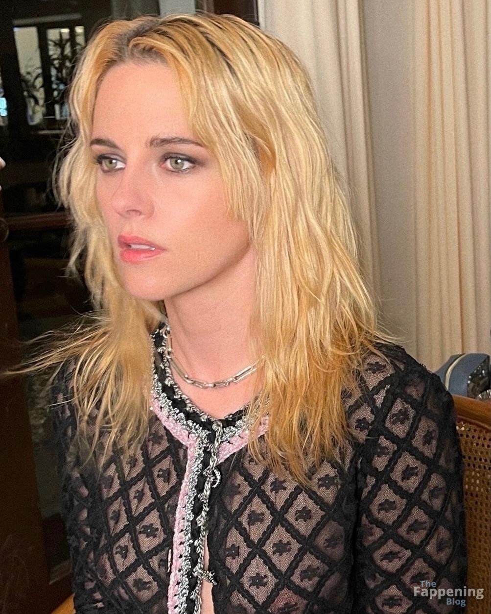 The Fappening Star Kristen Stewart goes braless, rockin’ a sleek black Chanel jacket at the “Love Me” screening in LA. She had her icy blonde hair flowin’ over her shoulders.