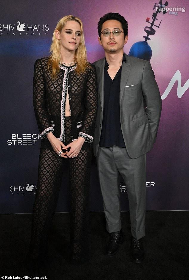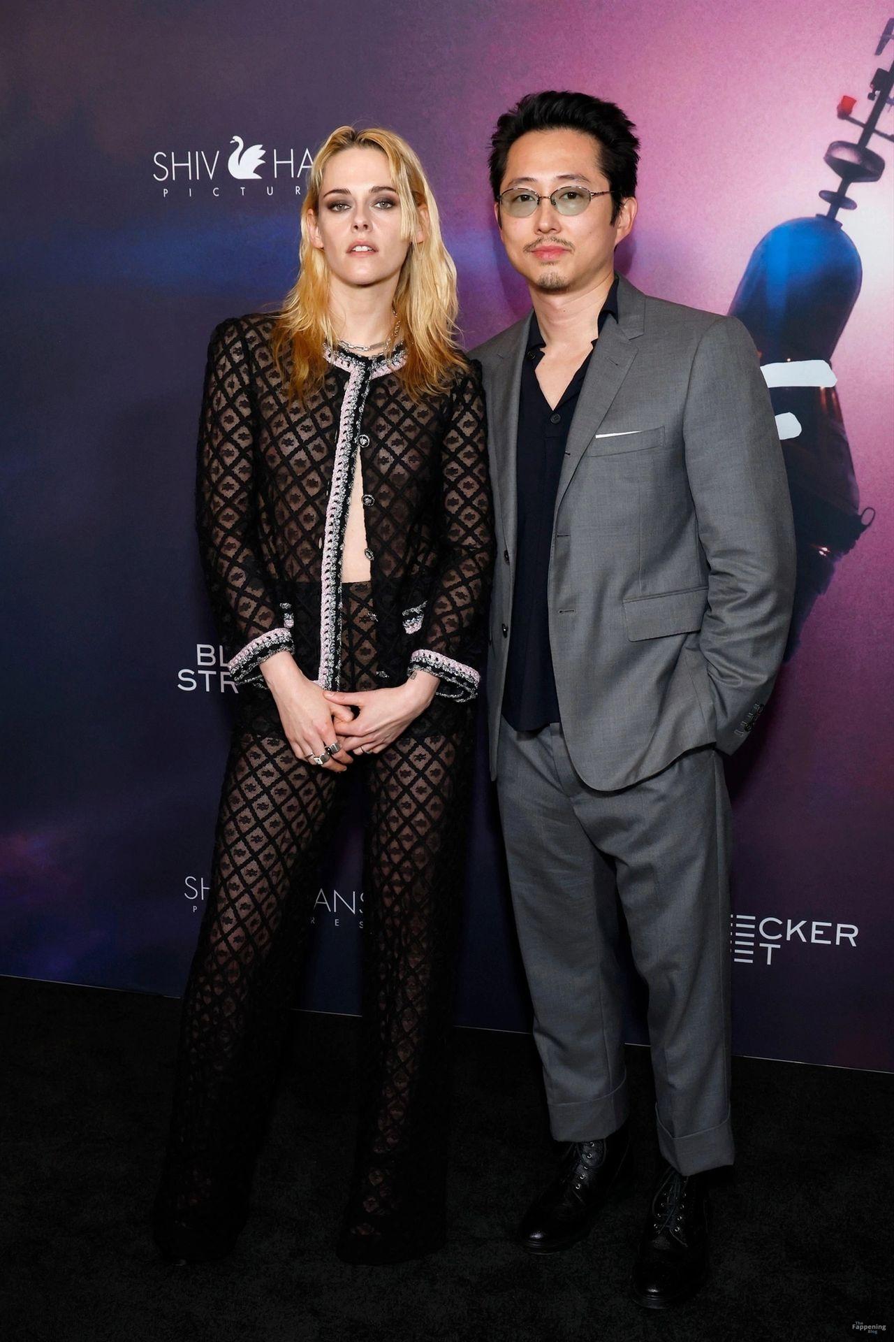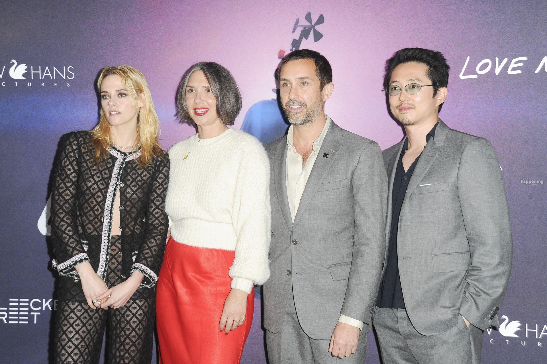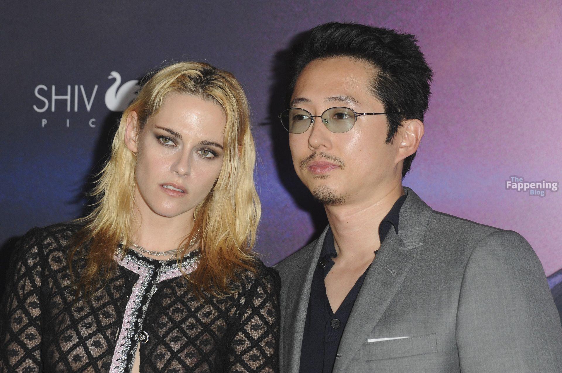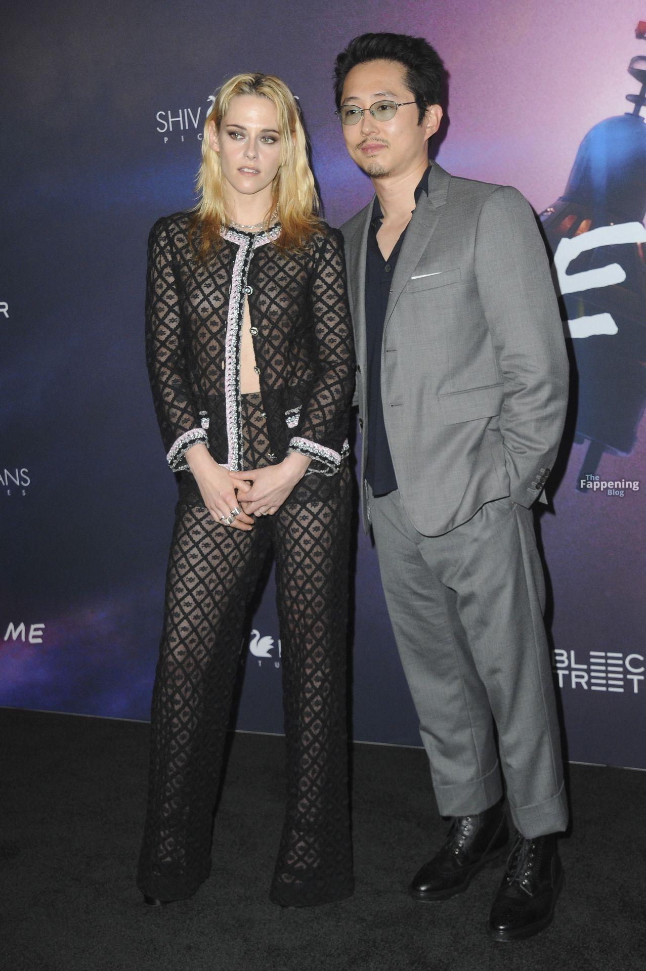 The Fappening Star Kristen Stewart goes braless, rockin’ a sleek black Chanel jacket at the “Love Me” screening in LA. She had her icy blonde hair flowin’ over her shoulders.