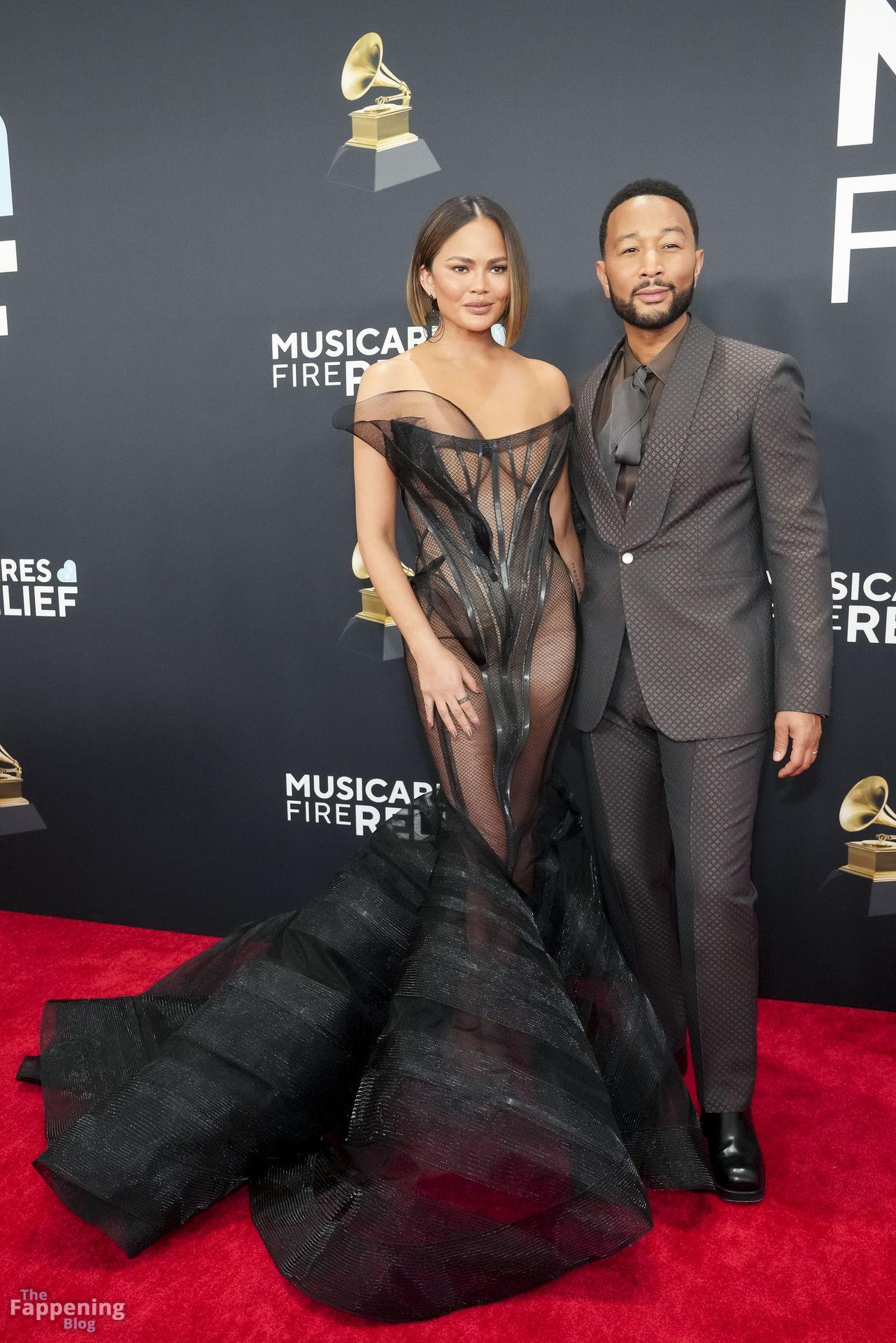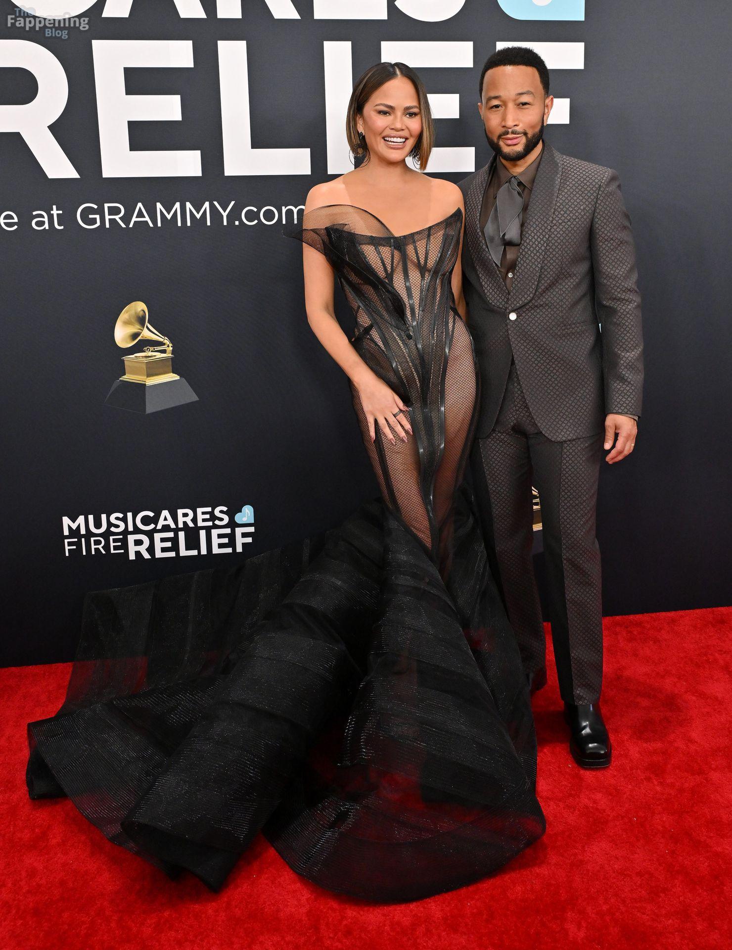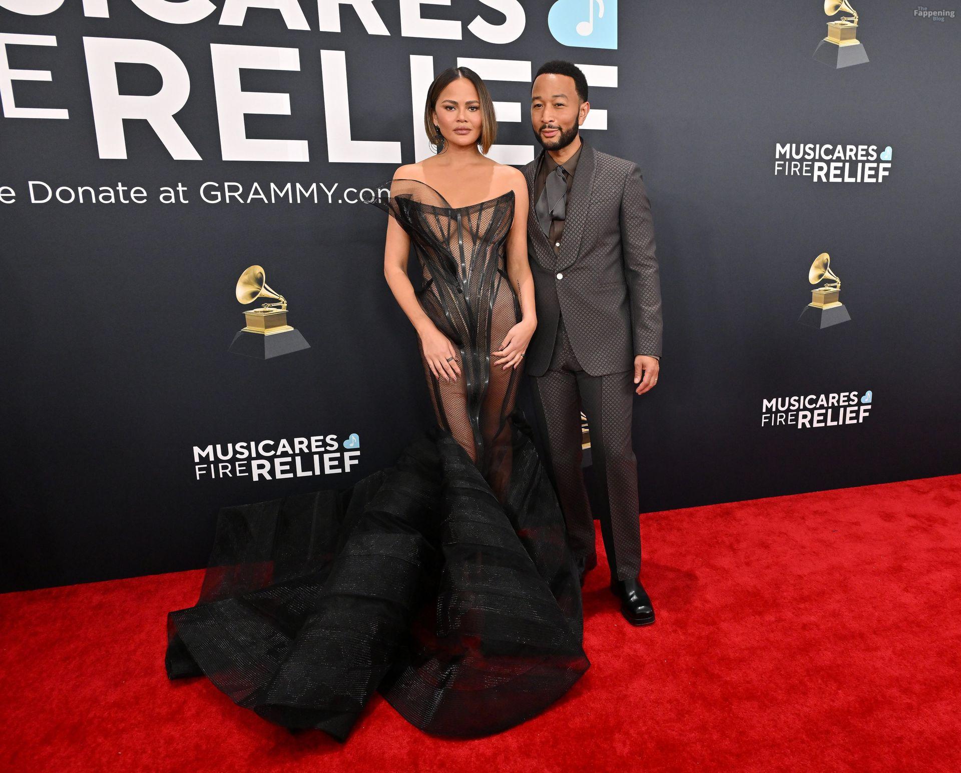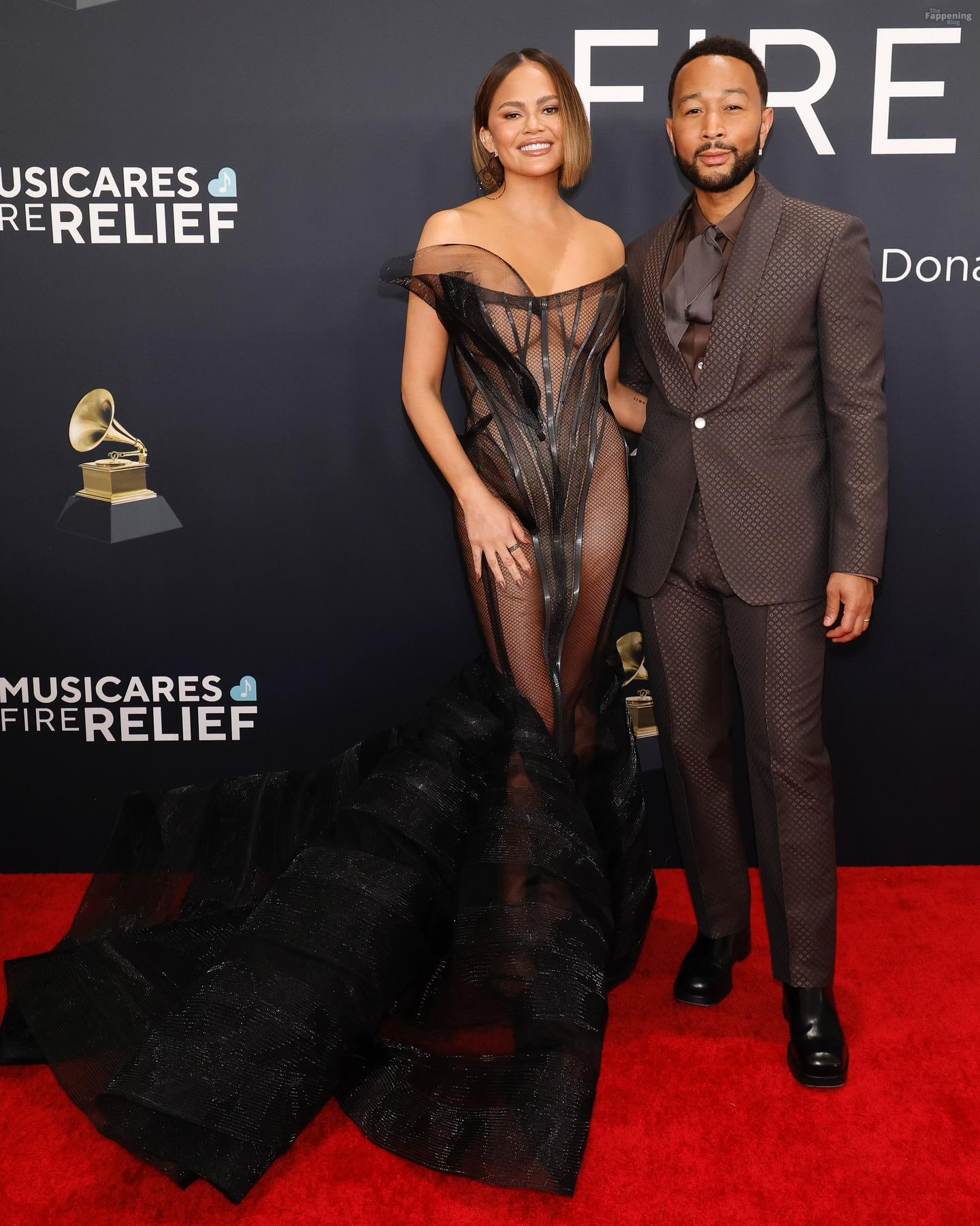 Chrissy Teigen and John Legend are seen walking on the red carpet during the 67th Grammy Awards held at Crypto.com Arena in Los Angeles, CA.