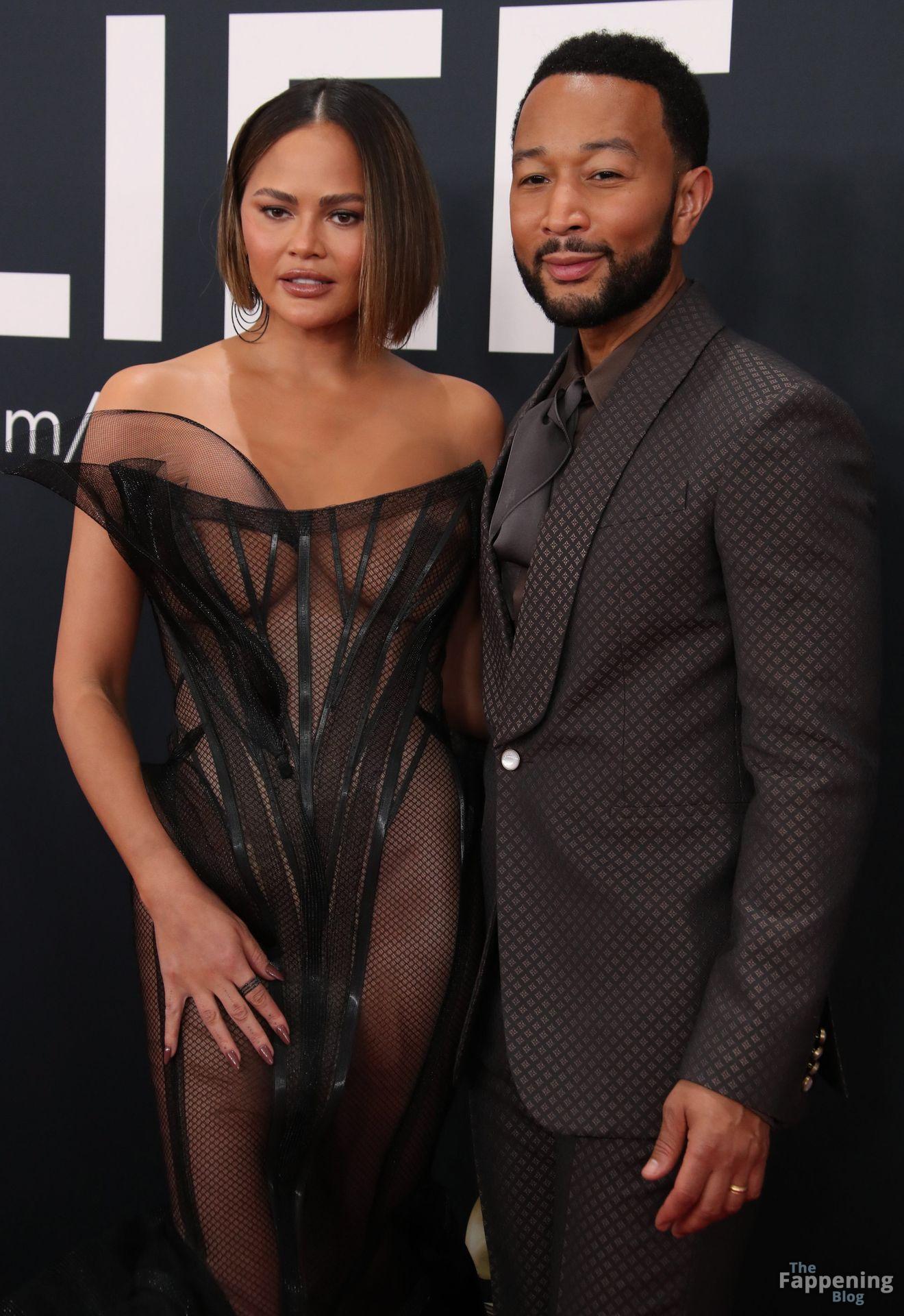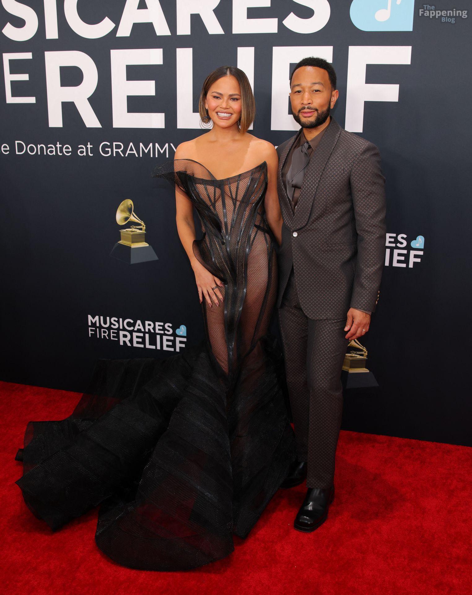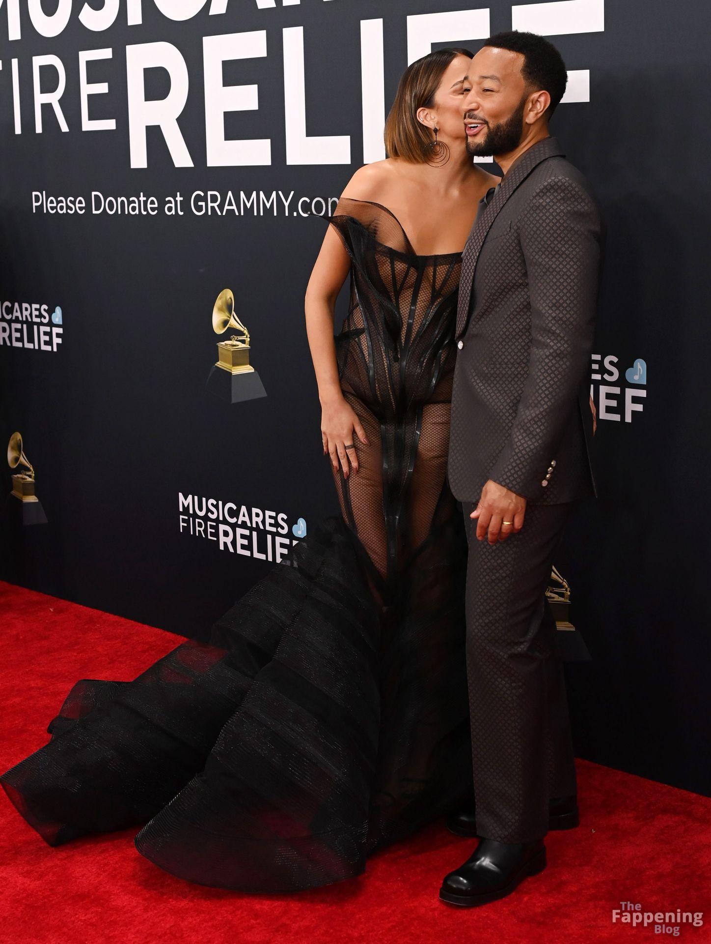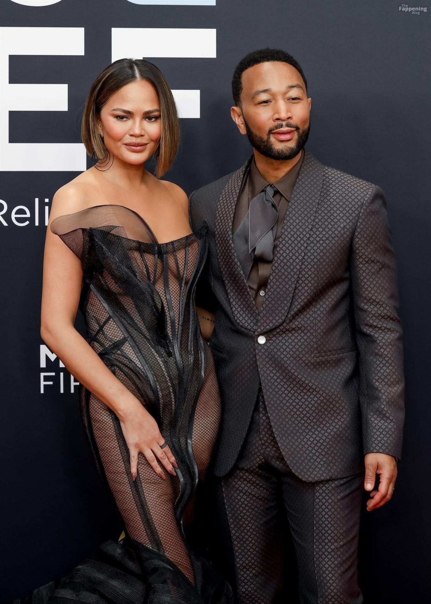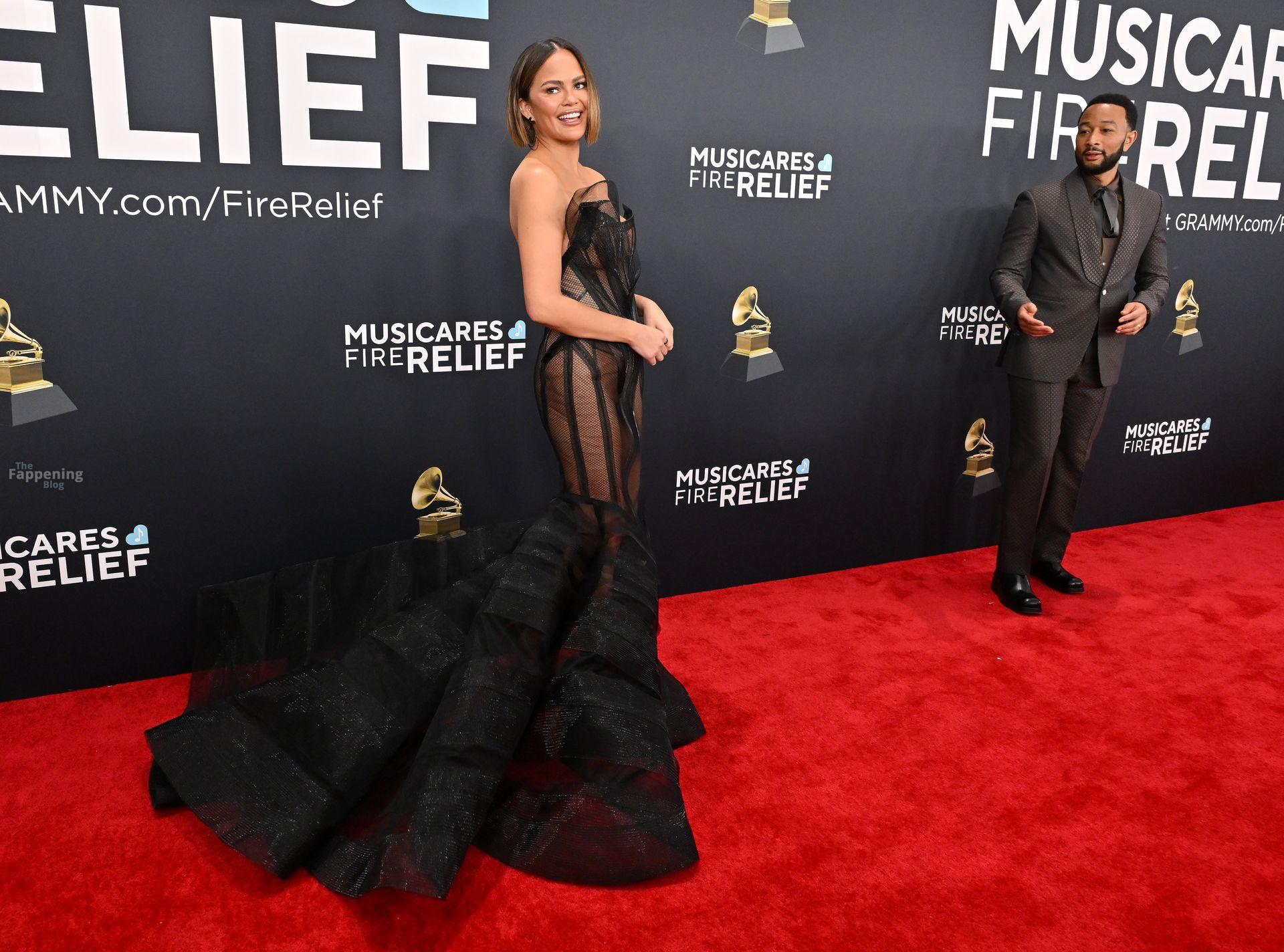 Chrissy Teigen and John Legend are seen walking on the red carpet during the 67th Grammy Awards held at Crypto.com Arena in Los Angeles, CA.