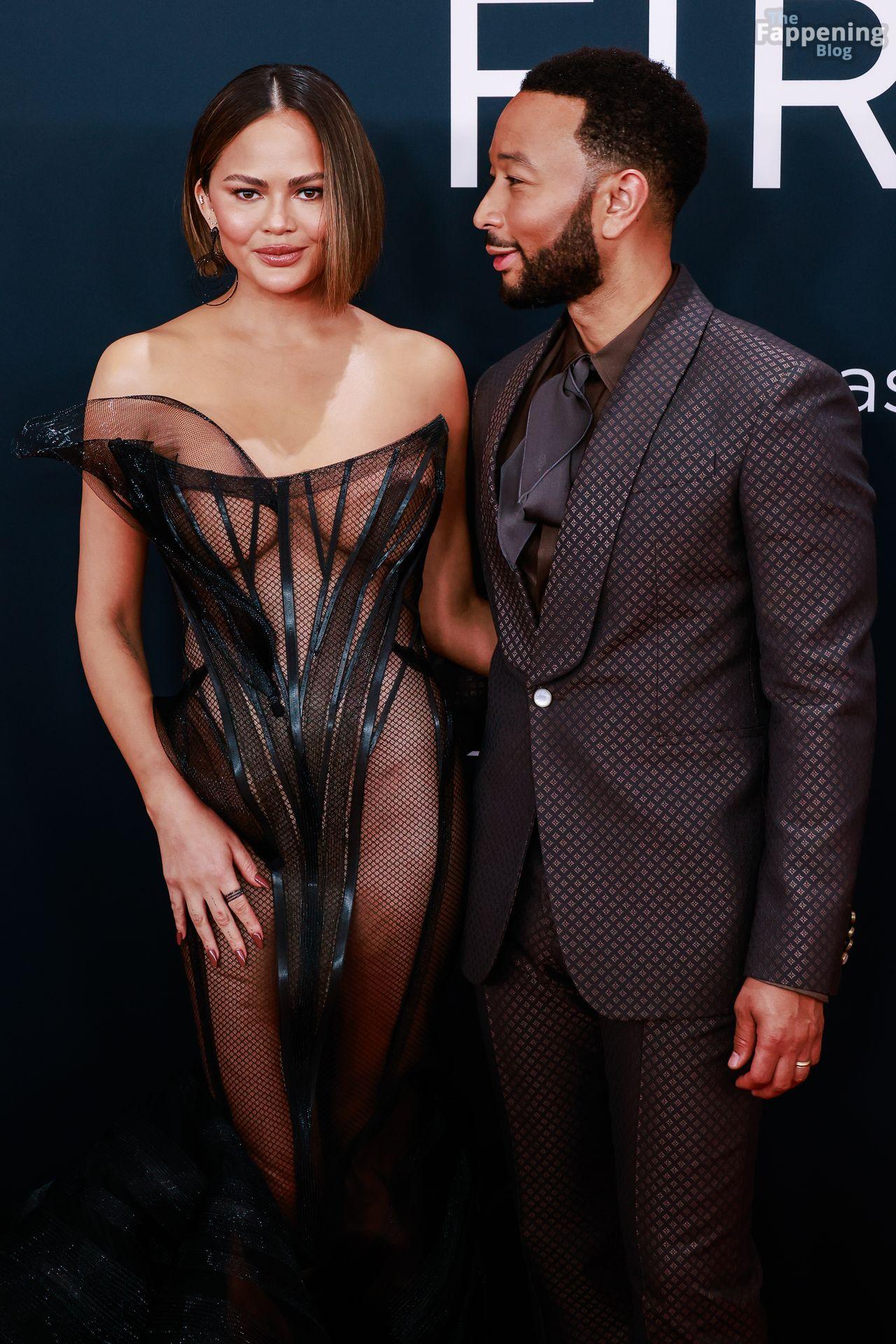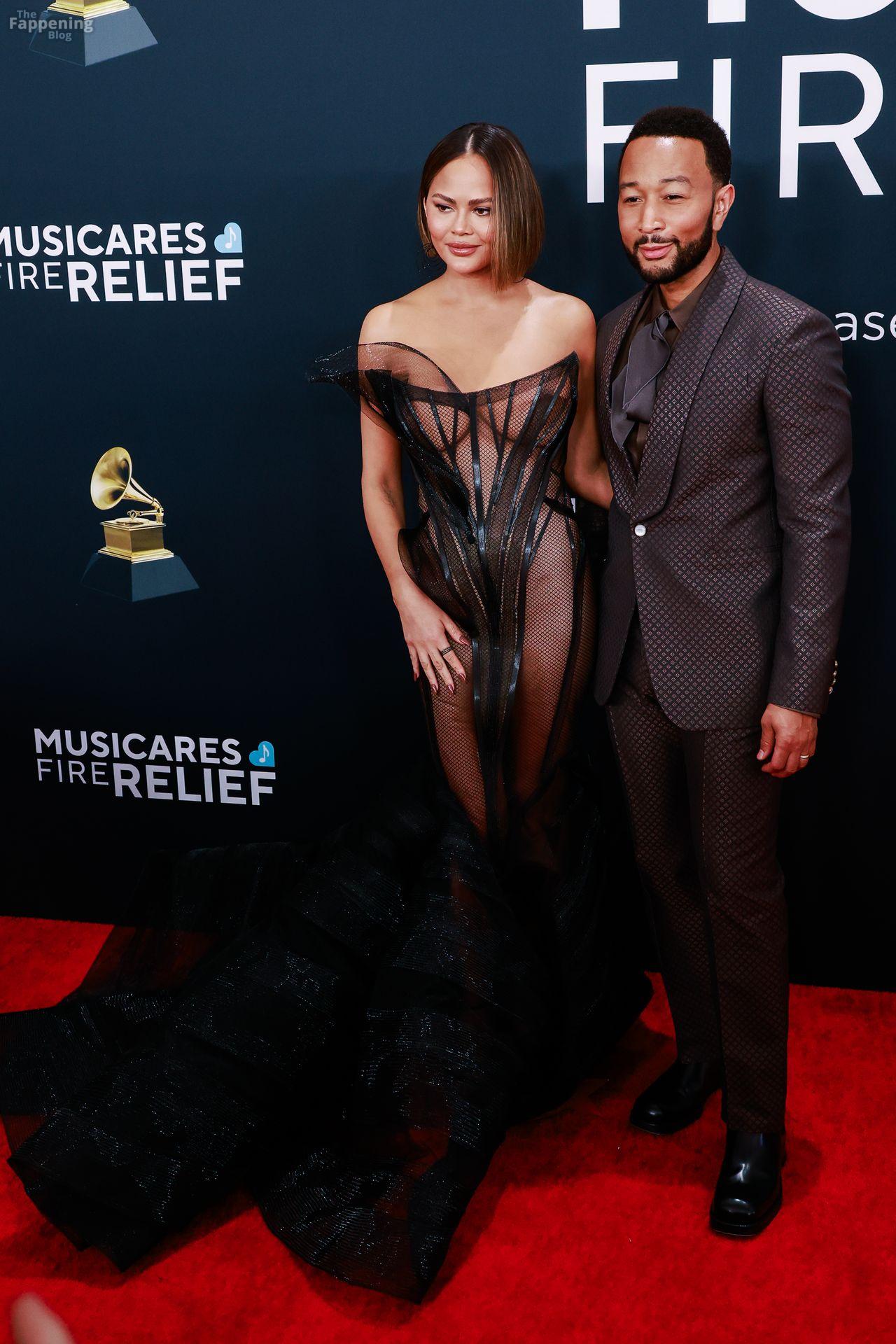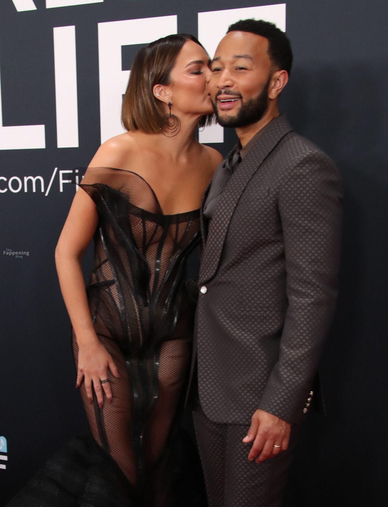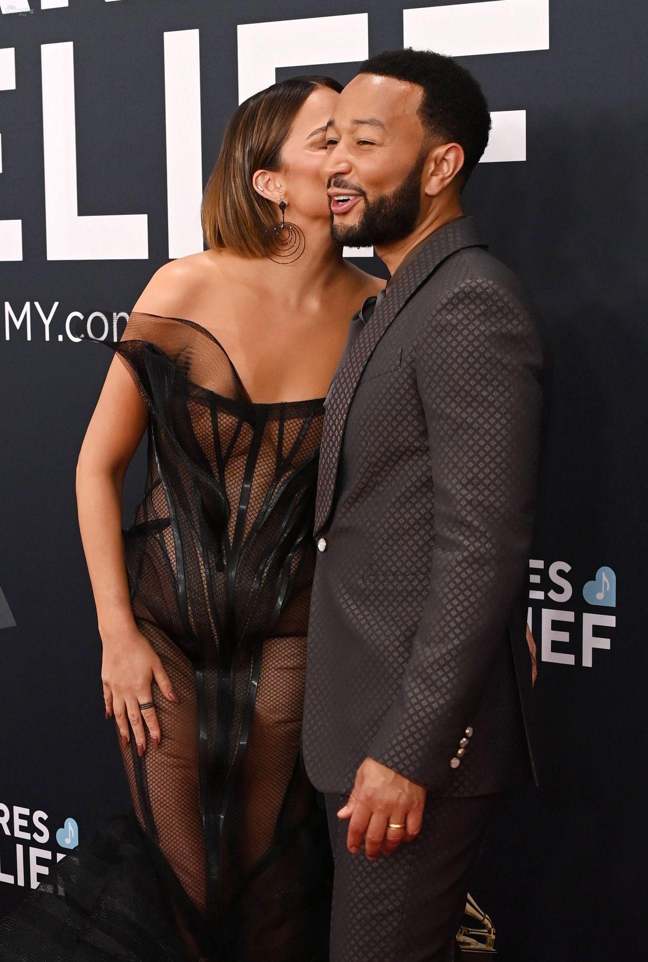 Chrissy Teigen and John Legend are seen walking on the red carpet during the 67th Grammy Awards held at Crypto.com Arena in Los Angeles, CA.