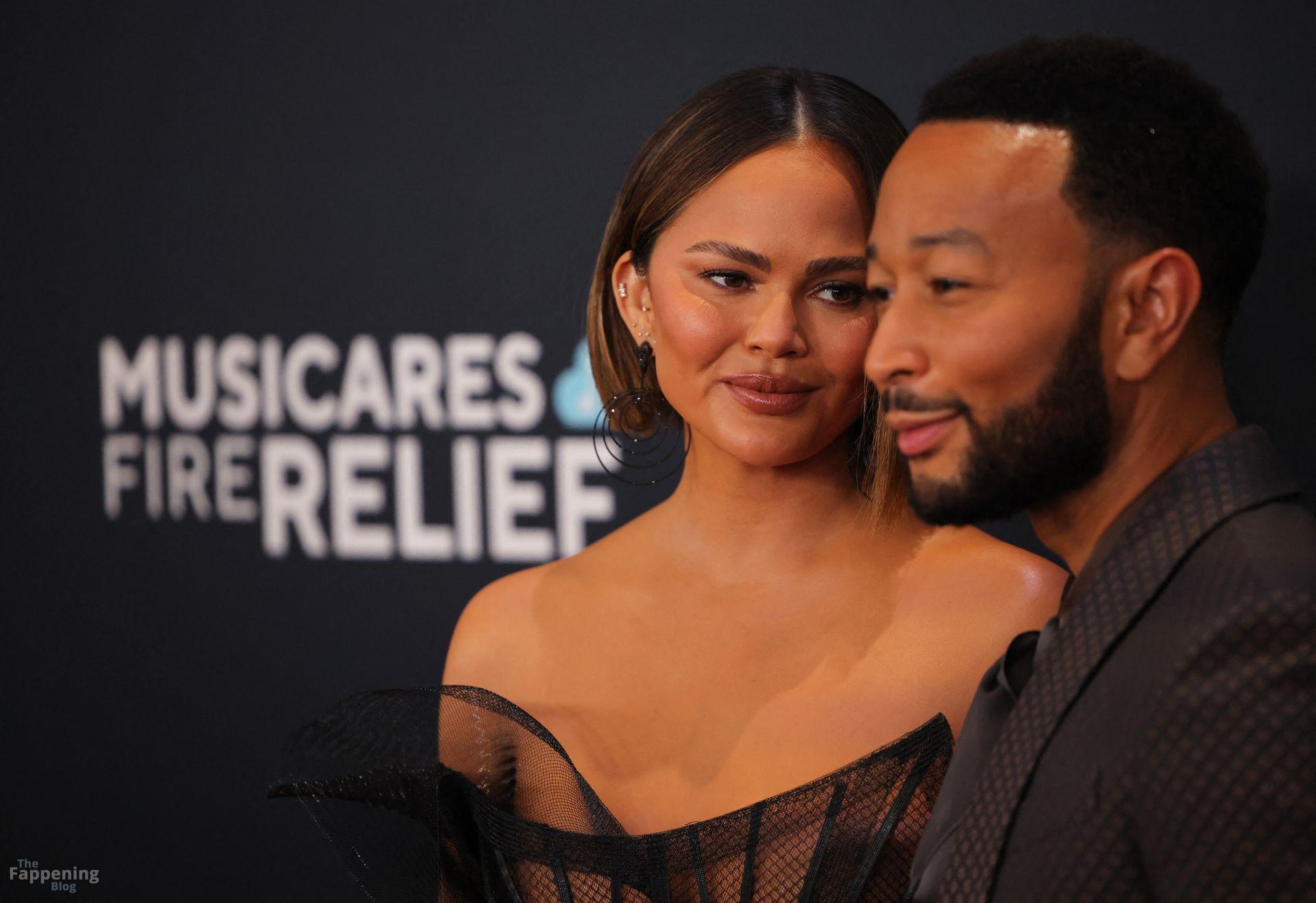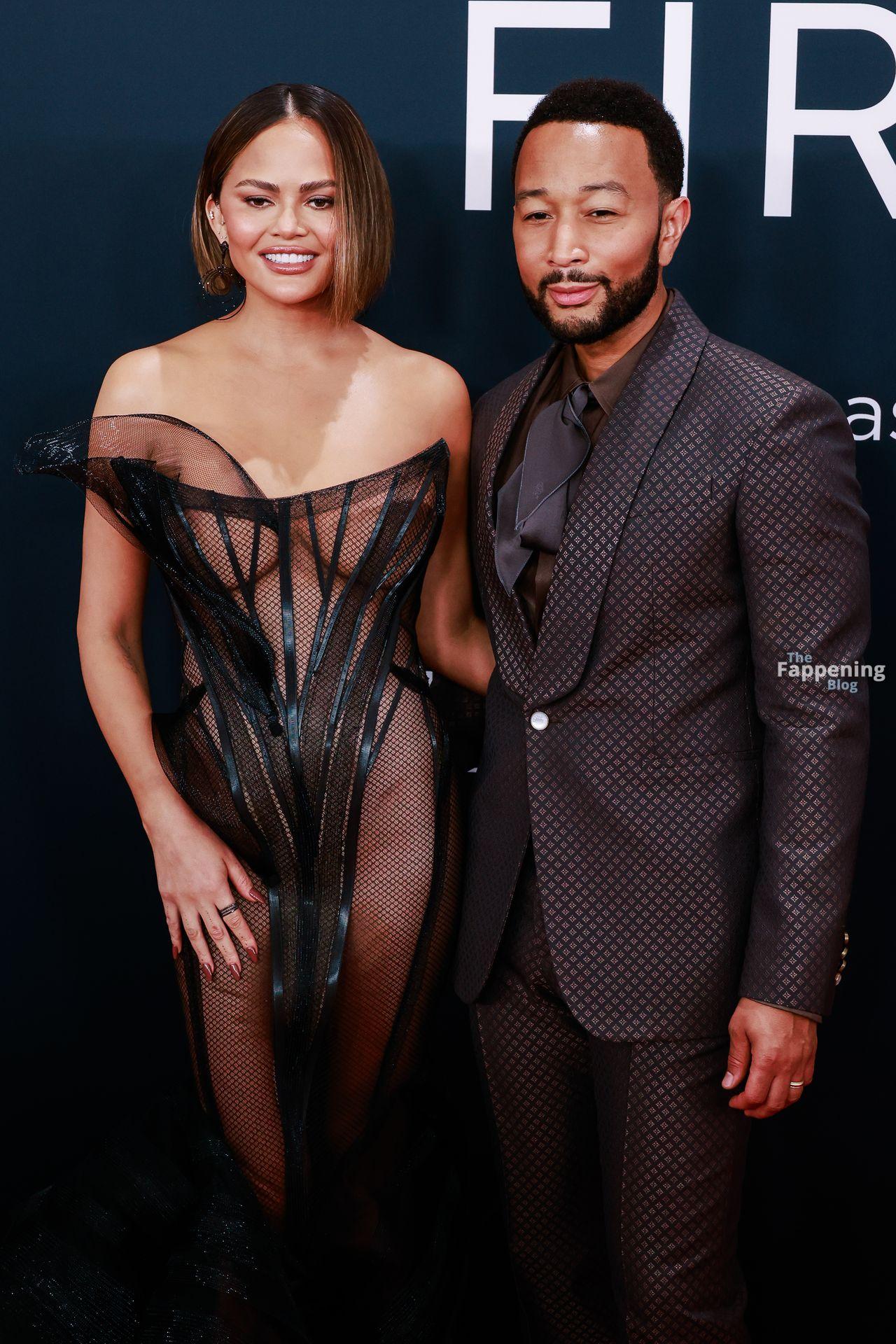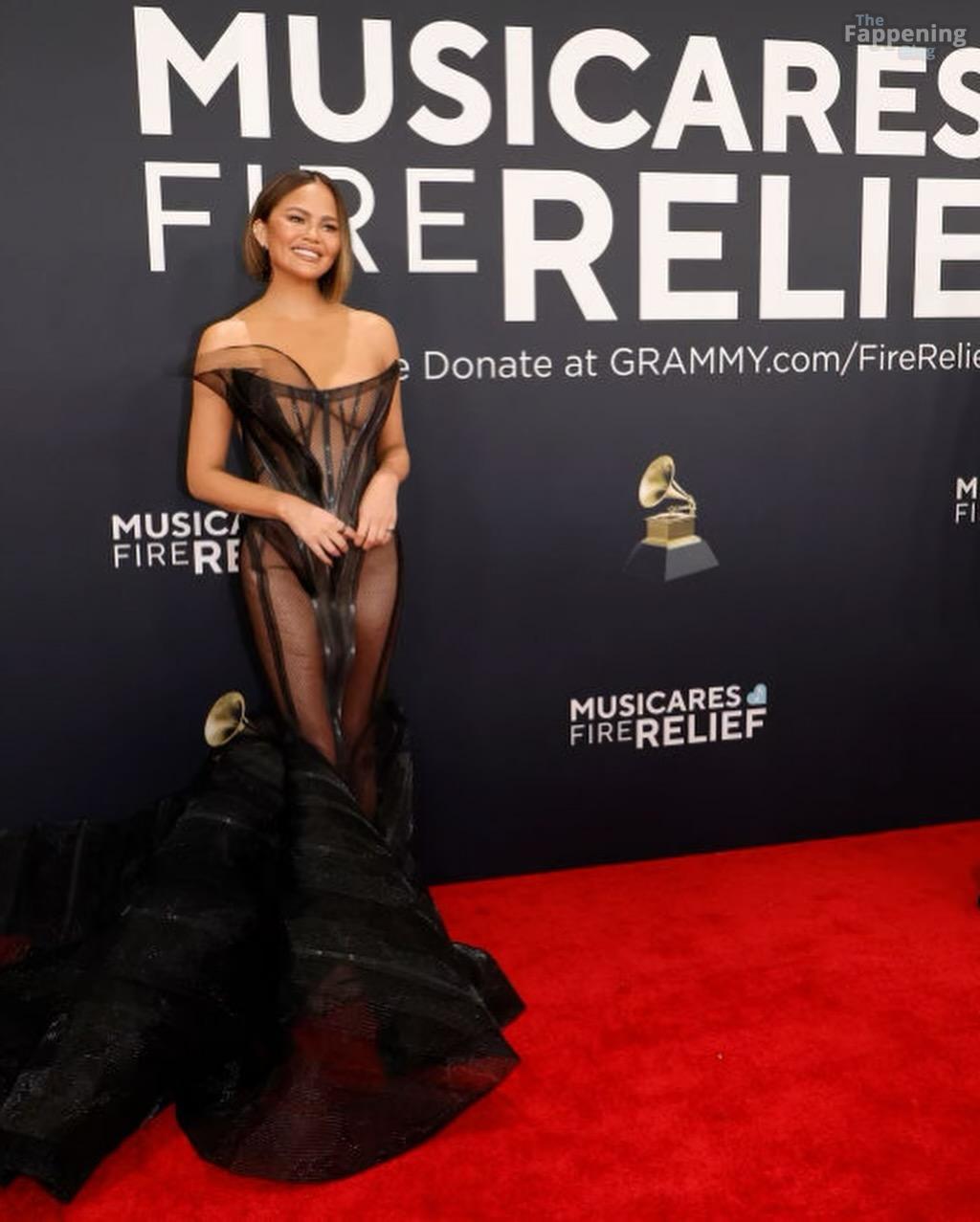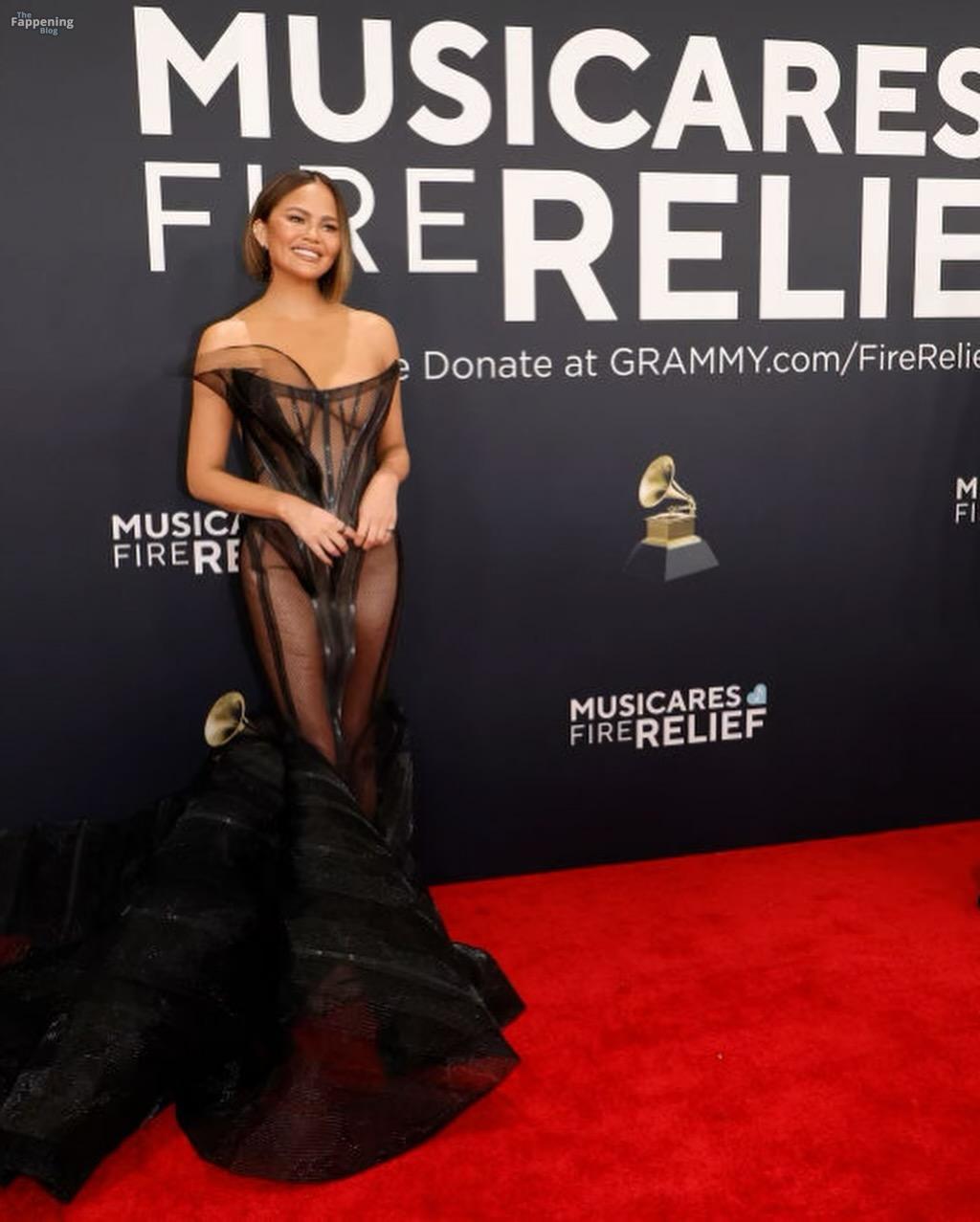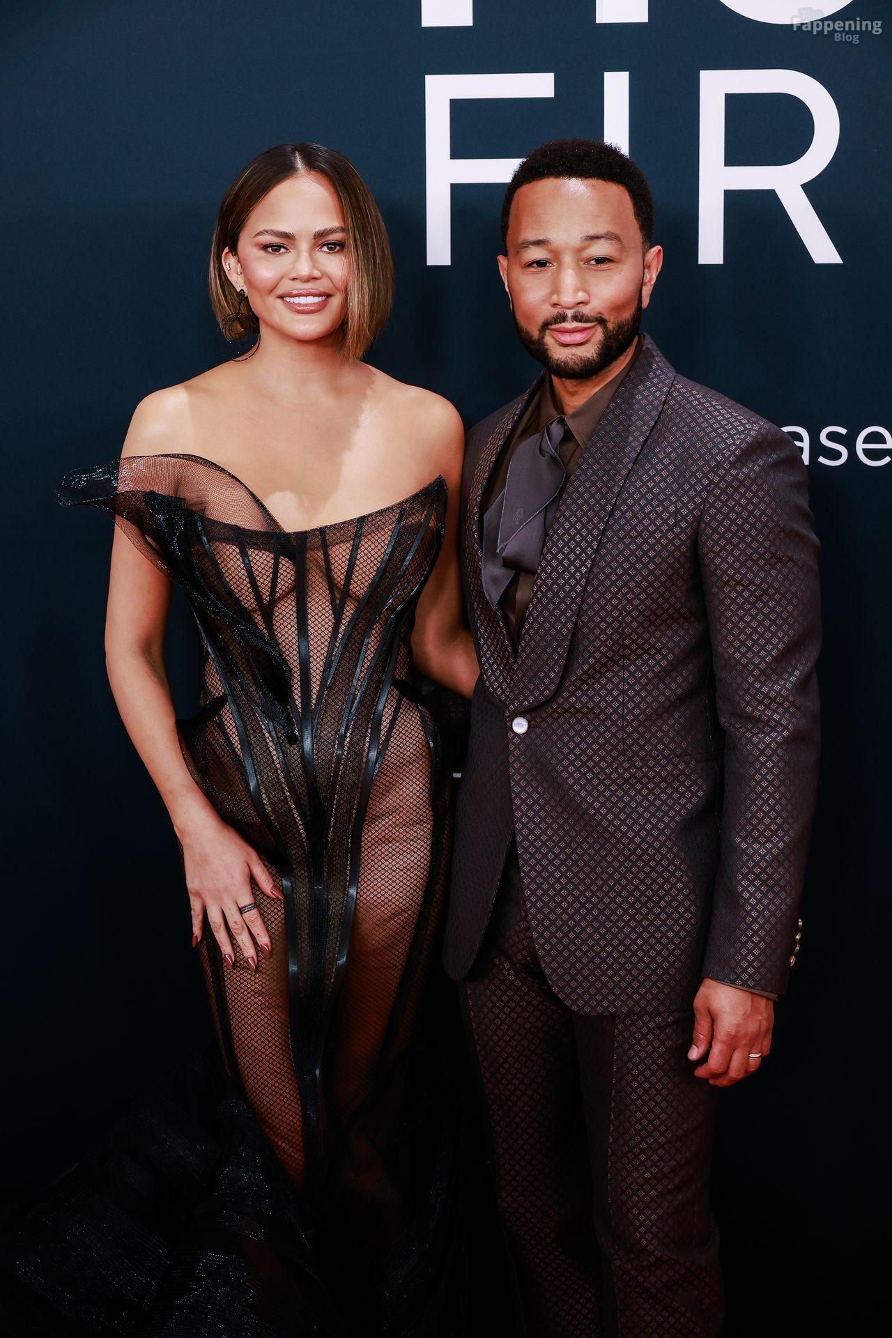 Chrissy Teigen and John Legend are seen walking on the red carpet during the 67th Grammy Awards held at Crypto.com Arena in Los Angeles, CA.