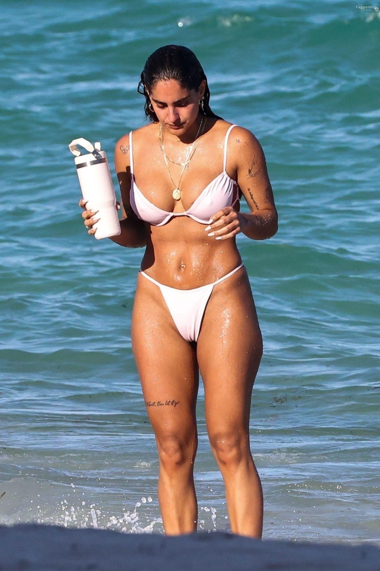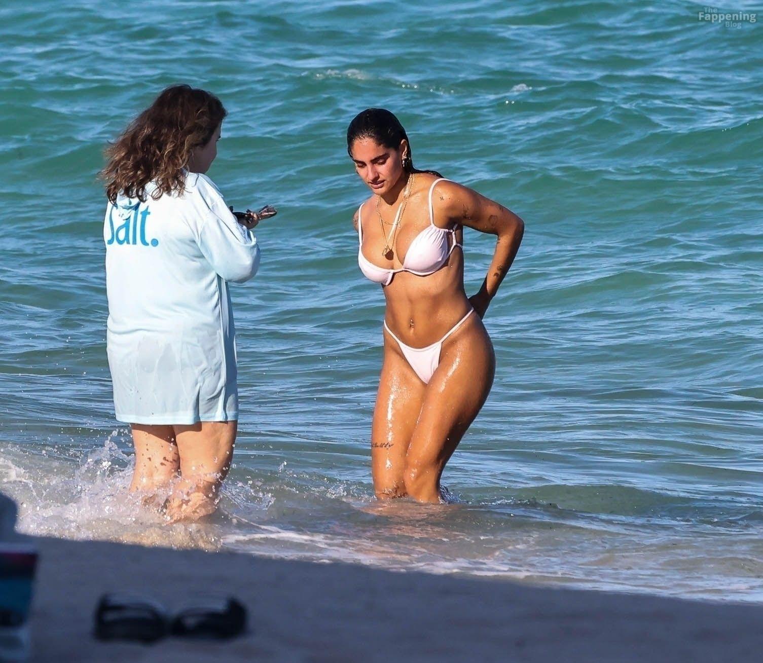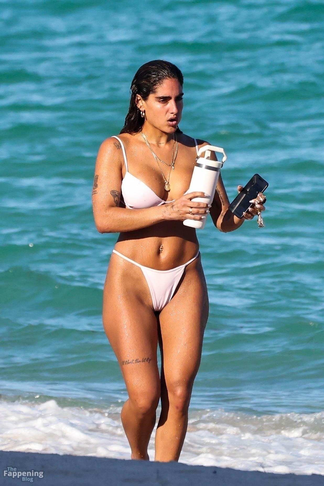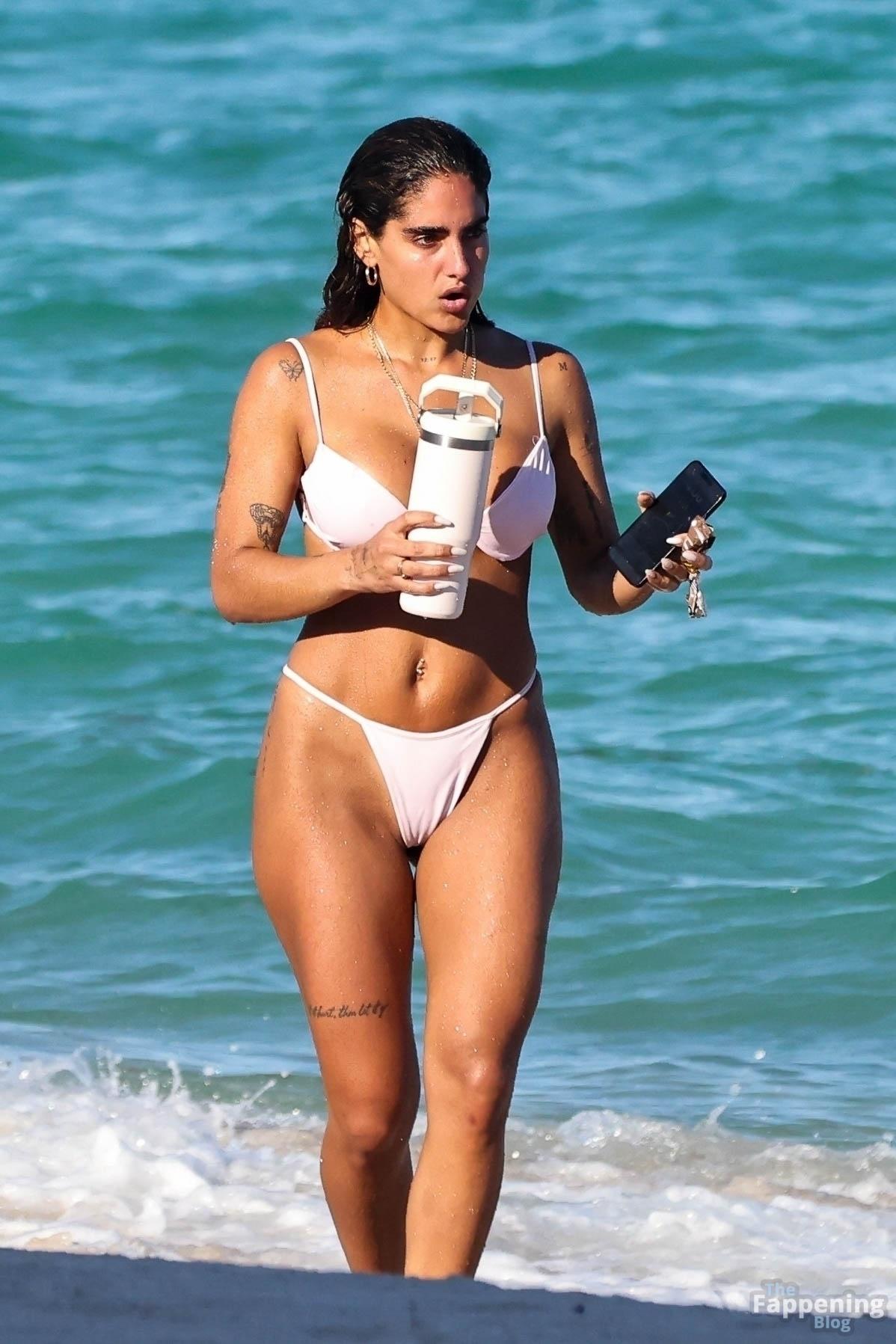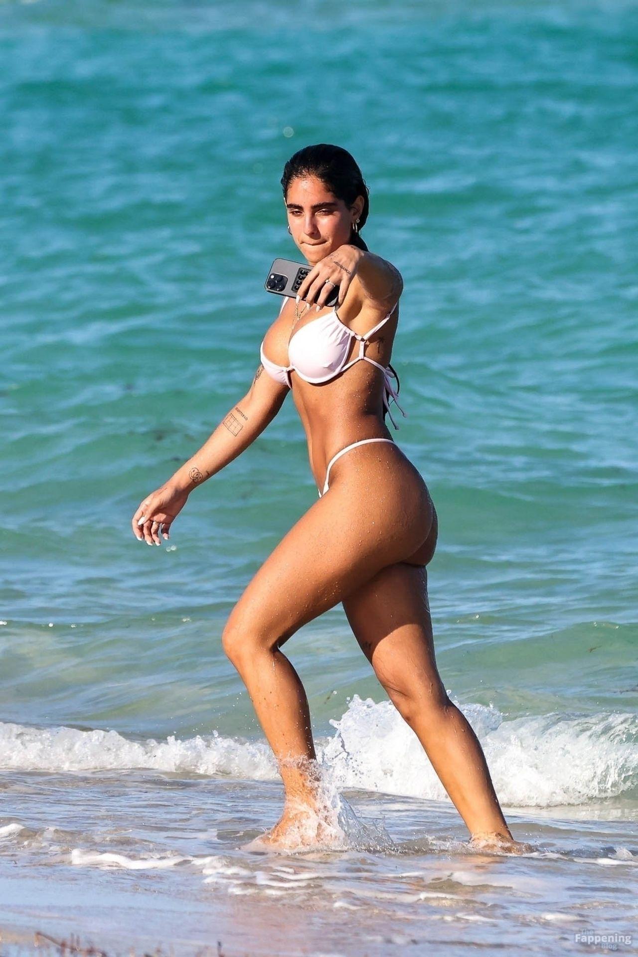 Social media star Isabella Ladera shows off her bikini body while enjoying a sun-soaked day on the beach in Miami with her family.