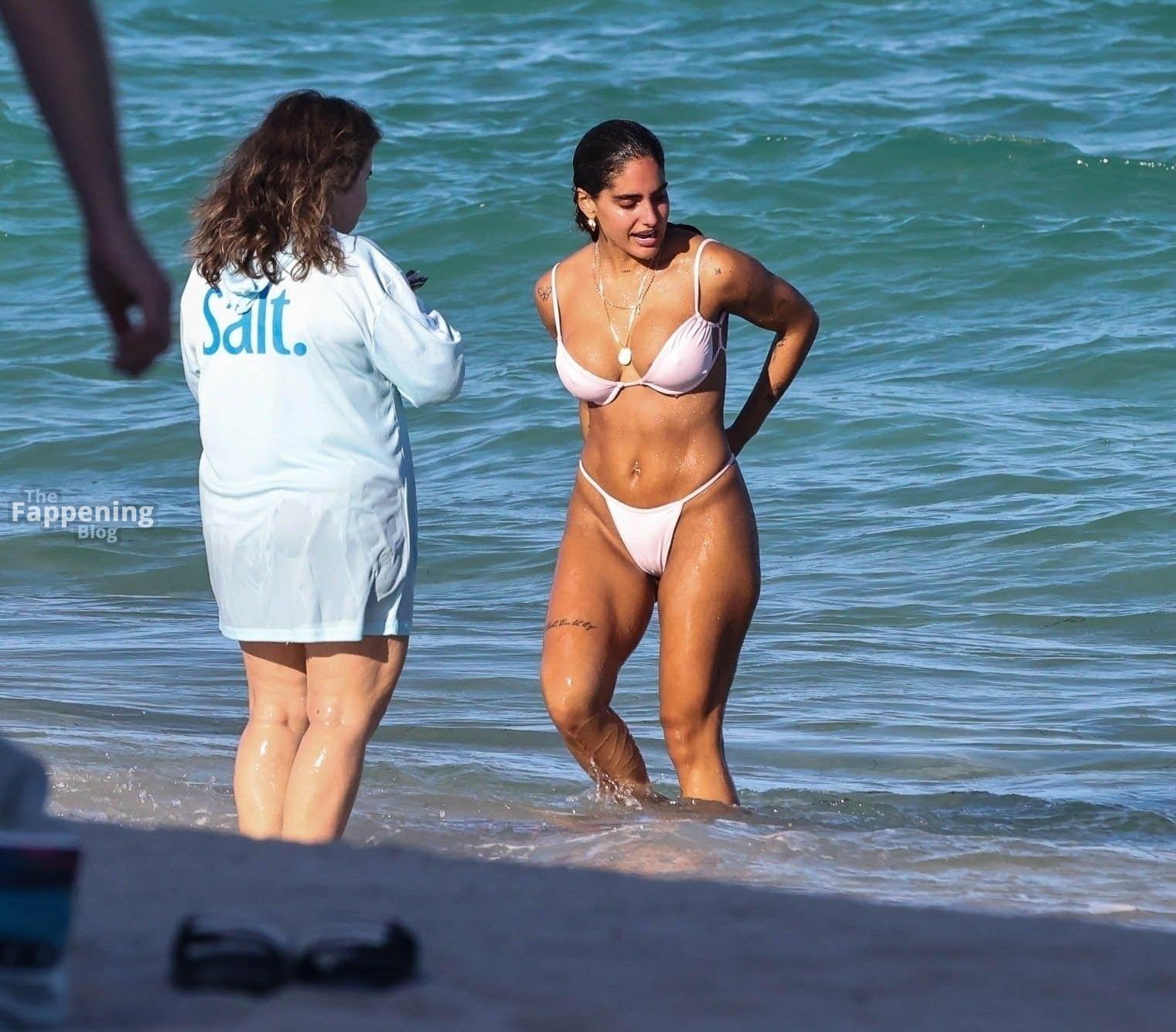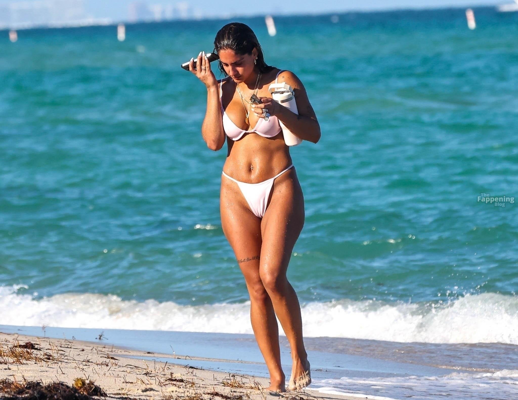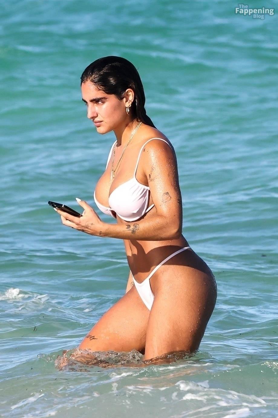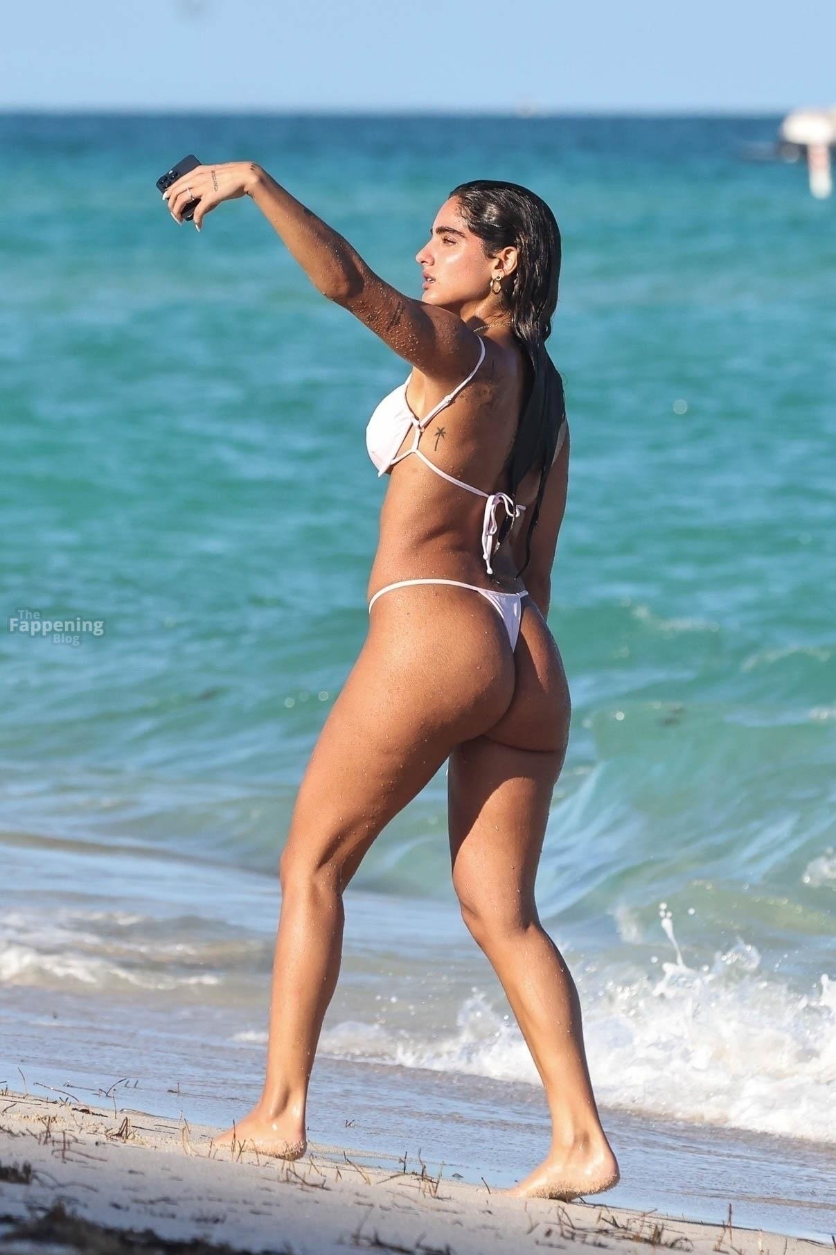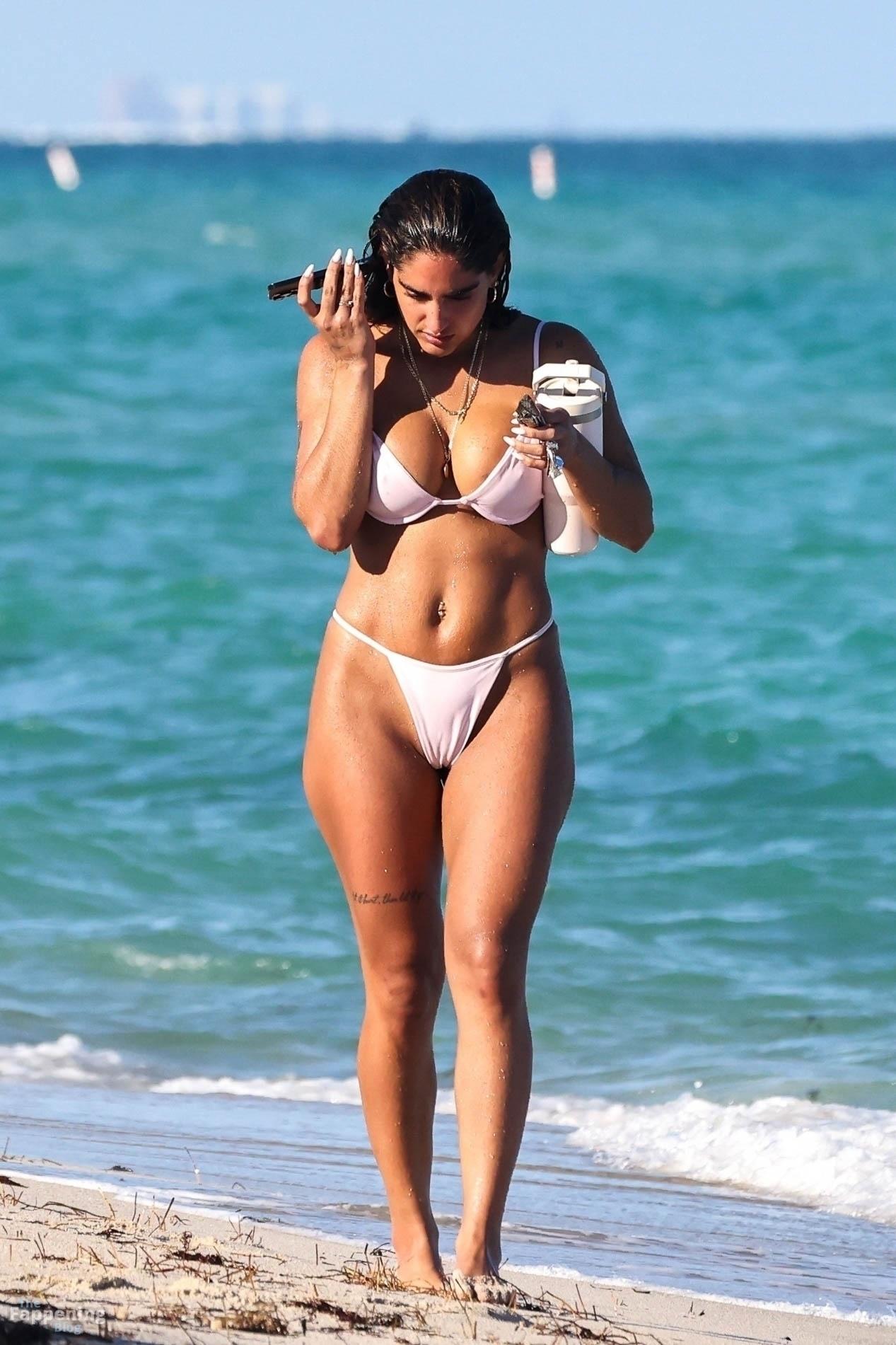 Social media star Isabella Ladera shows off her bikini body while enjoying a sun-soaked day on the beach in Miami with her family.