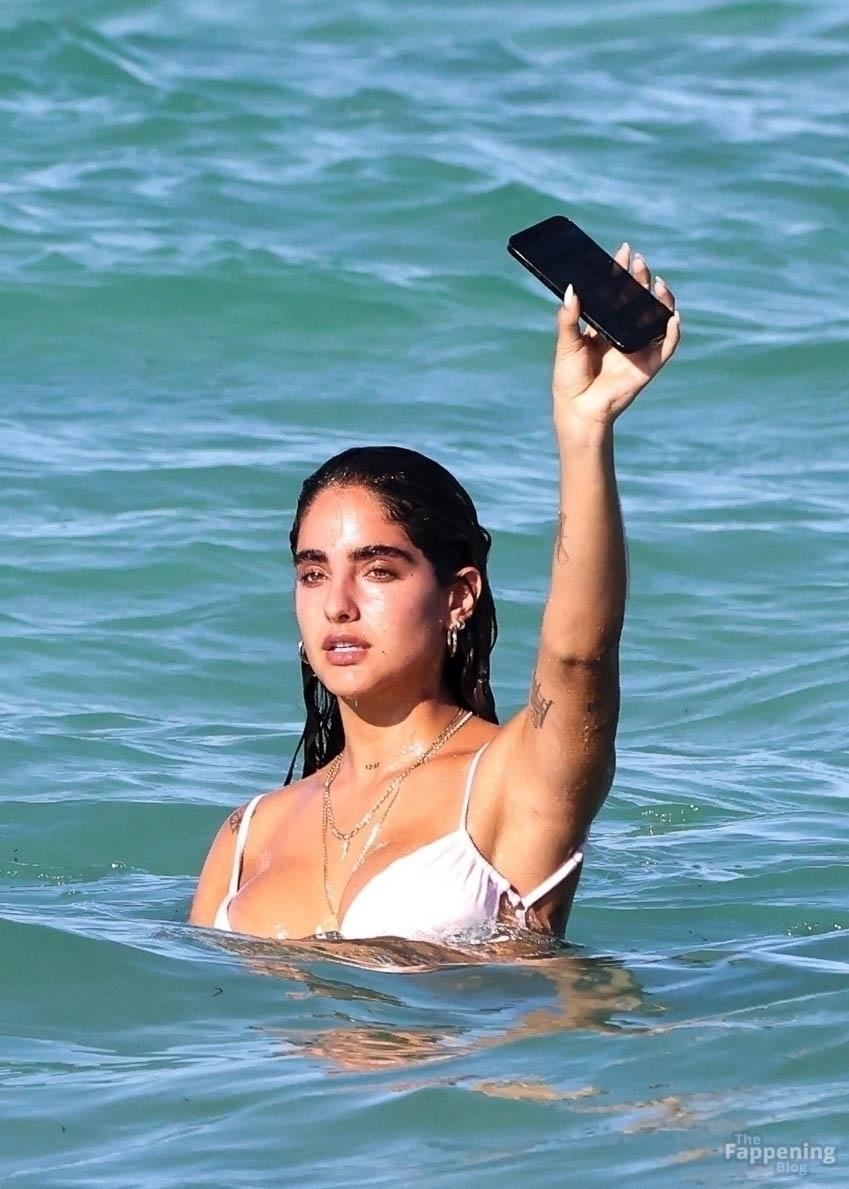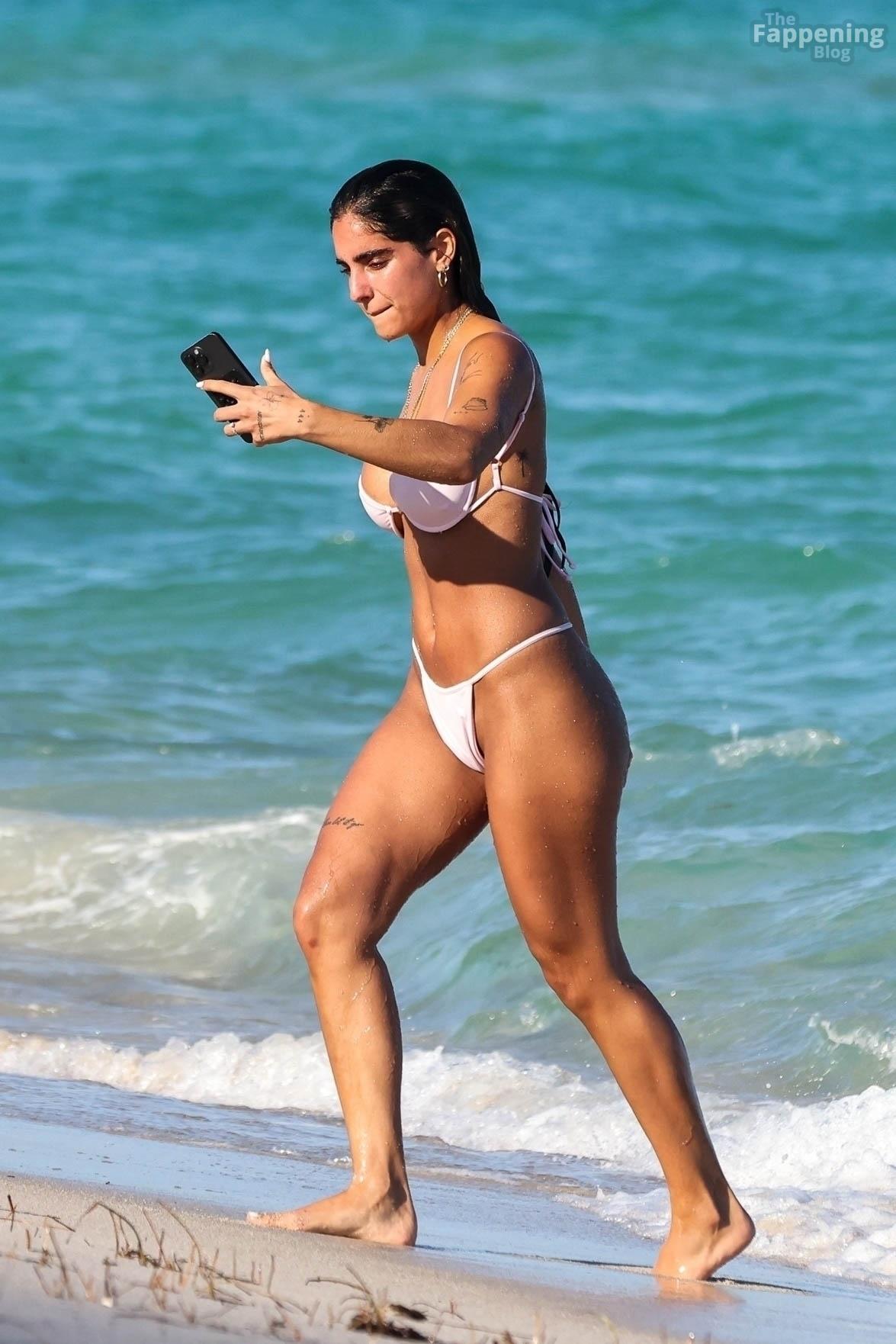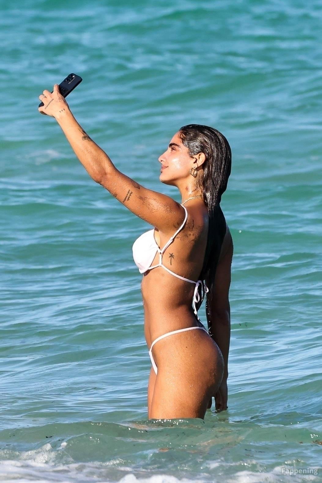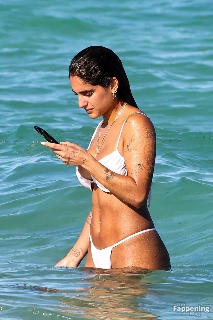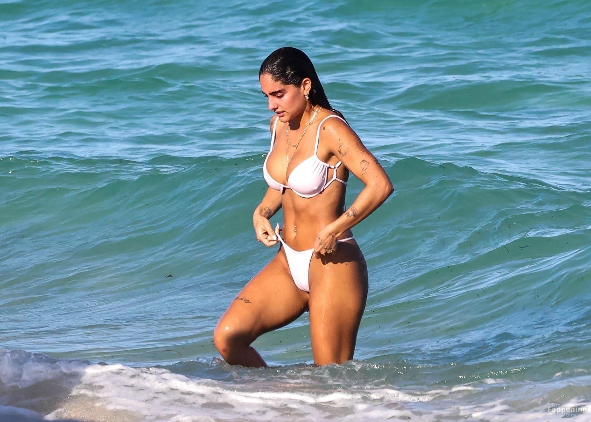 Social media star Isabella Ladera shows off her bikini body while enjoying a sun-soaked day on the beach in Miami with her family.