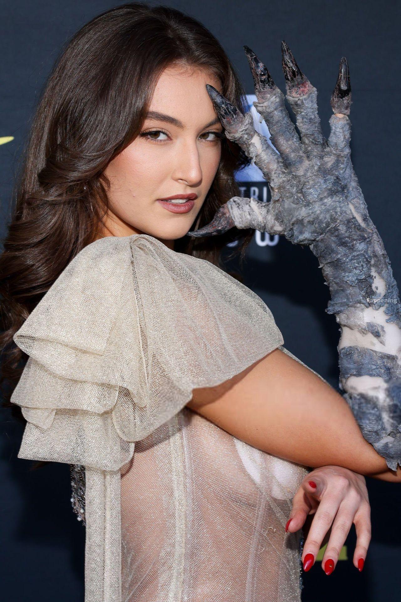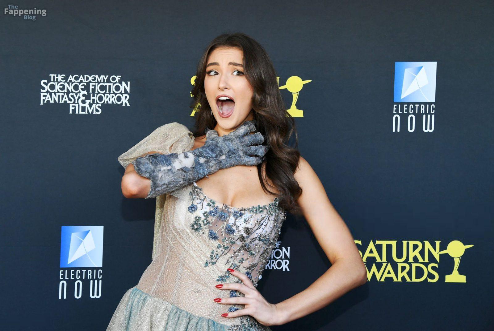 Rachel Pizzolato (21) is seen at the Saturn Awards, rocking a sexy dress that put her cleavage on full display.