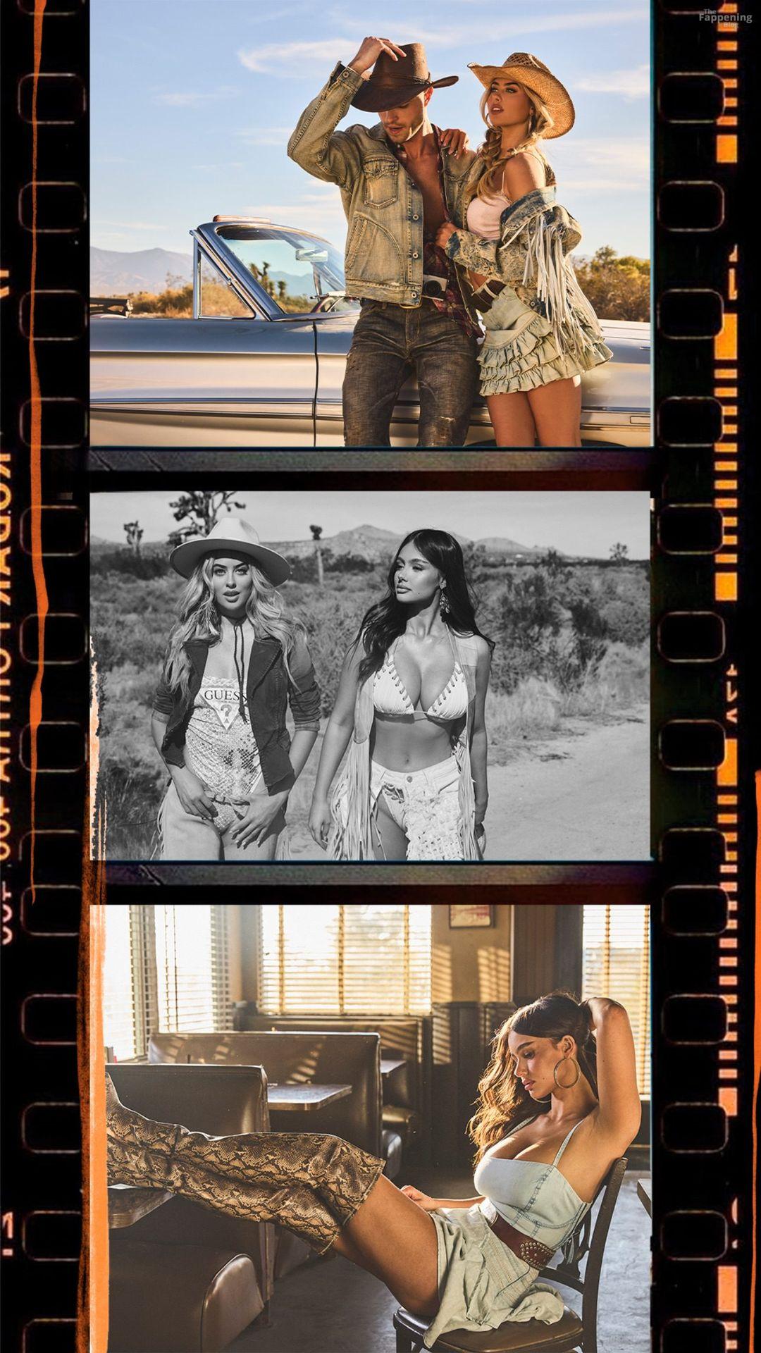 Ella Cervetto is in the Guess 2025 campaign with her sexy chest and various outfits.