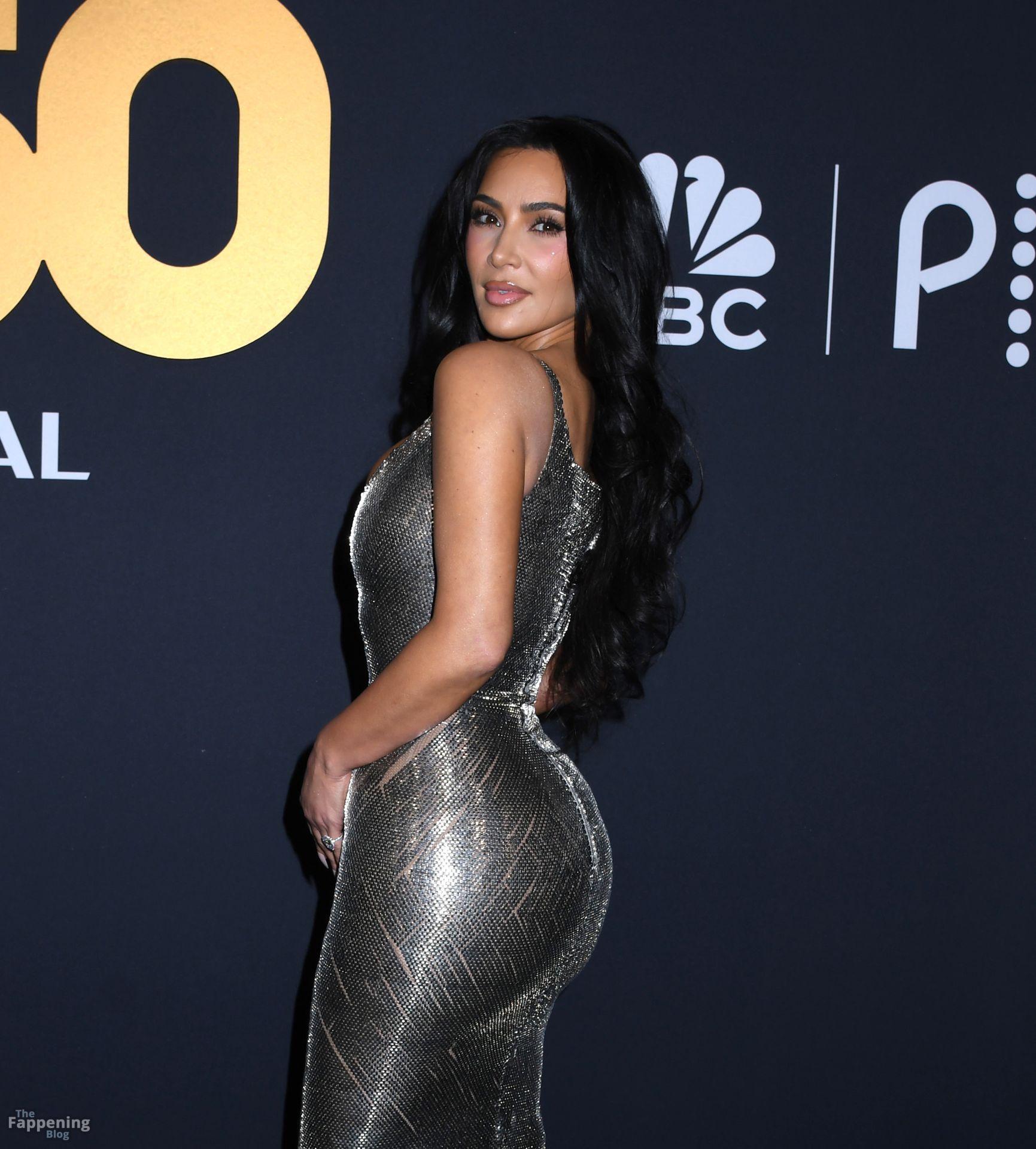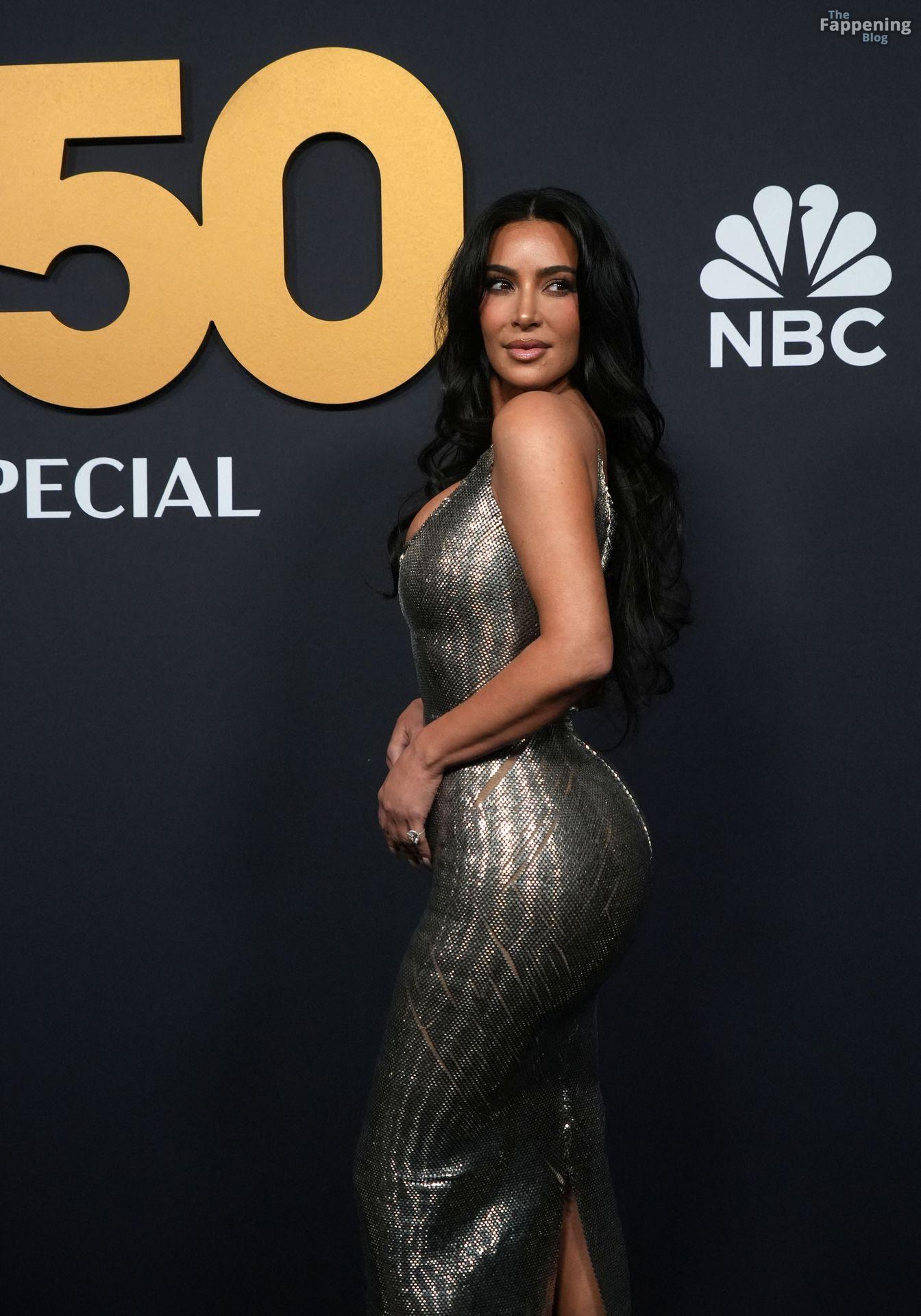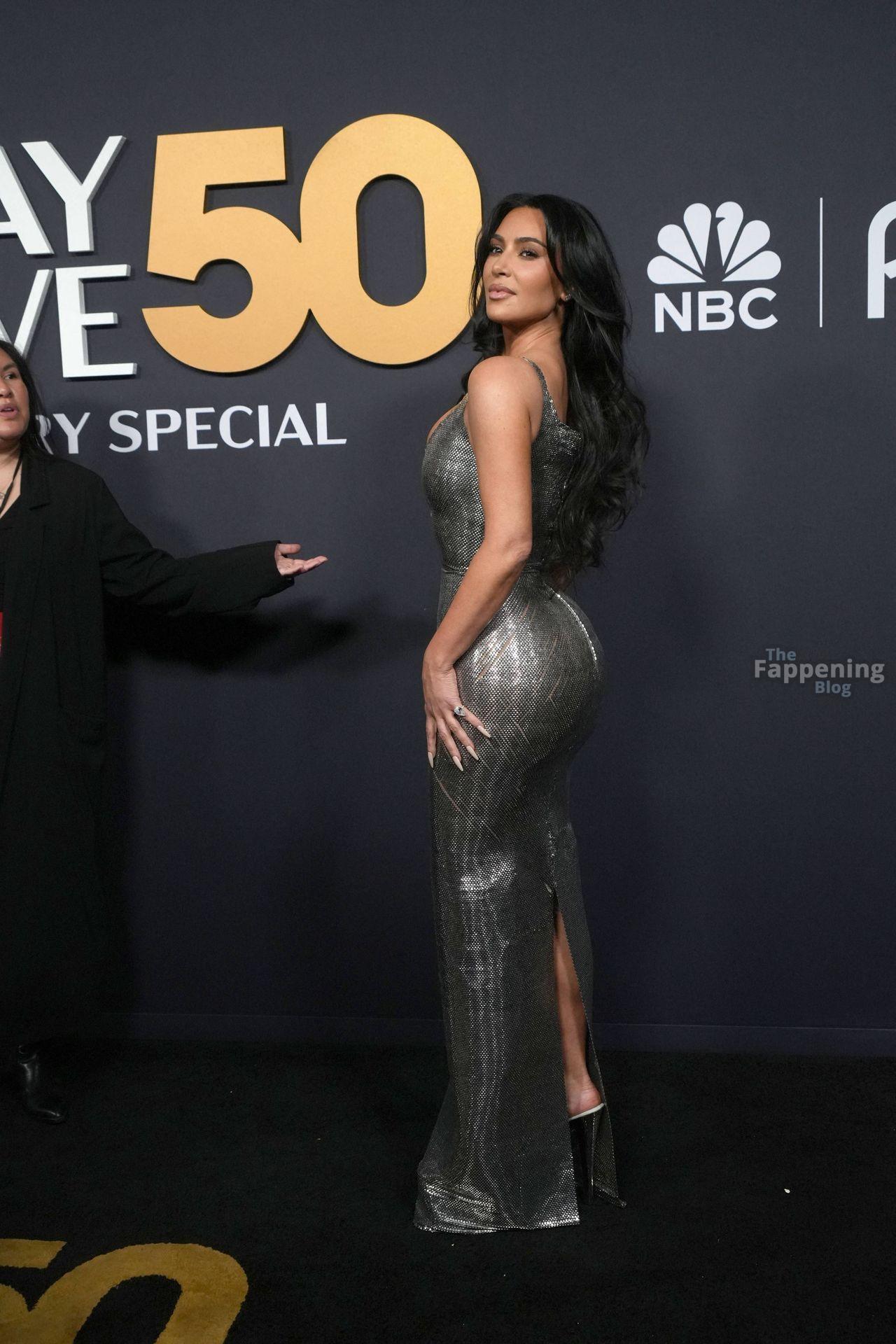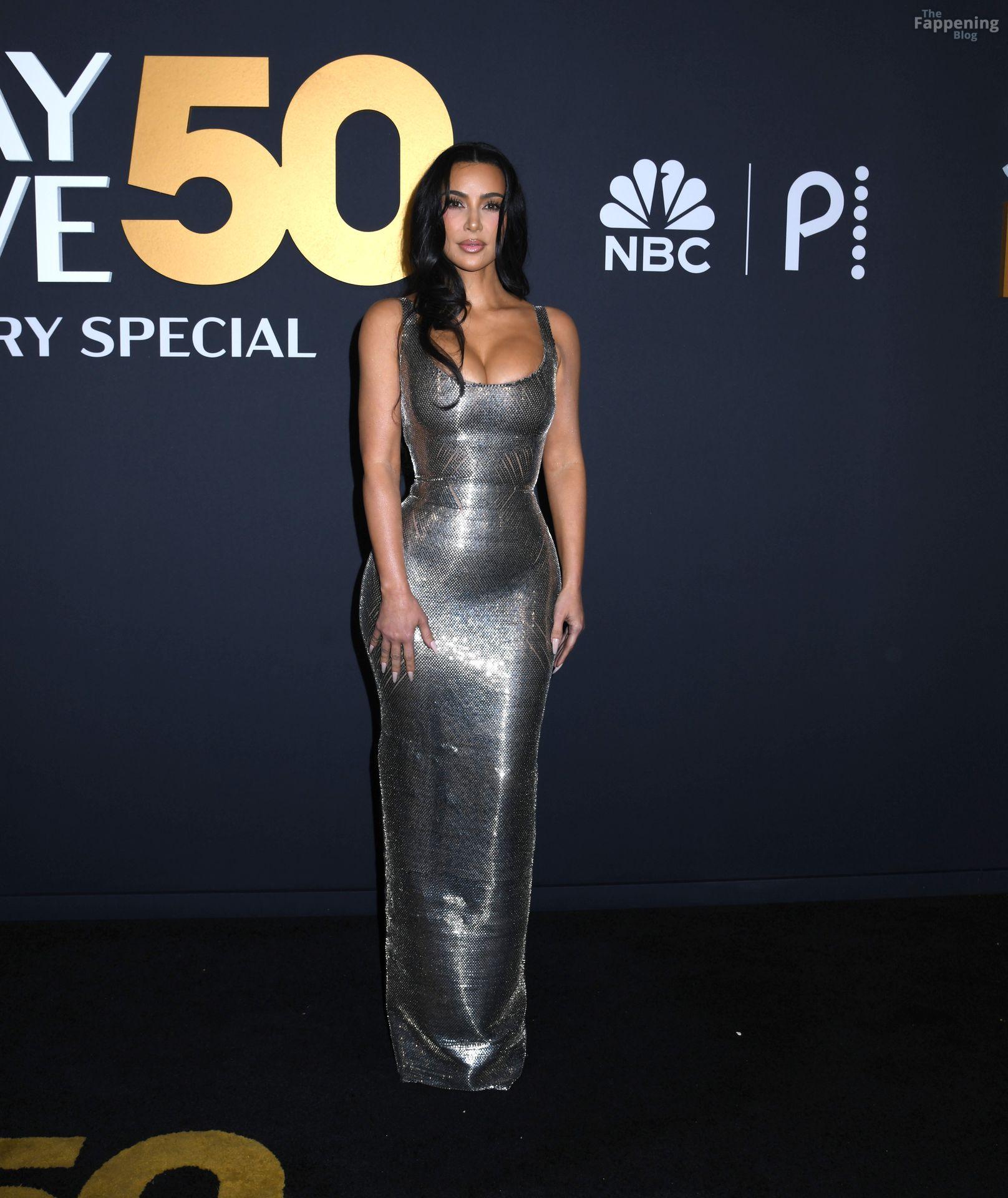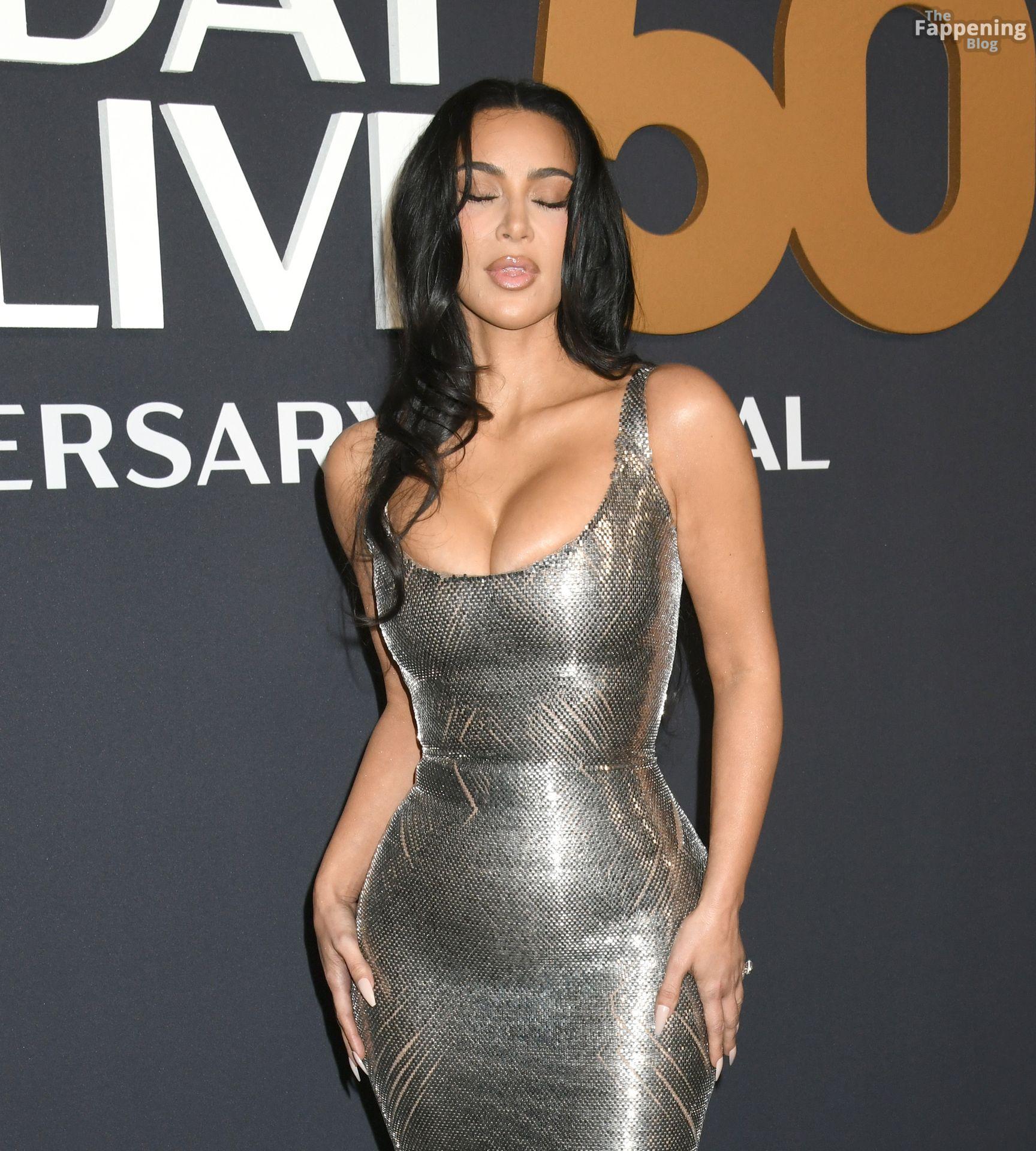 Kim Kardashian stuns at SNL’s 50th anniversary afterparty, flaunting her insane curves in a plunging silver dress.