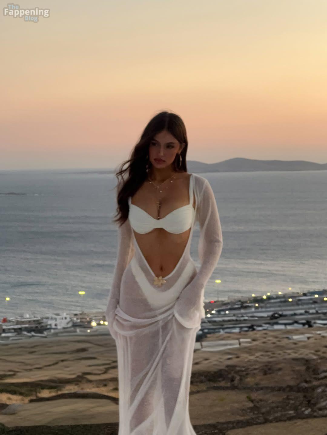 Australian TikTok star Ella Cervetto is showin’ off her sexy figure in a see-through white dress over a bikini, droppin’ stunnin’ looks in a seaside sunset photoshoot.