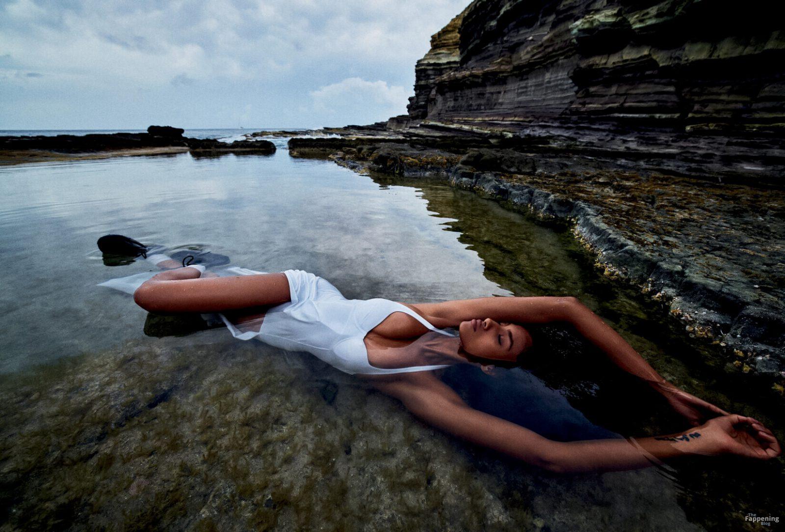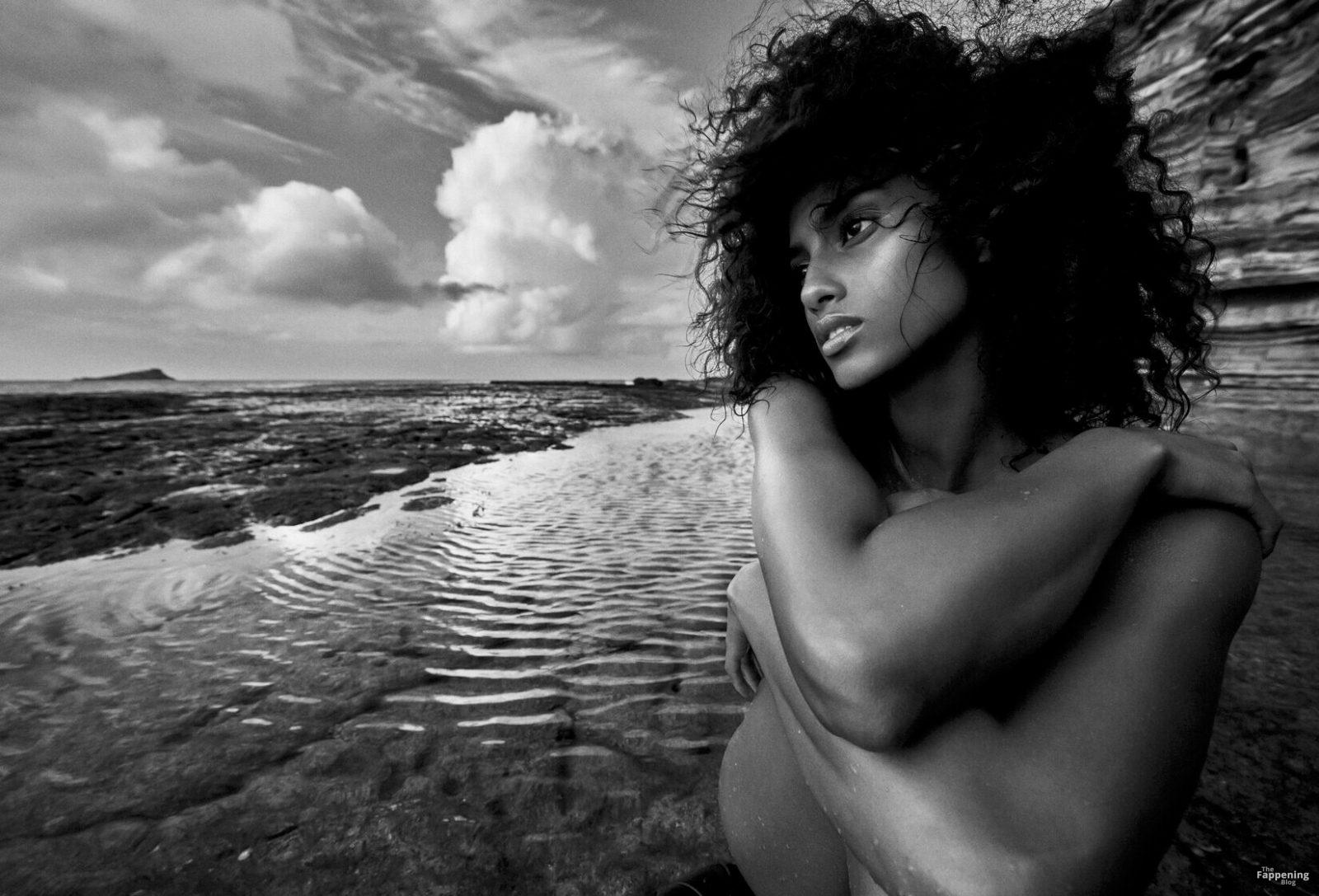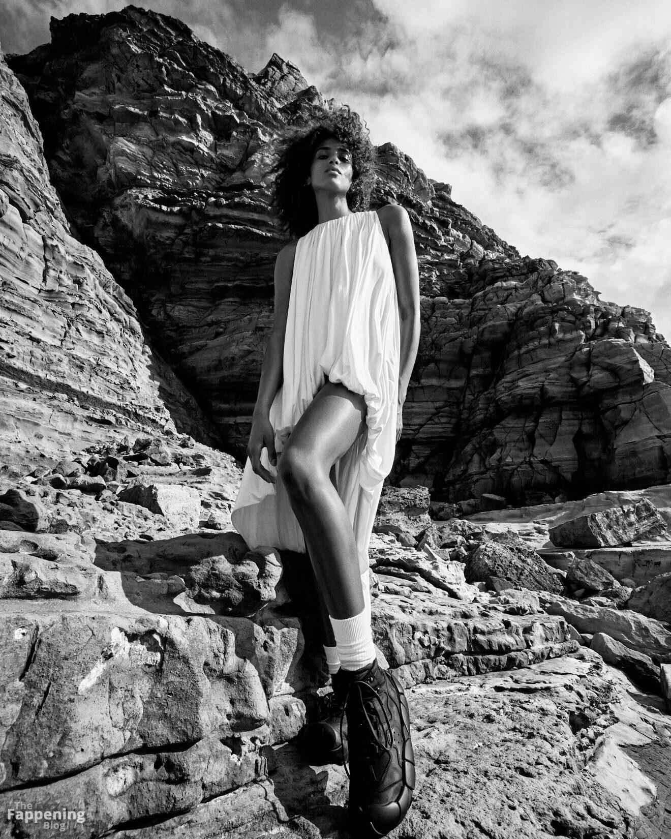 Dutch fashion model of Moroccan and Egyptian descent Imaan Hammam stripped down for Vogue France 2025, flauntin’ cleavage and some skin durin’ a beachside shoot on Saint-Barth.