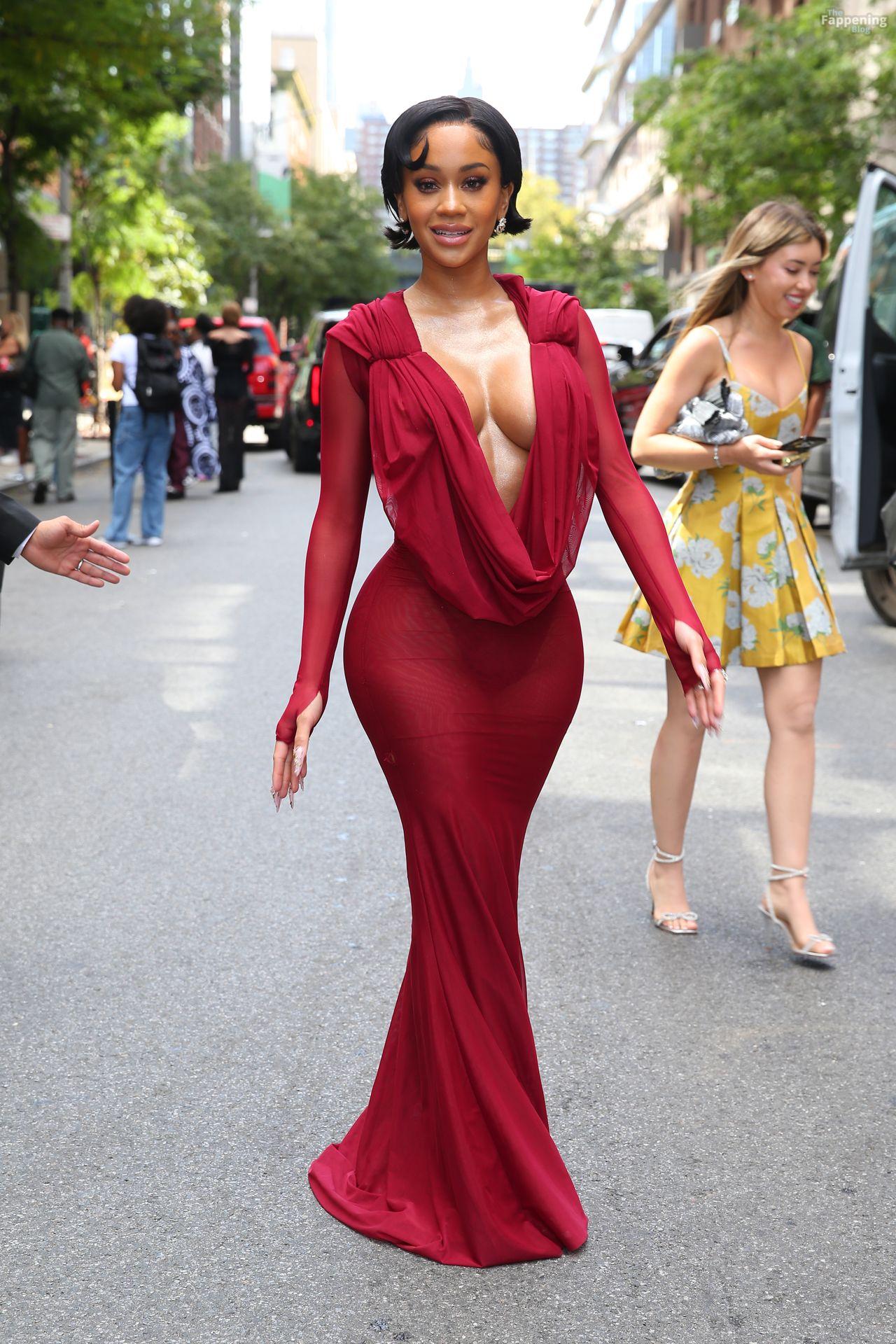 Saweetie went all out at NYFW, rockin’ a see-through red dress that showed everything – tits and ass on full display. She was turnin’ heads outside Bronx & Banco in NYC, leavin’ nothin’ to the imagination.
