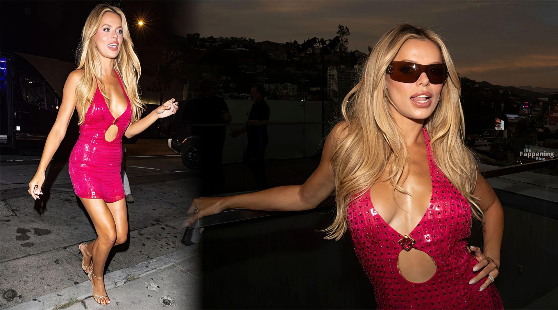 Brooks Nader popped up at West Hollywood’s party rockin’ a pink rhinestone mini, showin’ off her assets.