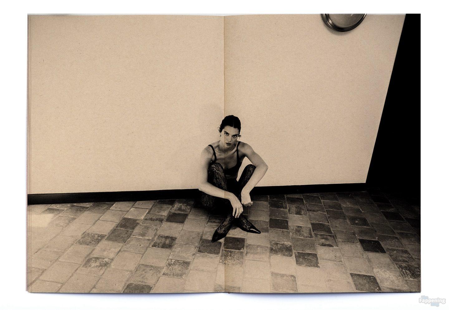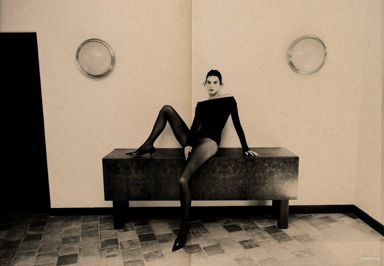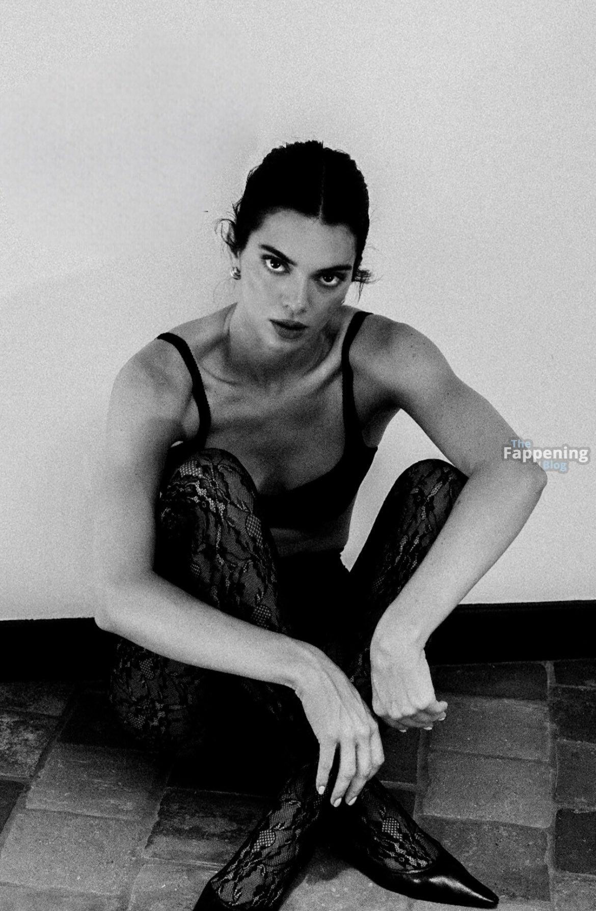 Model Kendall Jenner stripped down to lace tights and lingerie, showin’ off her legs and ass in Kat Irlin’s Calzedonia October 2025 shoot.
