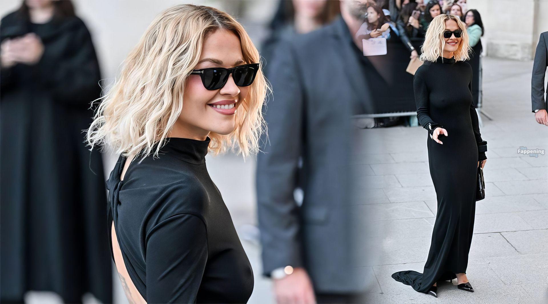 Rita Ora rocked a braless black Tom Ford gown at Paris Fashion Week, with nipples showin’ and her ass out there.
