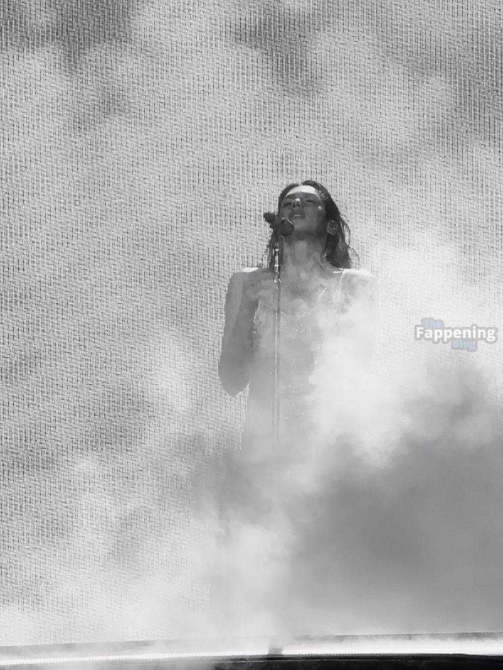 Dua Lipa rocked a gold corset, showed off her sexy legs, and booty-huggin’ fishnets on stage in San Francisco. Check it out!