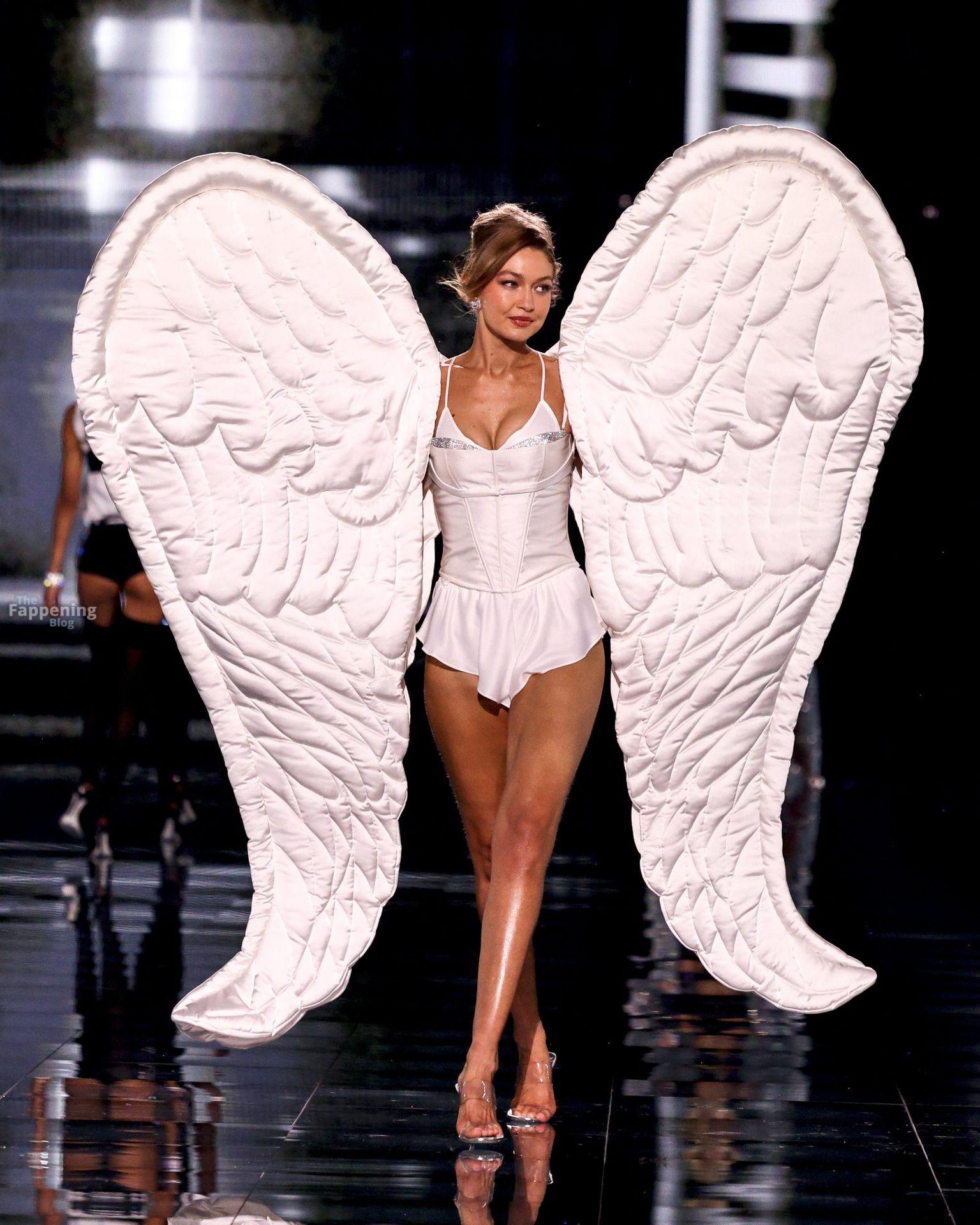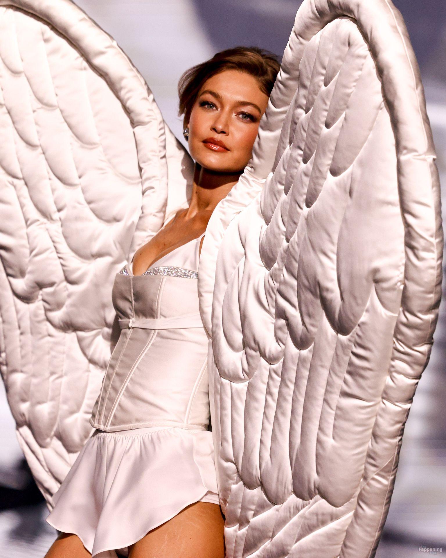 Gigi Hadid stunned at the Victoria’s Secret 2025 show in Brooklyn, rockin’ tiny lingerie, angel wings, and pink lace.