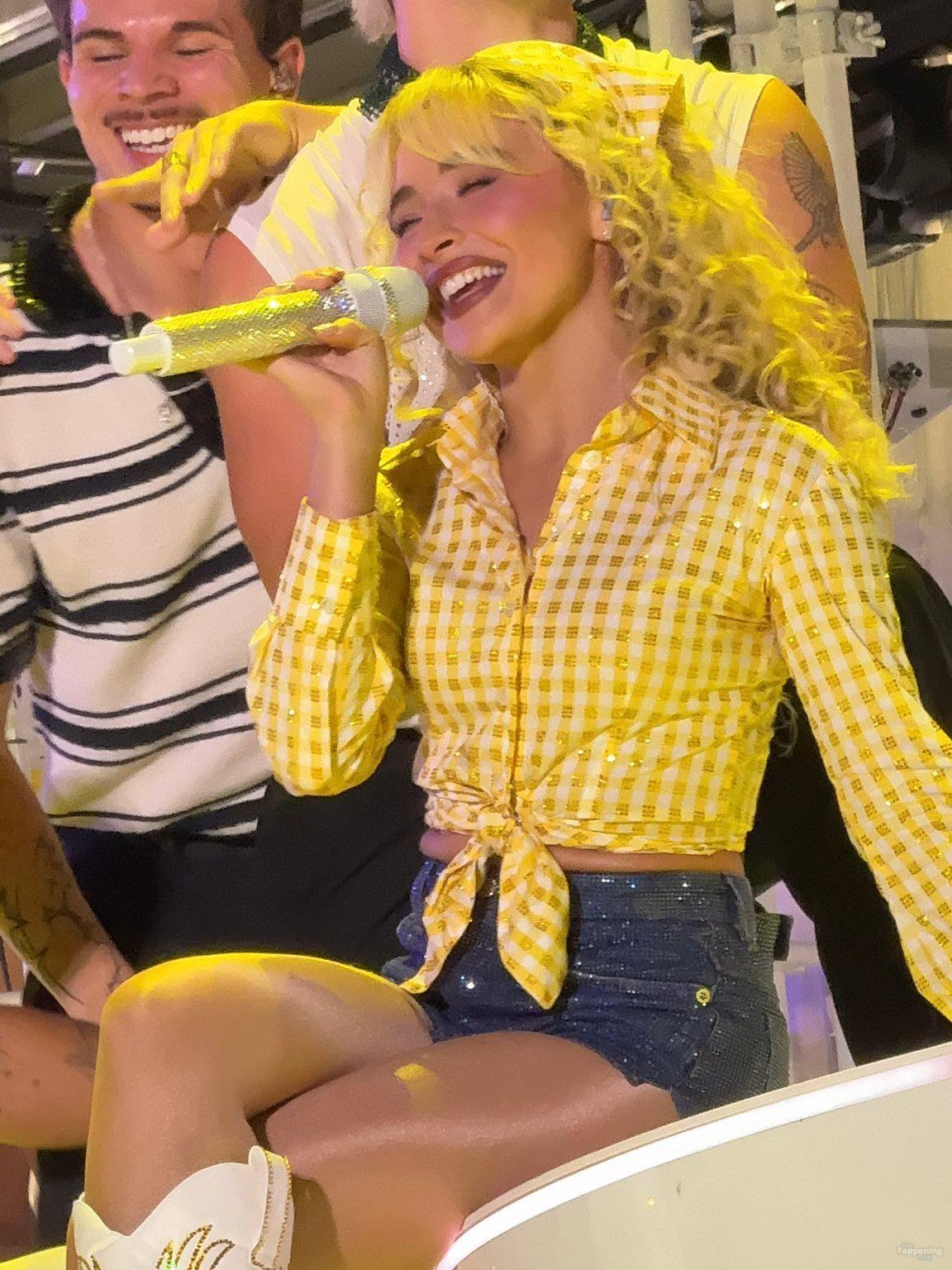 Sabrina Carpenter was spotted at Austin City Limits Festival 2025, rockin’ sexy shorts and sparkly mini dresses that showed off her legs and ass.
