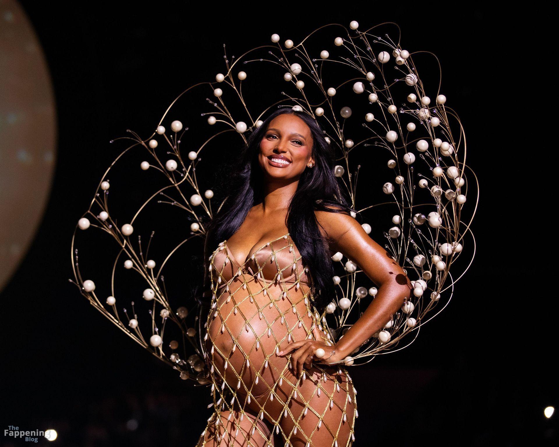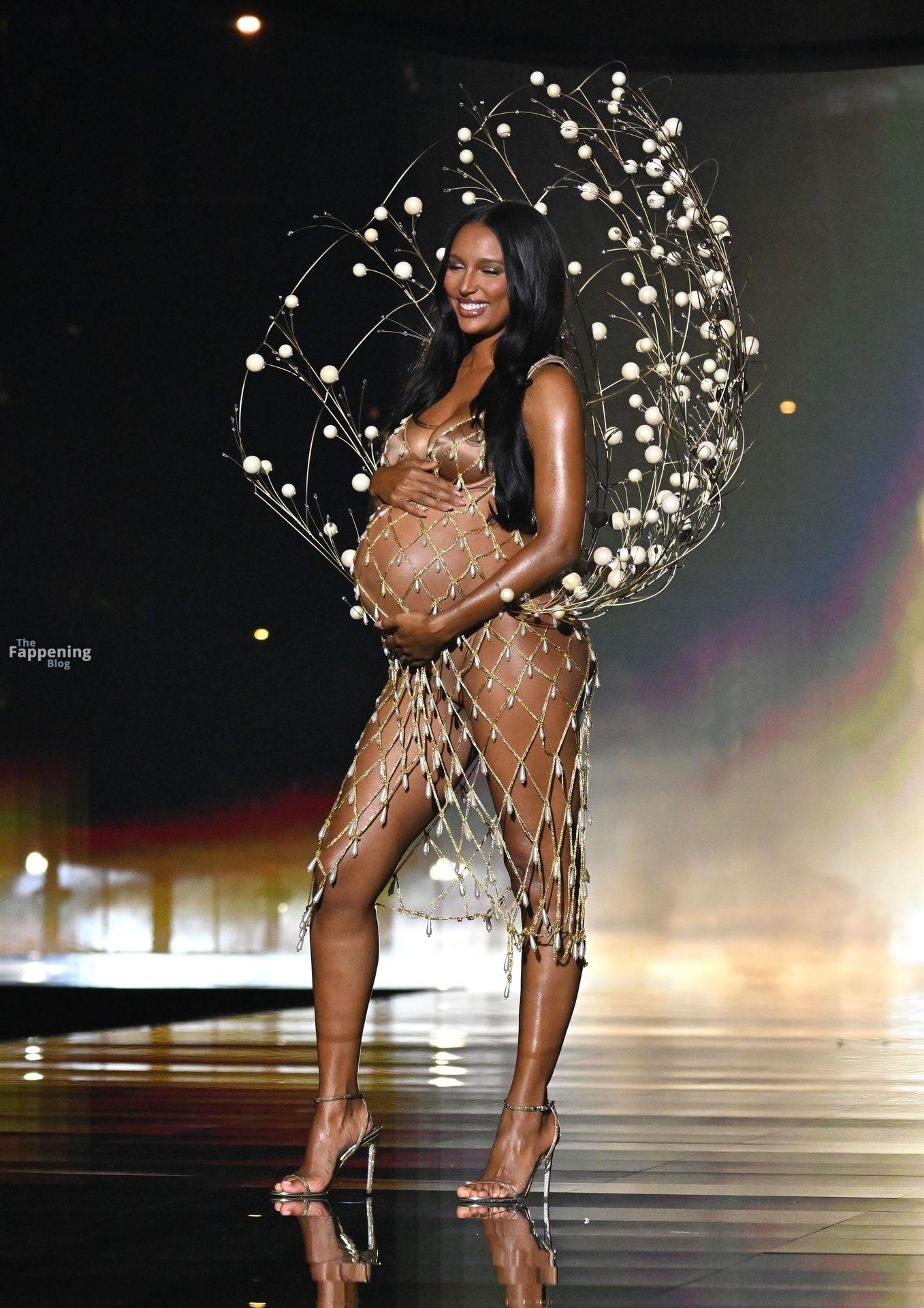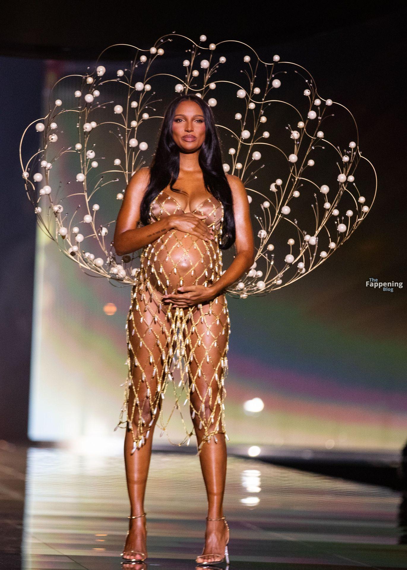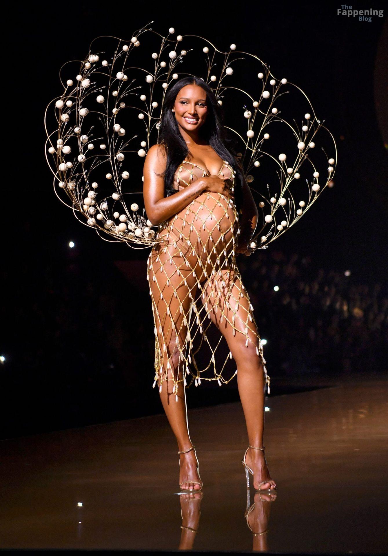 Jasmine Tookes stunned at the Victoria’s Secret Fashion Show 2025, strutted out at nine months pregnant in a sheer gold dress that showed off her bump.