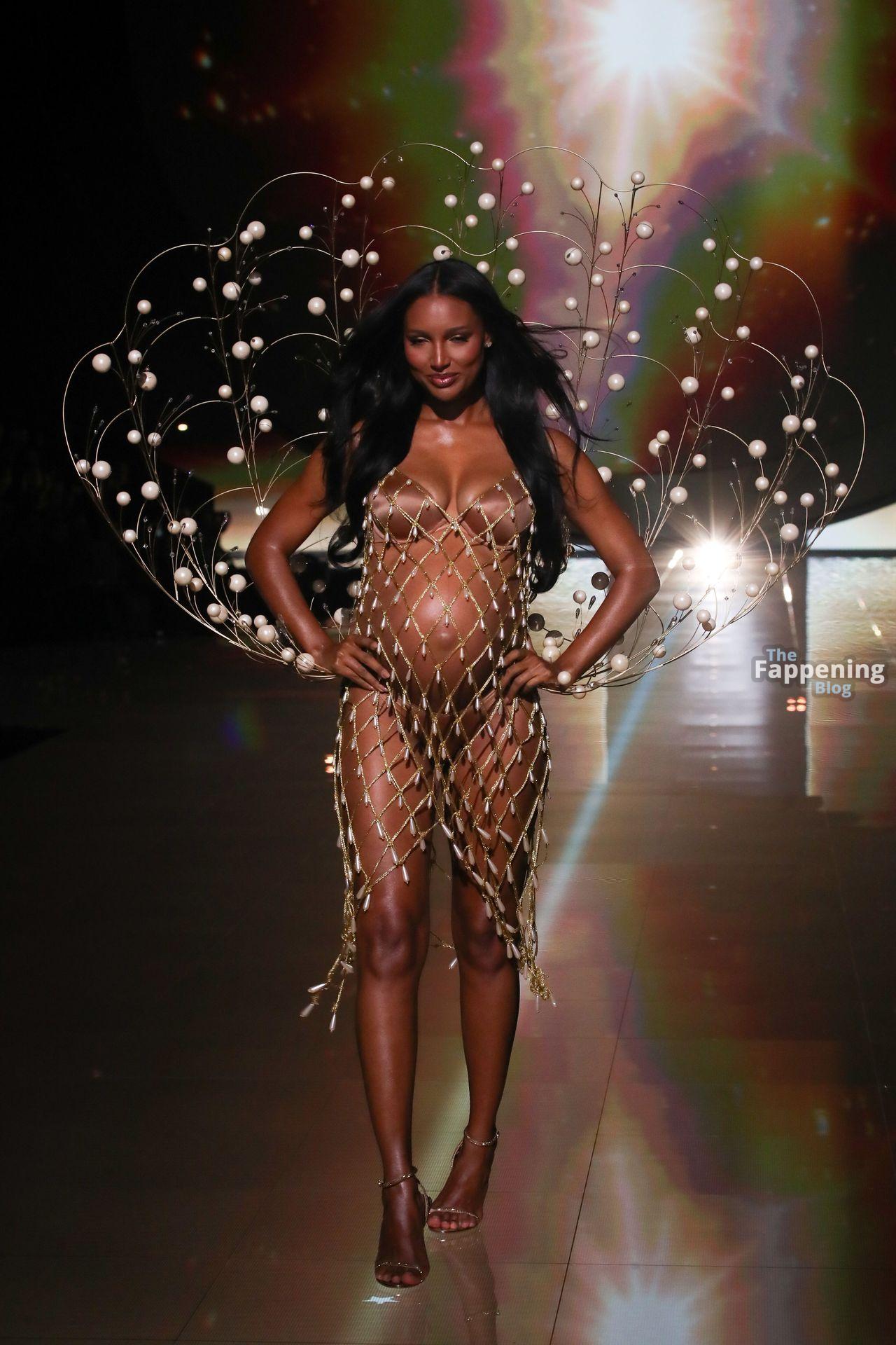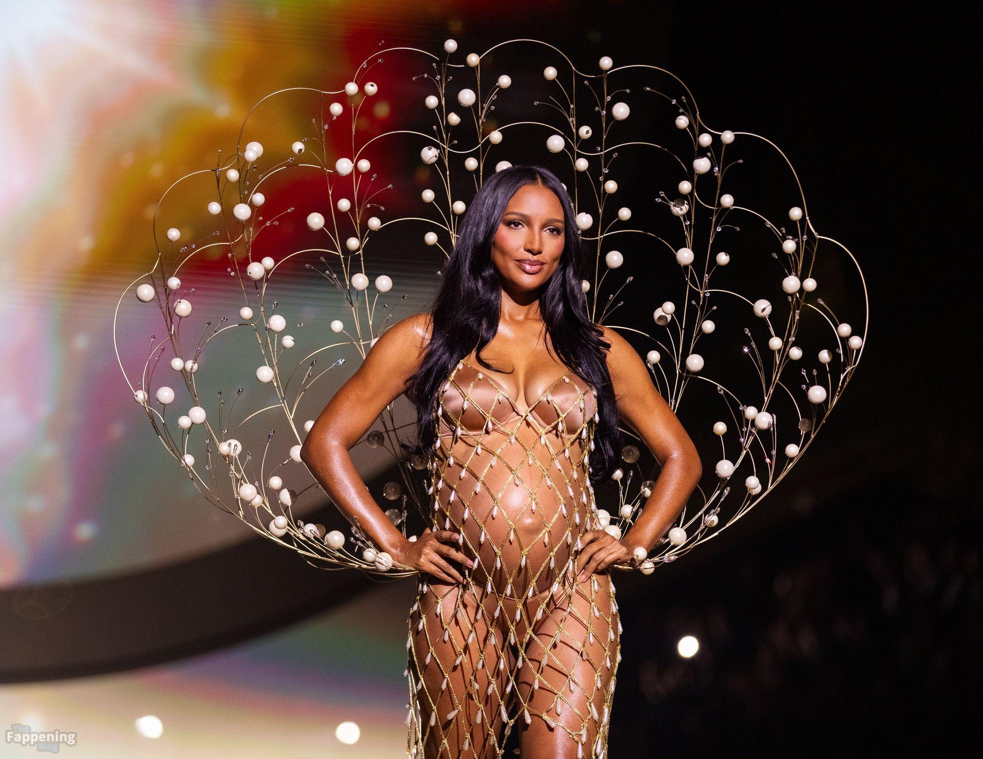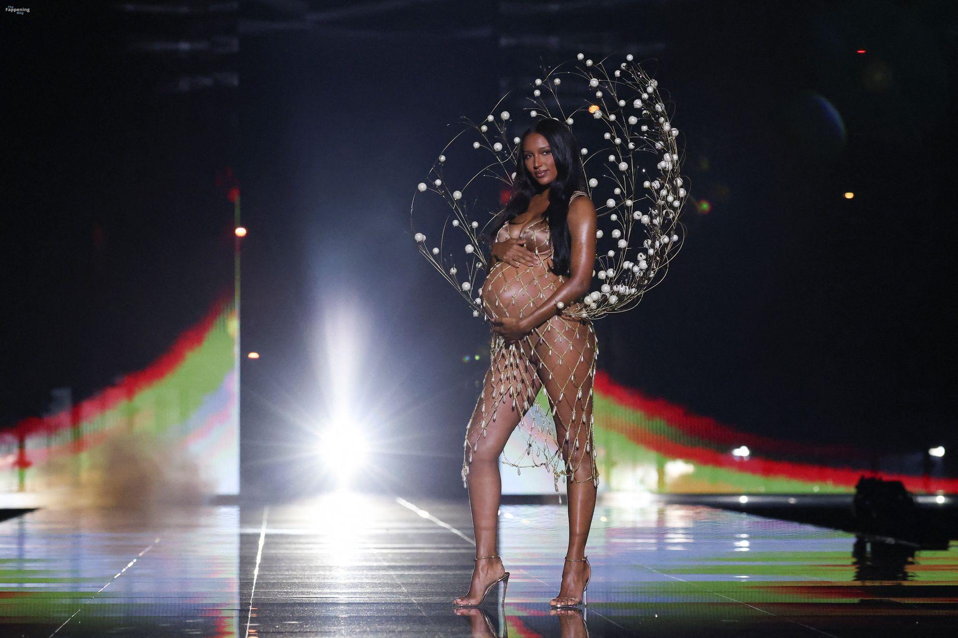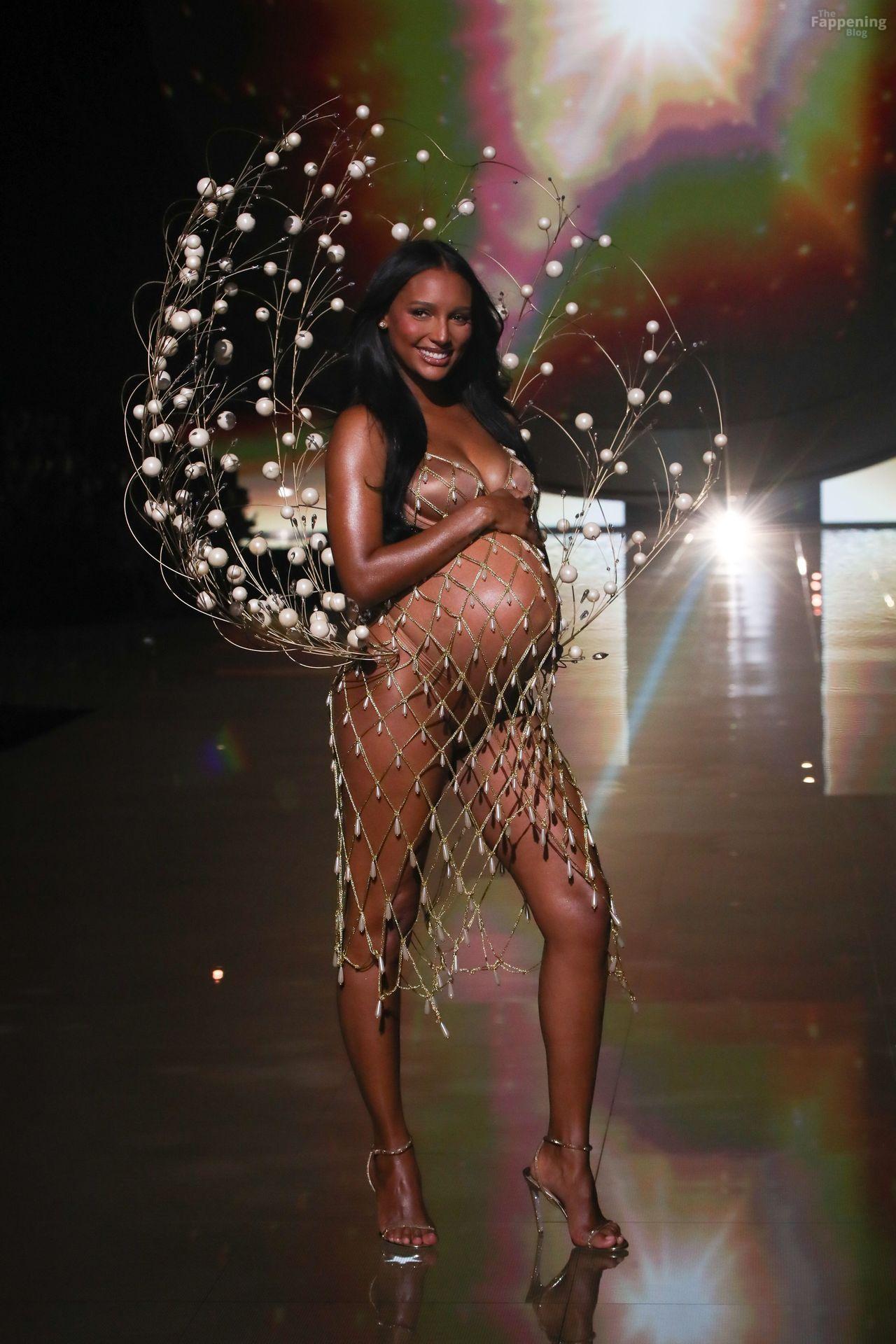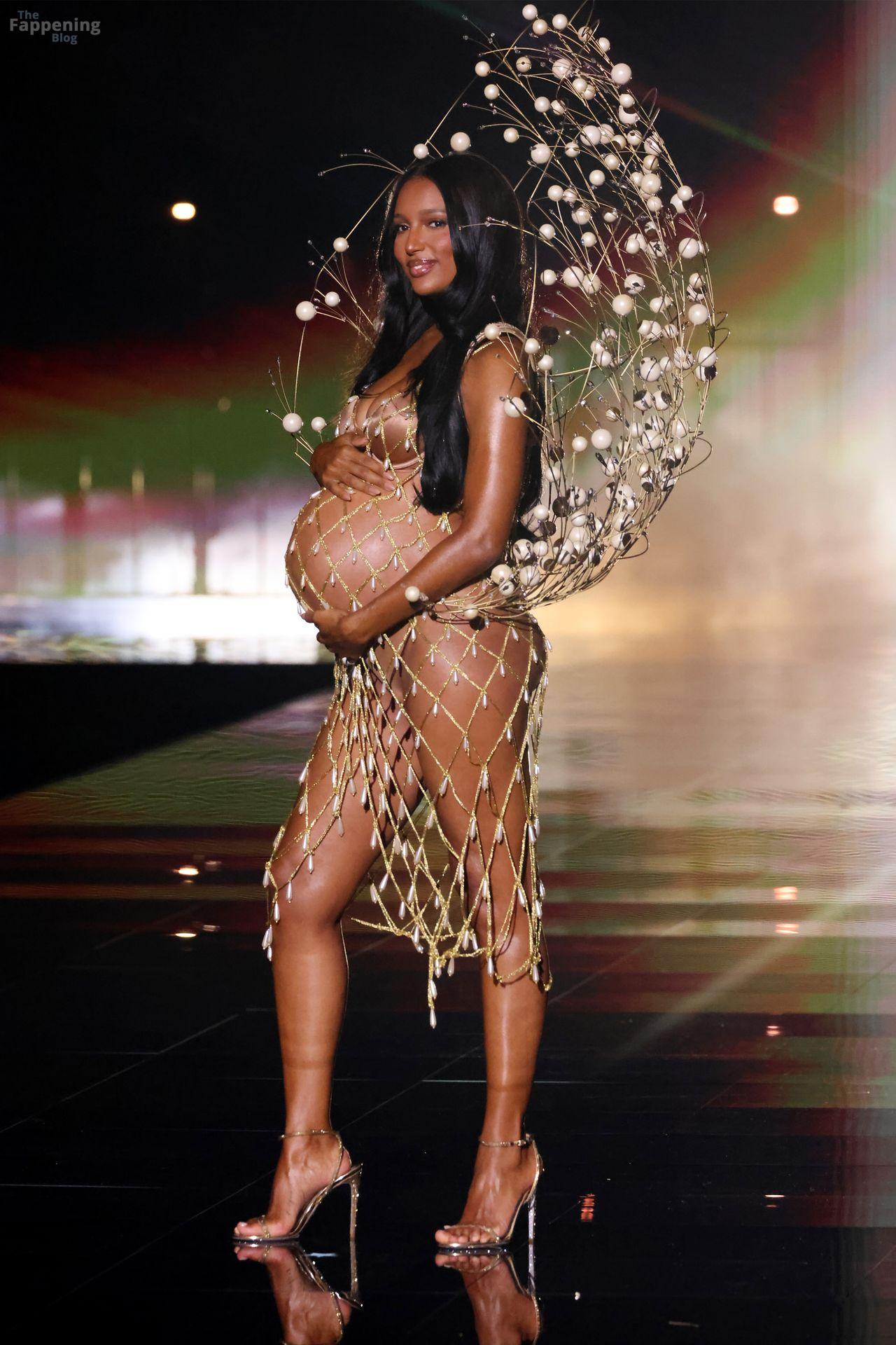 Jasmine Tookes stunned at the Victoria’s Secret Fashion Show 2025, strutted out at nine months pregnant in a sheer gold dress that showed off her bump.