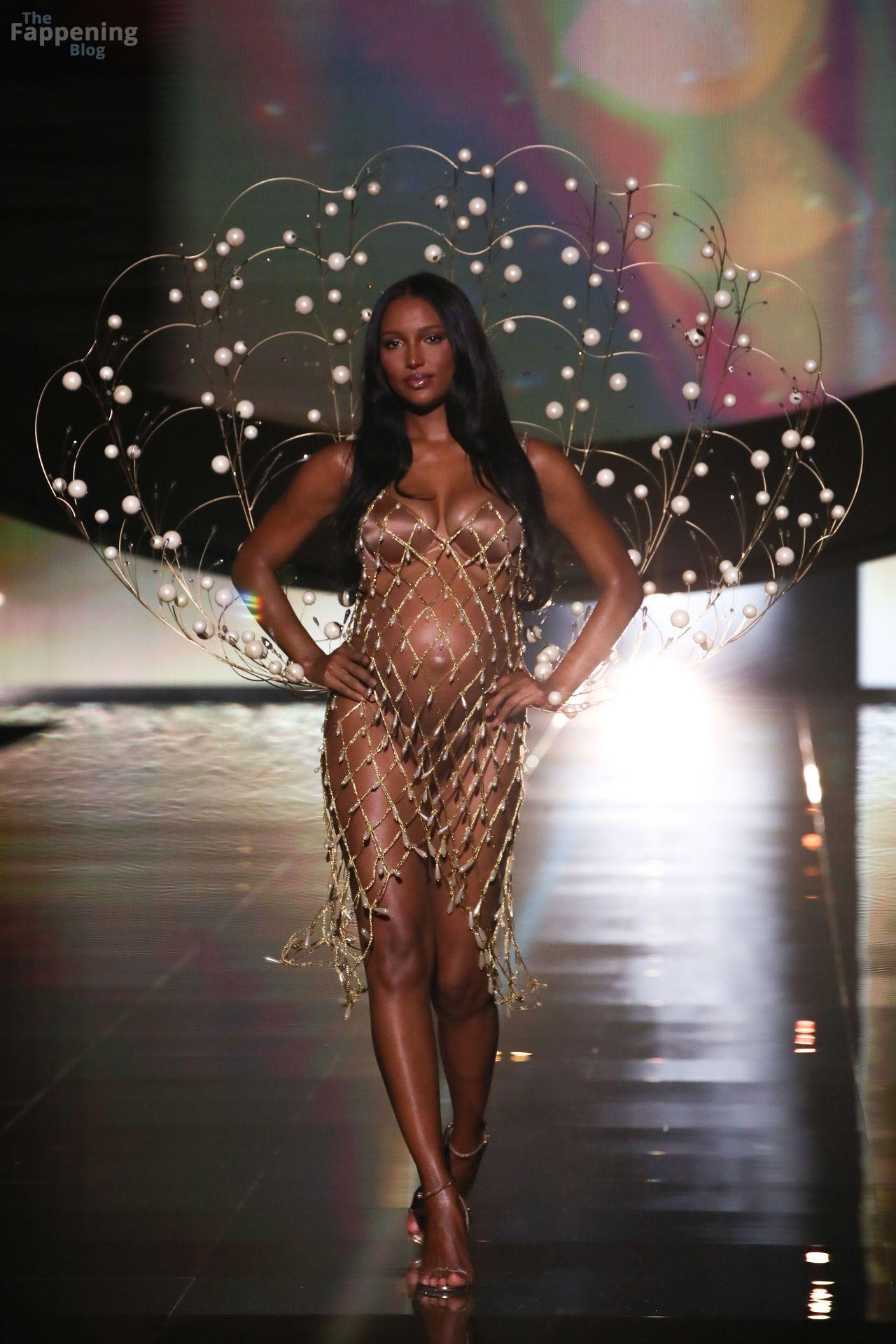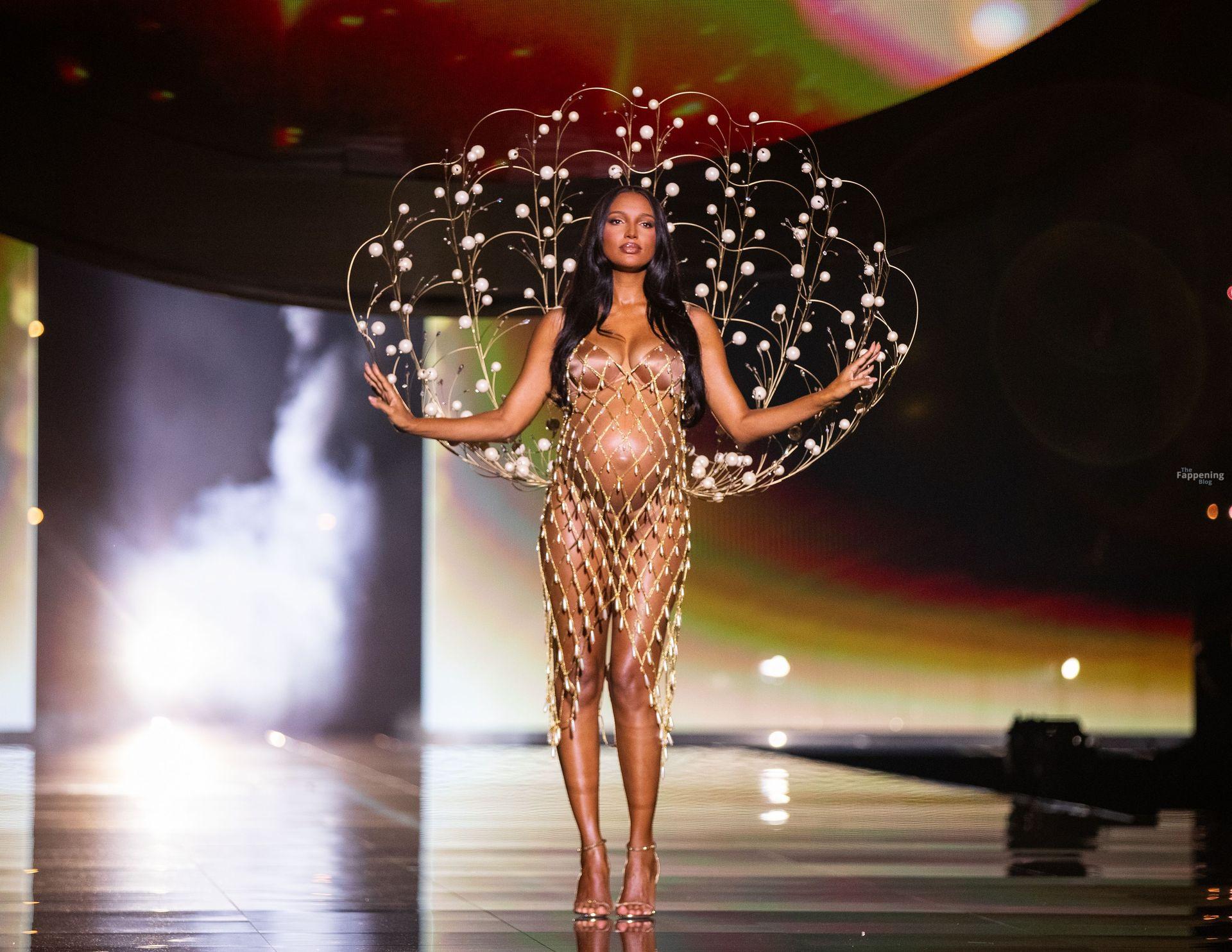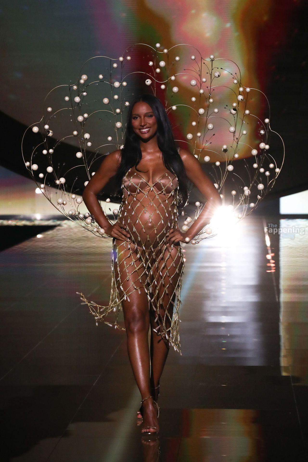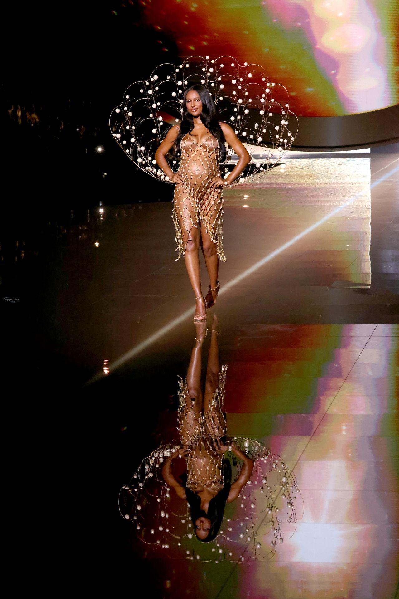 Jasmine Tookes stunned at the Victoria’s Secret Fashion Show 2025, strutted out at nine months pregnant in a sheer gold dress that showed off her bump.
