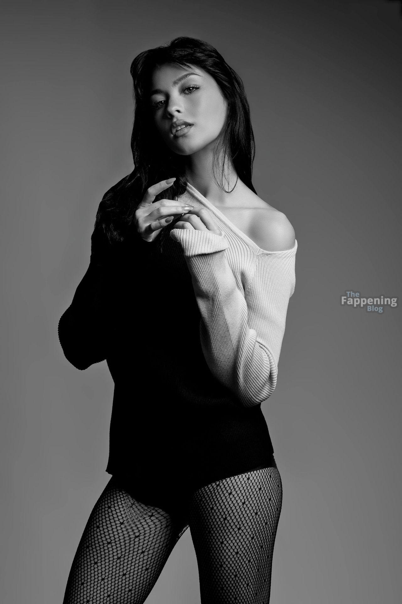 American TikTok star Mishka Silva teases in sweaters, blazers, and fishnets for Chicle magazine’s September 2025 issue. She shows off her hot legs and pretty face.