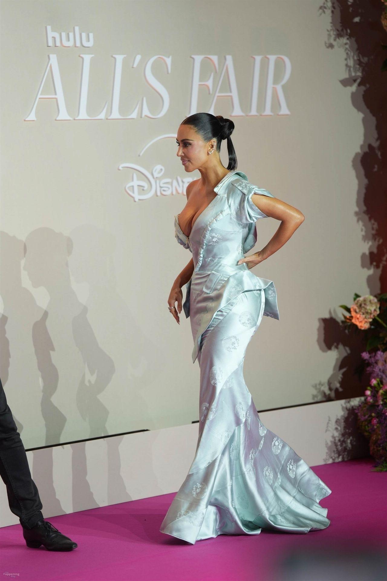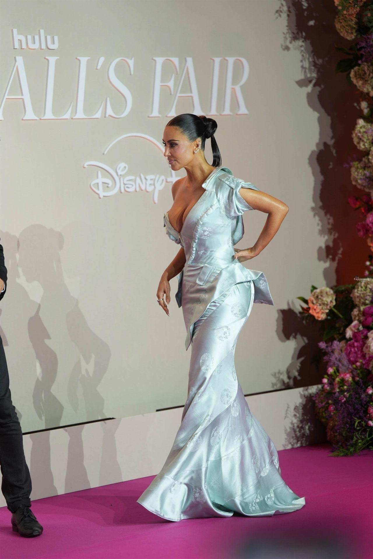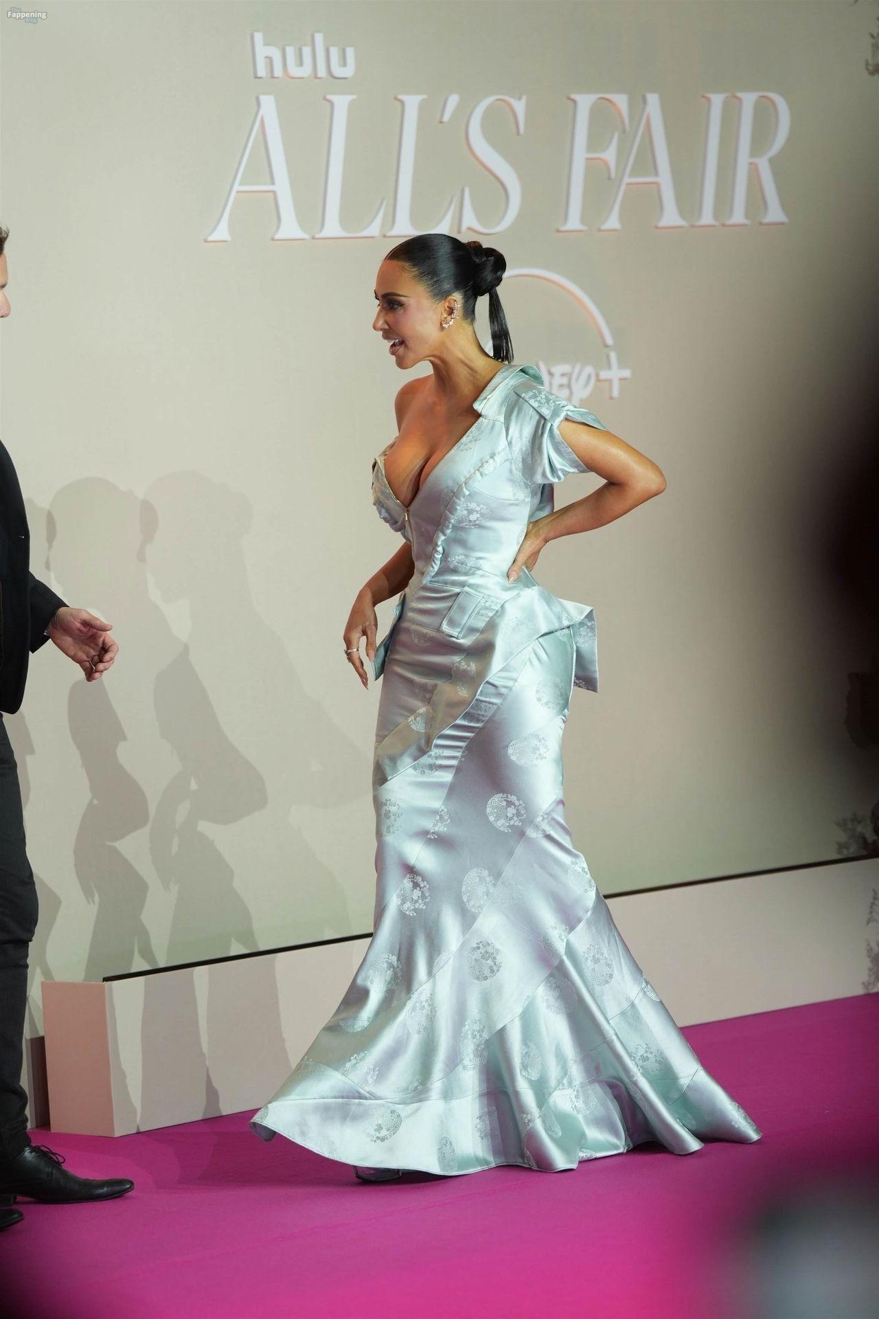 Kim Kardashian showed up at the “All’s Fair” Disney+ Premiere at Maison de La Chimie in Paris, rockin’ a vintage Dior gown from John Galliano’s spring 2000 collection that had her massive boobs nearly spillin’ out.